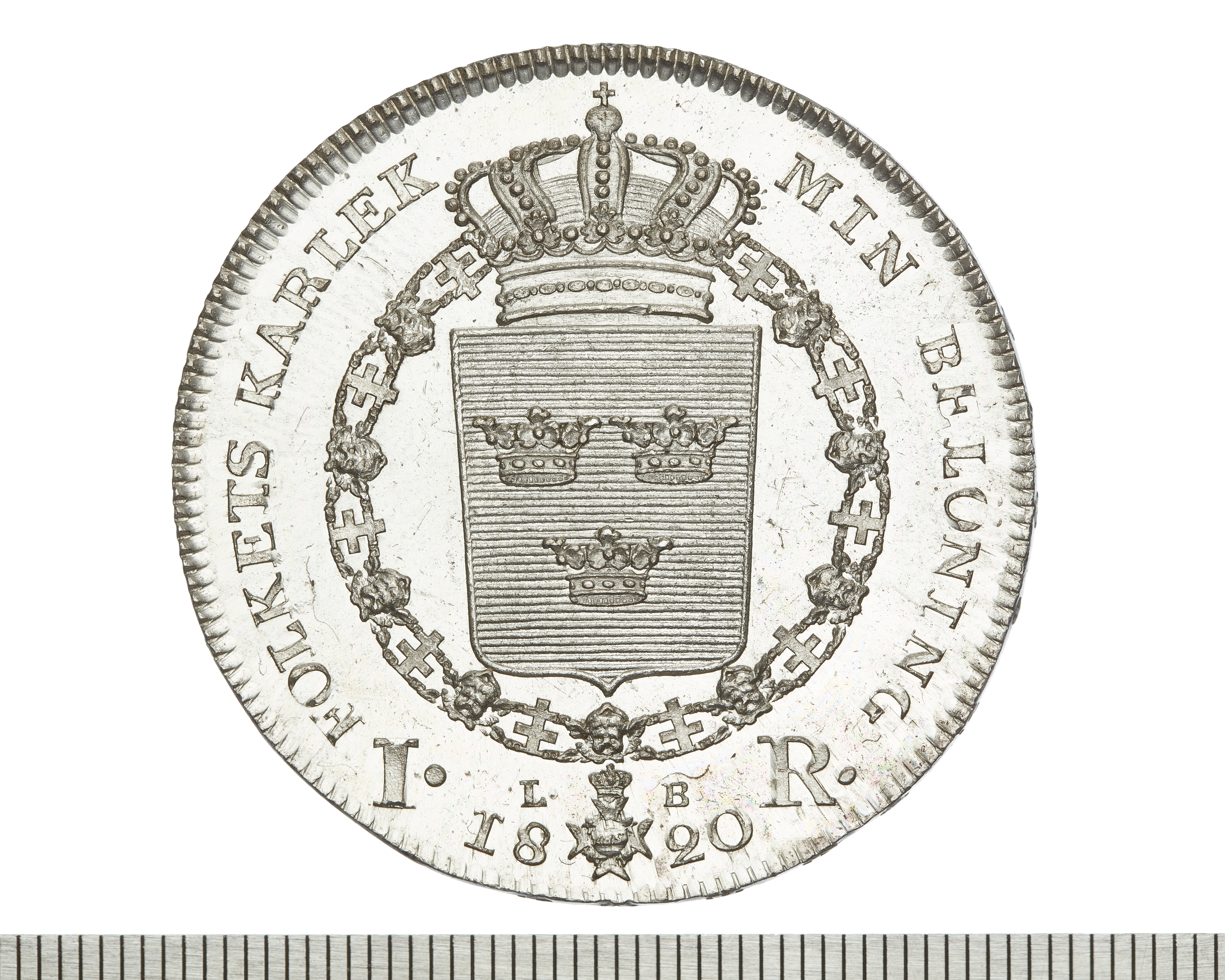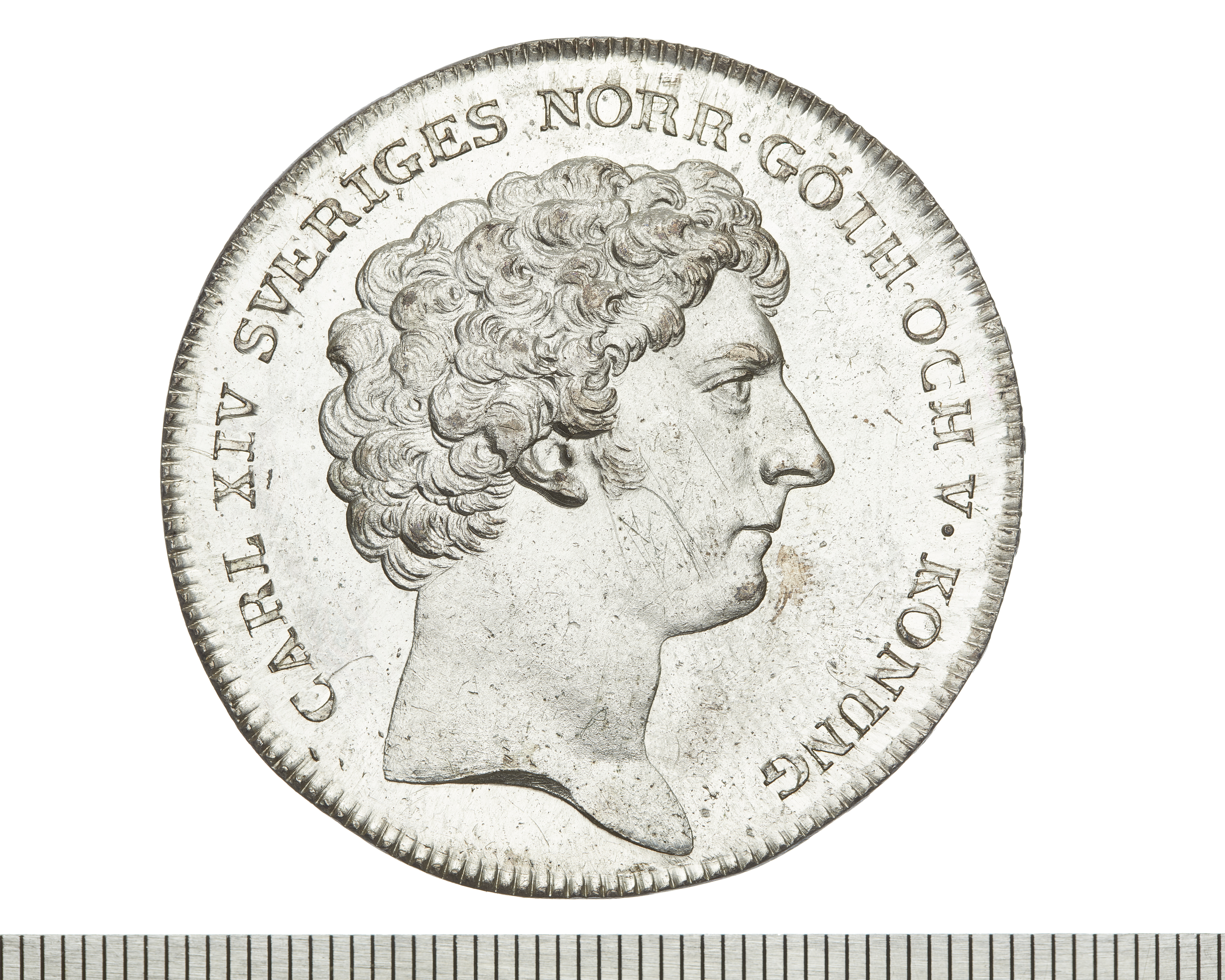 Upphov: Karl XIV Johan av Sverige och Norge. Media: Bonnevier, Helena. Ekonomiska museet - Kungliga myntkabinettet/SHM, (CC BY 4.0) Du får bearbeta och dela verket för alla ändamål, även kommersiella, så länge du anger upphovsperson och licensgivare.
