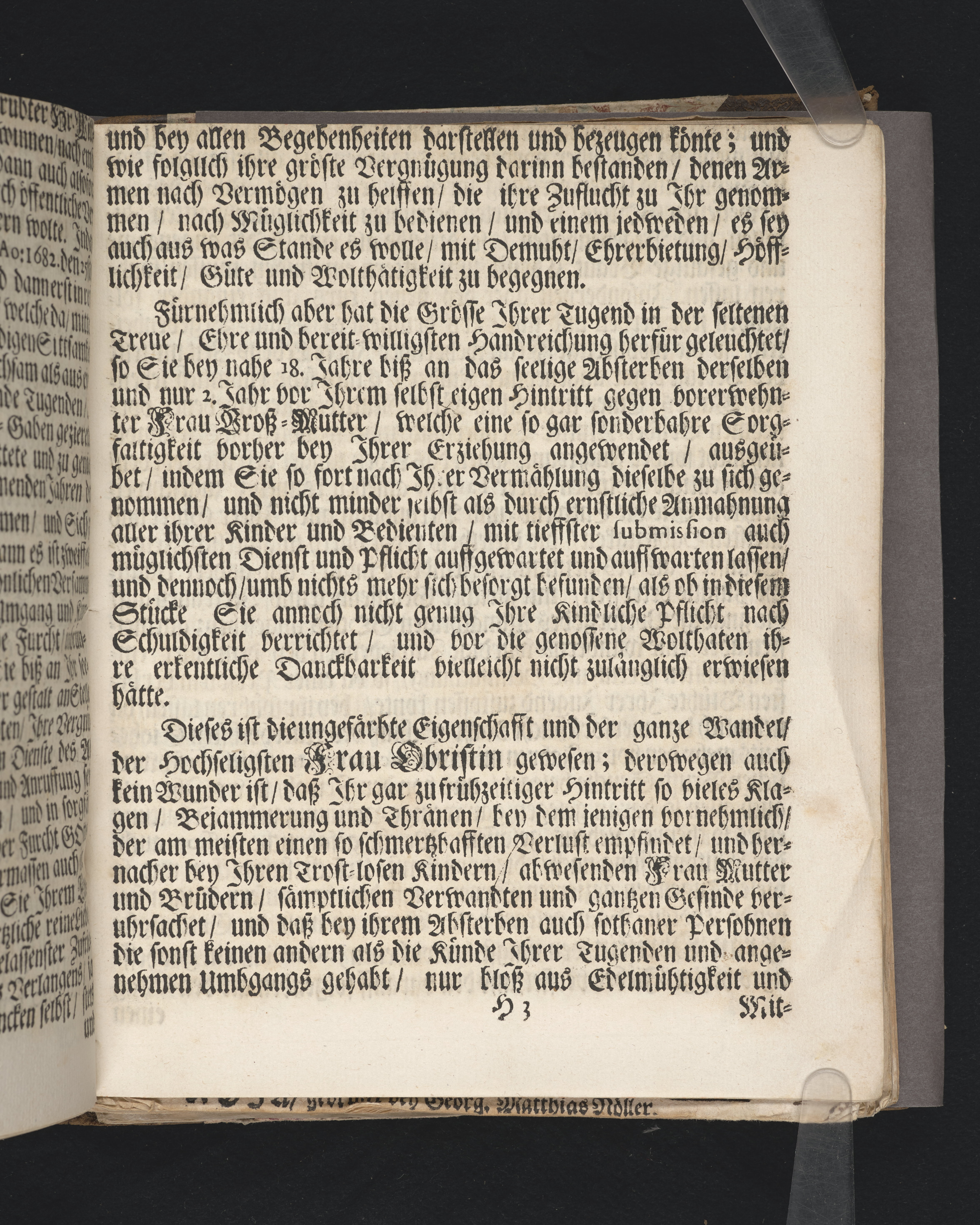 Högst upp på titelsidan anteckning i bläck med uppgifter om födelse- och dödsdatum för den avlidna. Minnesdikt och frontespis innan titelsidan.
