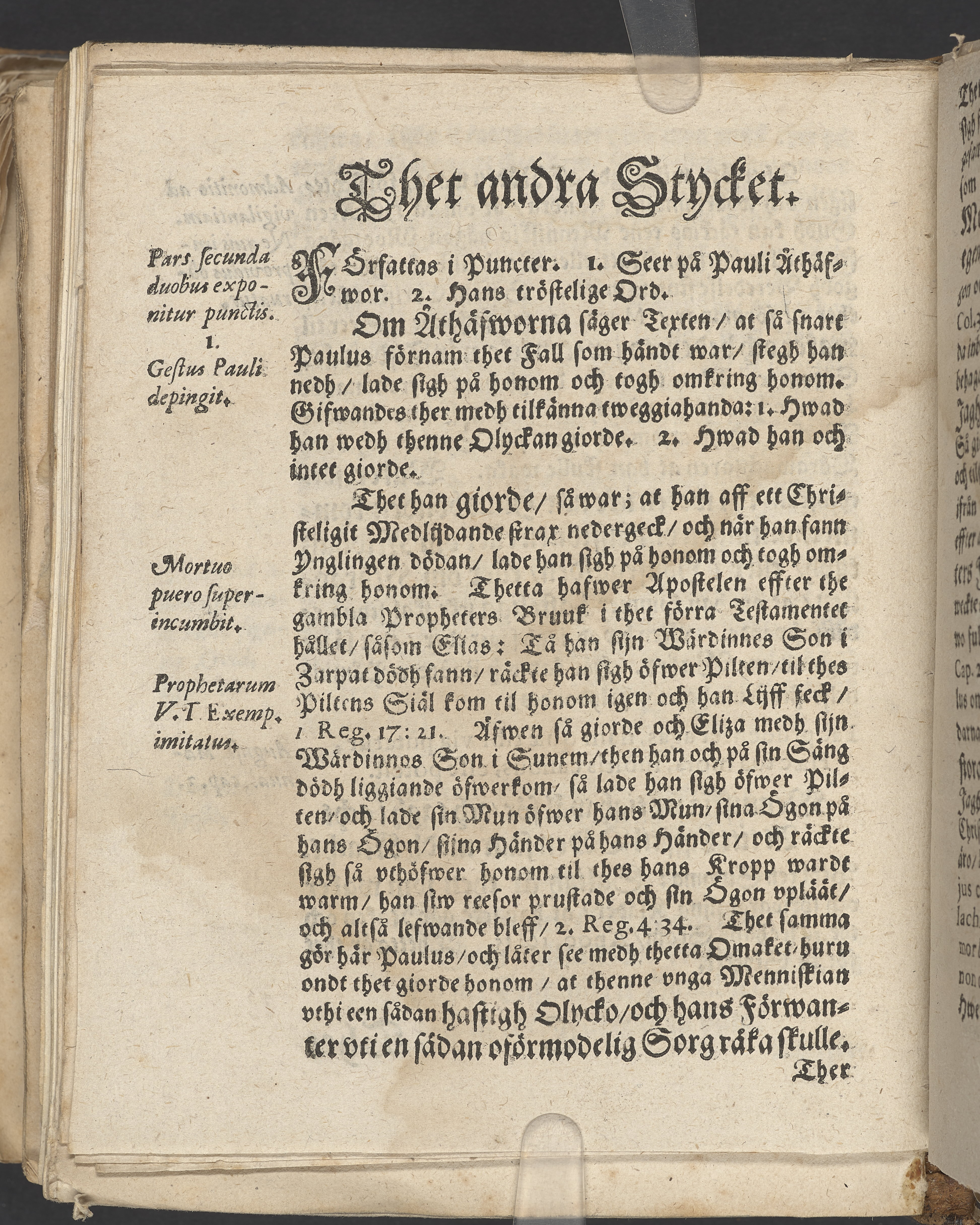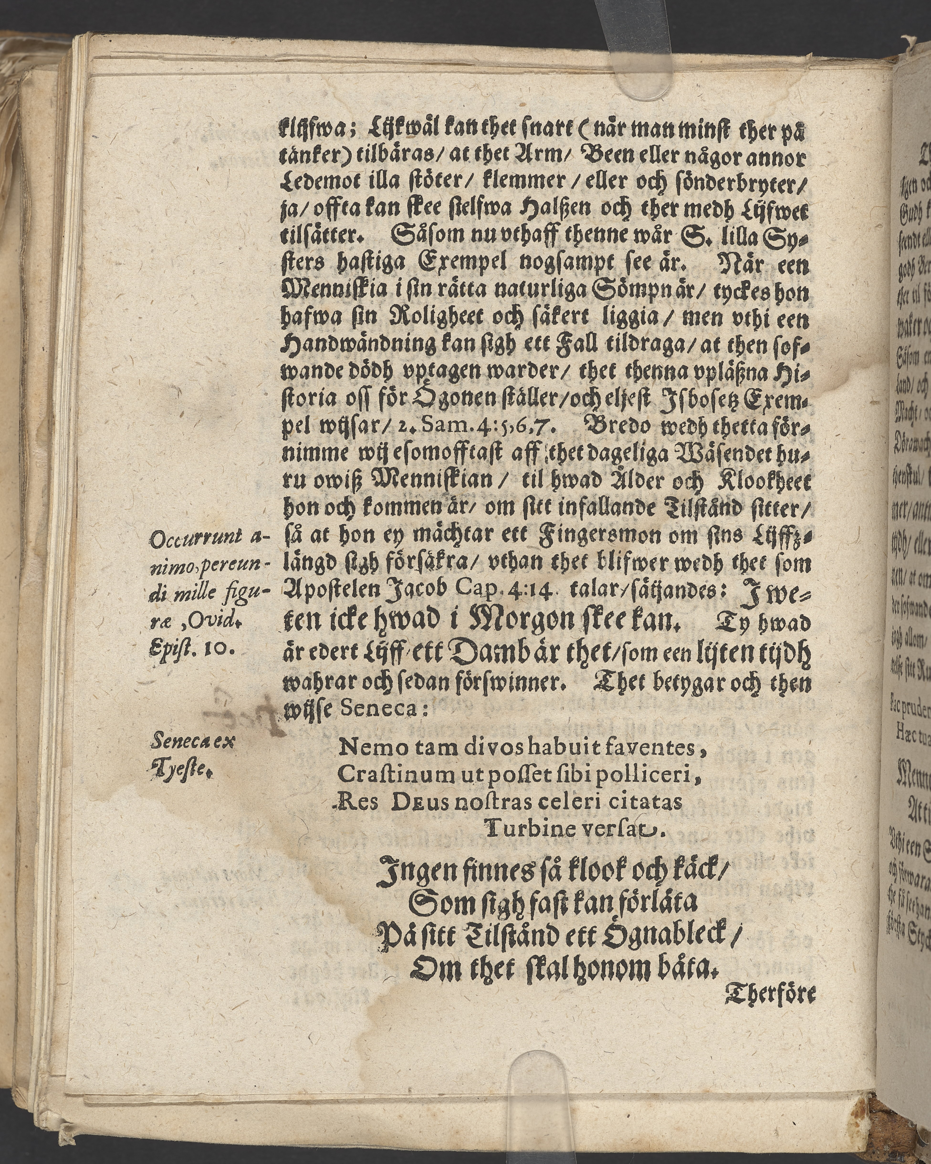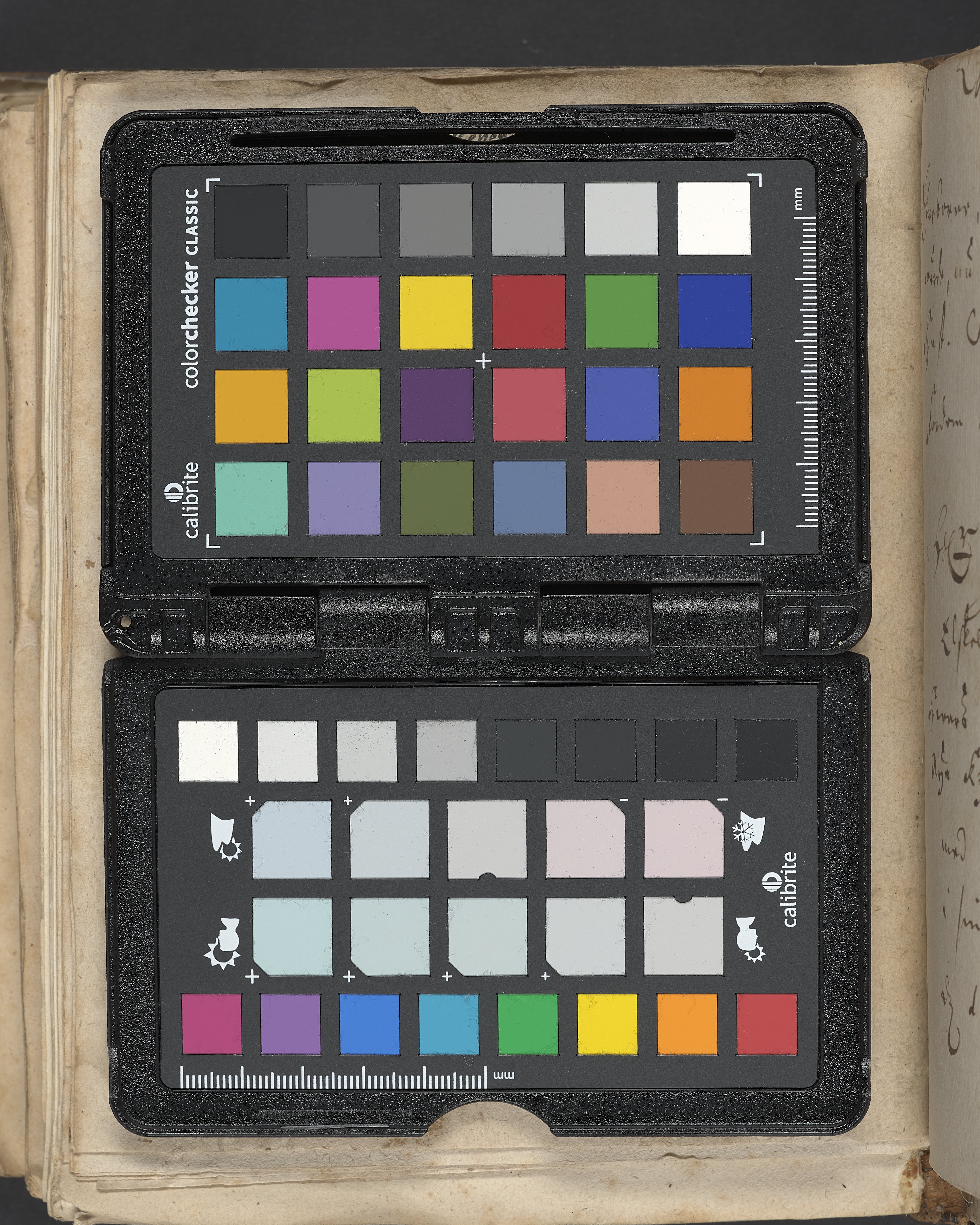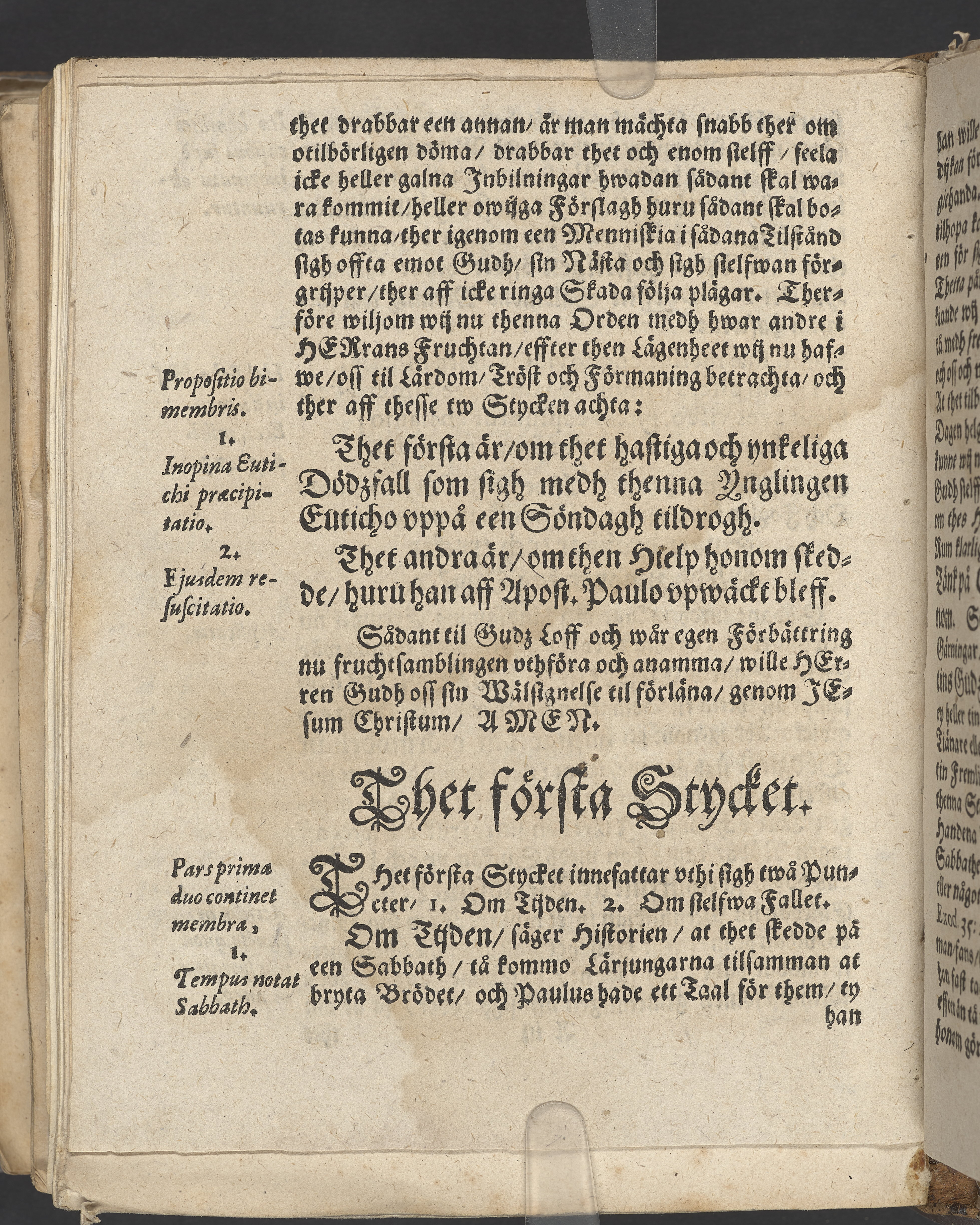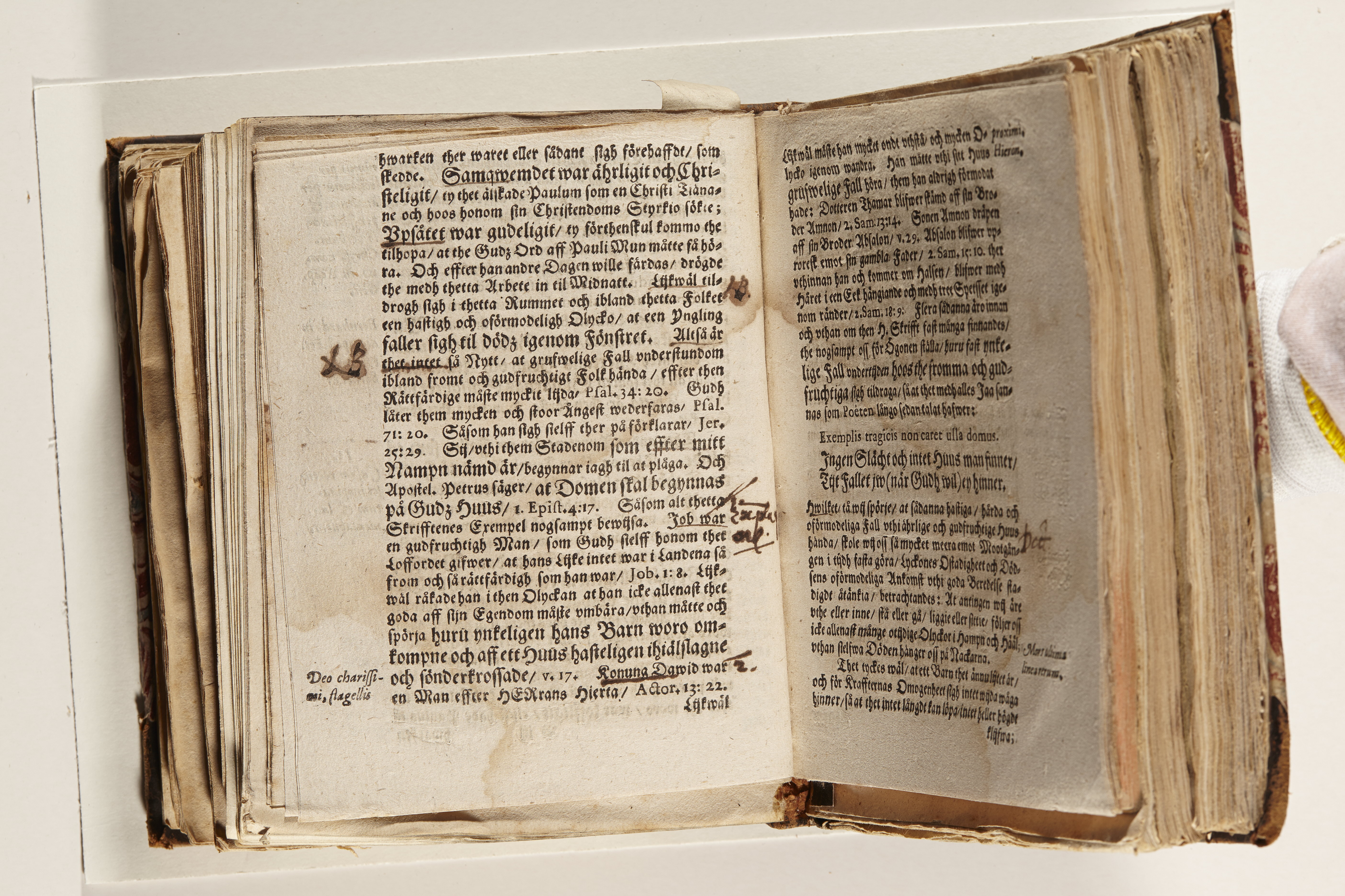 Anteckningar i brunt bläck på tre sidor. Snett skuret, så att övre raden på två sidor delvis saknas (C2 recto och verso). En av 23 skrifter häftade tillsammans i samma band.