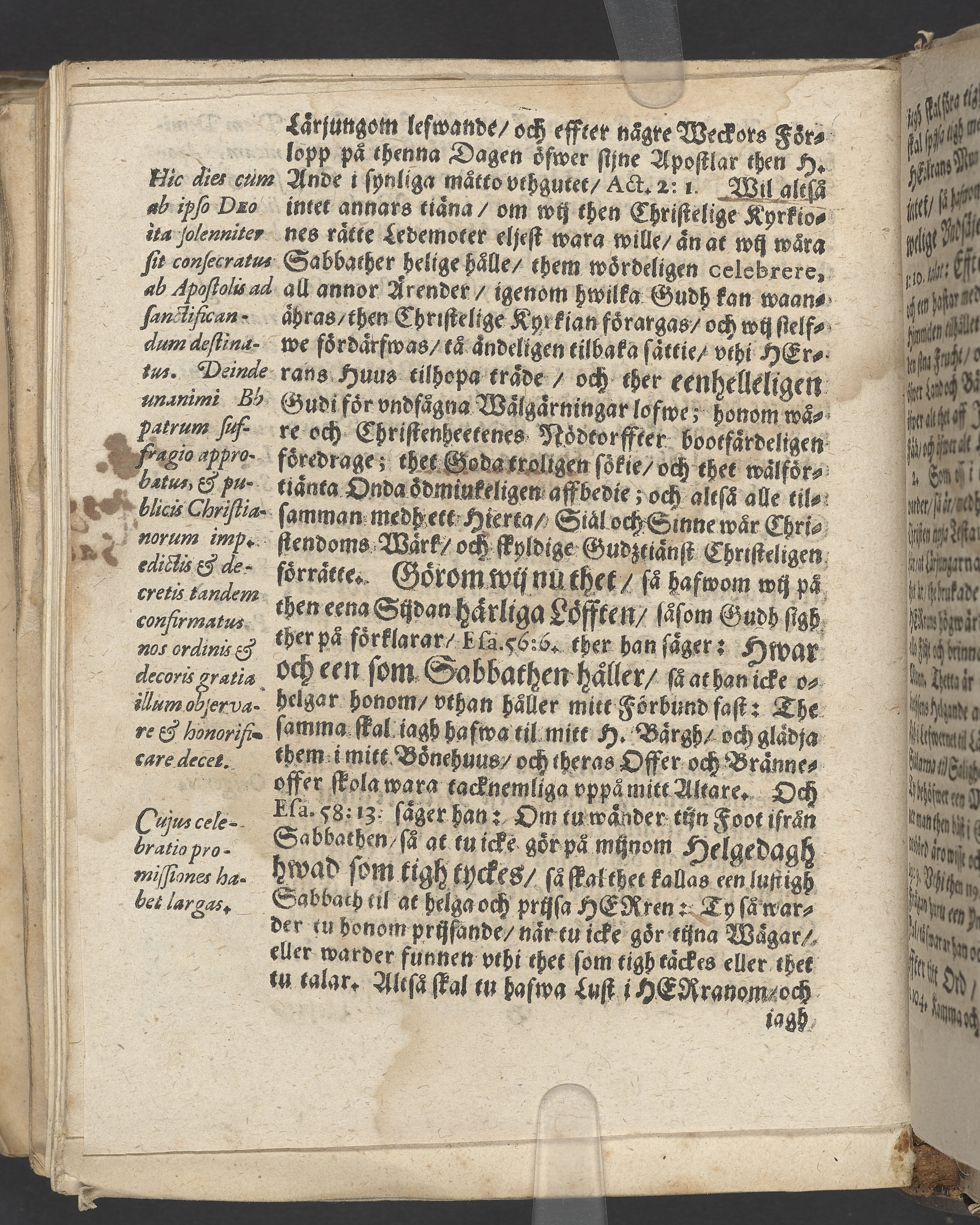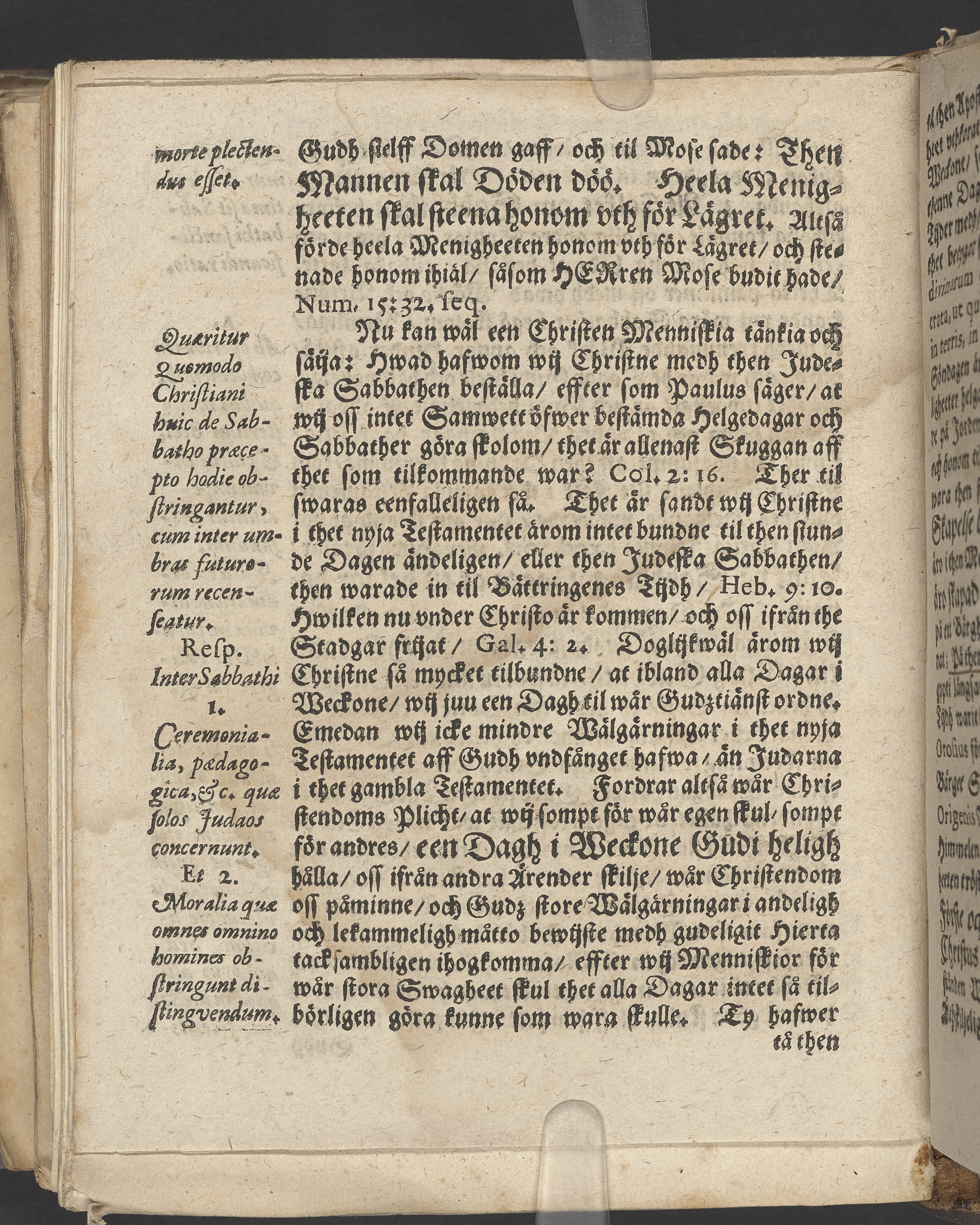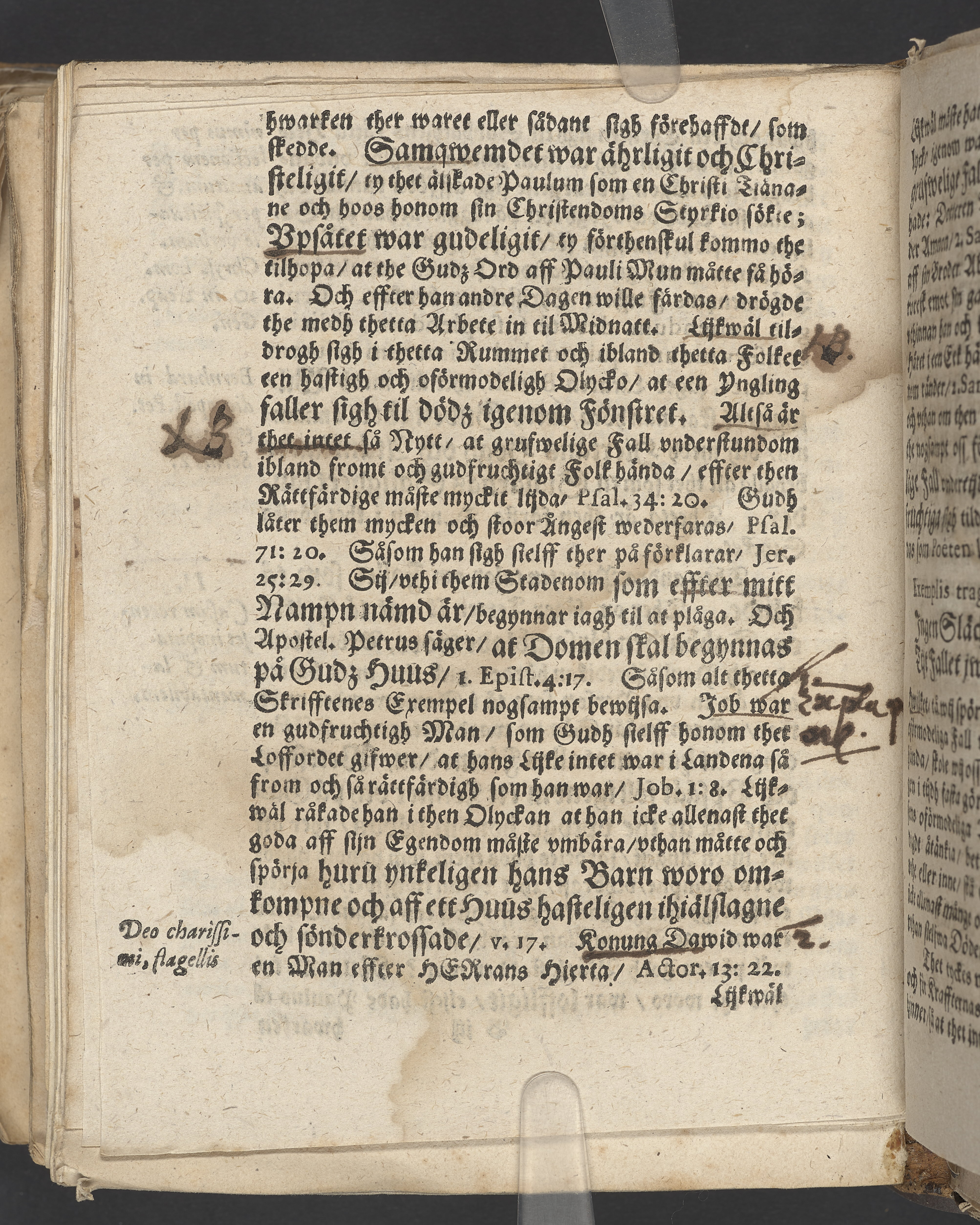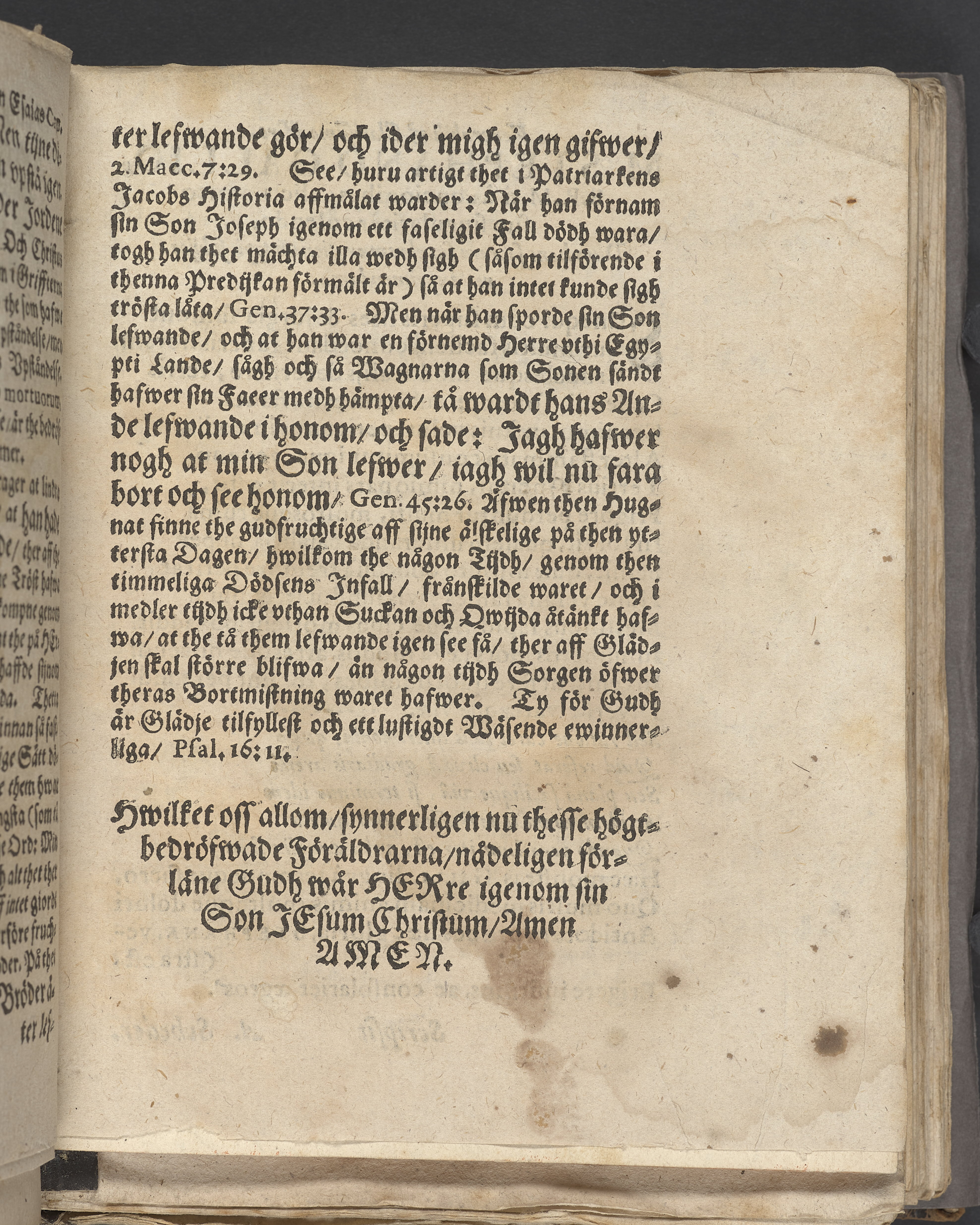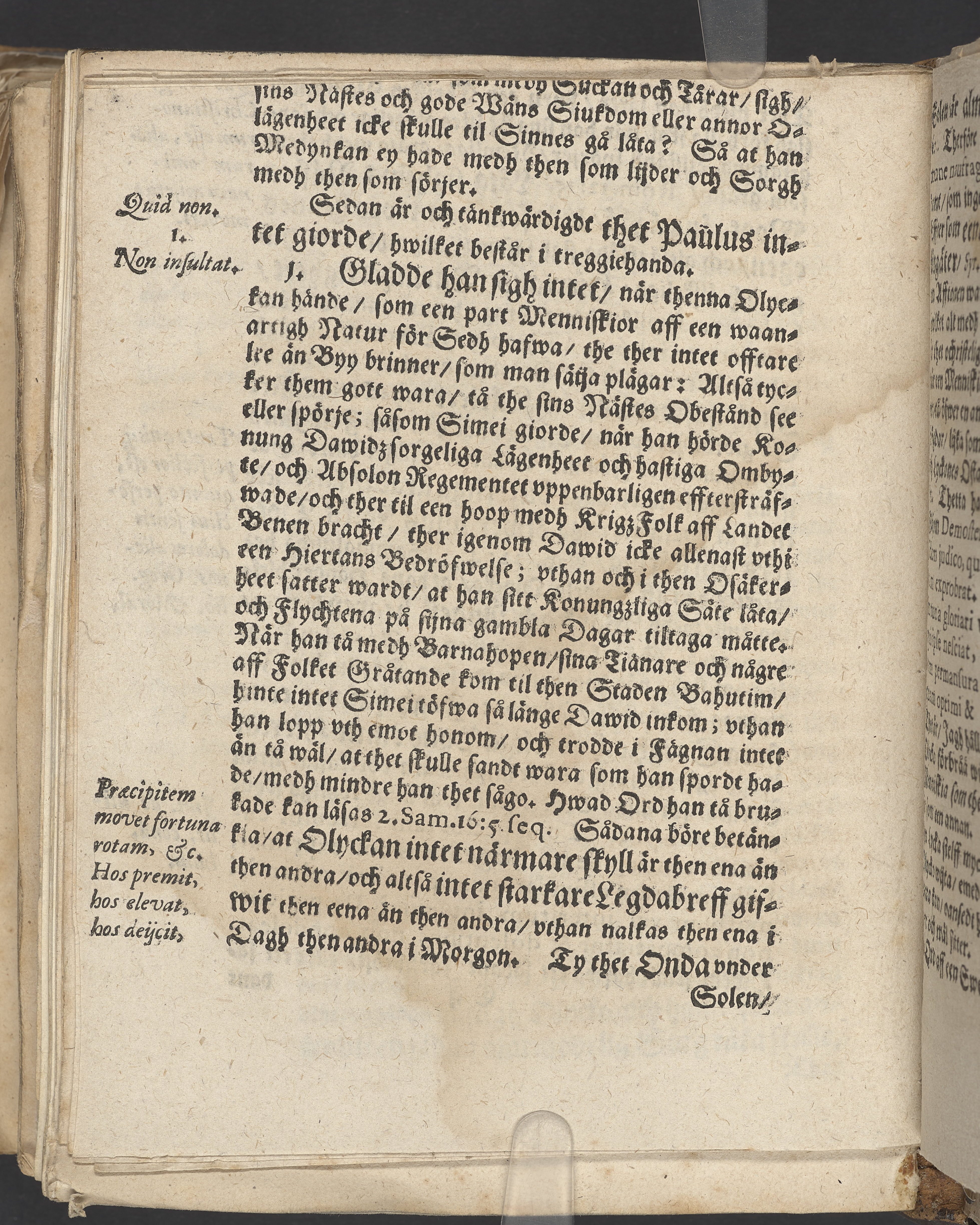 Anteckningar i brunt bläck på tre sidor. Snett skuret, så att övre raden på två sidor delvis saknas (C2 recto och verso). En av 23 skrifter häftade tillsammans i samma band.