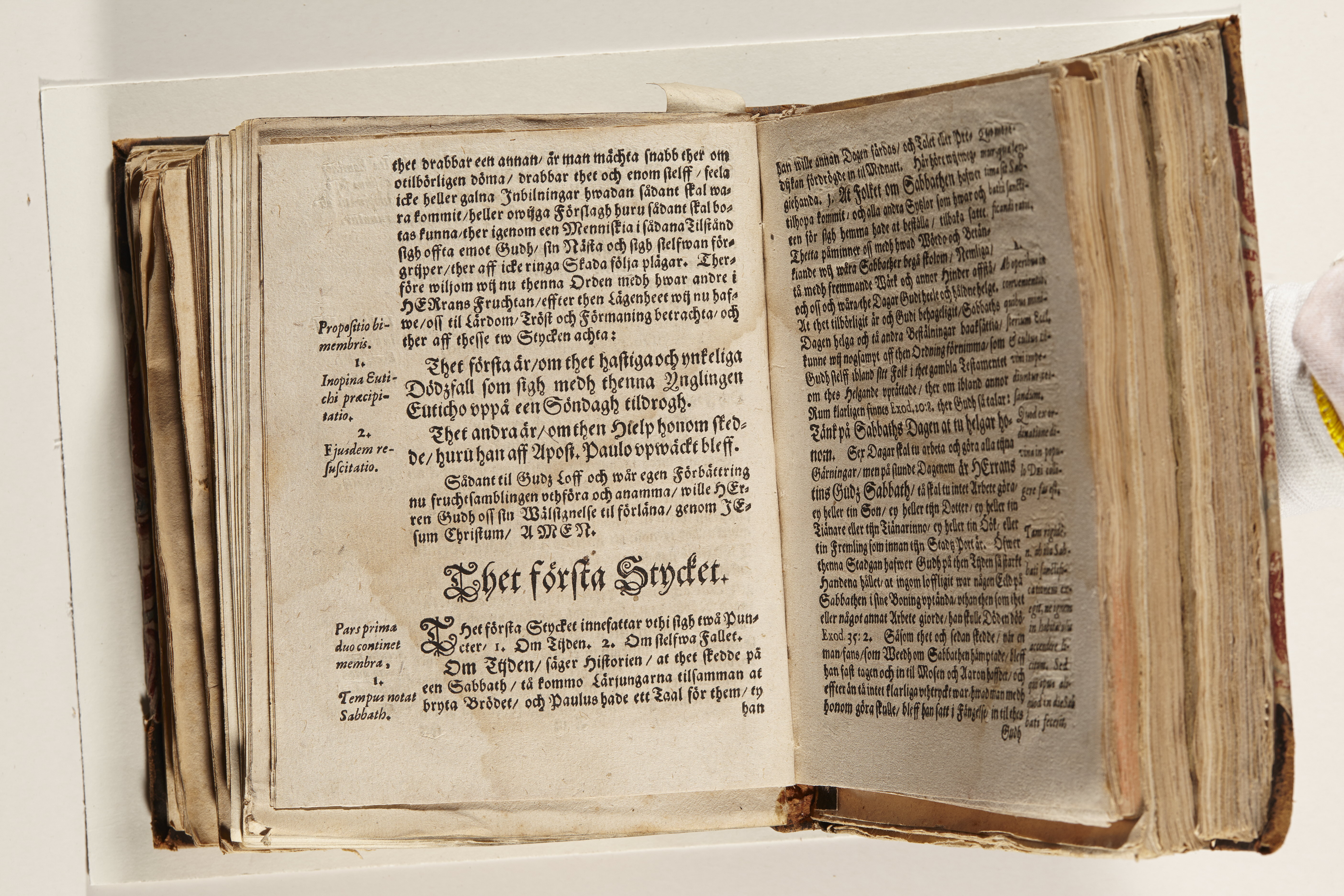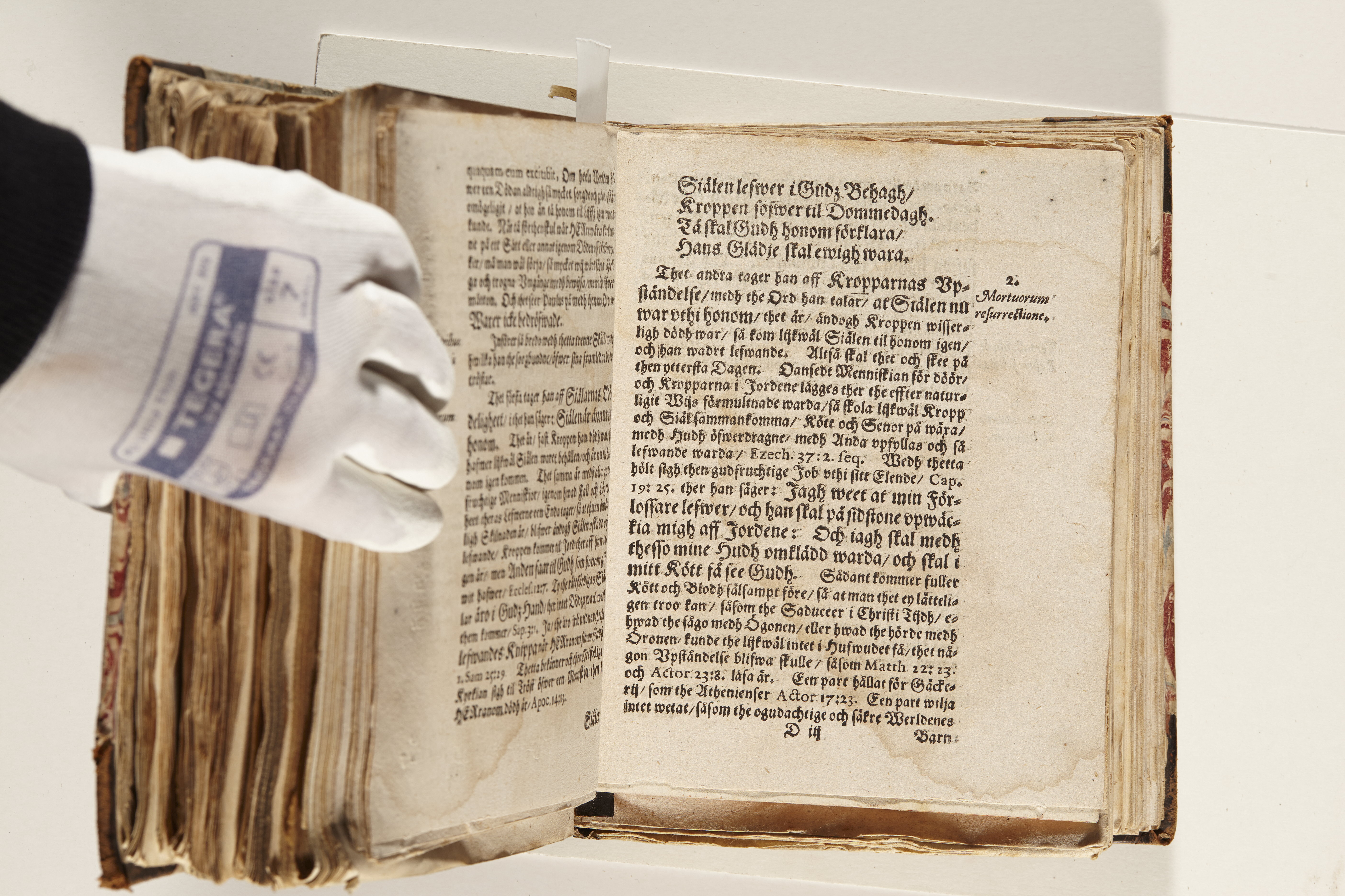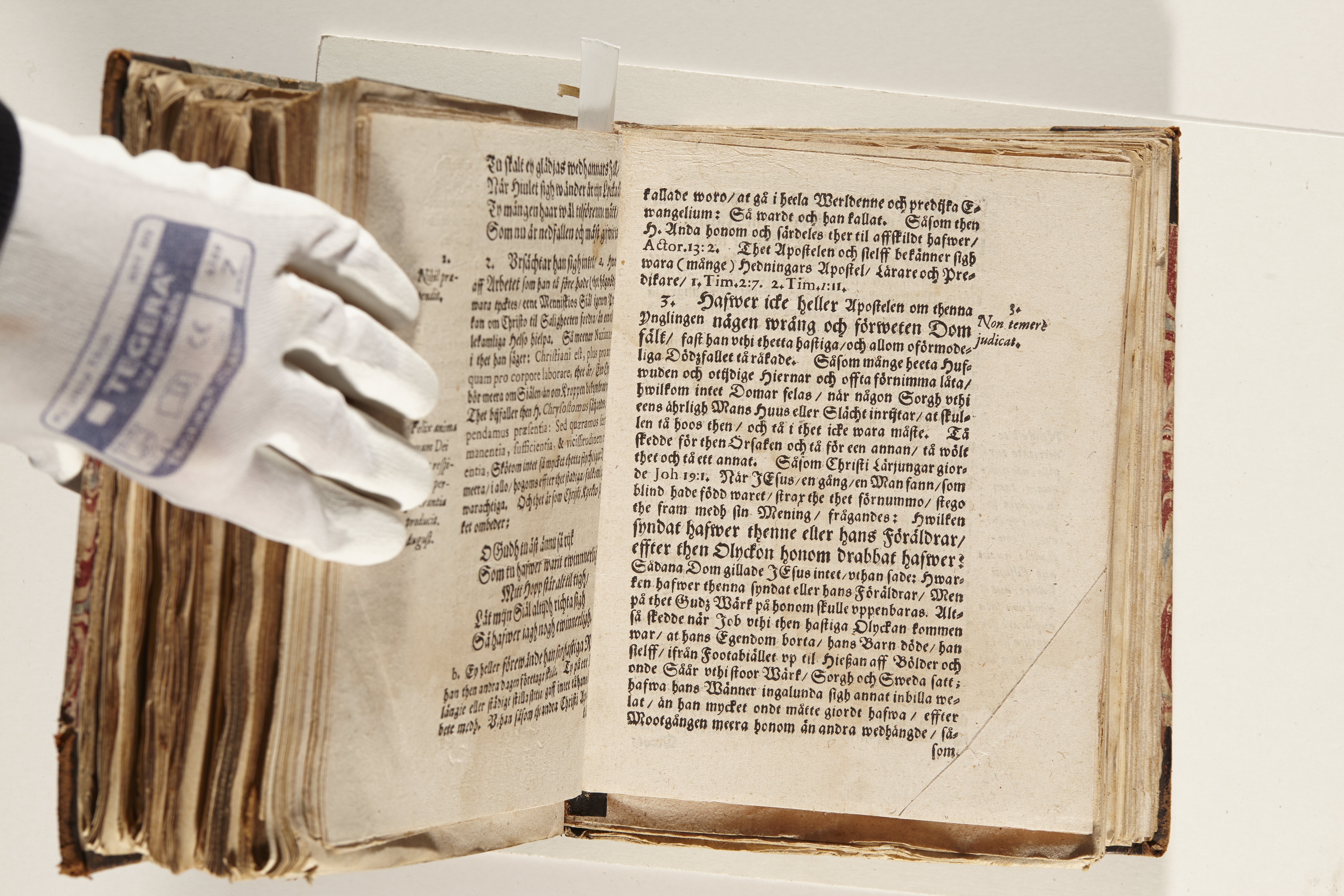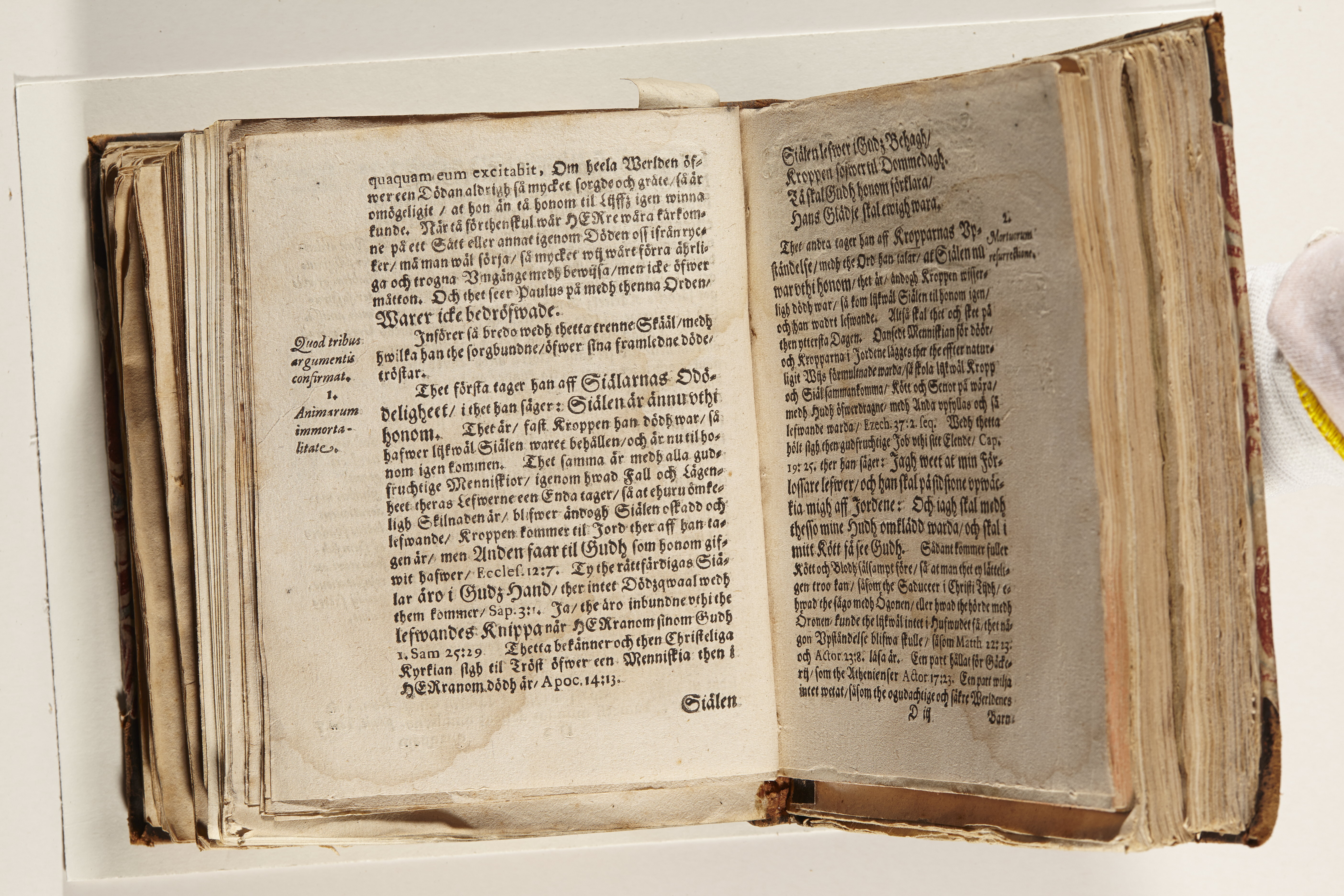 Band m. pärmar av marmorerat papper, rygg och hörn av kalvskinn. Pärmfyllnad: papp. Inlagan består av enskilda lunthäftade skrifter som tillsammans häftats på tre bind, fast rygg. Variationer i papperskvalitet och storlek. 23 skrifter samlade i en volym.