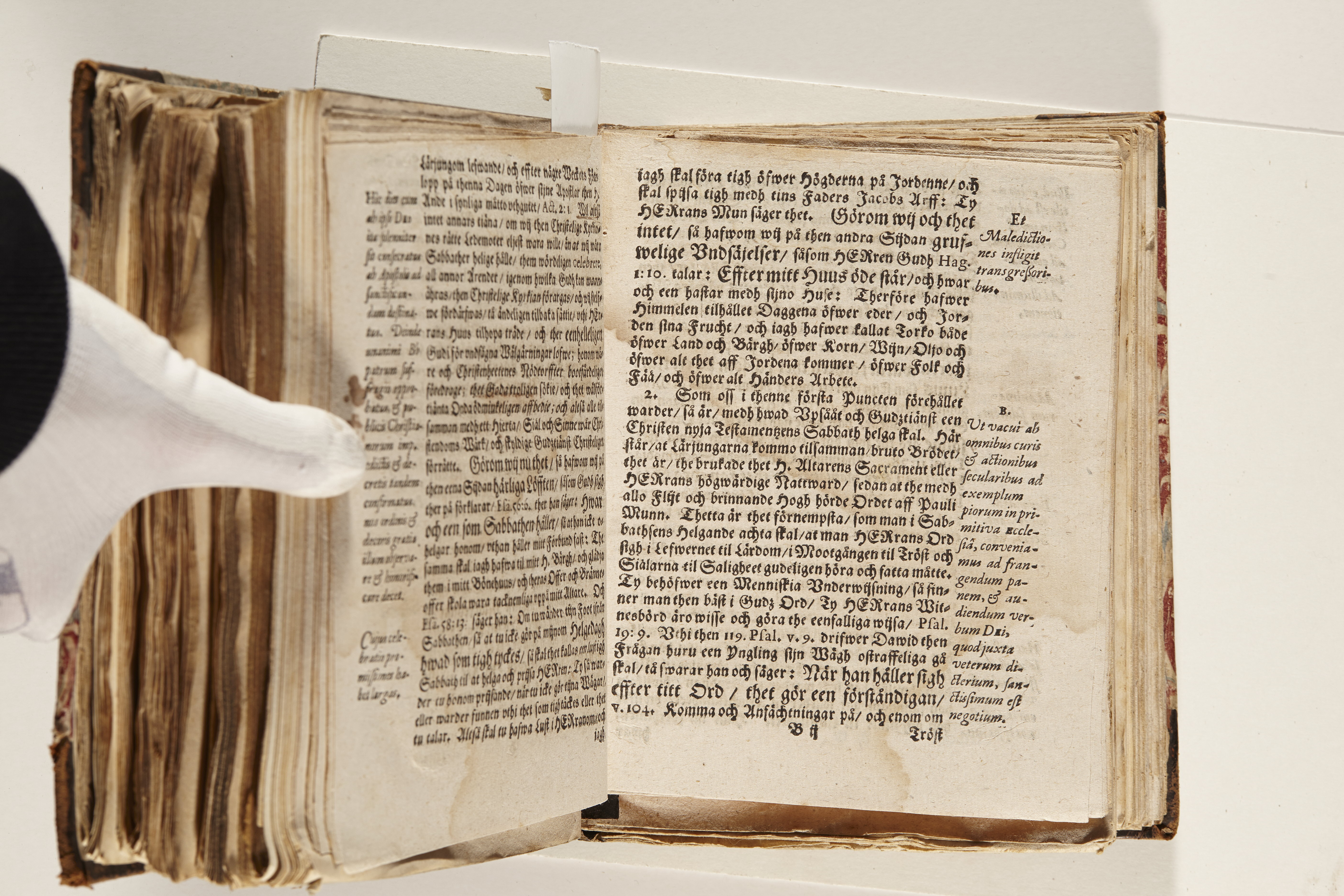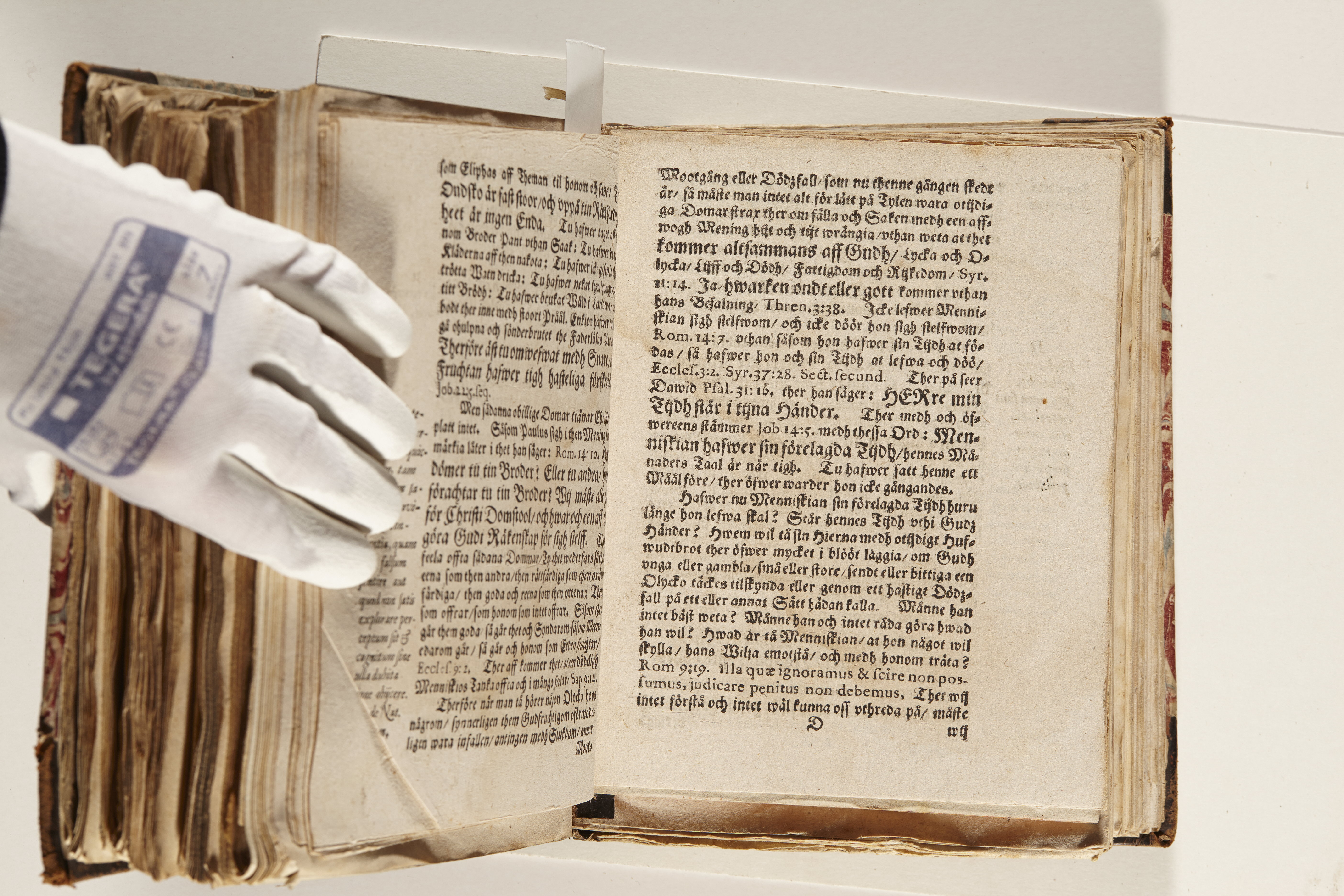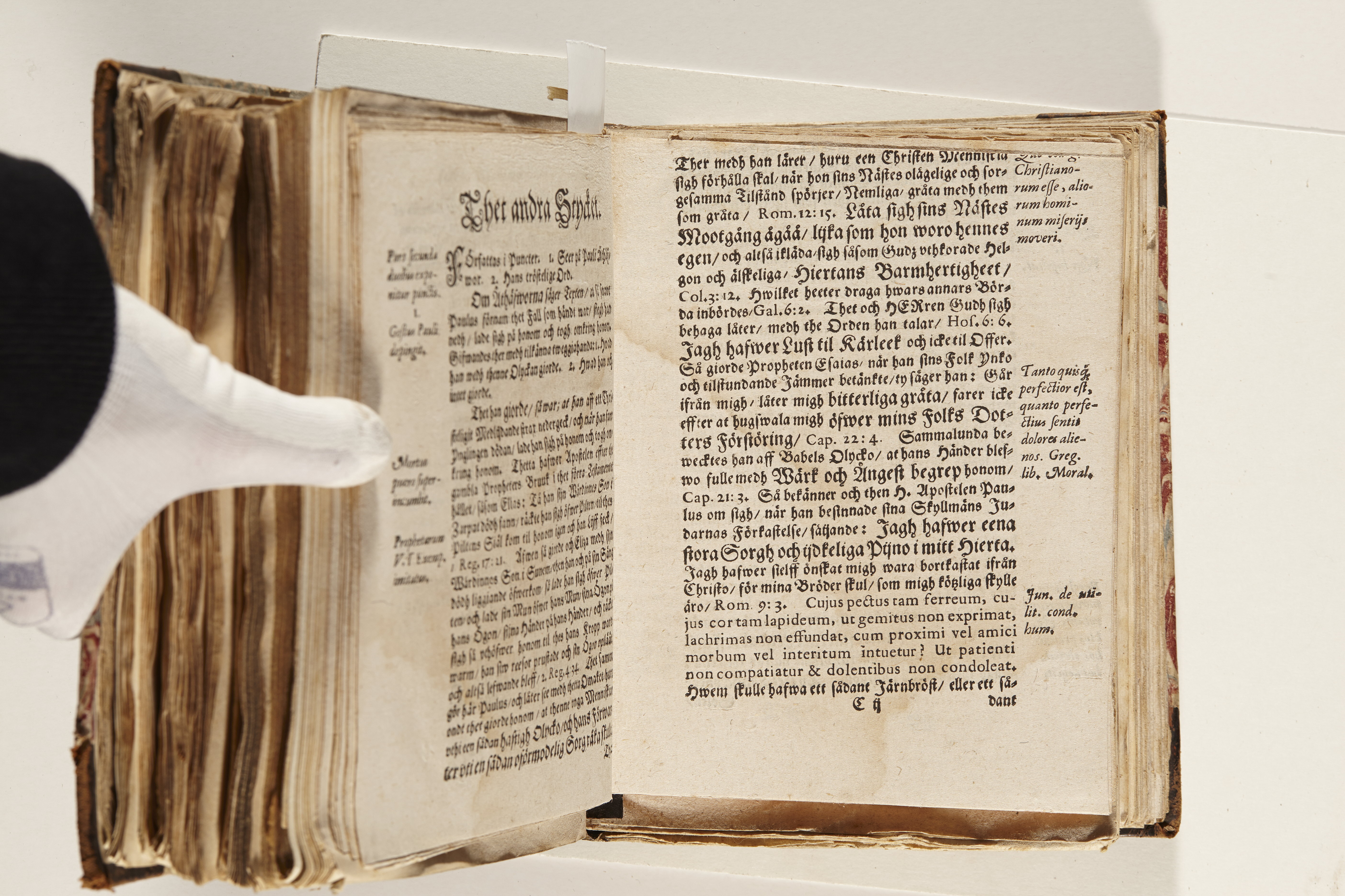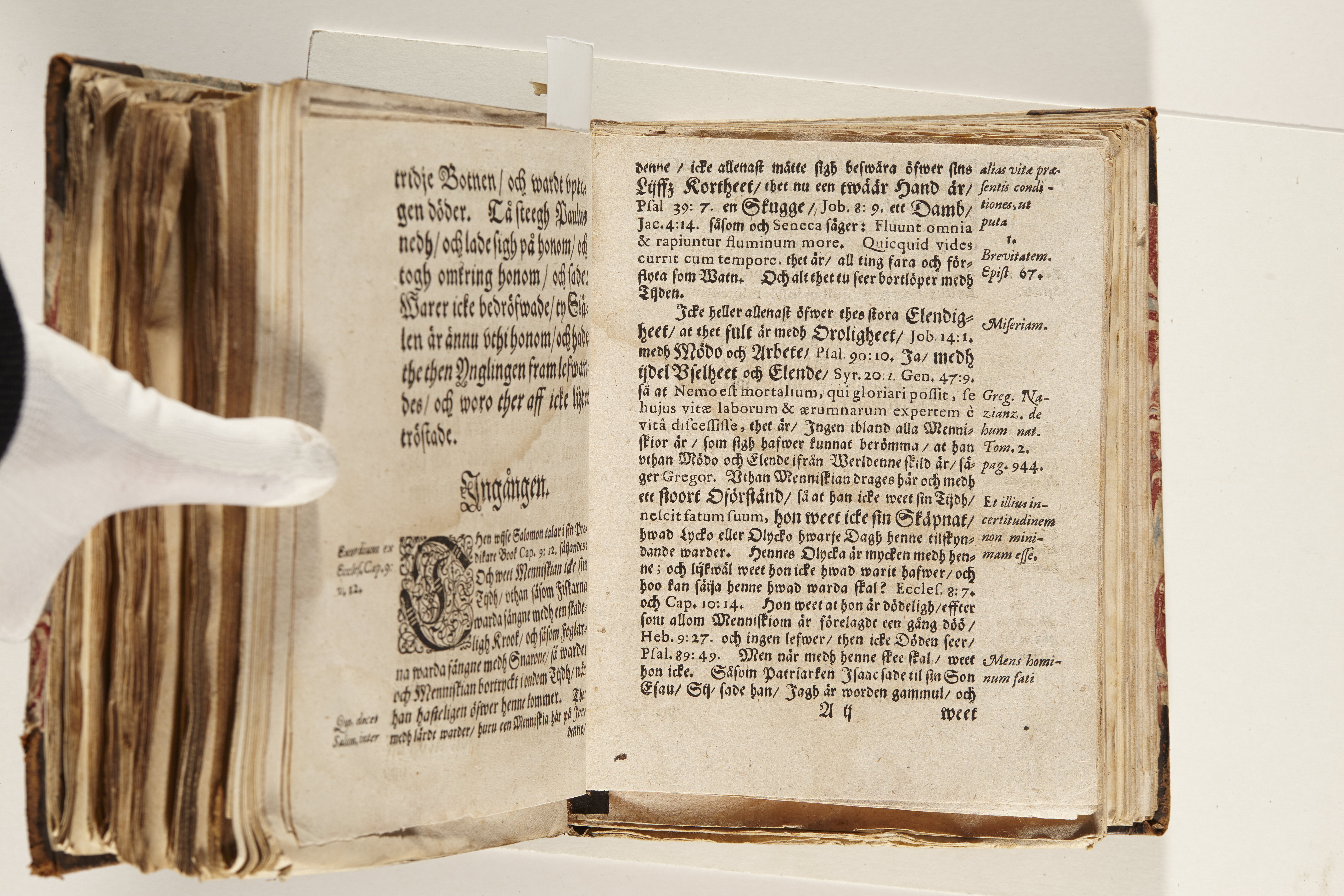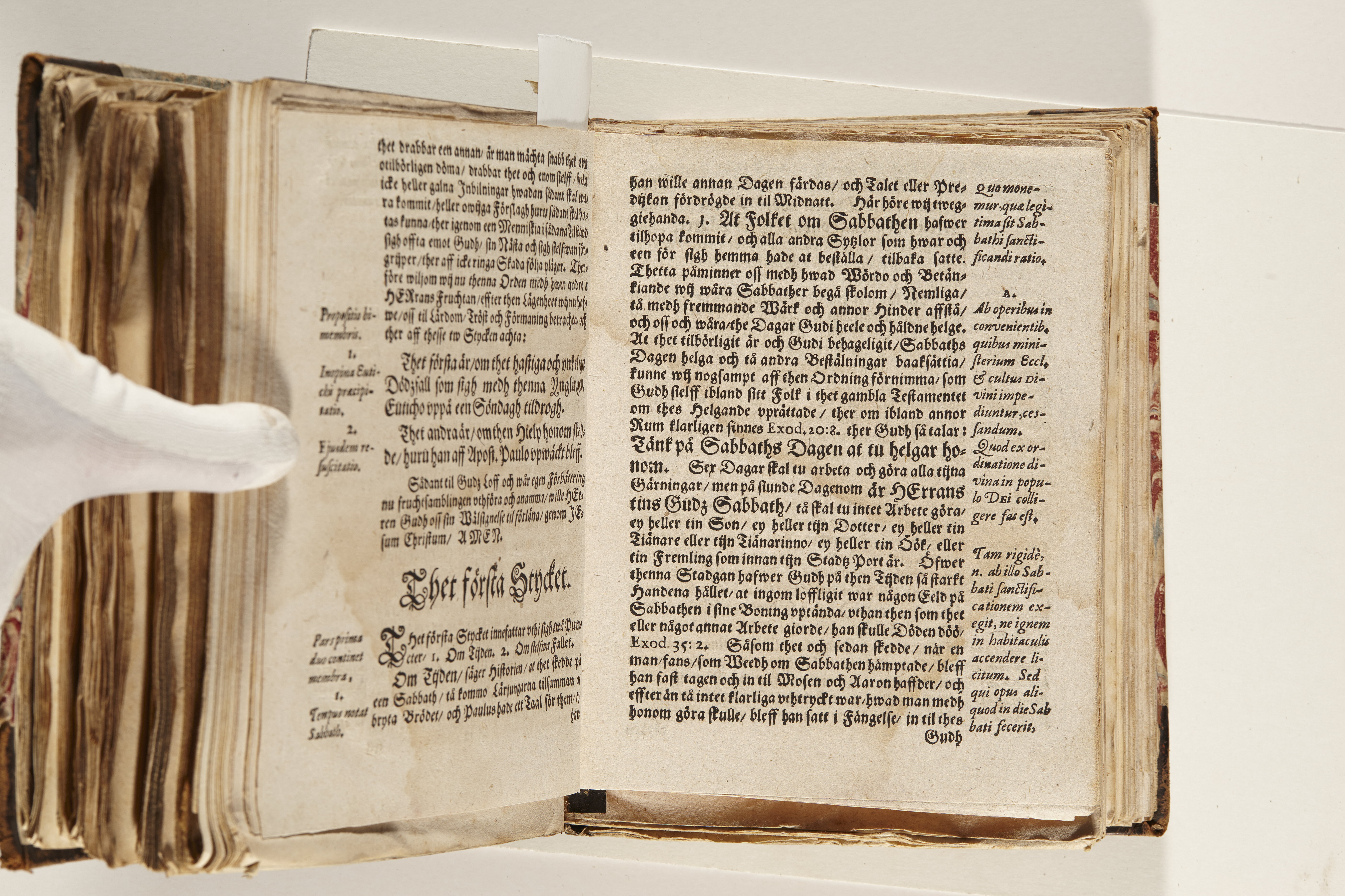 Band m. pärmar av marmorerat papper, rygg och hörn av kalvskinn. Pärmfyllnad: papp. Inlagan består av enskilda lunthäftade skrifter som tillsammans häftats på tre bind, fast rygg. Variationer i papperskvalitet och storlek. 23 skrifter samlade i en volym.