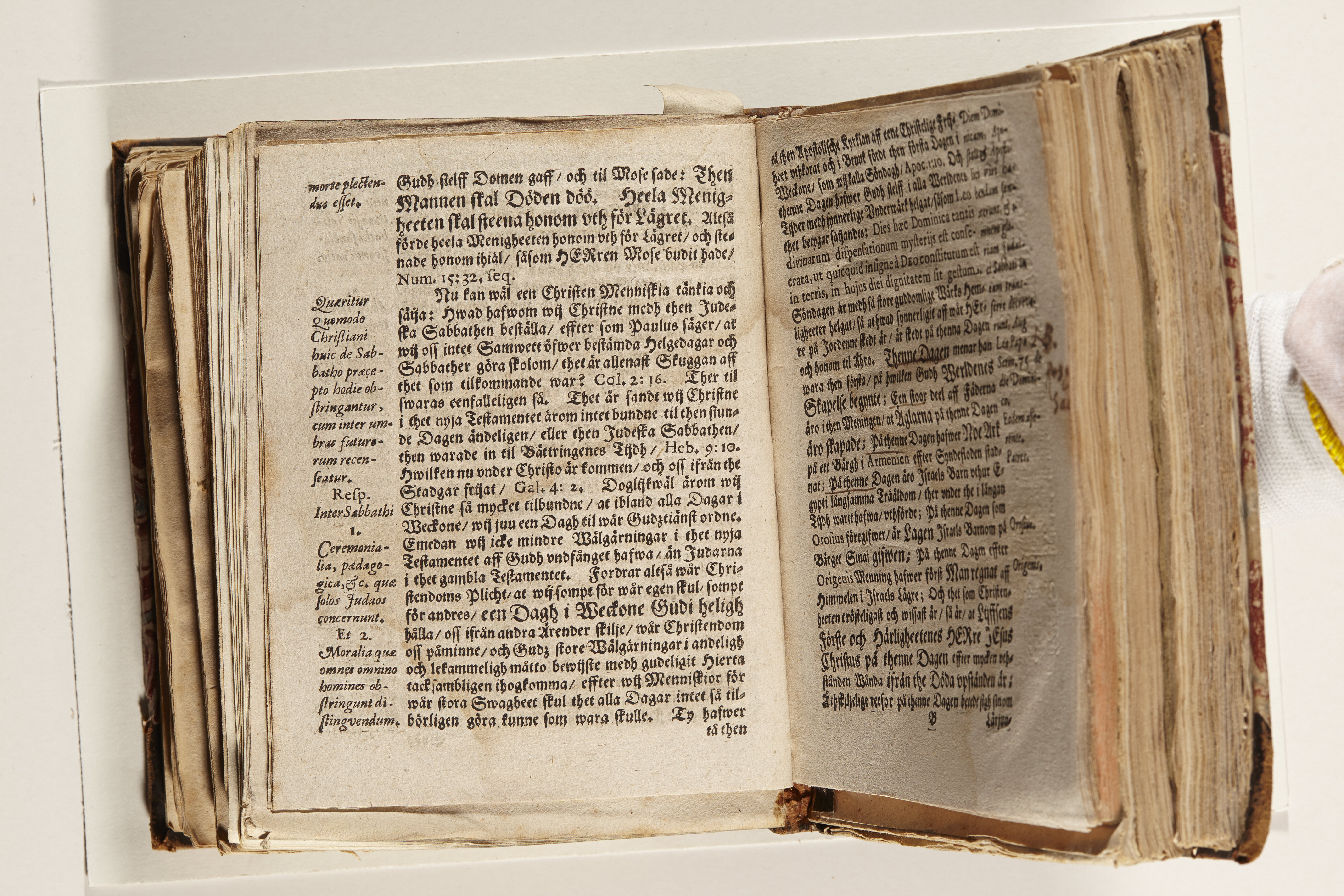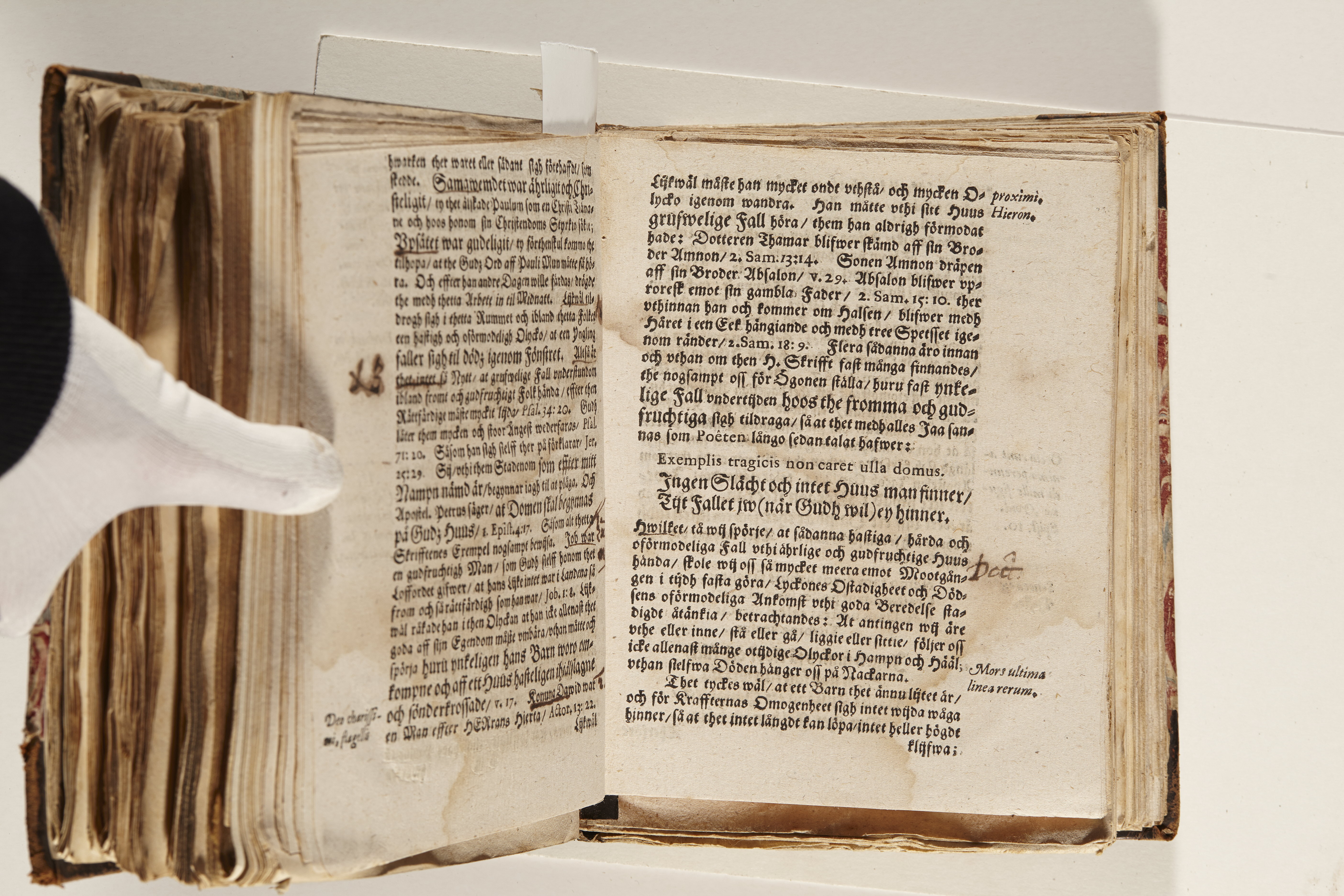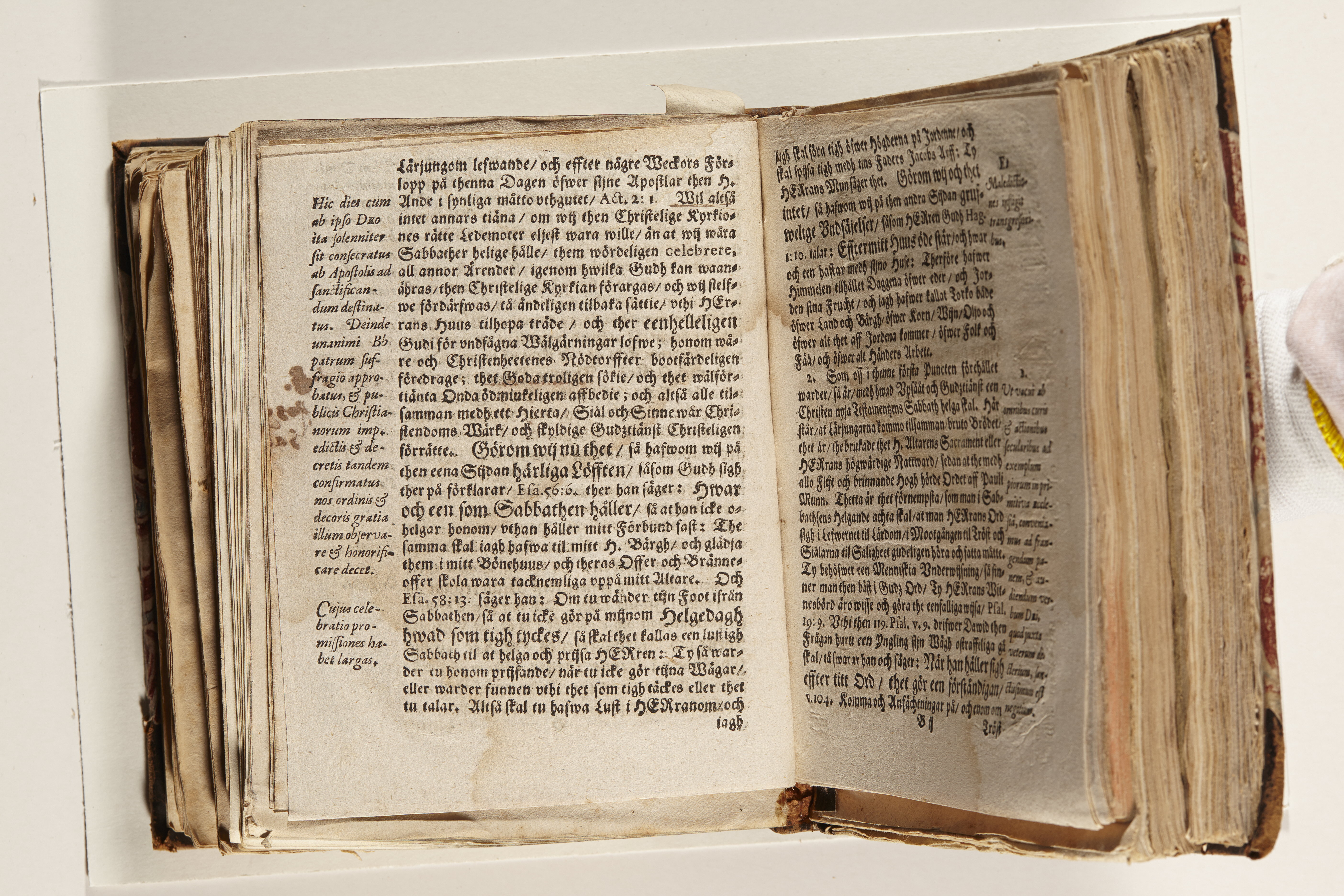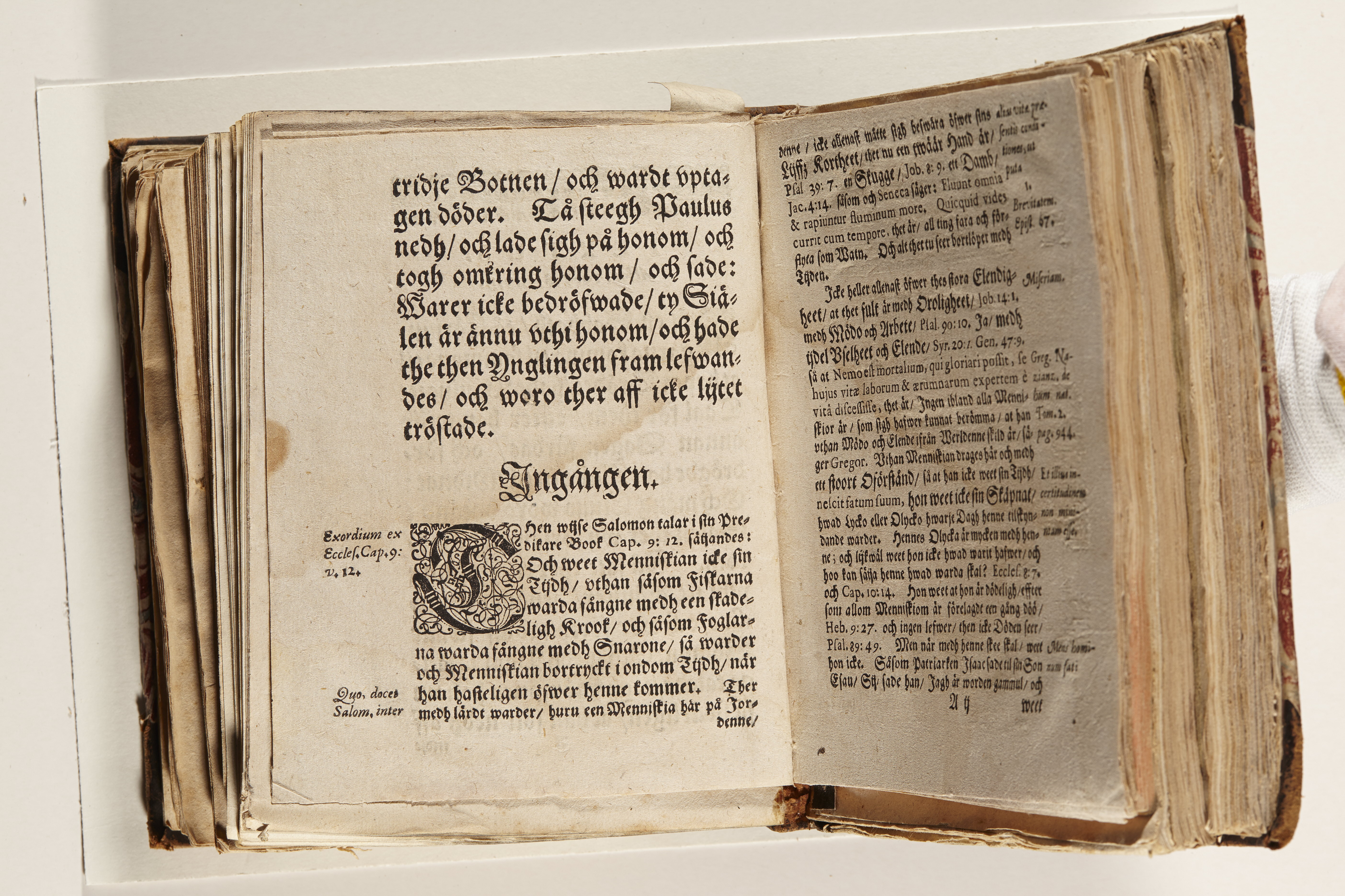 Band m. pärmar av marmorerat papper, rygg och hörn av kalvskinn. Pärmfyllnad: papp. Inlagan består av enskilda lunthäftade skrifter som tillsammans häftats på tre bind, fast rygg. Variationer i papperskvalitet och storlek. 23 skrifter samlade i en volym.