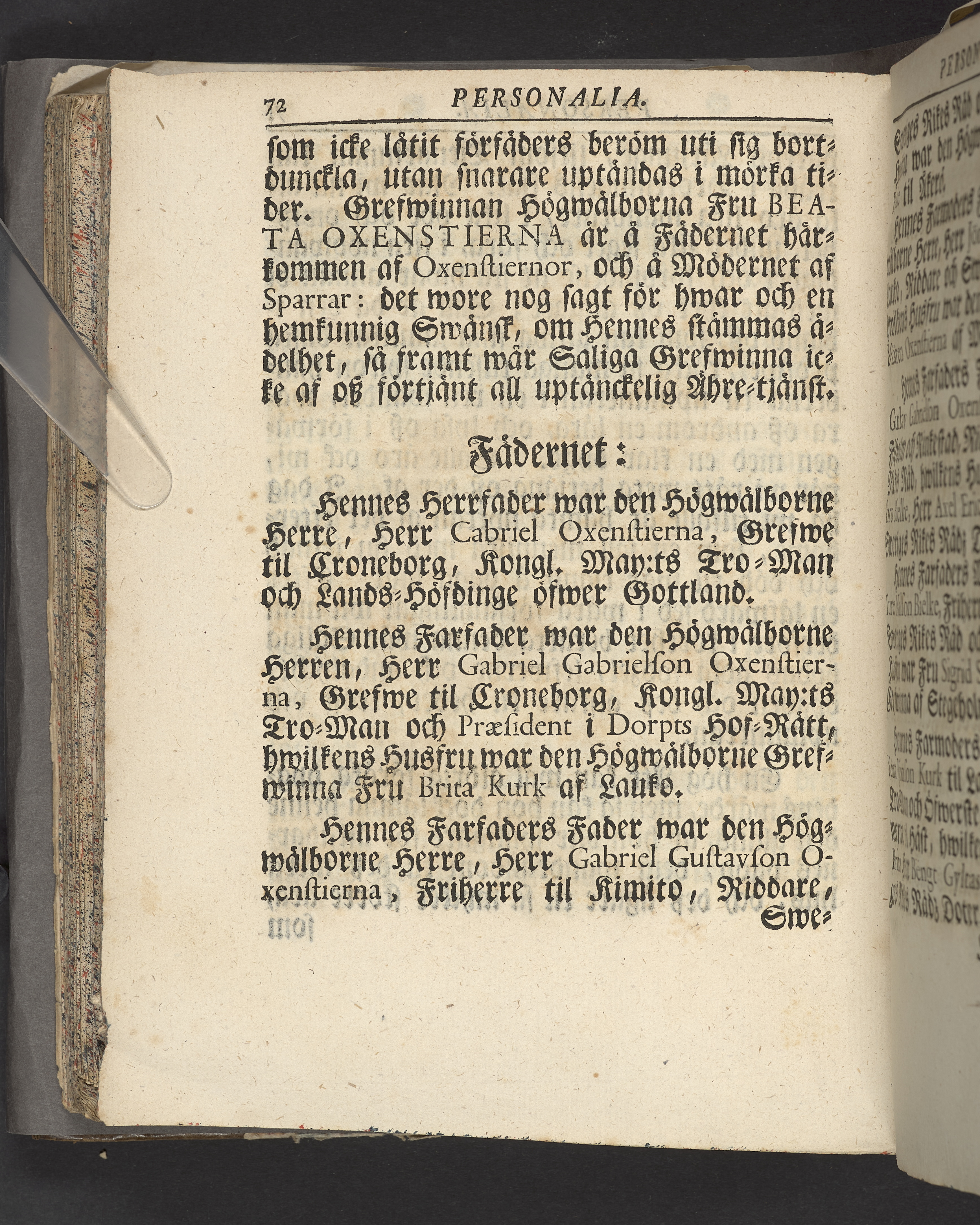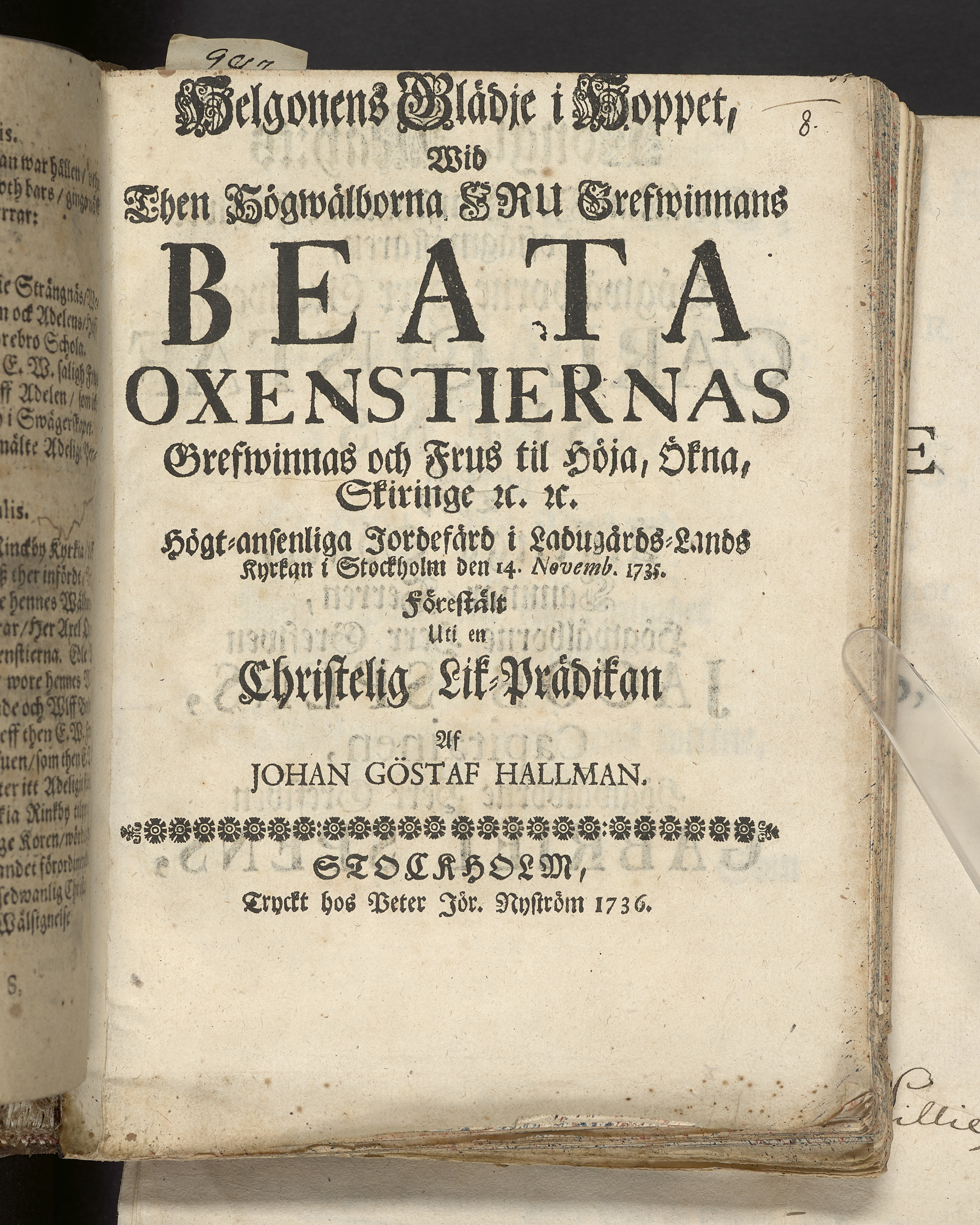Likpredikan över Beata Oxenstierna (1687-1735).
