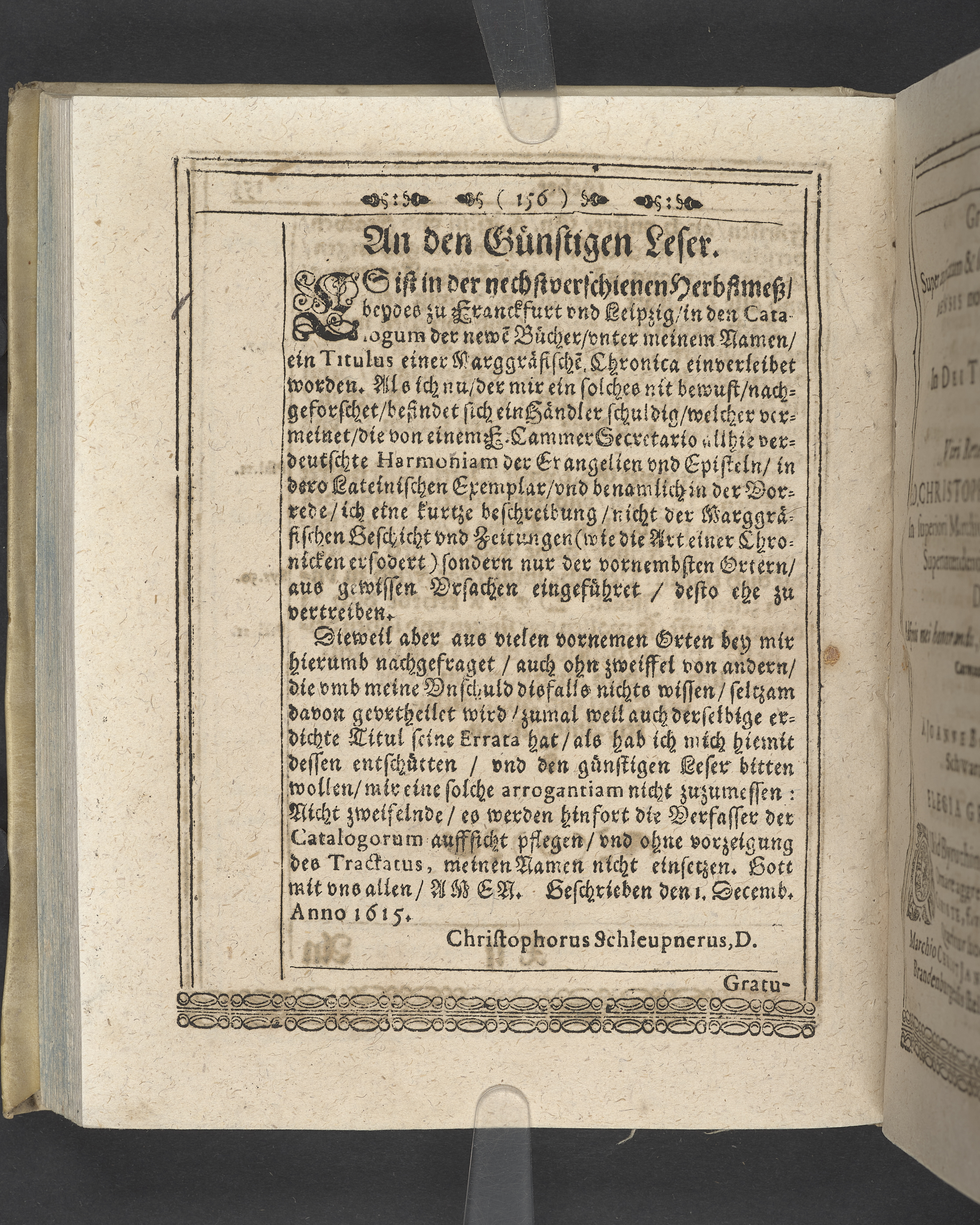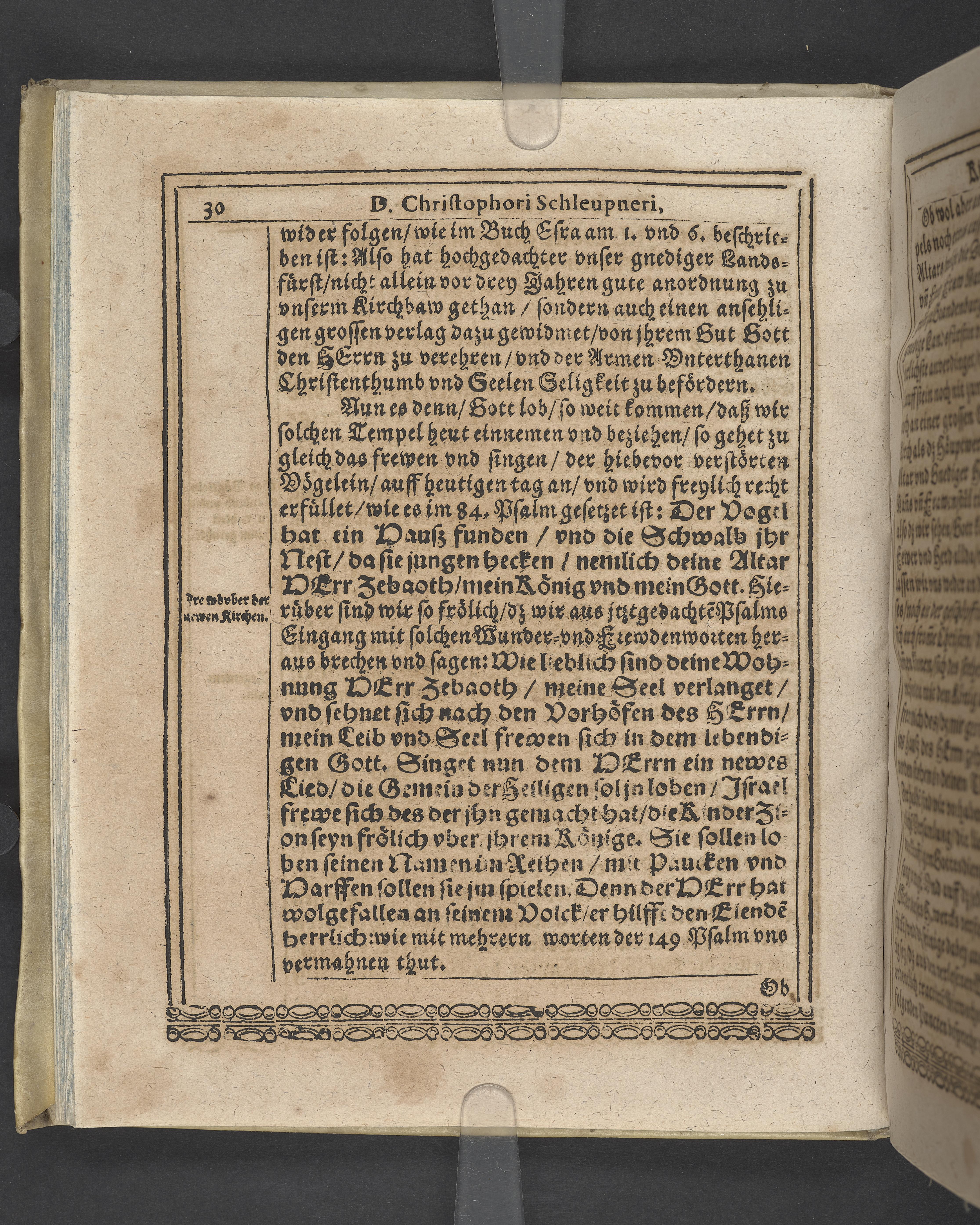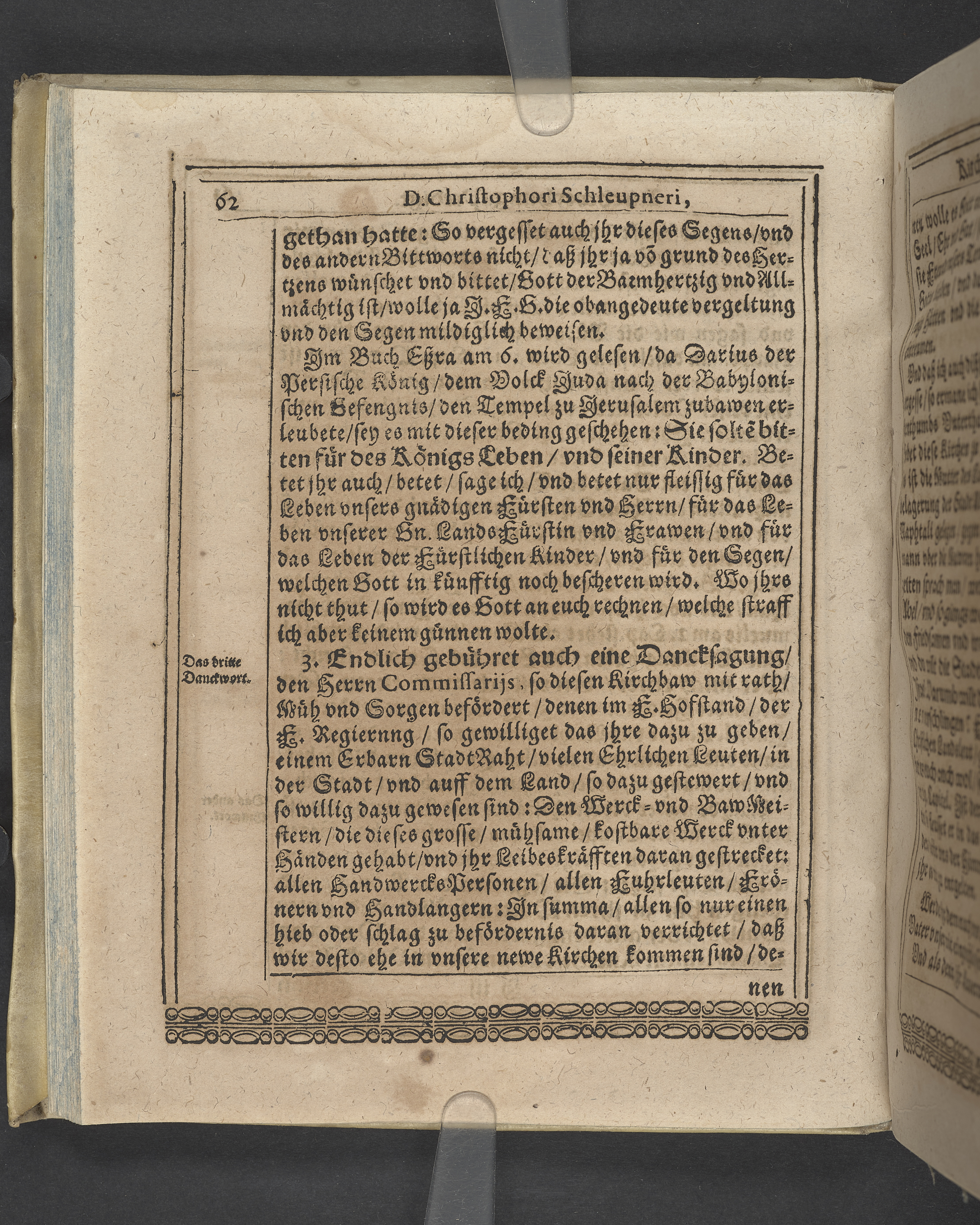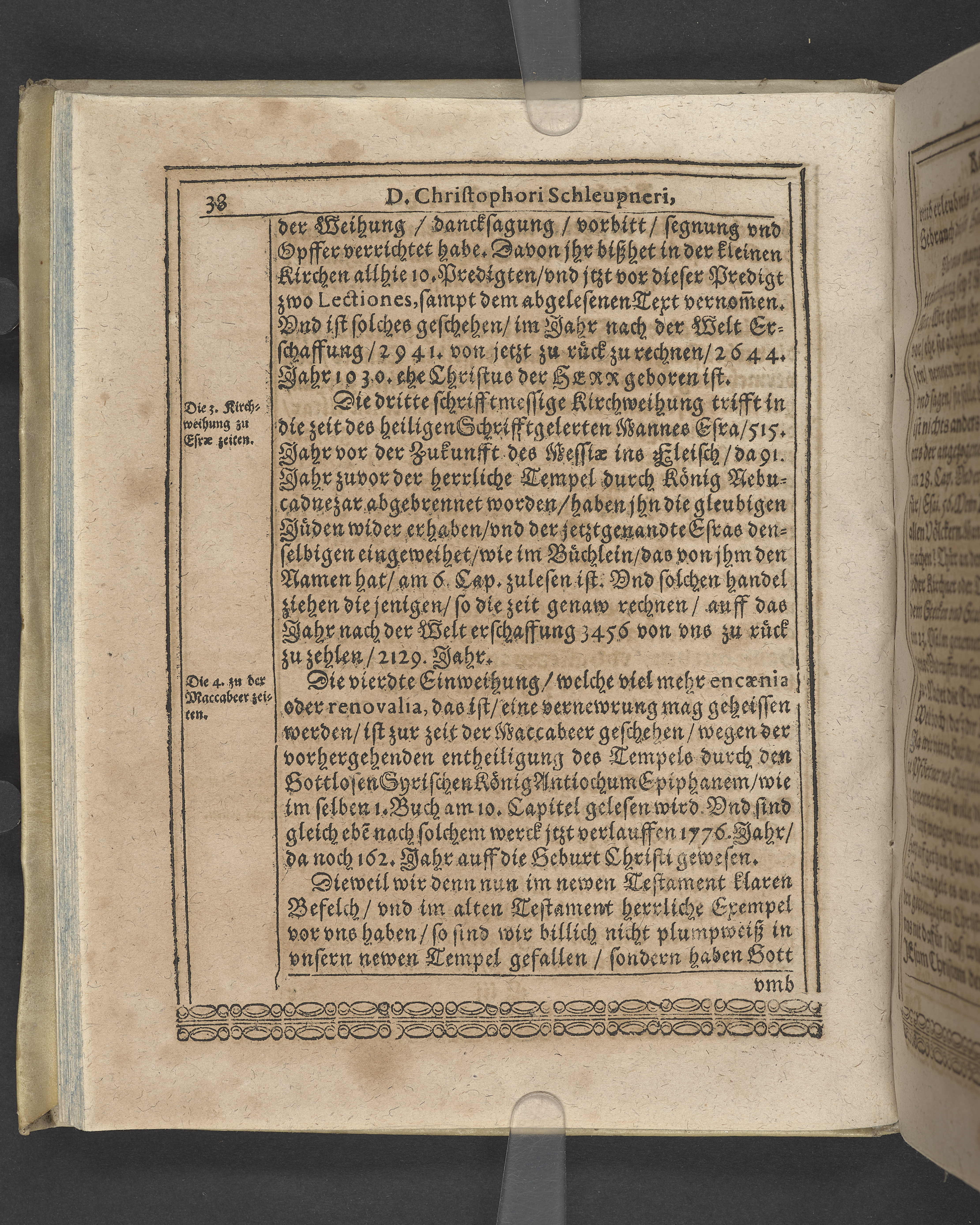 Unterschiedliche Predigten, bey beyderley Einweyhung der... newen Kirchen, und des schönen Altars zy Bayreuth... Durch Christophorum Schleupnerum... Sampt andern zweyen Predigten... durch Matthæum Chytræum... Auch M: Henricum Dain... Leipzig, in vorlegung Abraham Lambergs und Caspar Closemans anno MDCXVI. (Kolofon:) Typis Lambergianis, gedruckt durch Johann Glück...