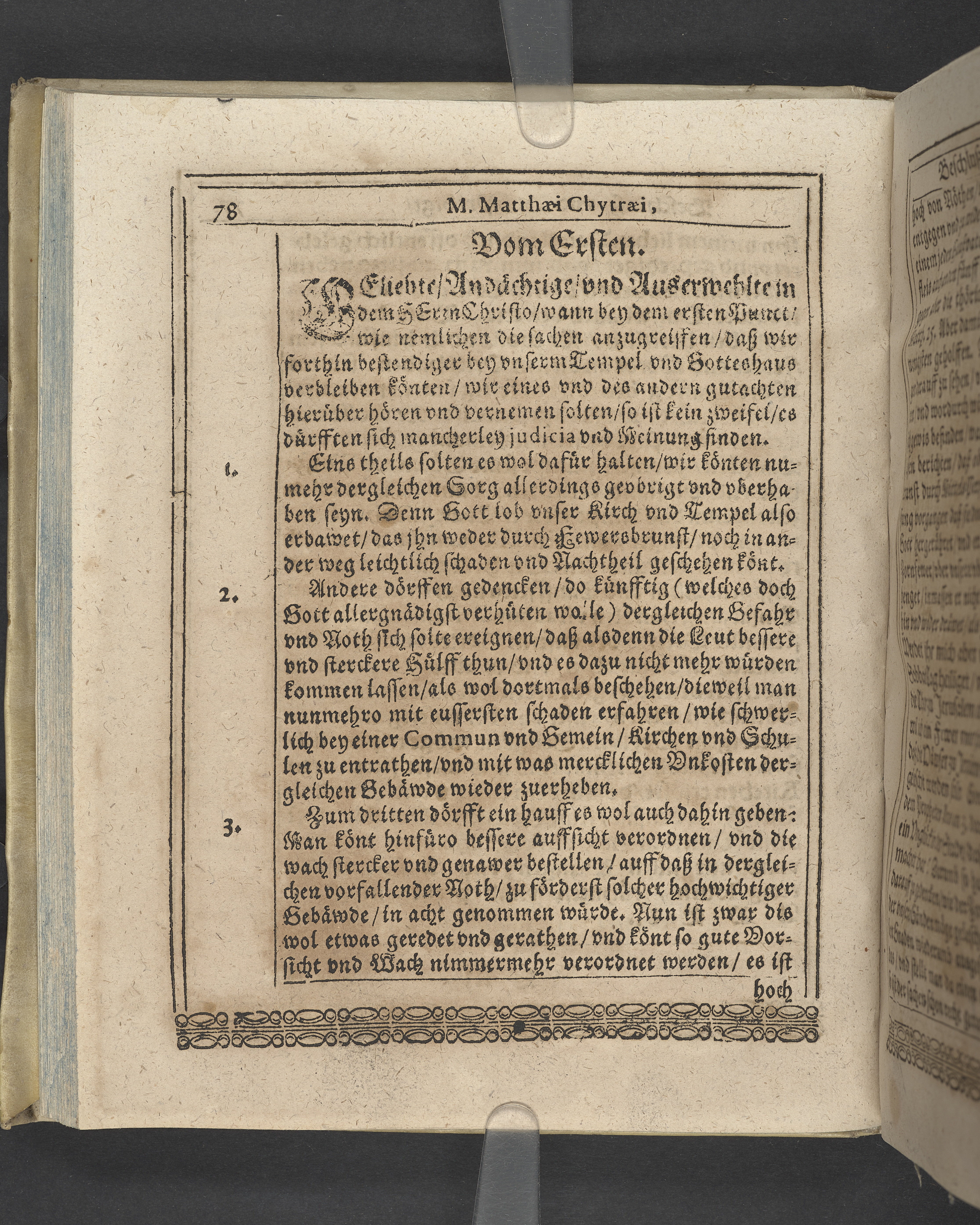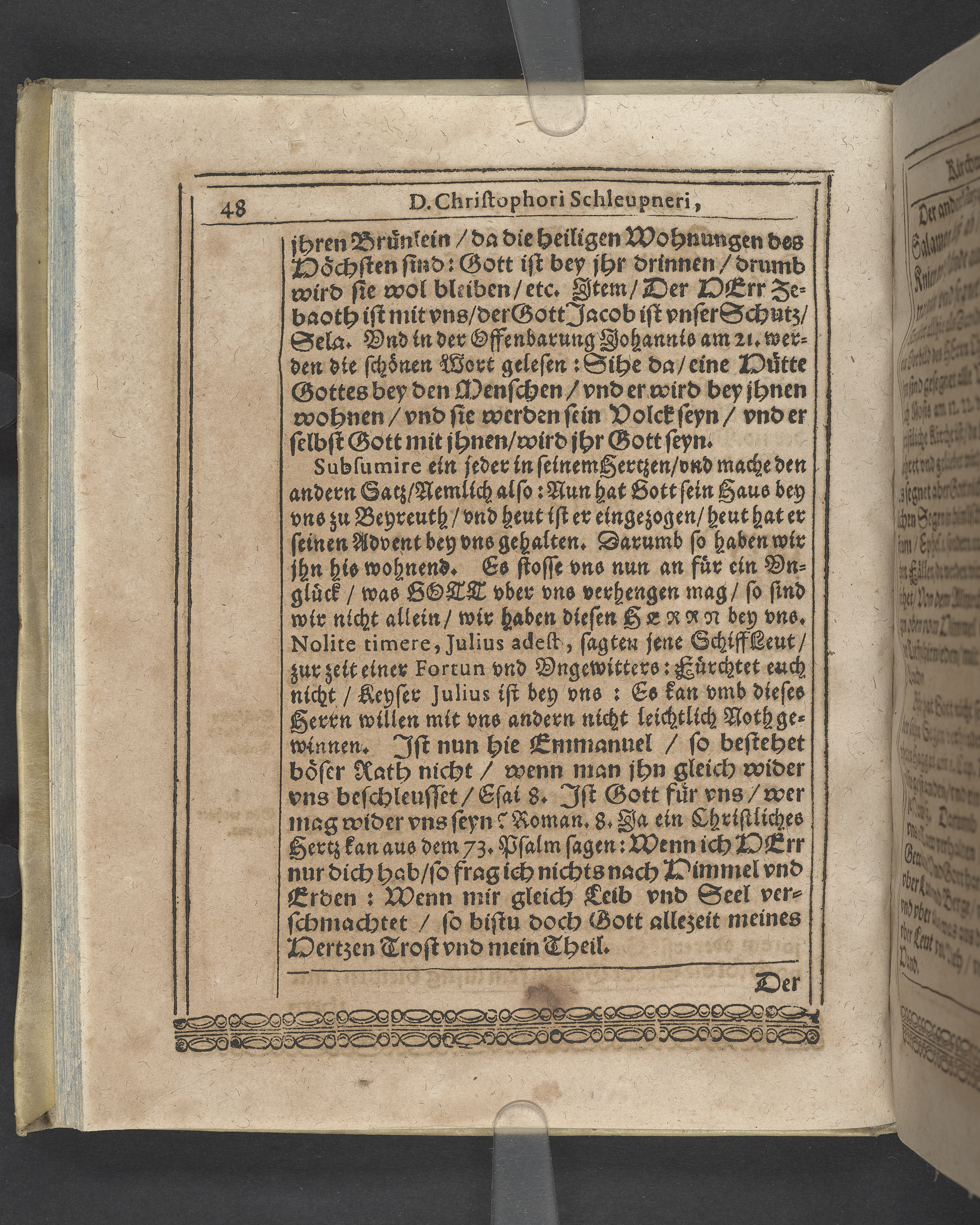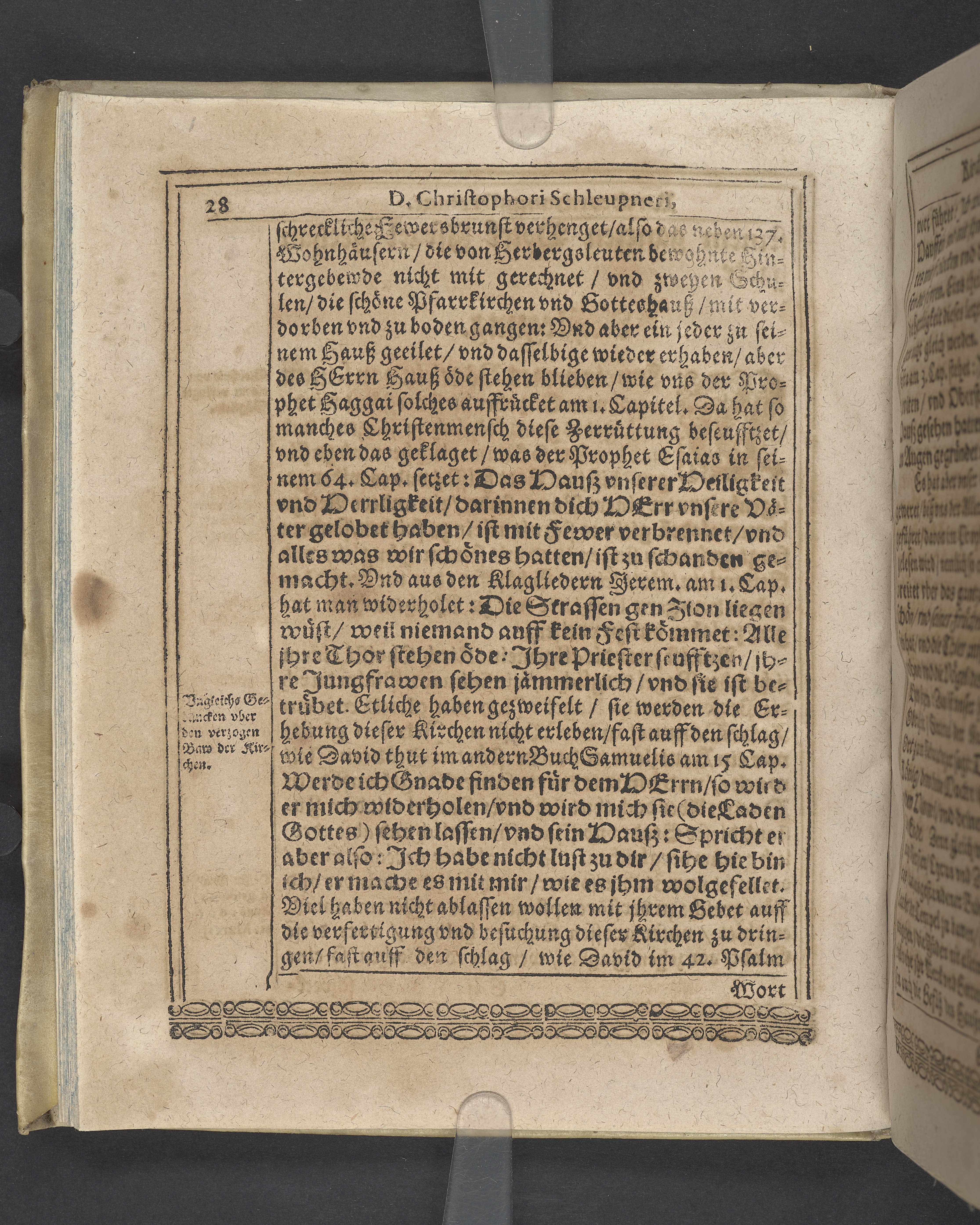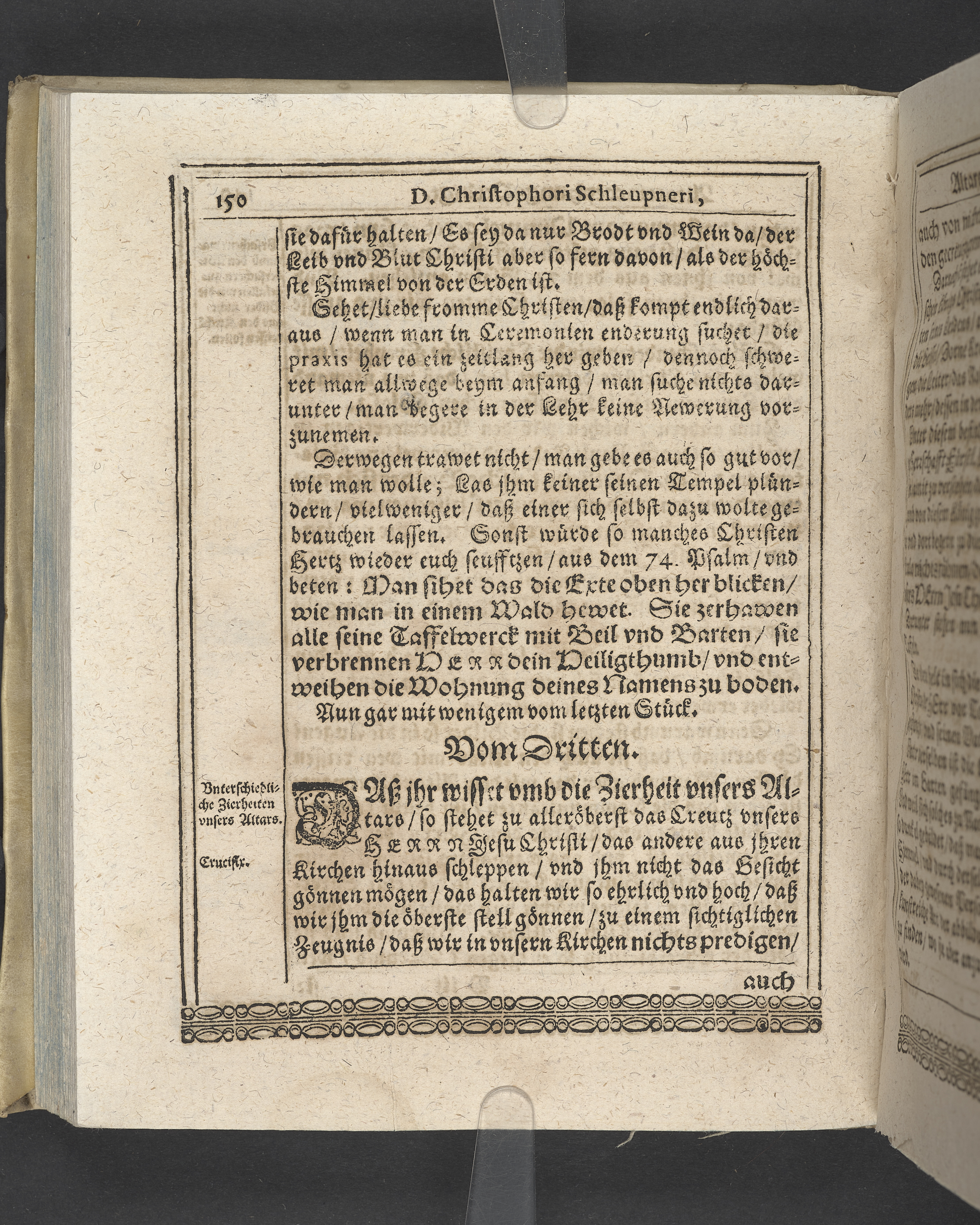Unterschiedliche Predigten, bey beyderley Einweyhung der... newen Kirchen, und des schönen Altars zy Bayreuth... Durch Christophorum Schleupnerum... Sampt andern zweyen Predigten... durch Matthæum Chytræum... Auch M: Henricum Dain... Leipzig, in vorlegung Abraham Lambergs und Caspar Closemans anno MDCXVI. (Kolofon:) Typis Lambergianis, gedruckt durch Johann Glück...