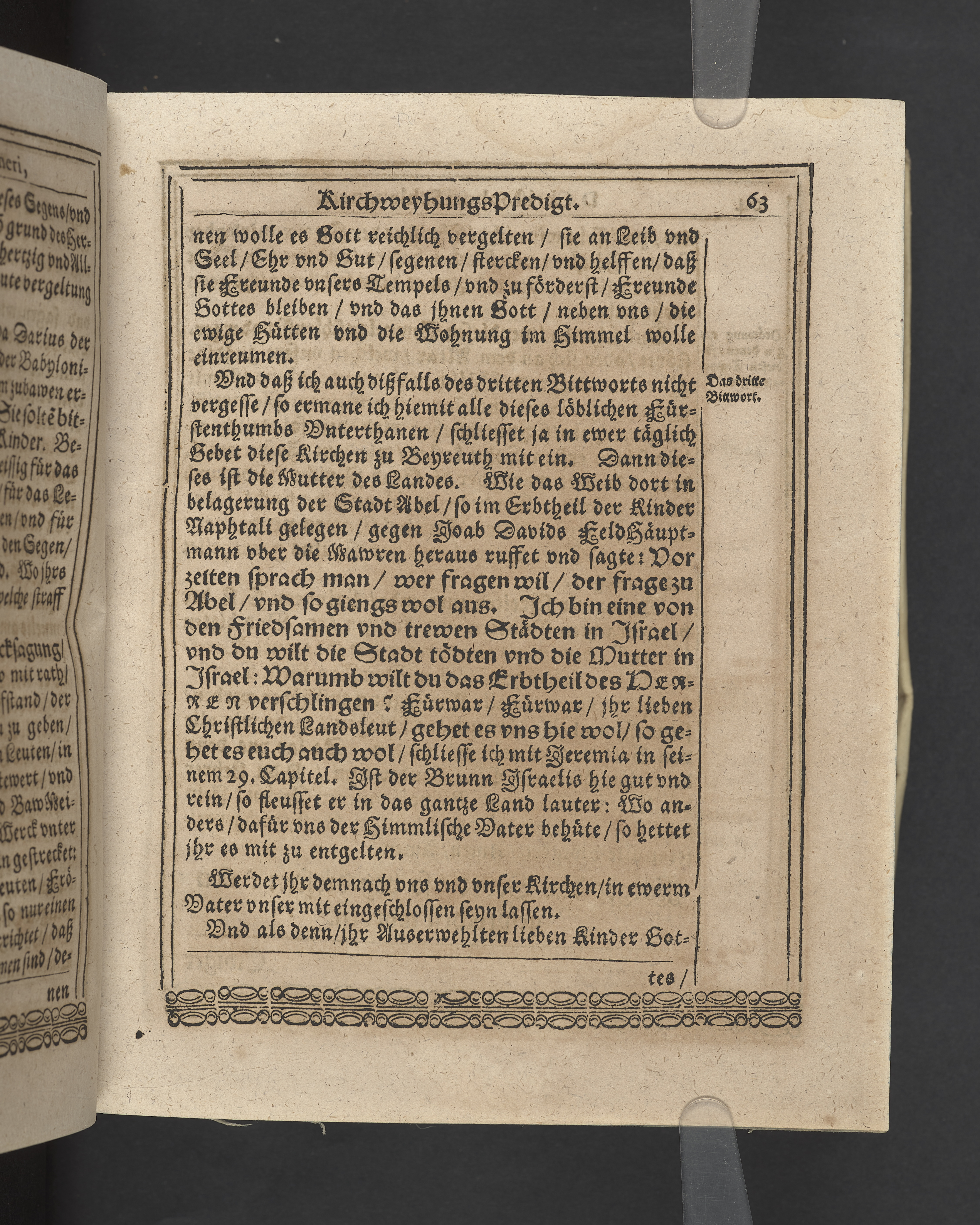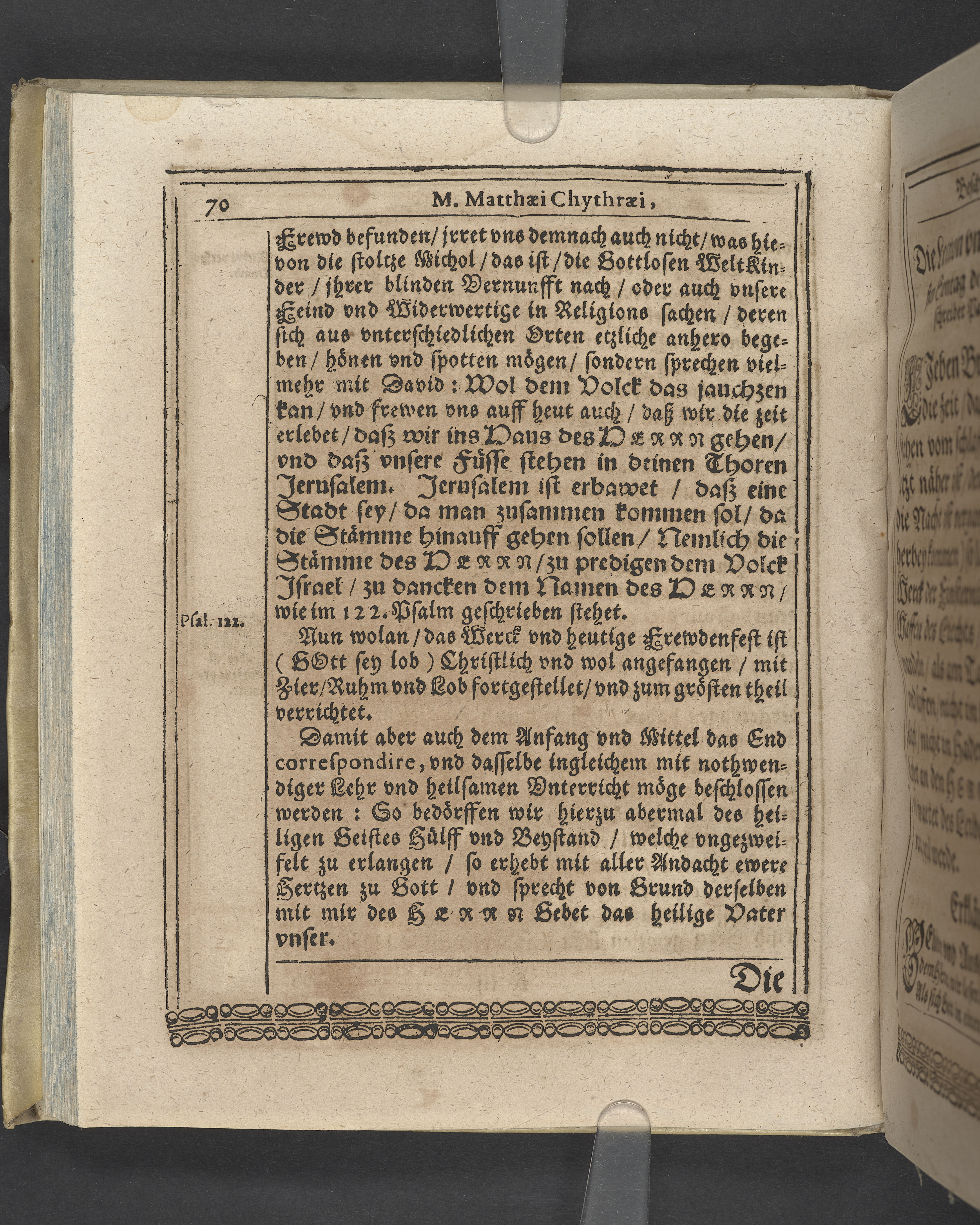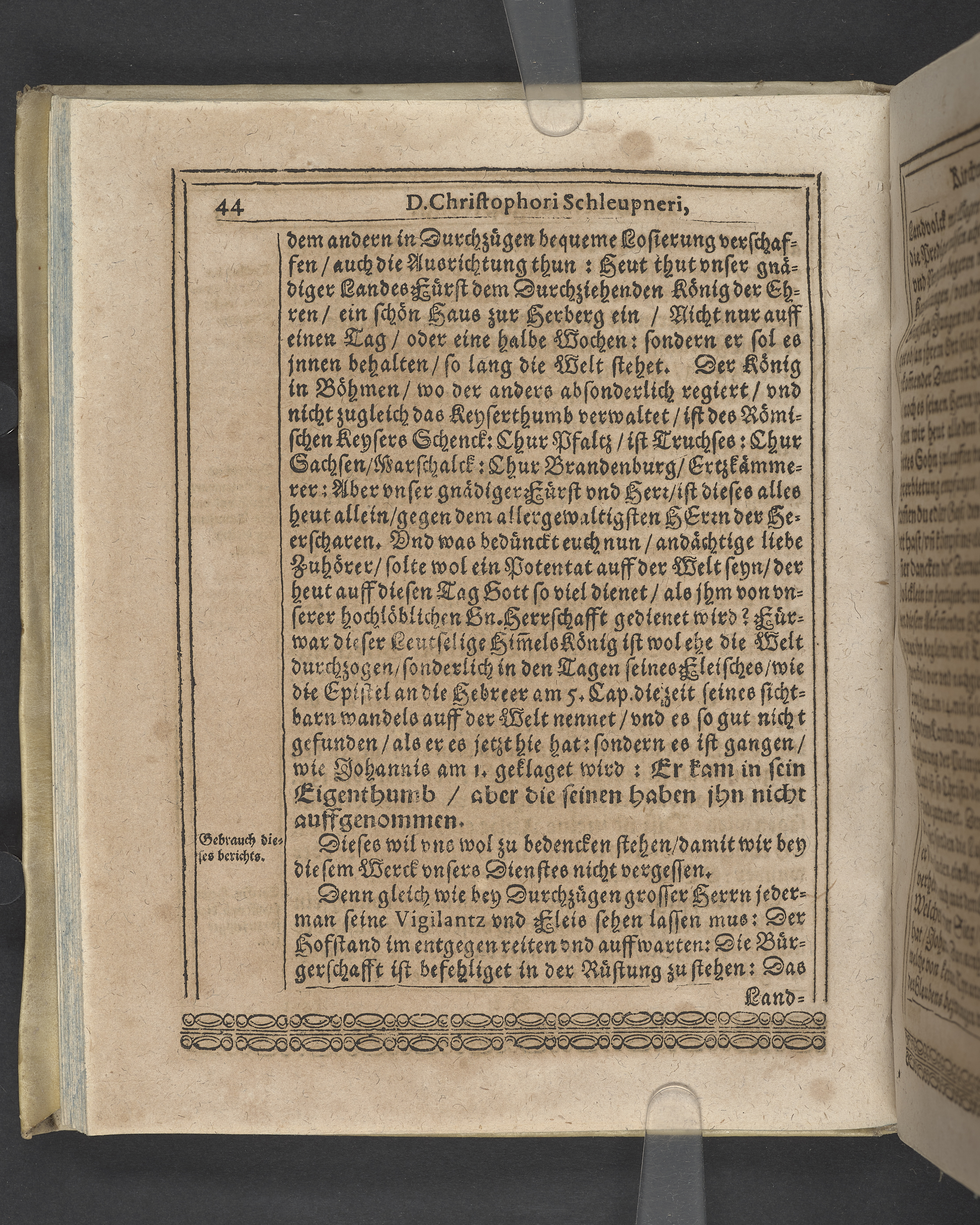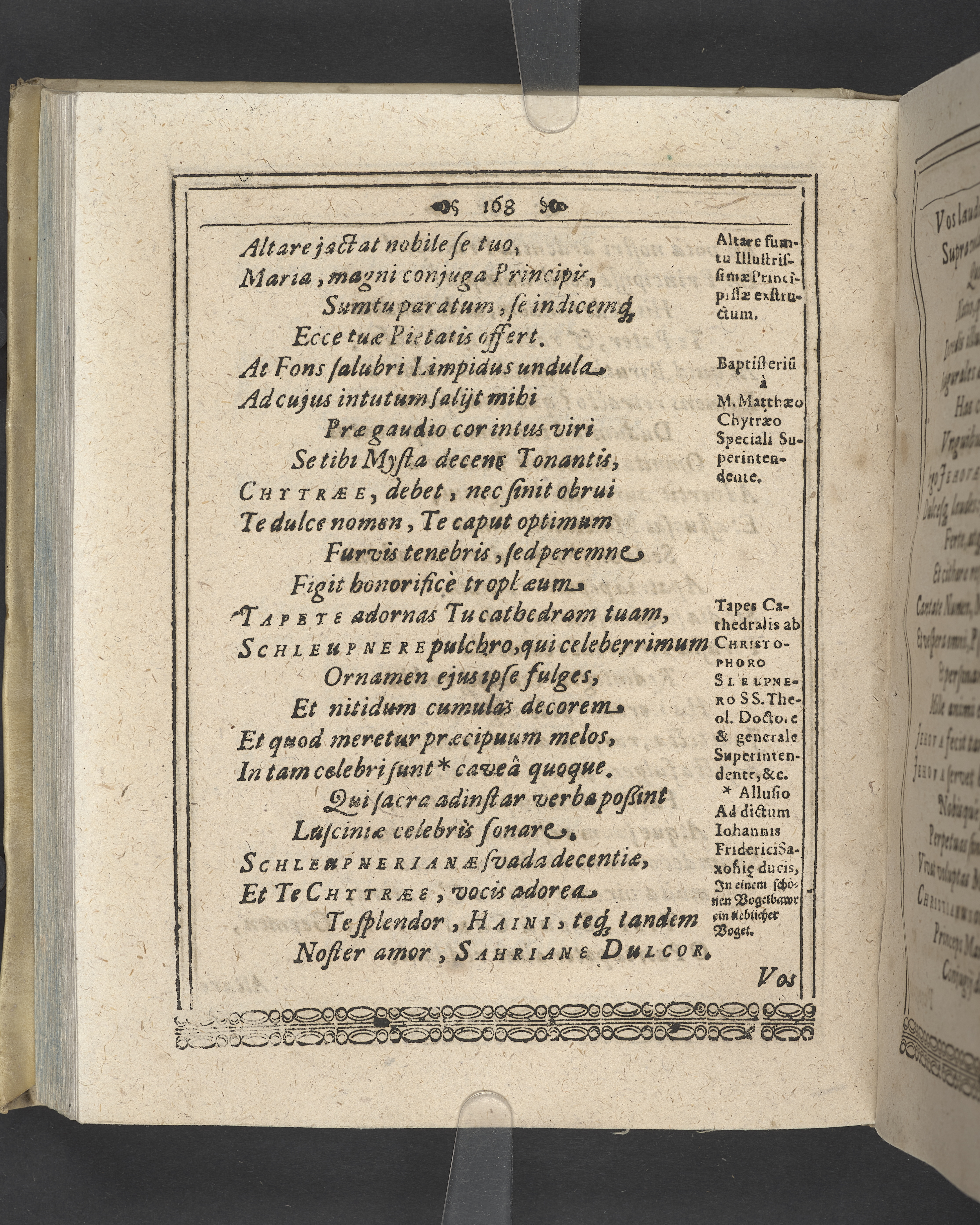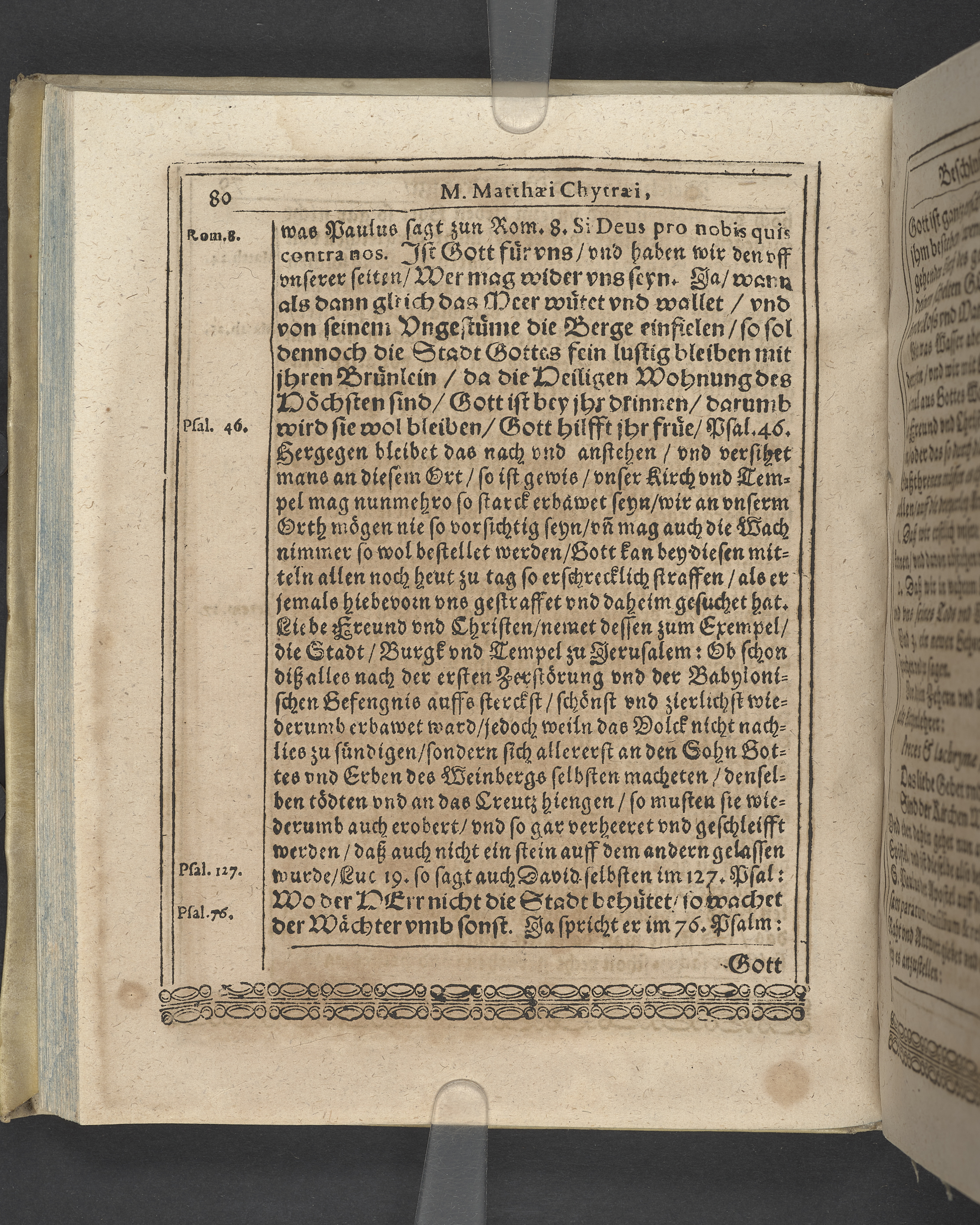 Unterschiedliche Predigten, bey beyderley Einweyhung der... newen Kirchen, und des schönen Altars zy Bayreuth... Durch Christophorum Schleupnerum... Sampt andern zweyen Predigten... durch Matthæum Chytræum... Auch M: Henricum Dain... Leipzig, in vorlegung Abraham Lambergs und Caspar Closemans anno MDCXVI. (Kolofon:) Typis Lambergianis, gedruckt durch Johann Glück...