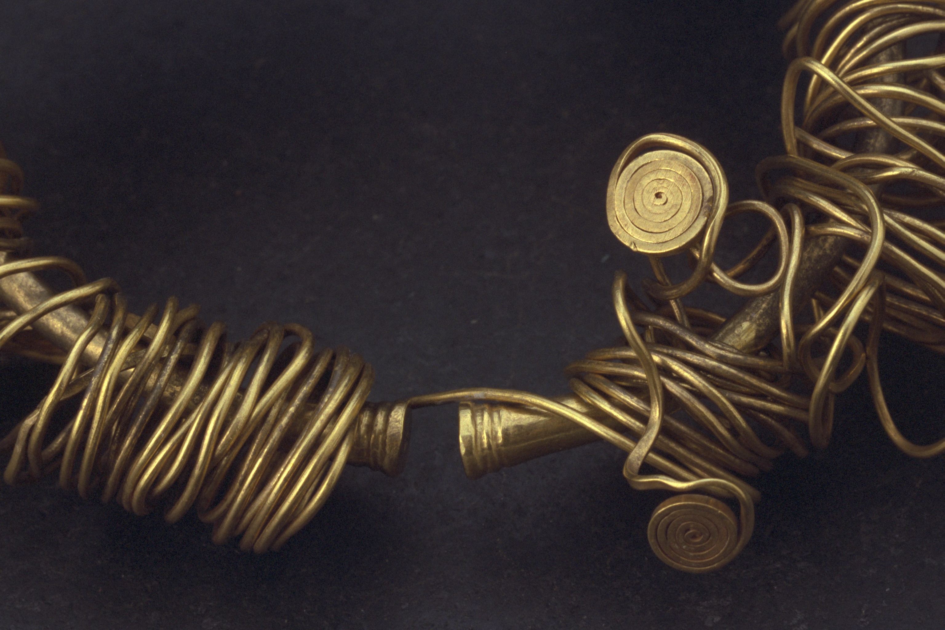 Slät med fem påträdda spiraler av guldtråd. M per III.