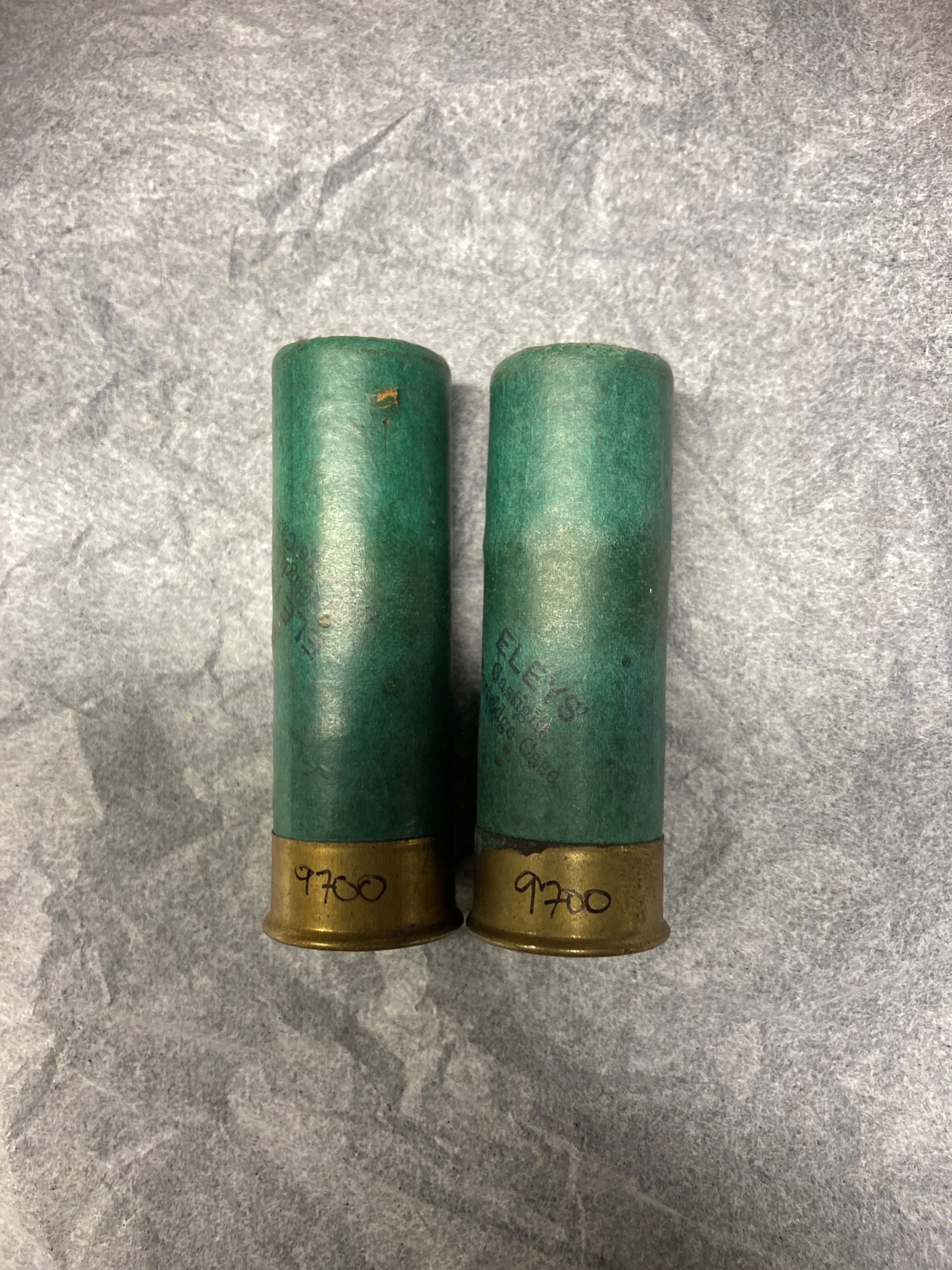 Hagelpatron kaliber 12, hagel nr 7, 3 st, Eley Bros LTd London, jfr nr 9695-9698.