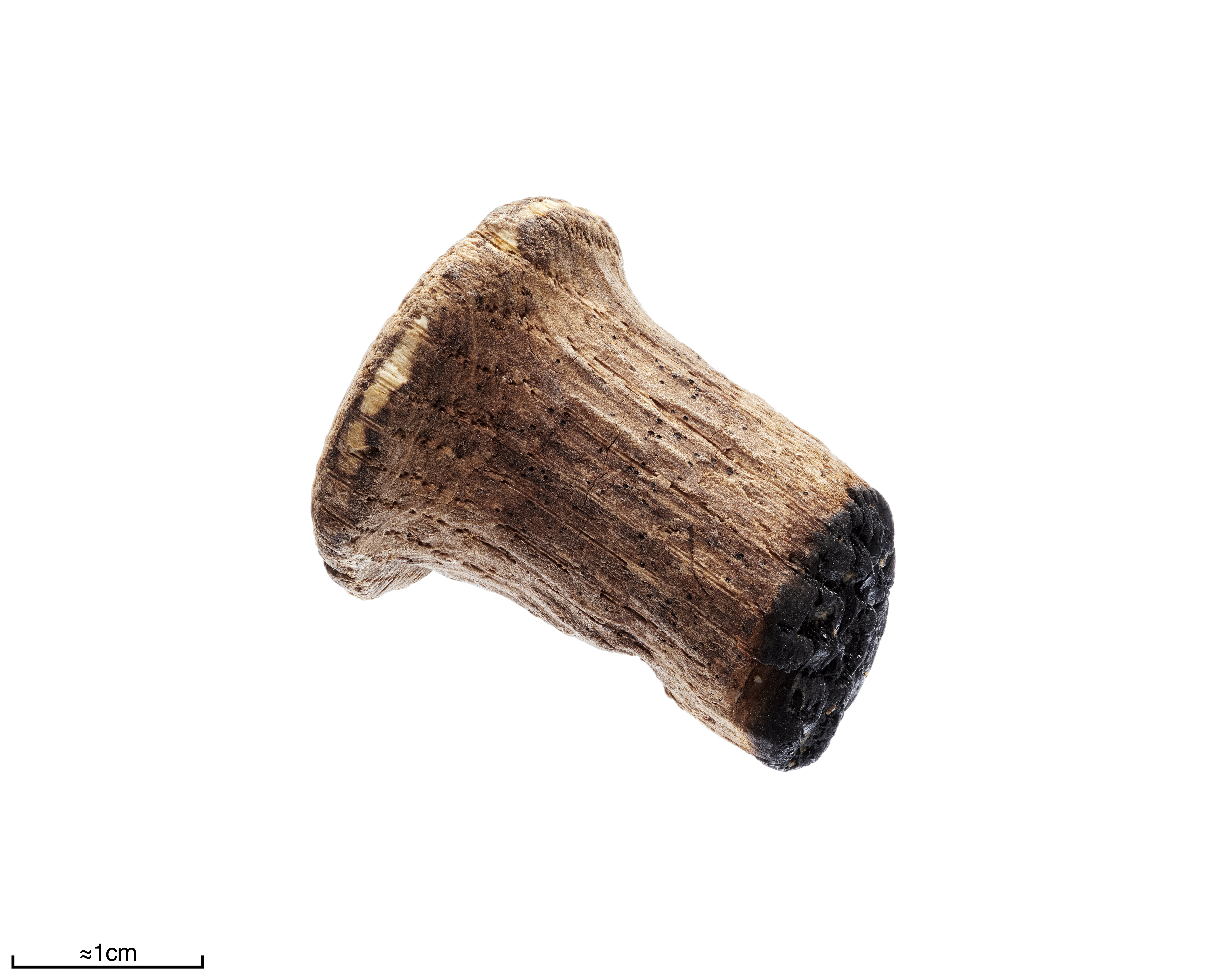 Tränagel med snidat runt huvud bränd i en ände.