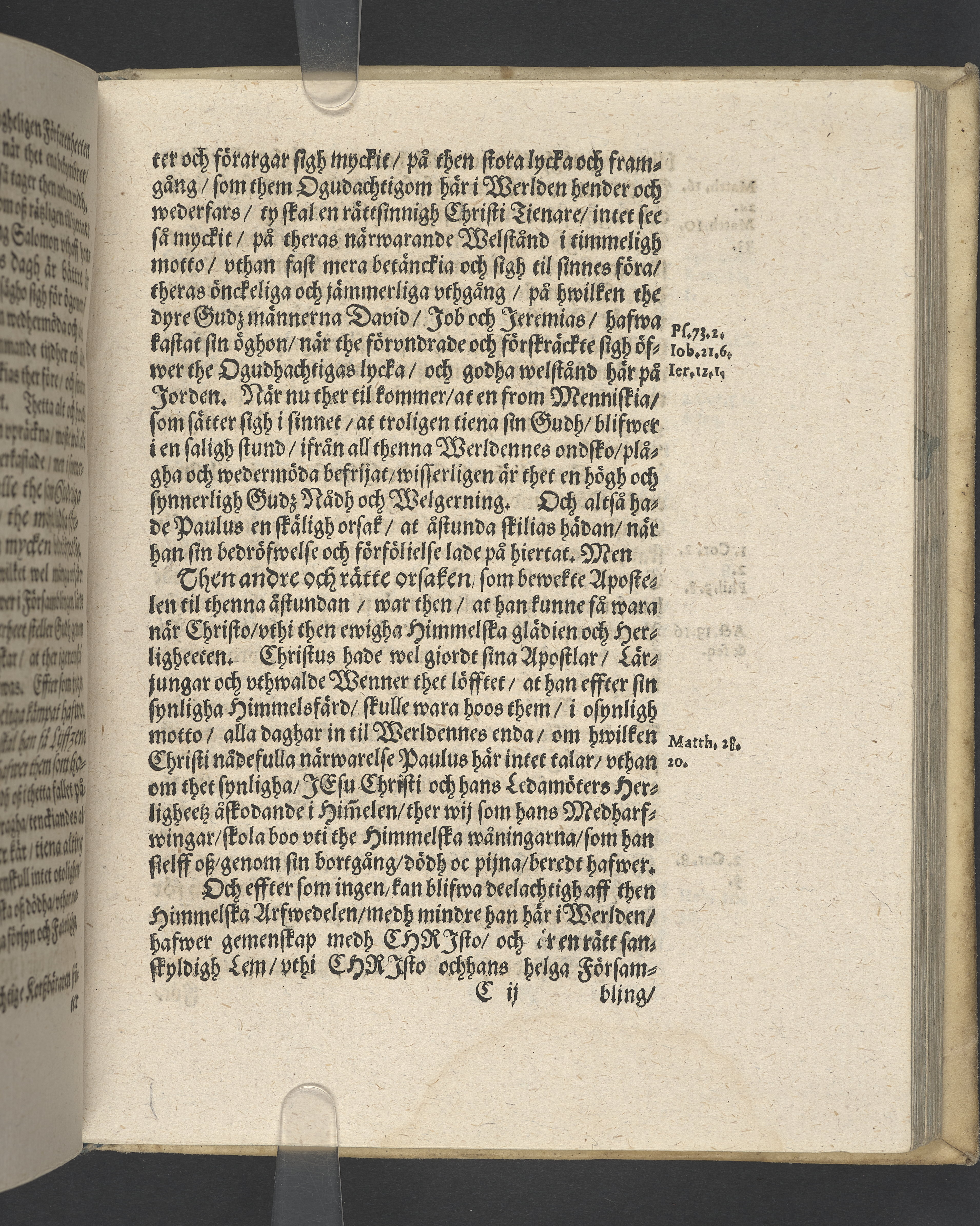 Pergamentband. Pärmfyllnad: papp. Blått snitt.