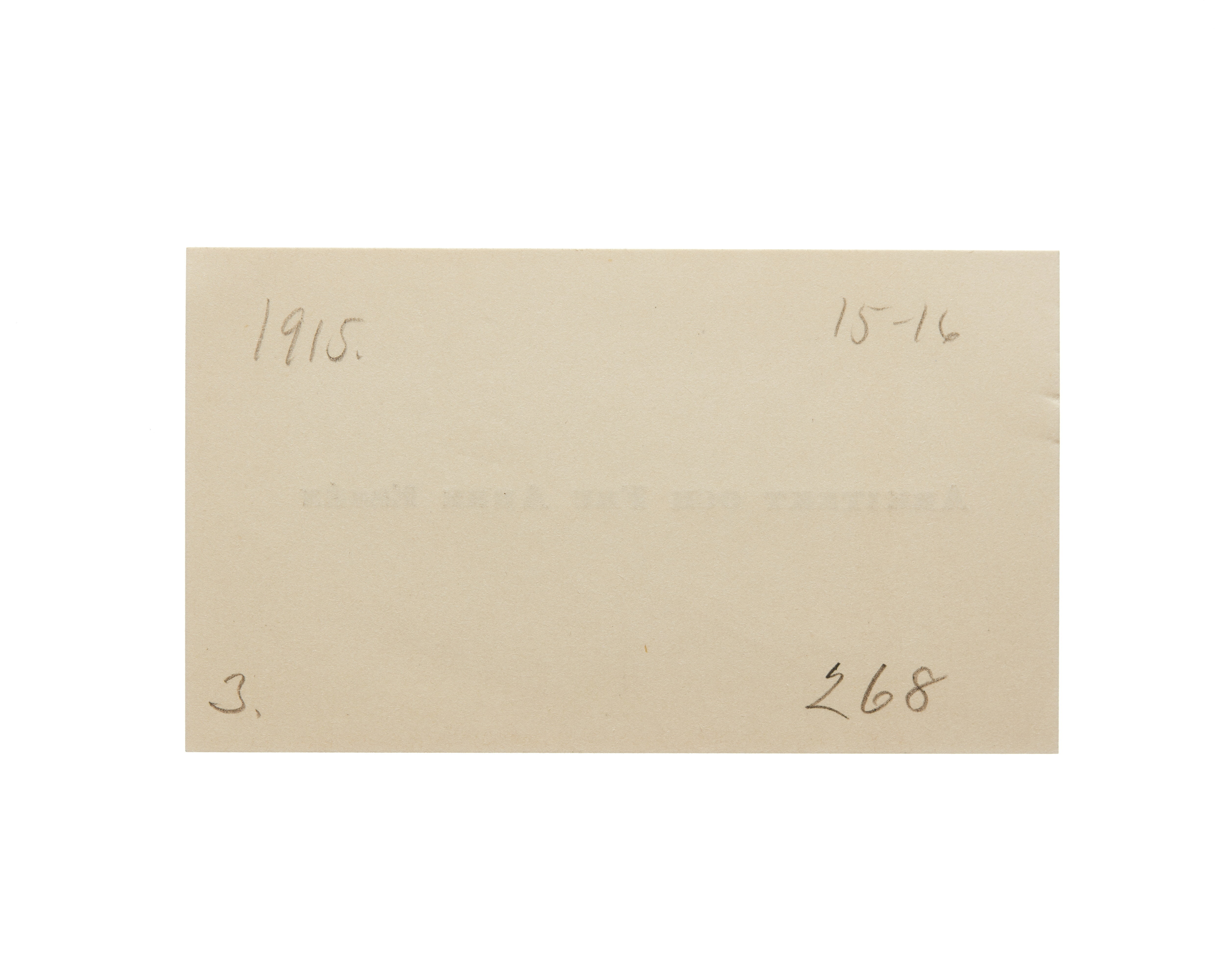 Femton visitkort från Arkitekt Arre Essén och Fru Essén. Första kortet är utan datum. Andra kortet är utan datum, vikt i övre vänstra hörnet. Tredje kortet daterat 1915. Fjärde kortet daterat 1916 samt sorgkant. Femte kortet daterat 1917, vikt i övre vänstra hörnet. Sjätte kortet daterat 1919. Sjunde kortet daterat 1921. Åttonde kortet daterat 1921. Handskrift (nedanför namnet) "Med djupaste deltagande". Nionde kortet daterat 1922. Tionde kortet daterat 1923. Elfte kortet daterat 1924. Tolfte kortet daterat 1926. Trettonde kortet daterat 1925. Fjortonde kortet daterat 1928. Femtonde kortet daterat 1929 samt sorgkant.