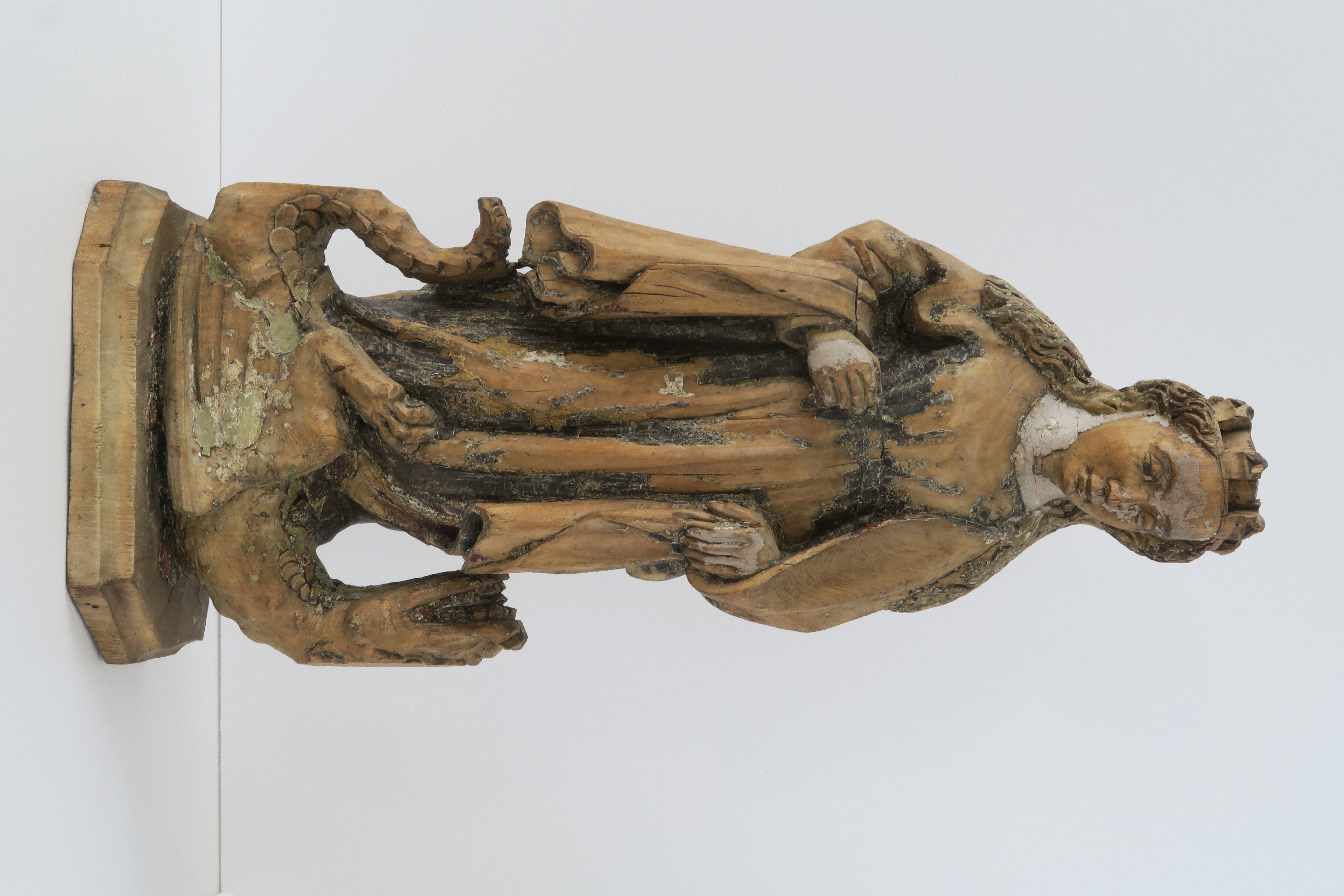 Skulptur av den heliga Margareta med en drake vid sina fötter.