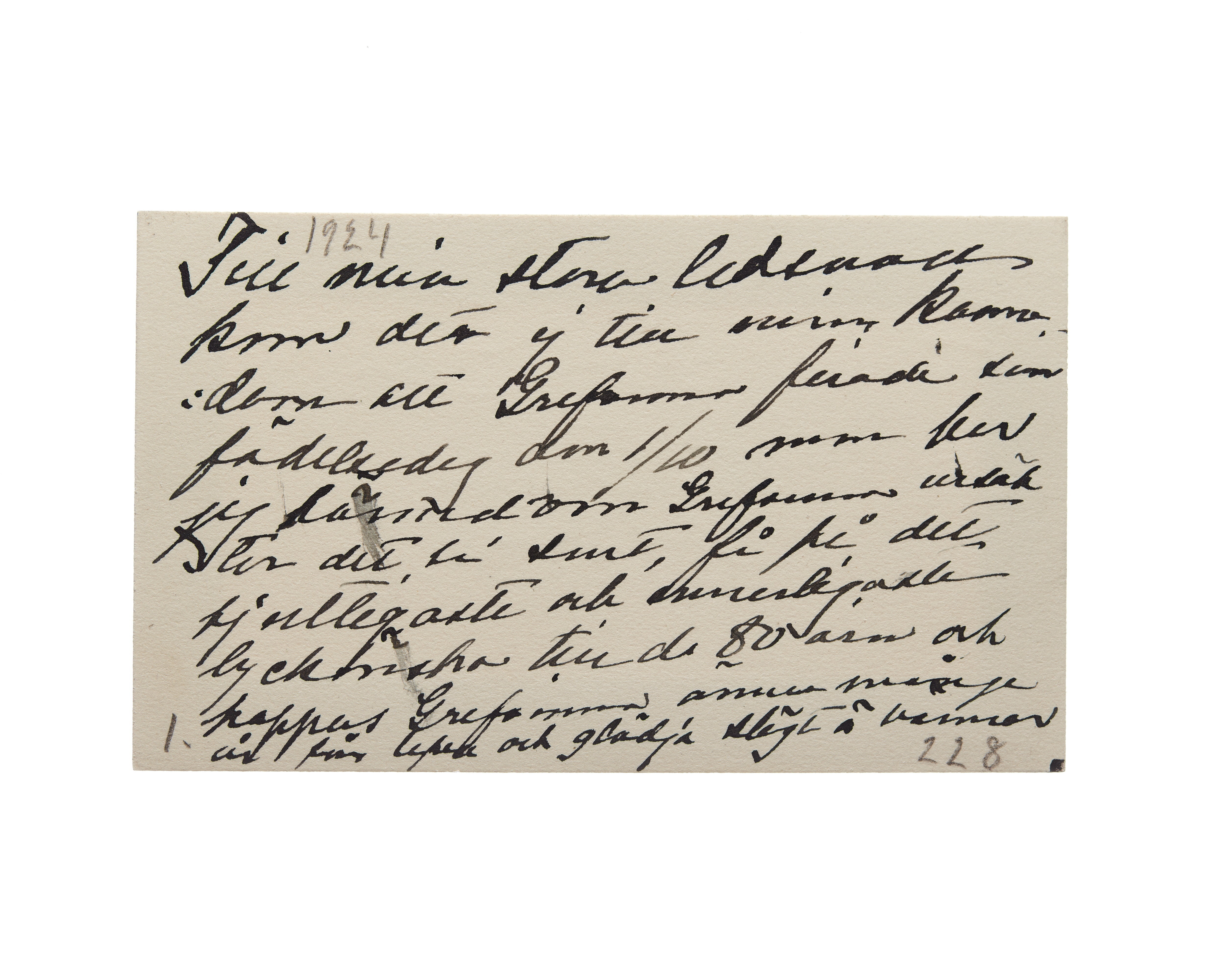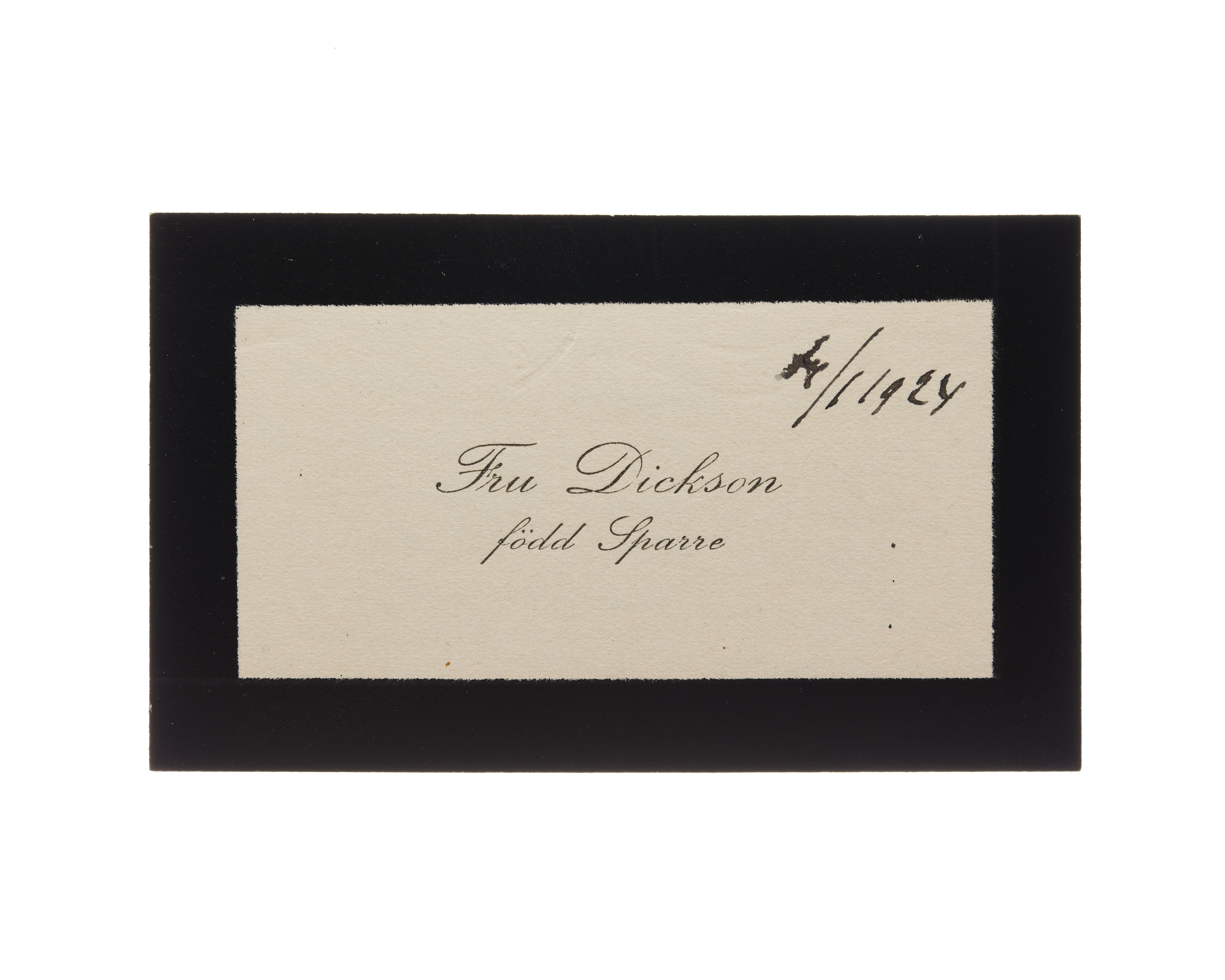 Ett visit kort från Fru Sigrid Dickson f. Sparre, daterat 1924 samt sorgkant. Handskrift ".....".