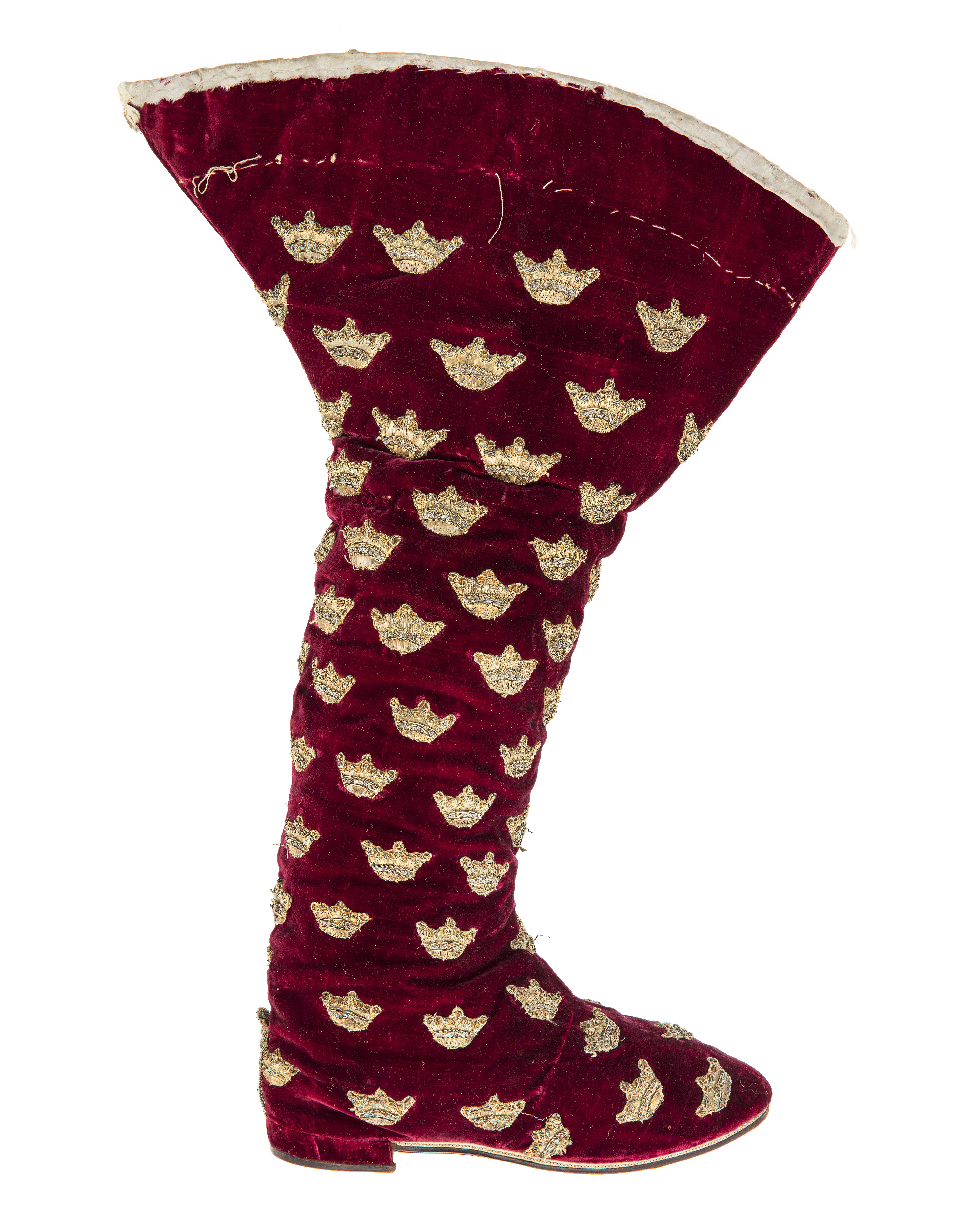 Stövel använd vid Karl XIII:s kröning 29 juni 1809.