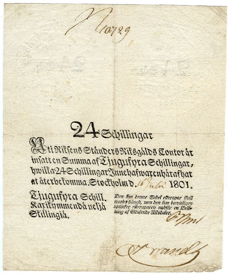 Riksens Ständers Riksgälds Contor - 24 schillingar riksgälds