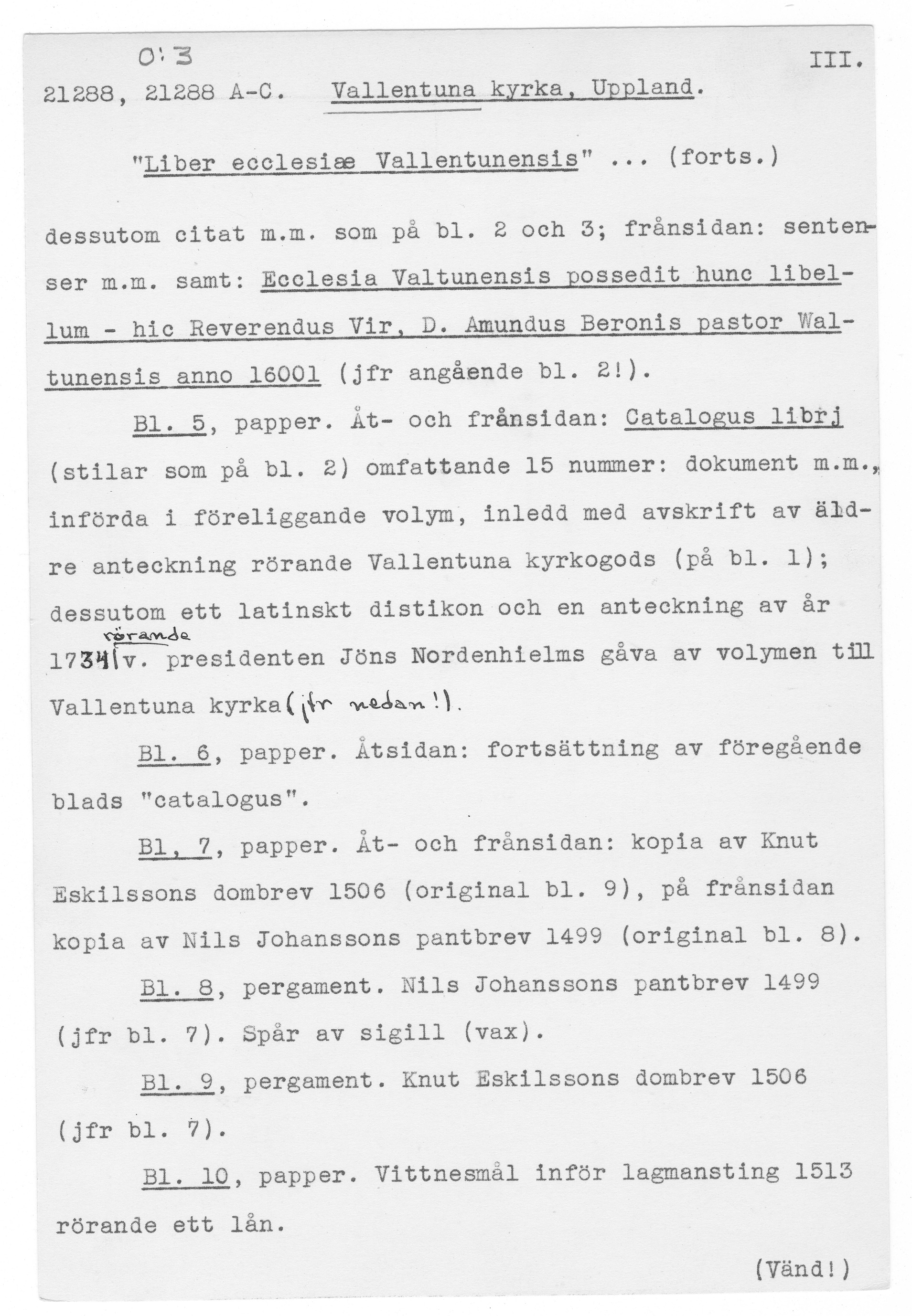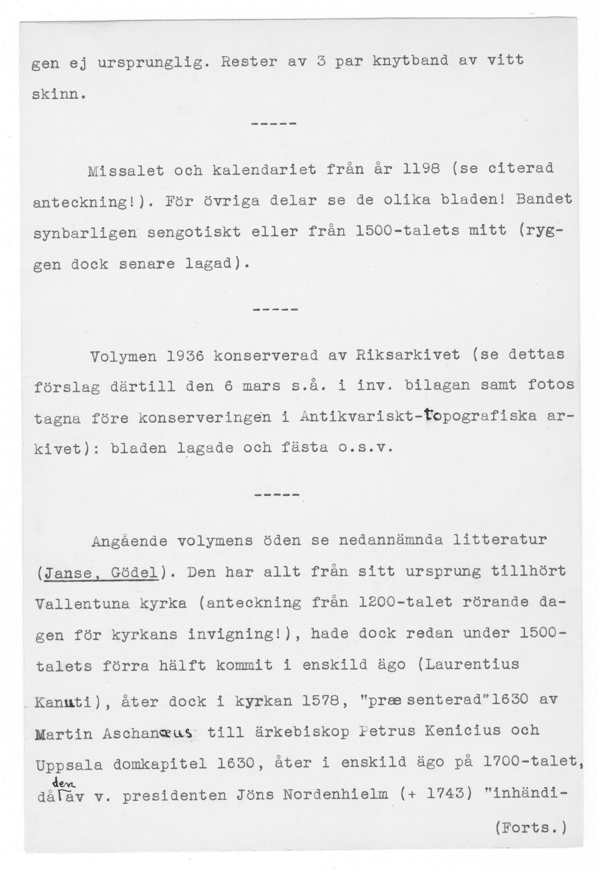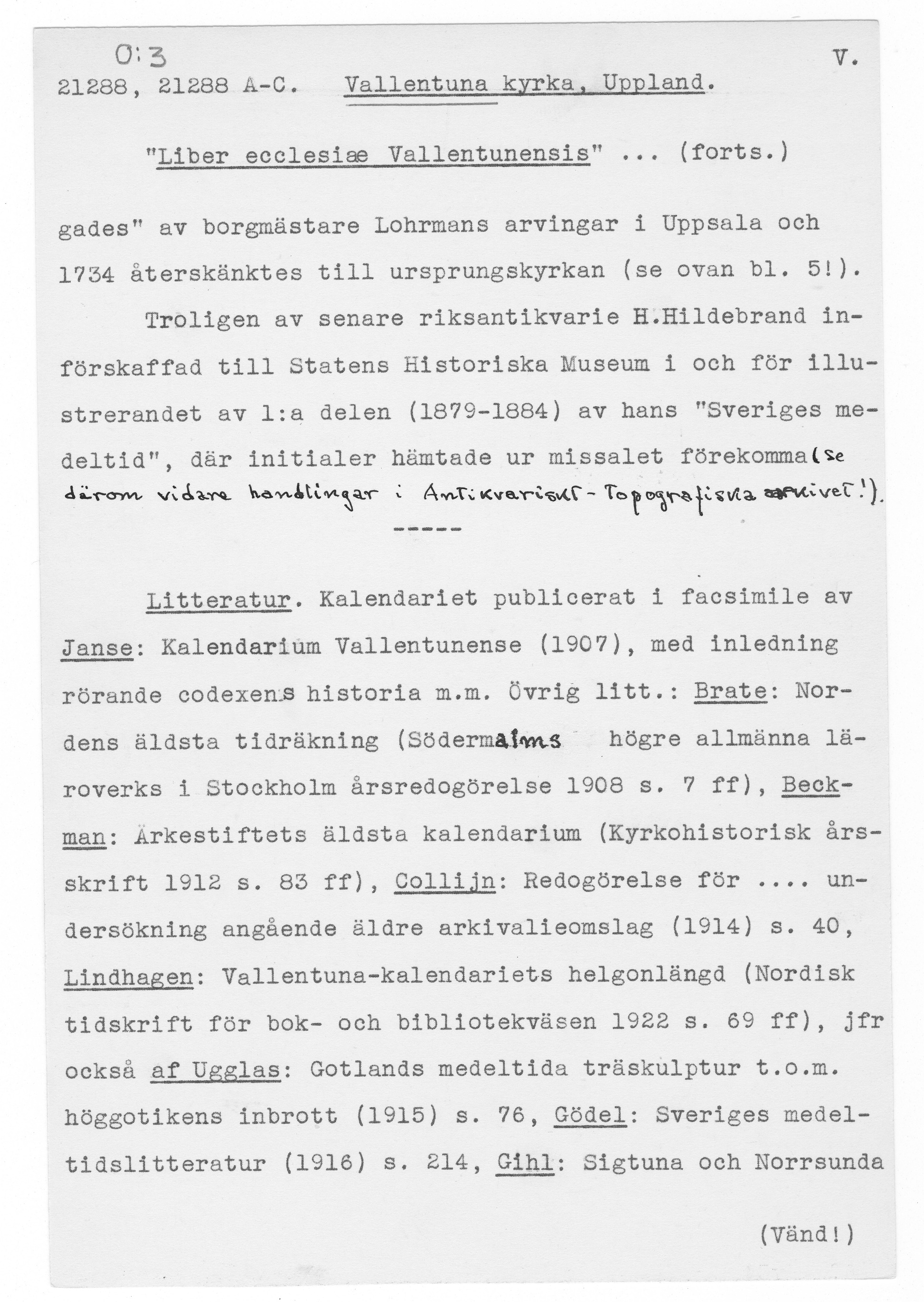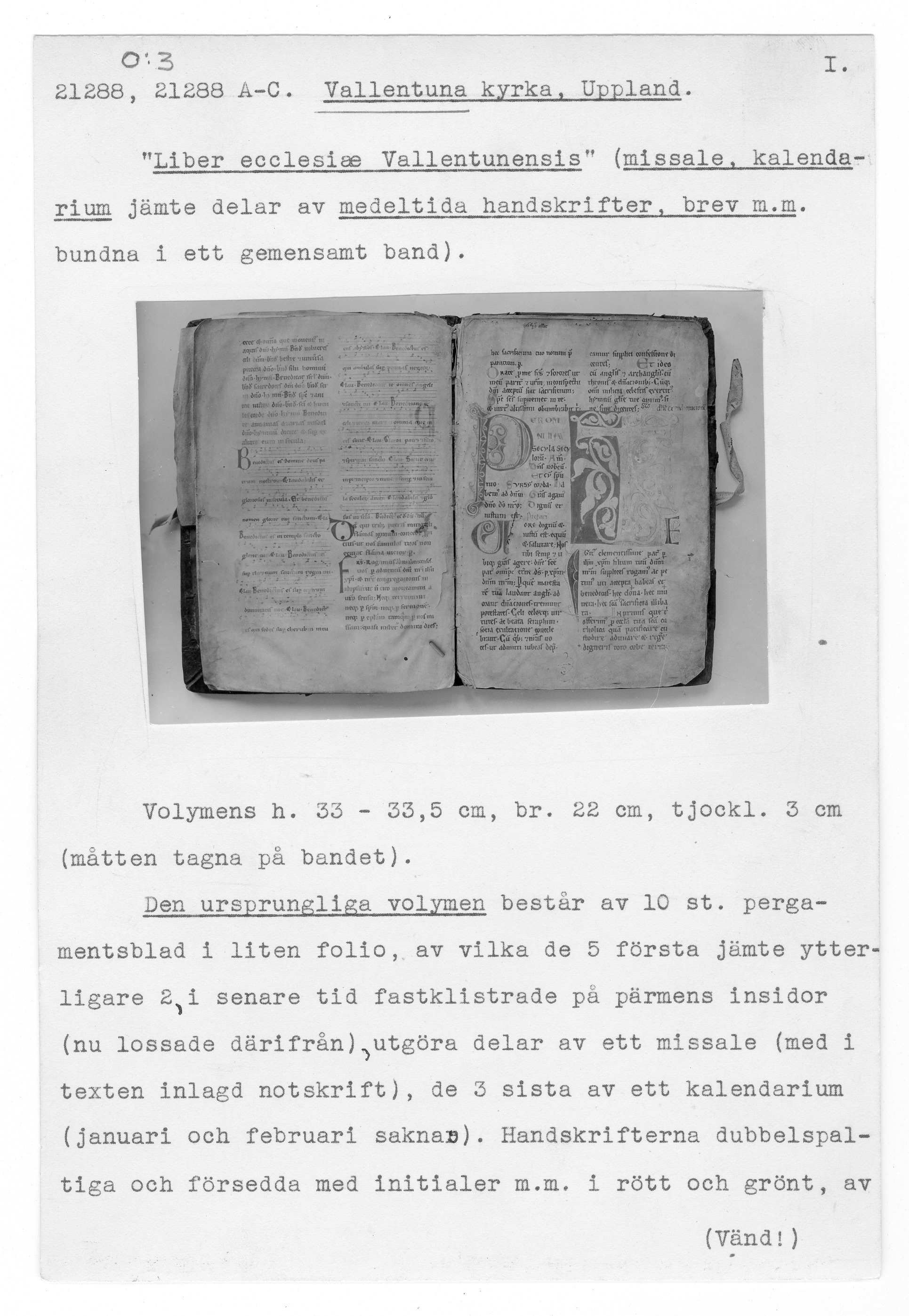Vallentunakalendariet, kalender ingående i en som fragment bevarad mässbok från omkring 1198, inbunden tillsammans med brev och handlingar från medeltiden och nyare tid i en volym som tillhört Vallentuna kyrka, den s k Vallentunaboken. Kalendern omfattar månaderna mars-december och är den äldsta bevarade svenska kalendern. Här förekommer S Eriks dag, 18/5, för första gången.