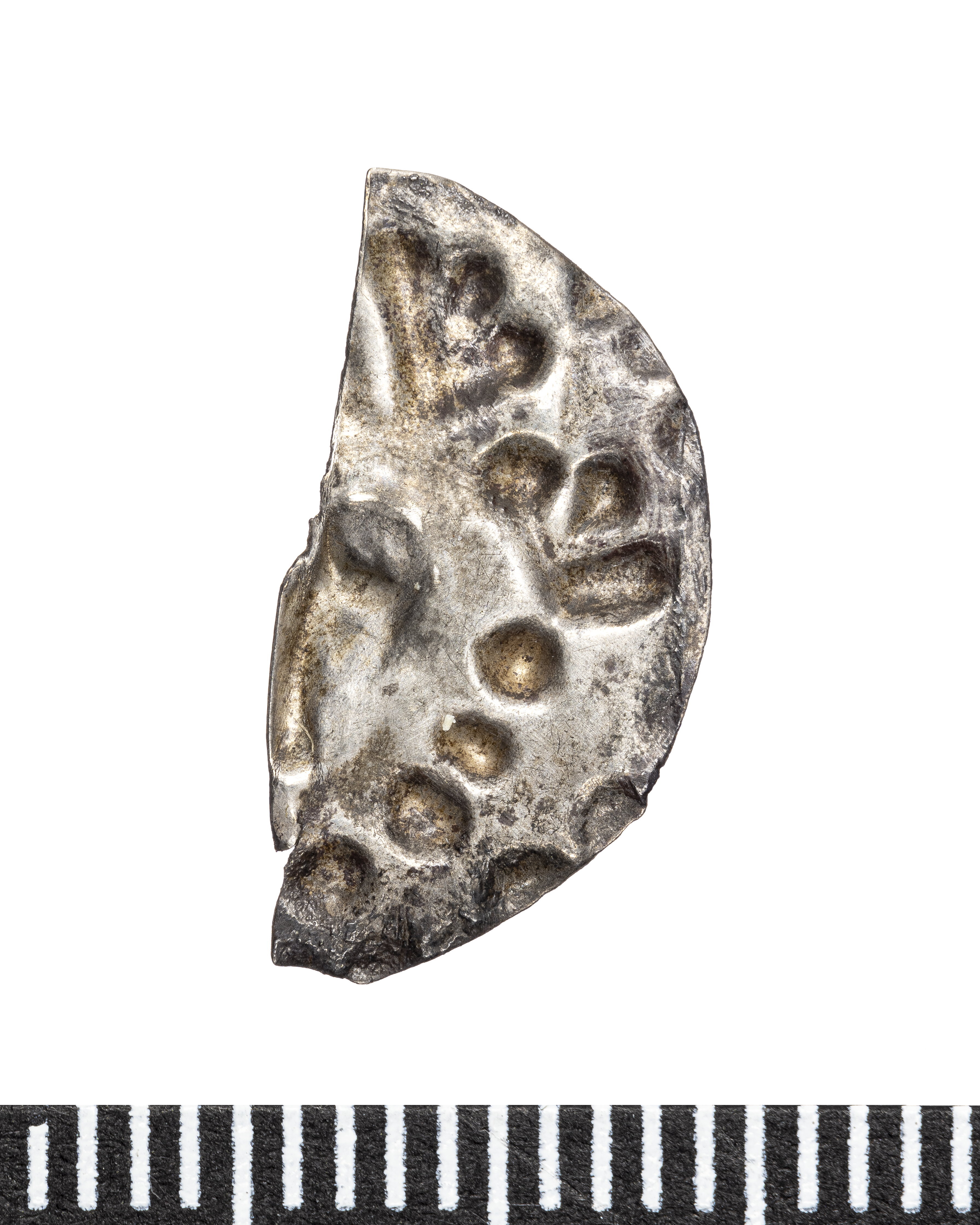 Fragment, 1/2 mynt. Krönt huvud, upplöst
