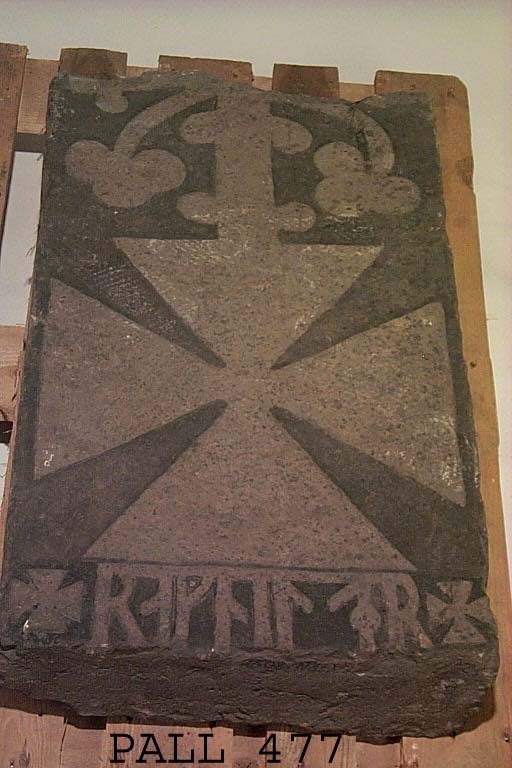 Del av runristad gravhäll. Runorna uttyds "+ ragnildr +".