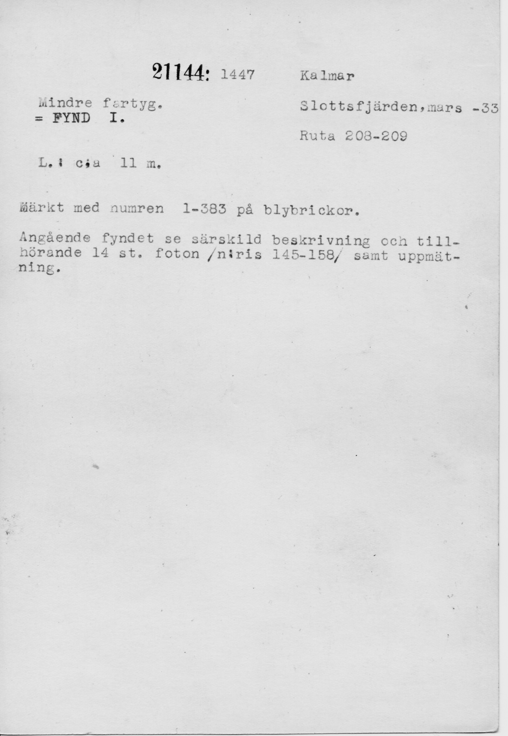 | Föremålsnummer |