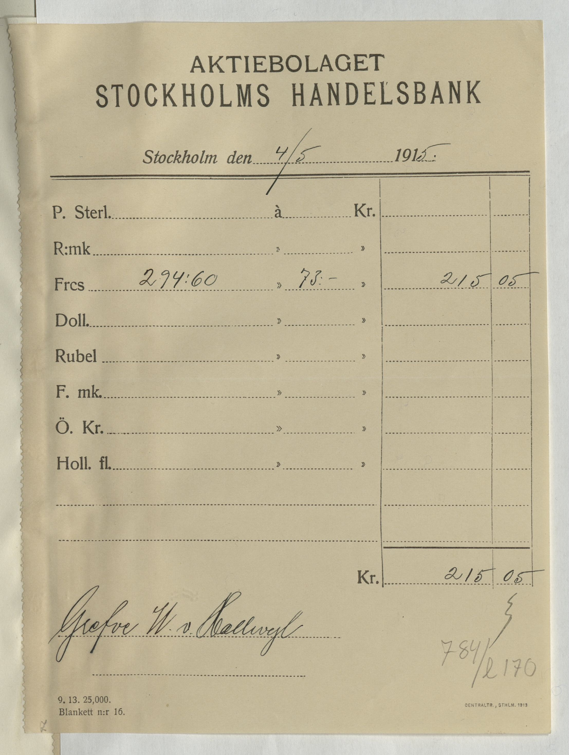Upphov: Stockholms Handelsbank AB. Media: Statens historiska museer. Hallwylska museet/SHM, (PDM) Upphovsrätten till detta verk har gått ut och är därmed fritt att använda på alla sätt. Ange gärna upphovsperson om denne är känd.