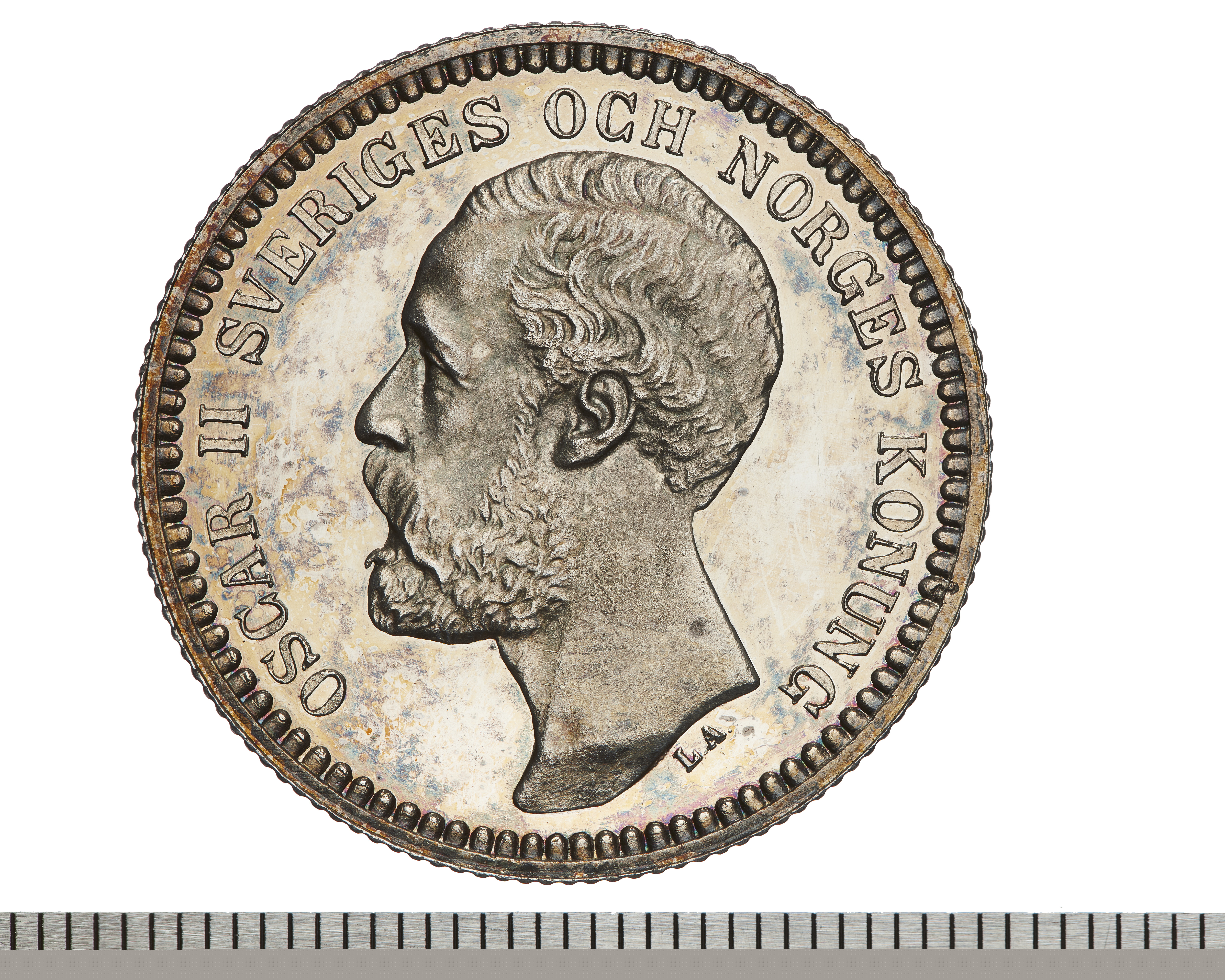 Upphov: Oscar II av Sverige och Norge. Media: Bonnevier, Helena. Ekonomiska museet - Kungliga myntkabinettet/SHM, (CC BY 4.0) Du får bearbeta och dela verket för alla ändamål, även kommersiella, så länge du anger upphovsperson och licensgivare.