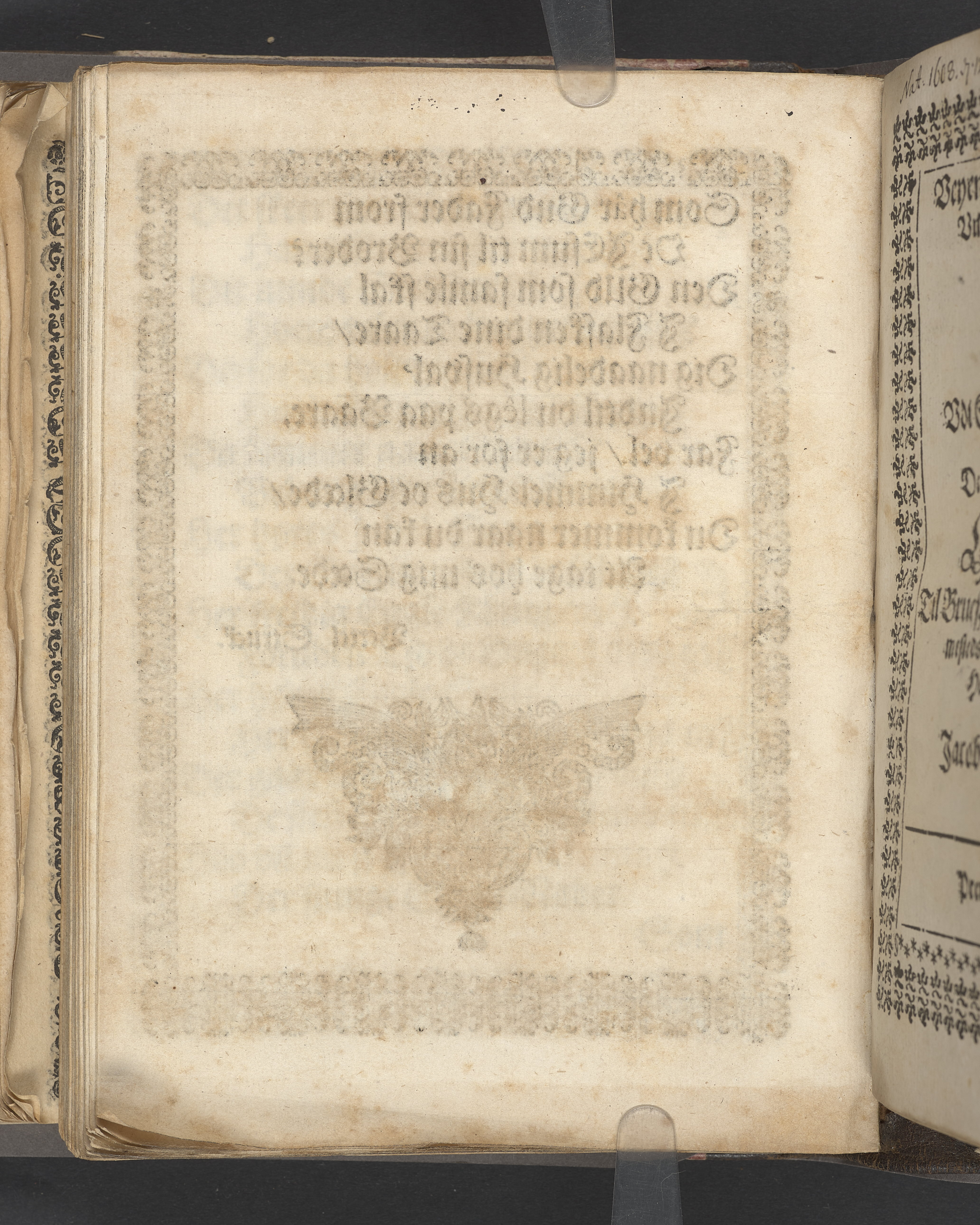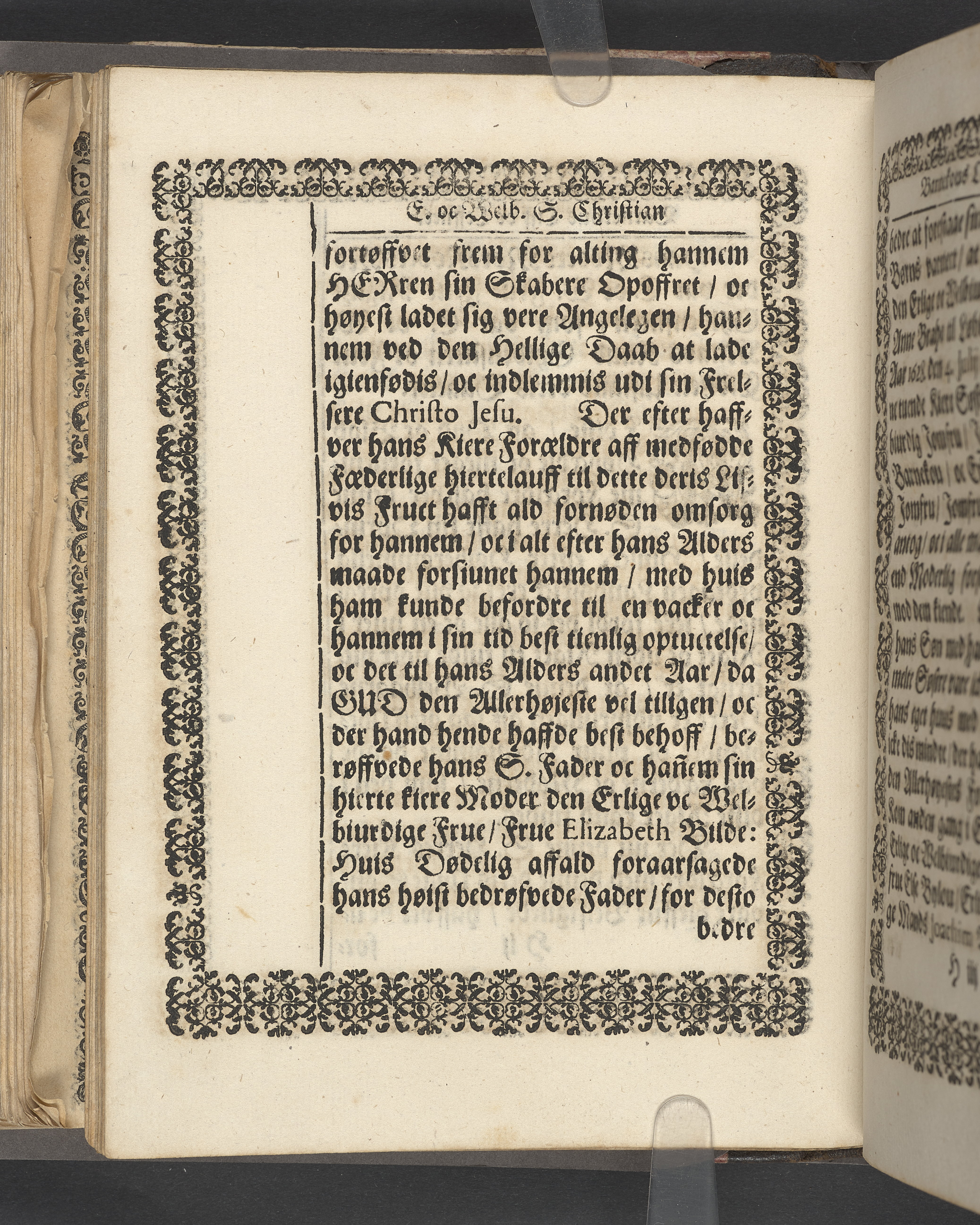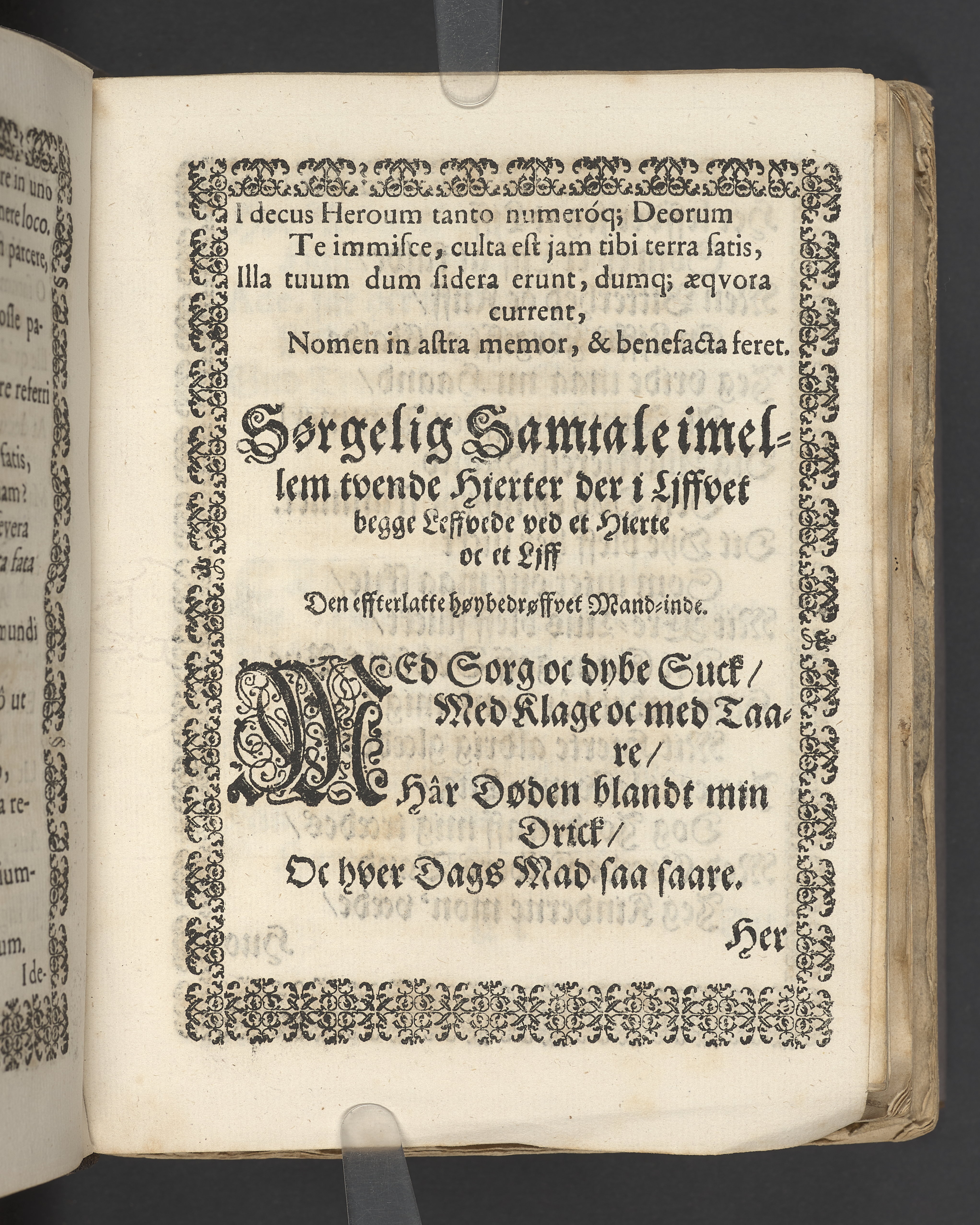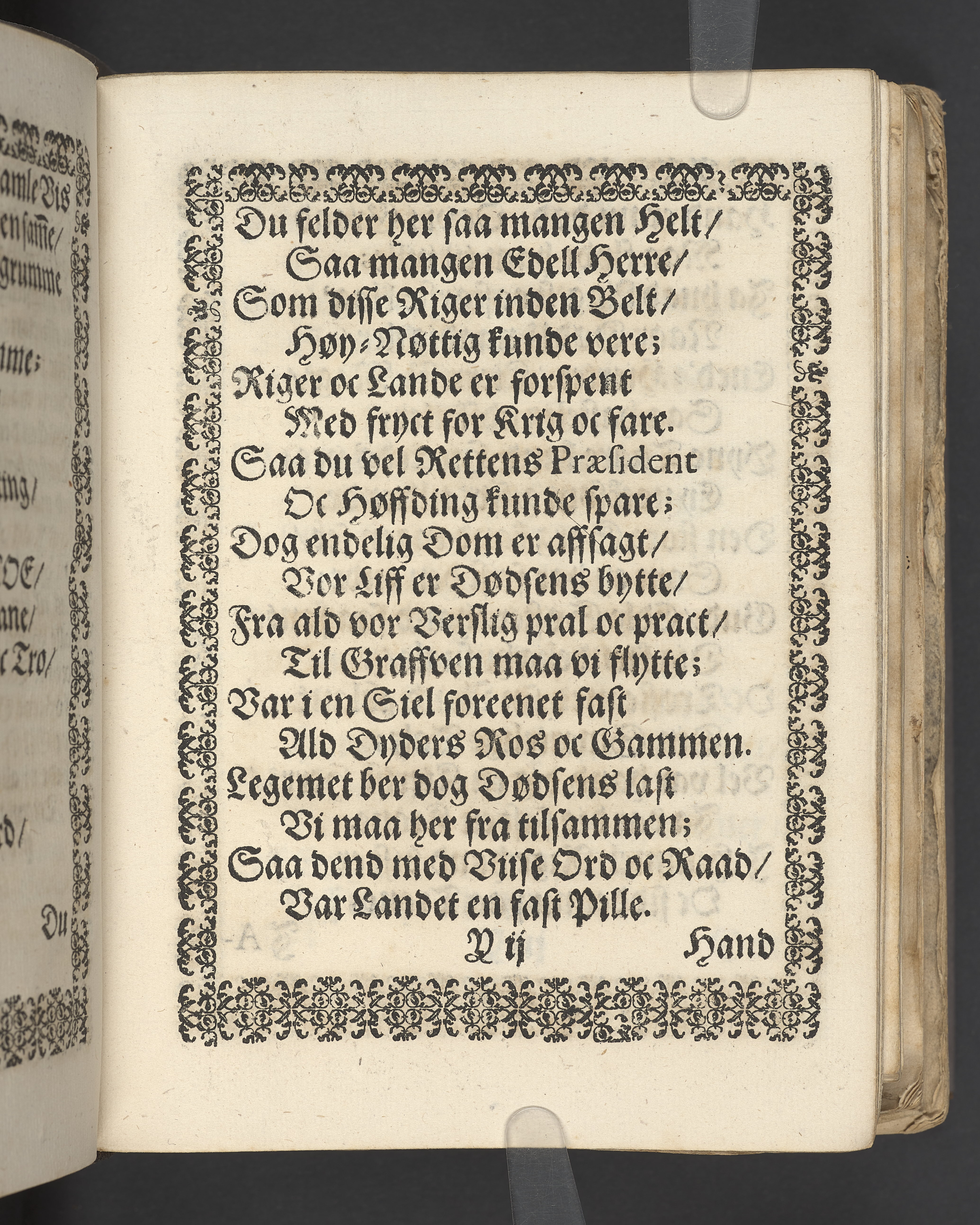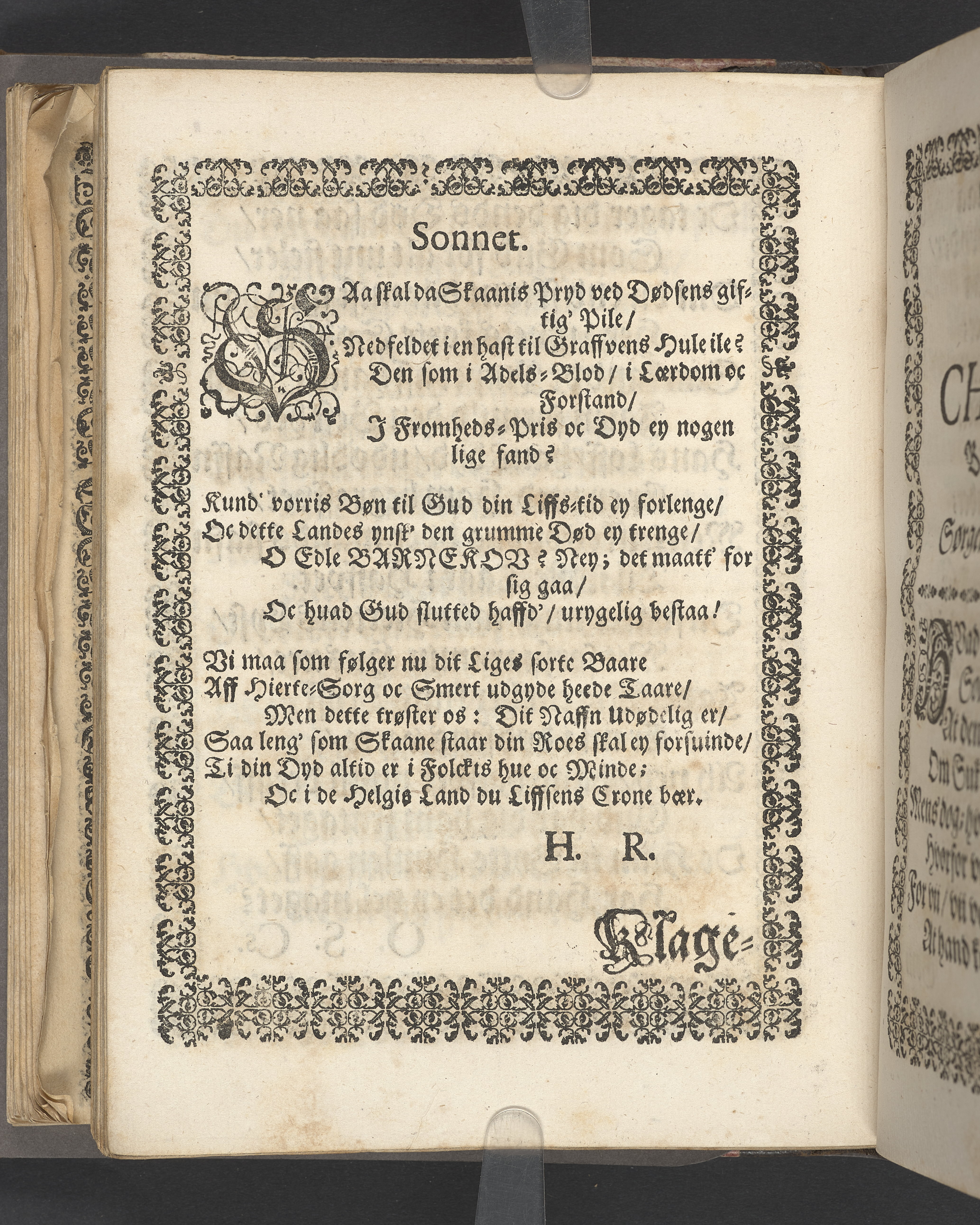 Sprängt snitt. Högst upp på titelsidan anteckning i bläck med uppgifter om födelse- och dödsdatum för den avlidna. Tryckt dedikation till änkan Birgitte Skeel.