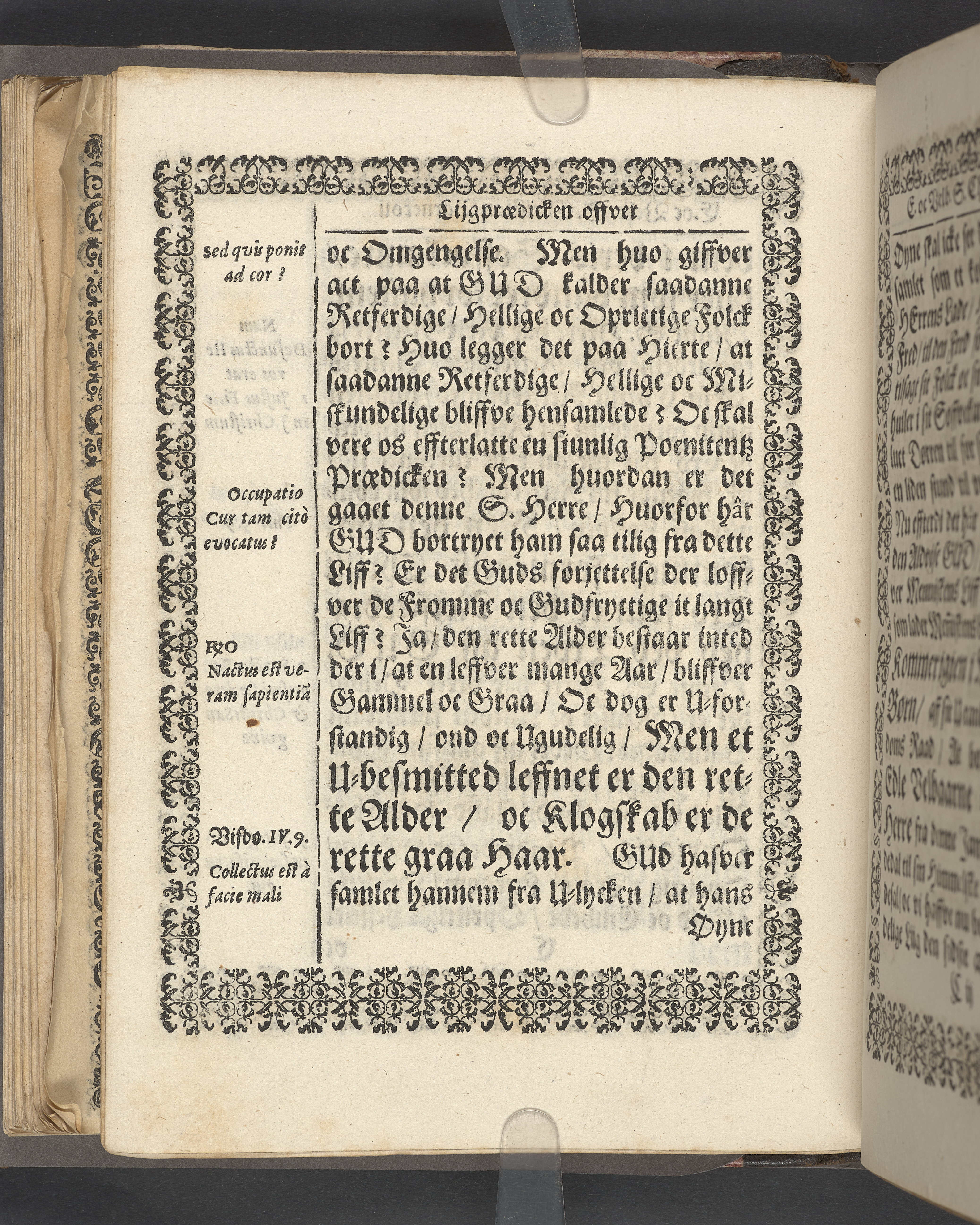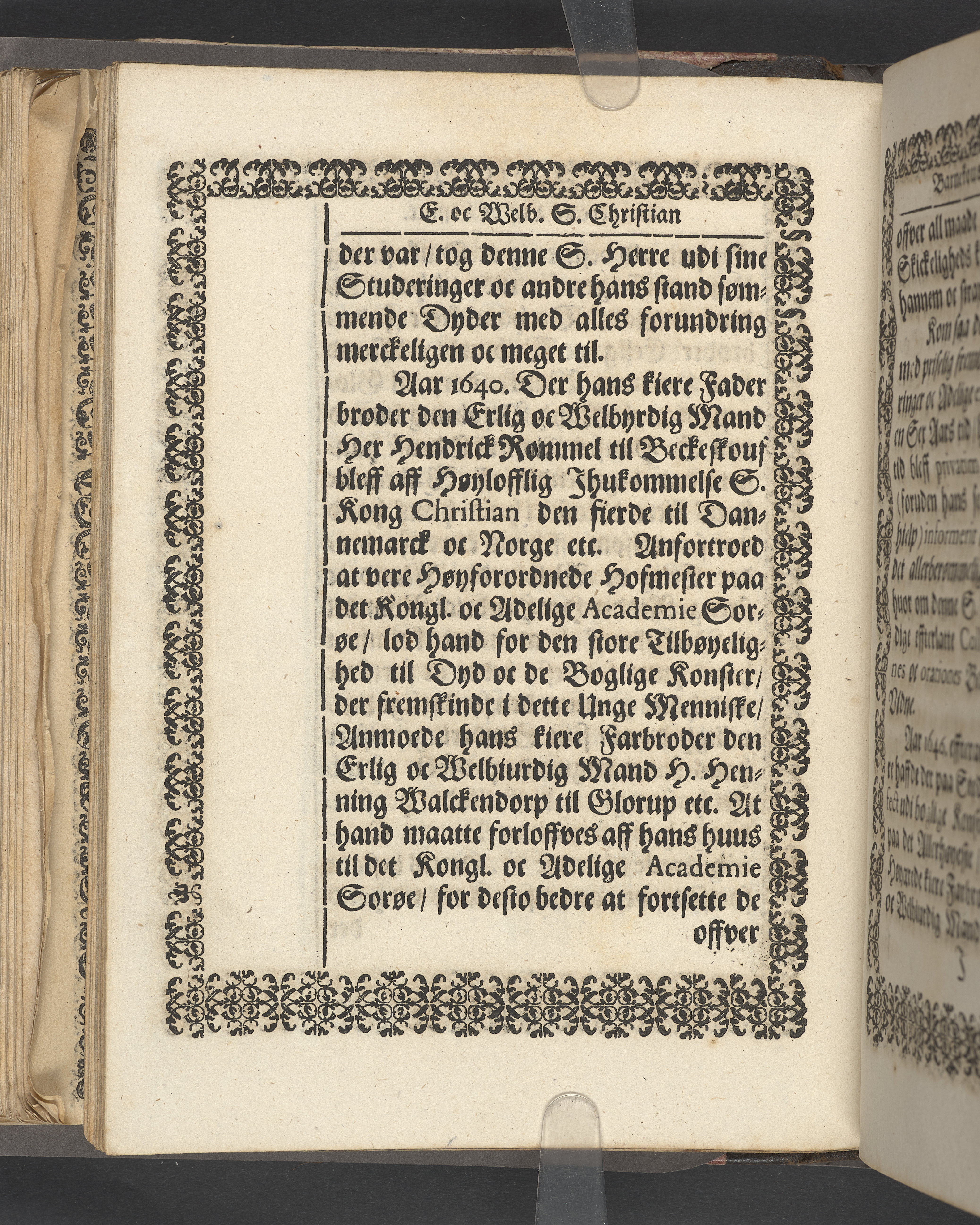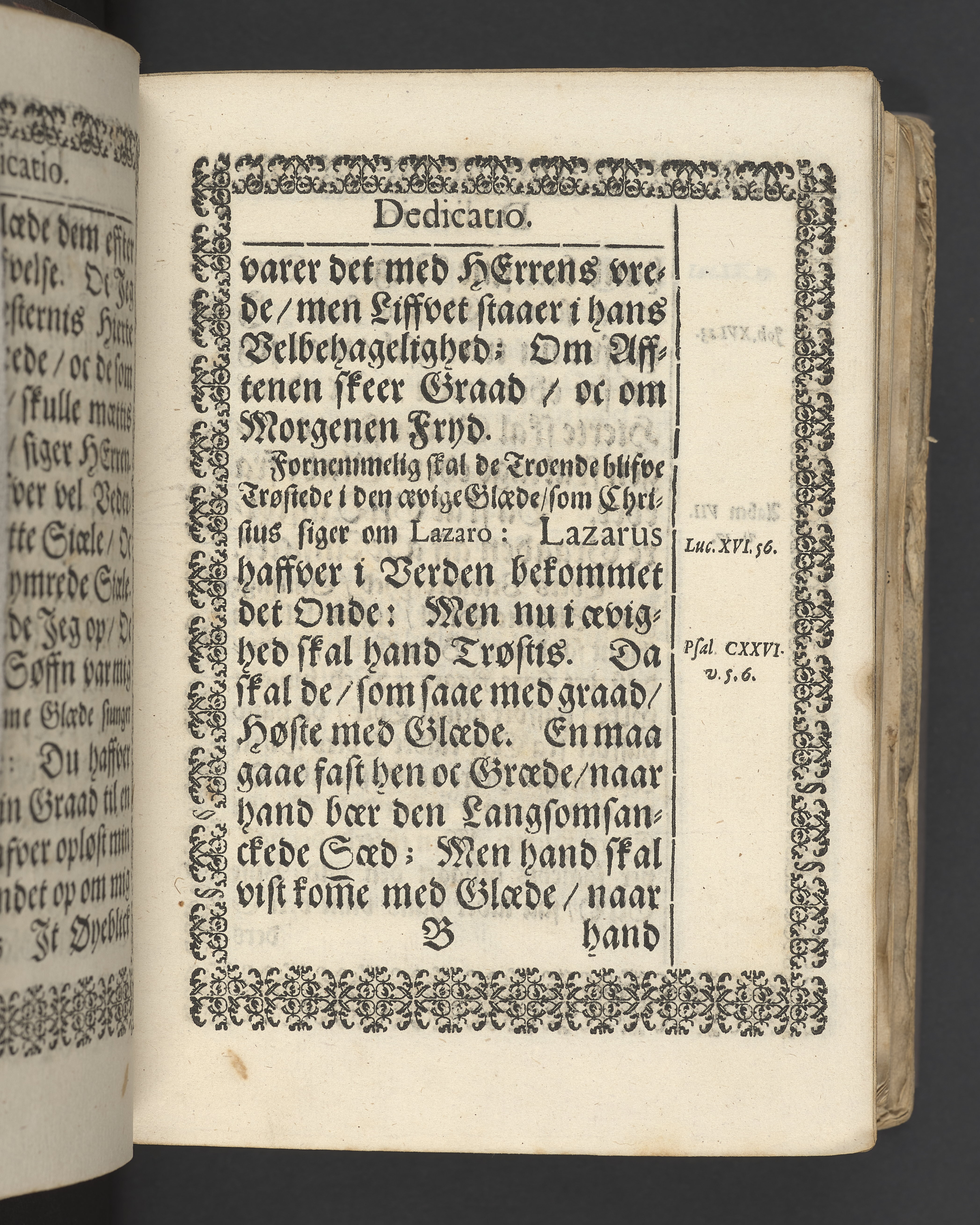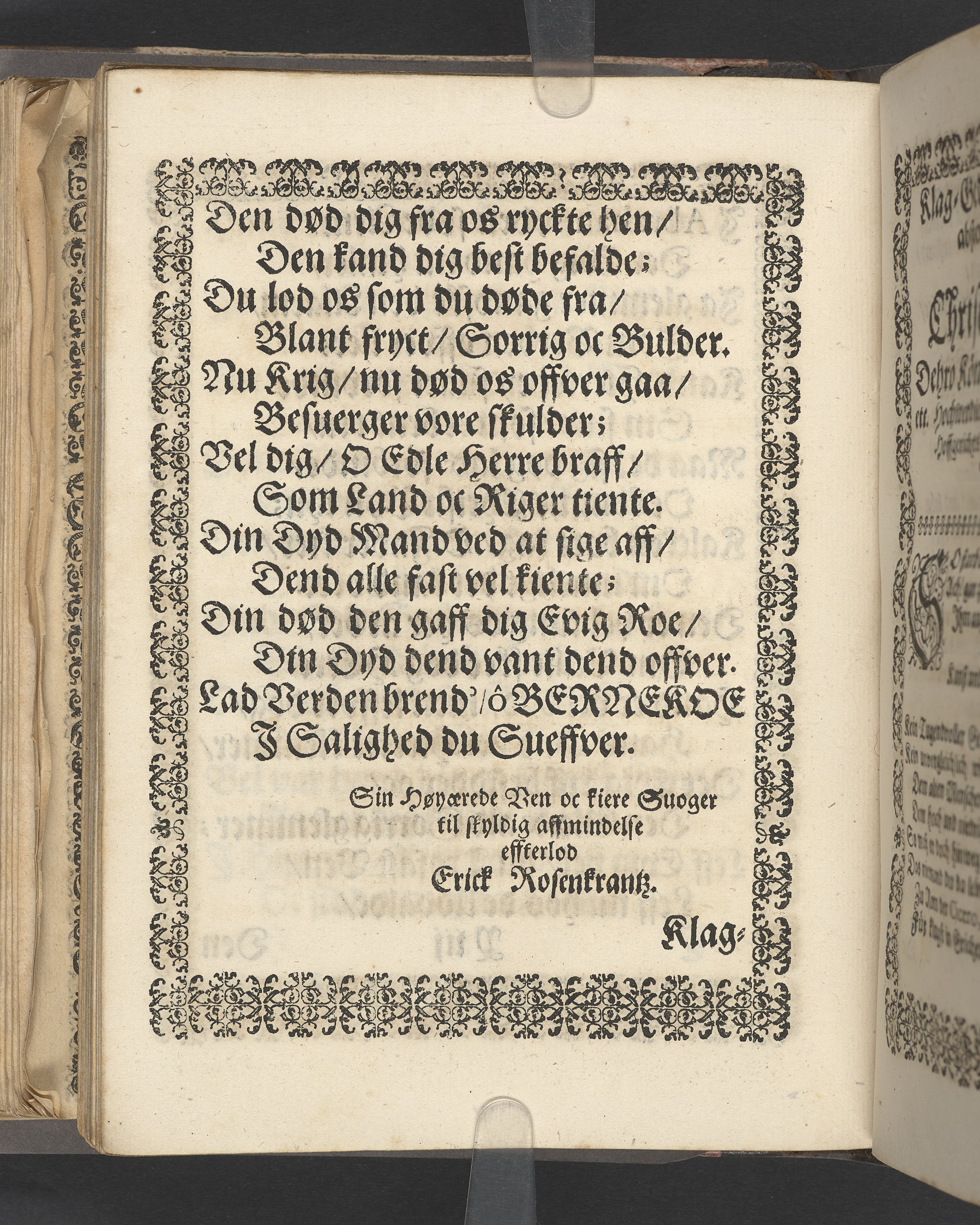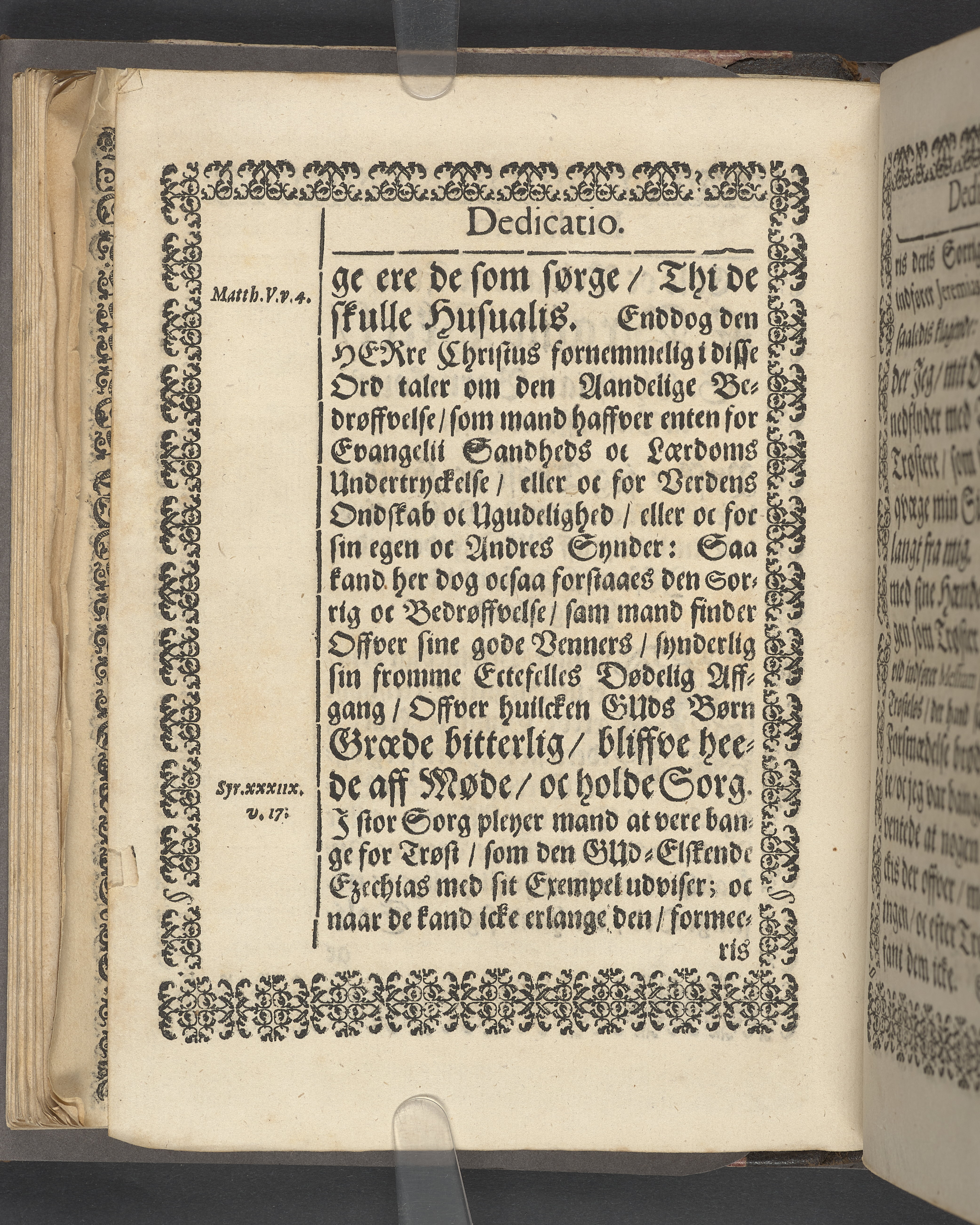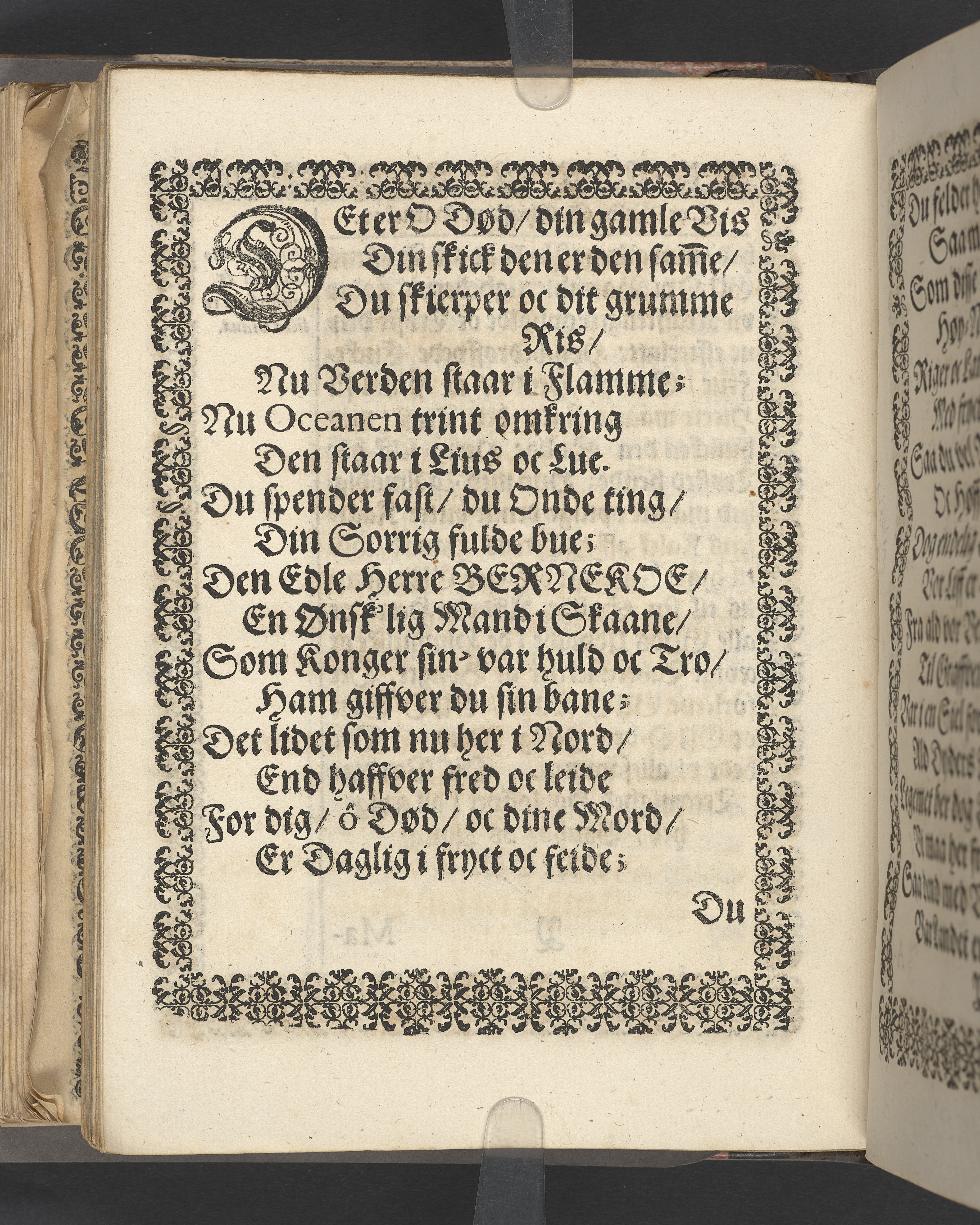 Sprängt snitt. Högst upp på titelsidan anteckning i bläck med uppgifter om födelse- och dödsdatum för den avlidna. Tryckt dedikation till änkan Birgitte Skeel.