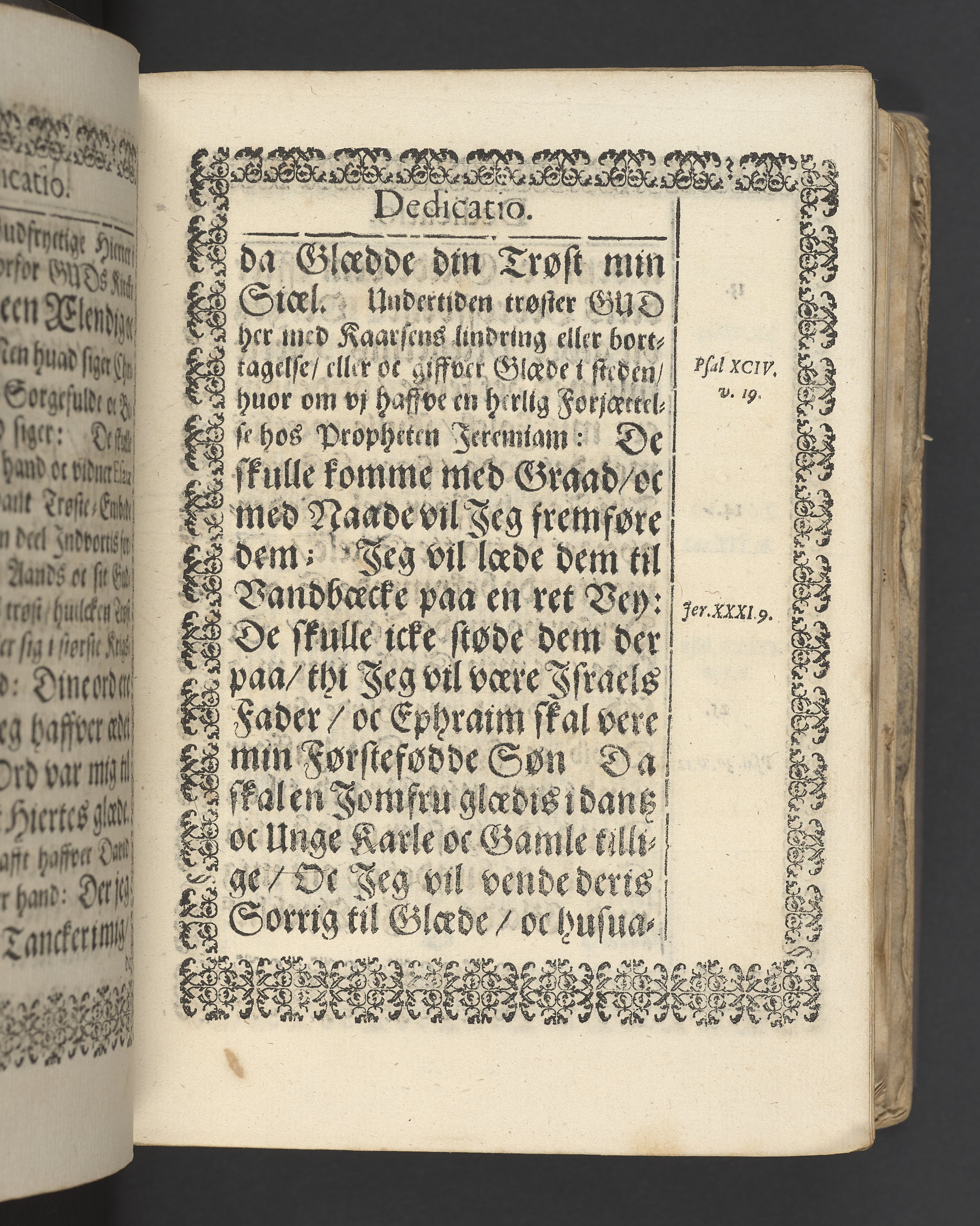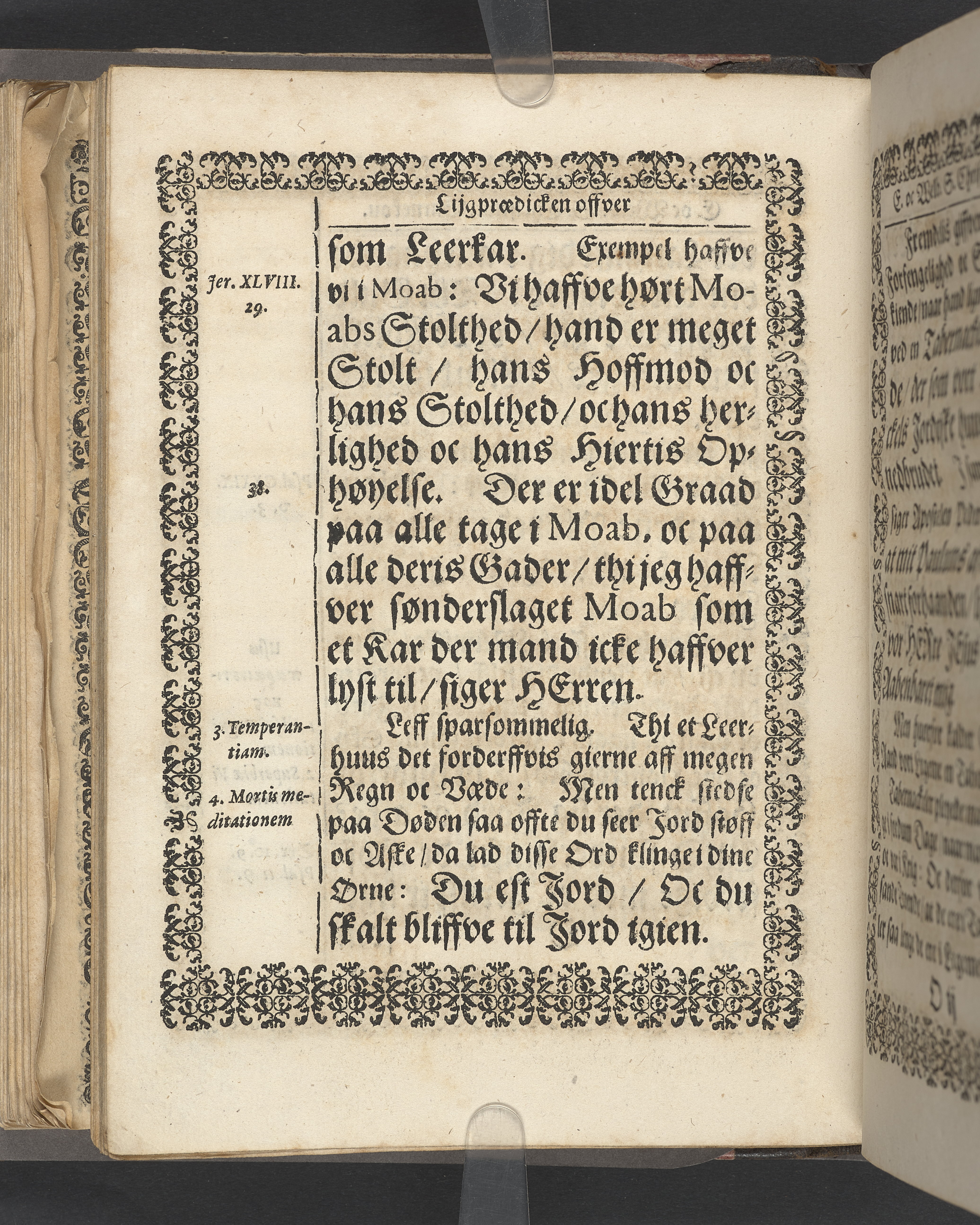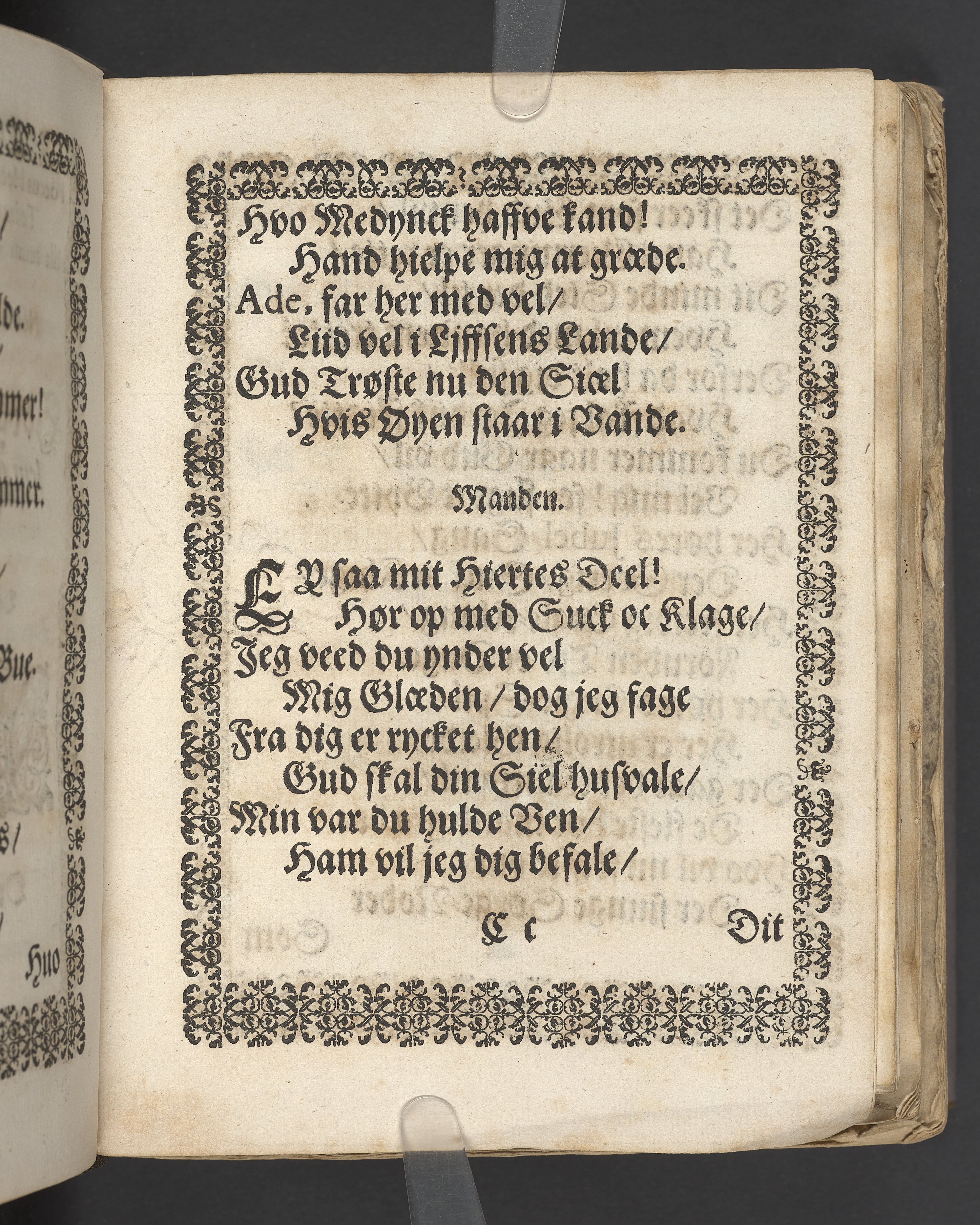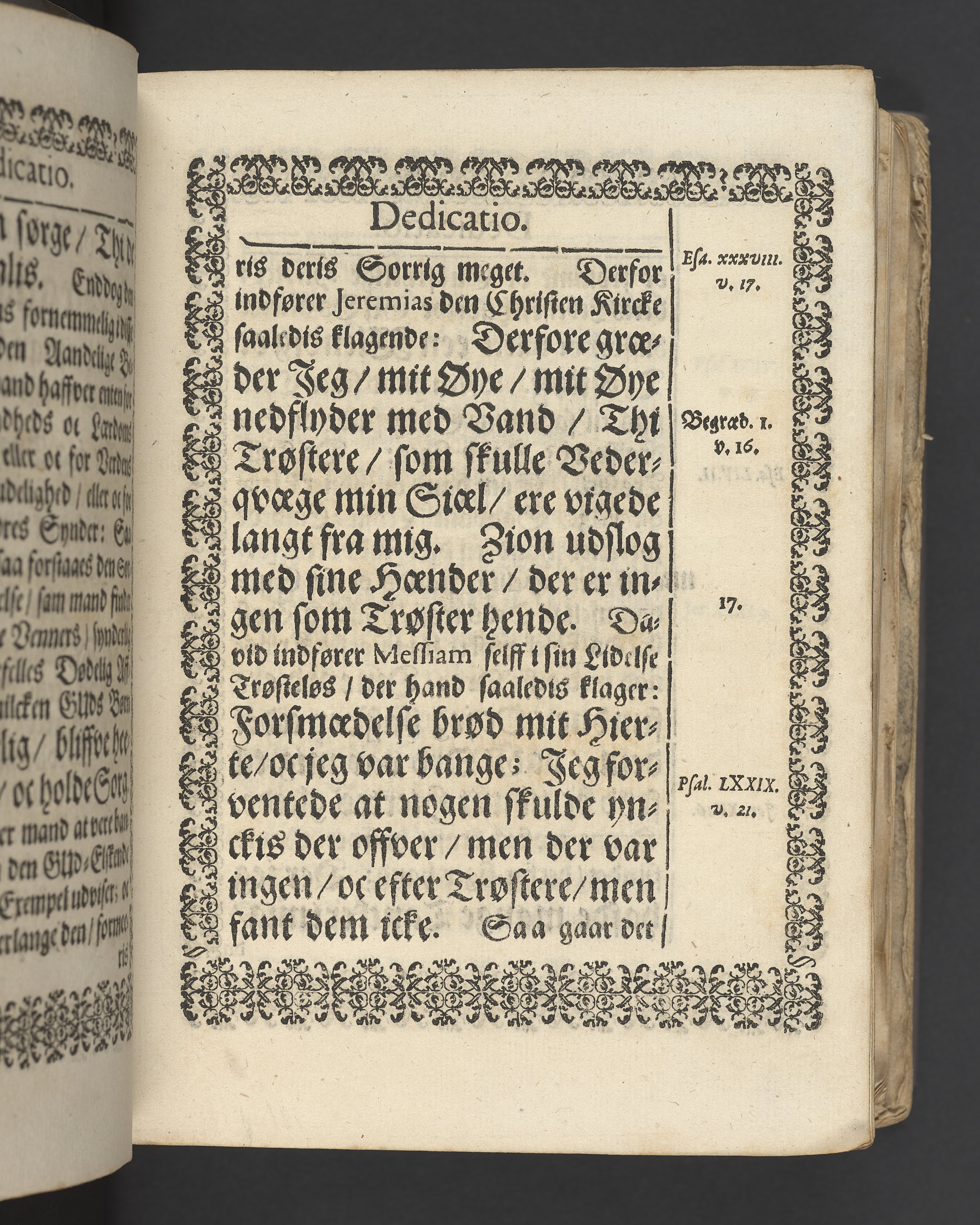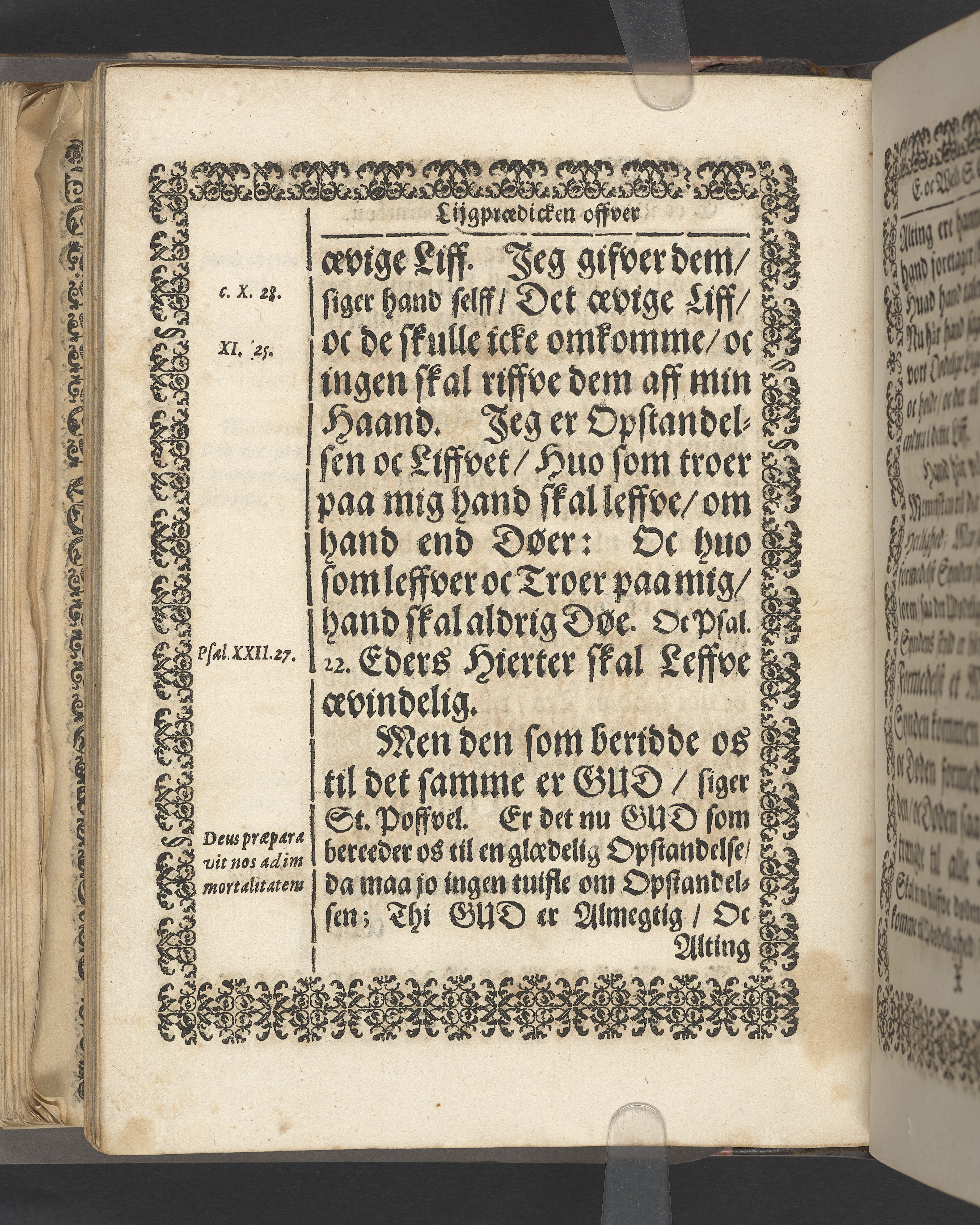 Sprängt snitt. Högst upp på titelsidan anteckning i bläck med uppgifter om födelse- och dödsdatum för den avlidna. Tryckt dedikation till änkan Birgitte Skeel.