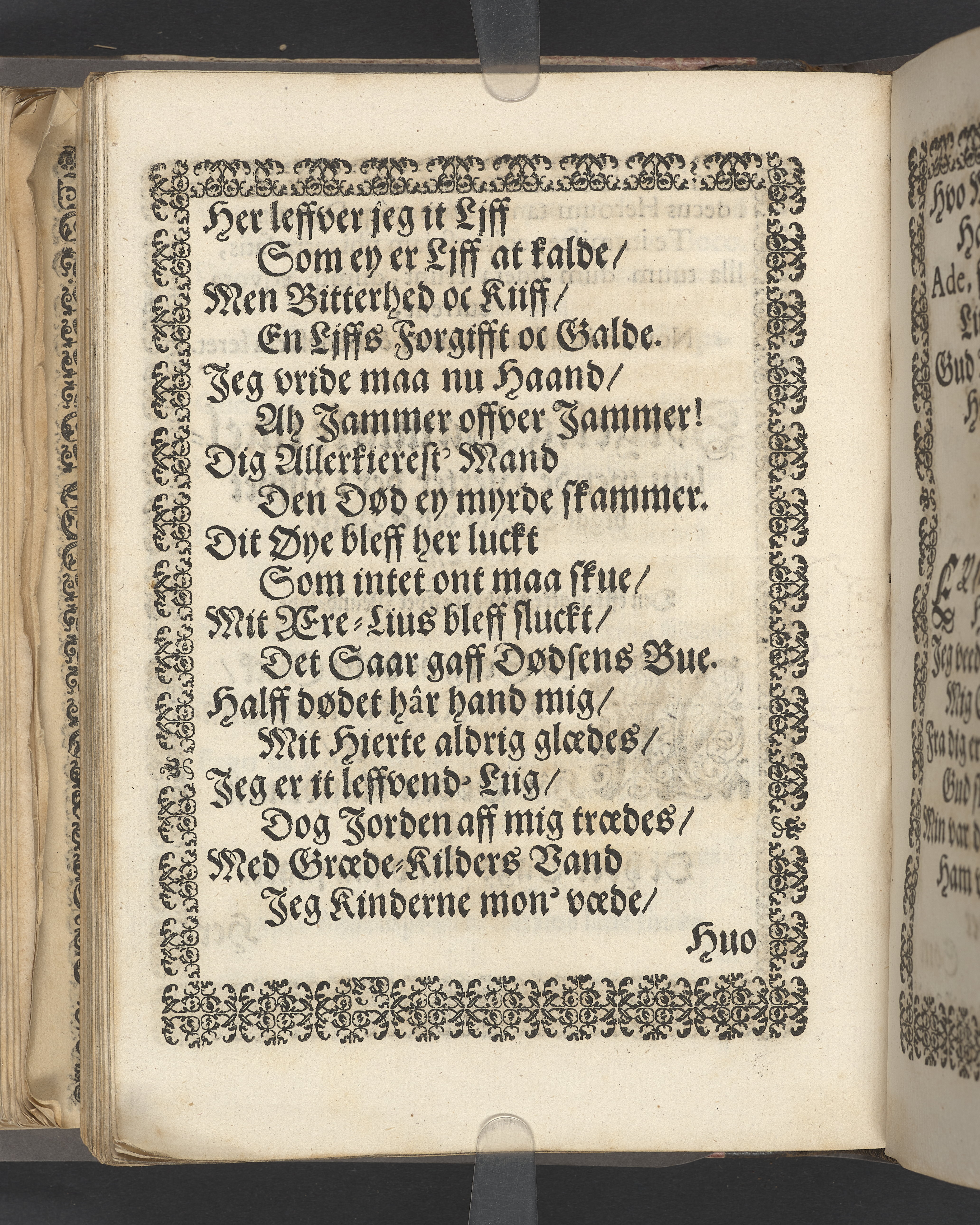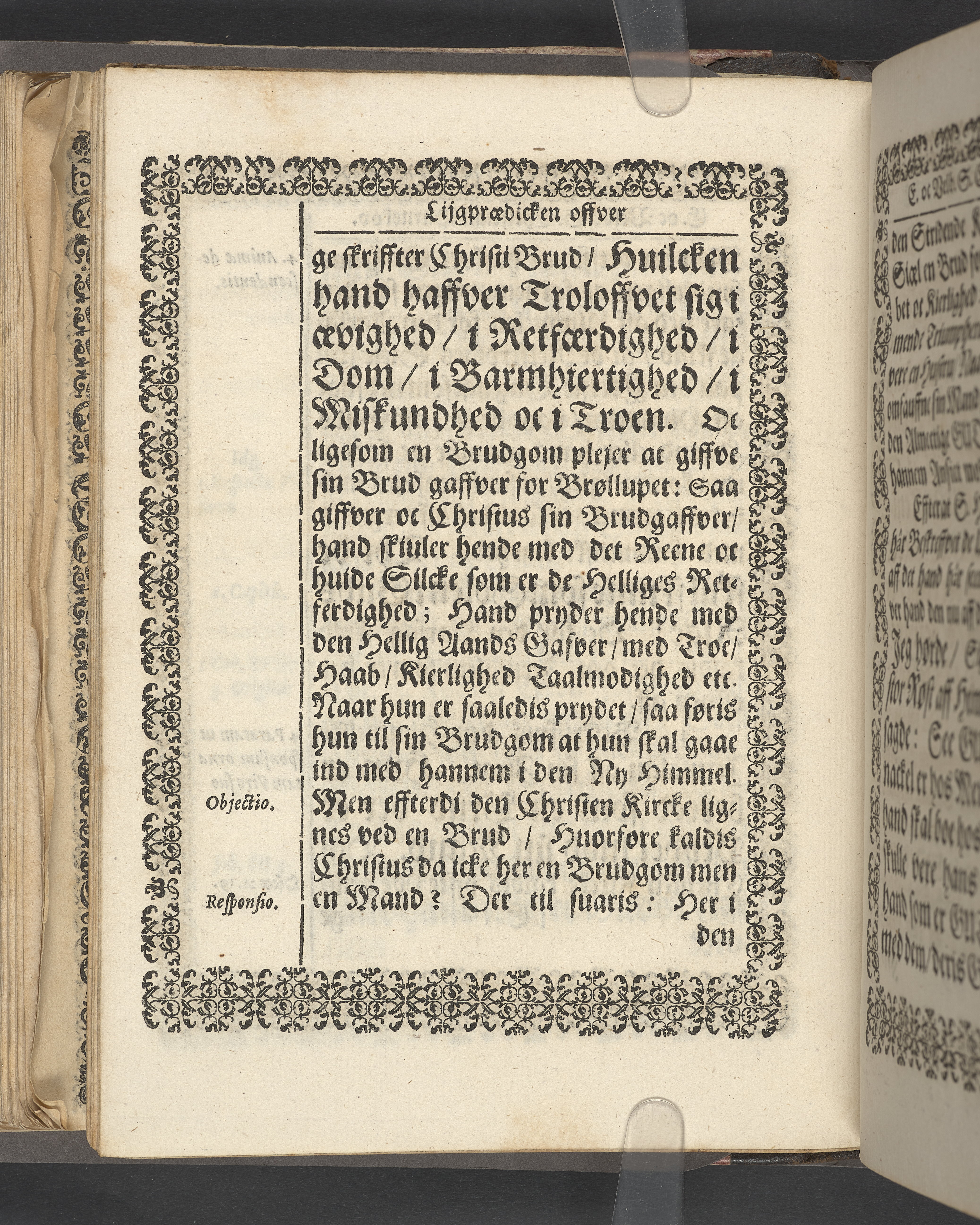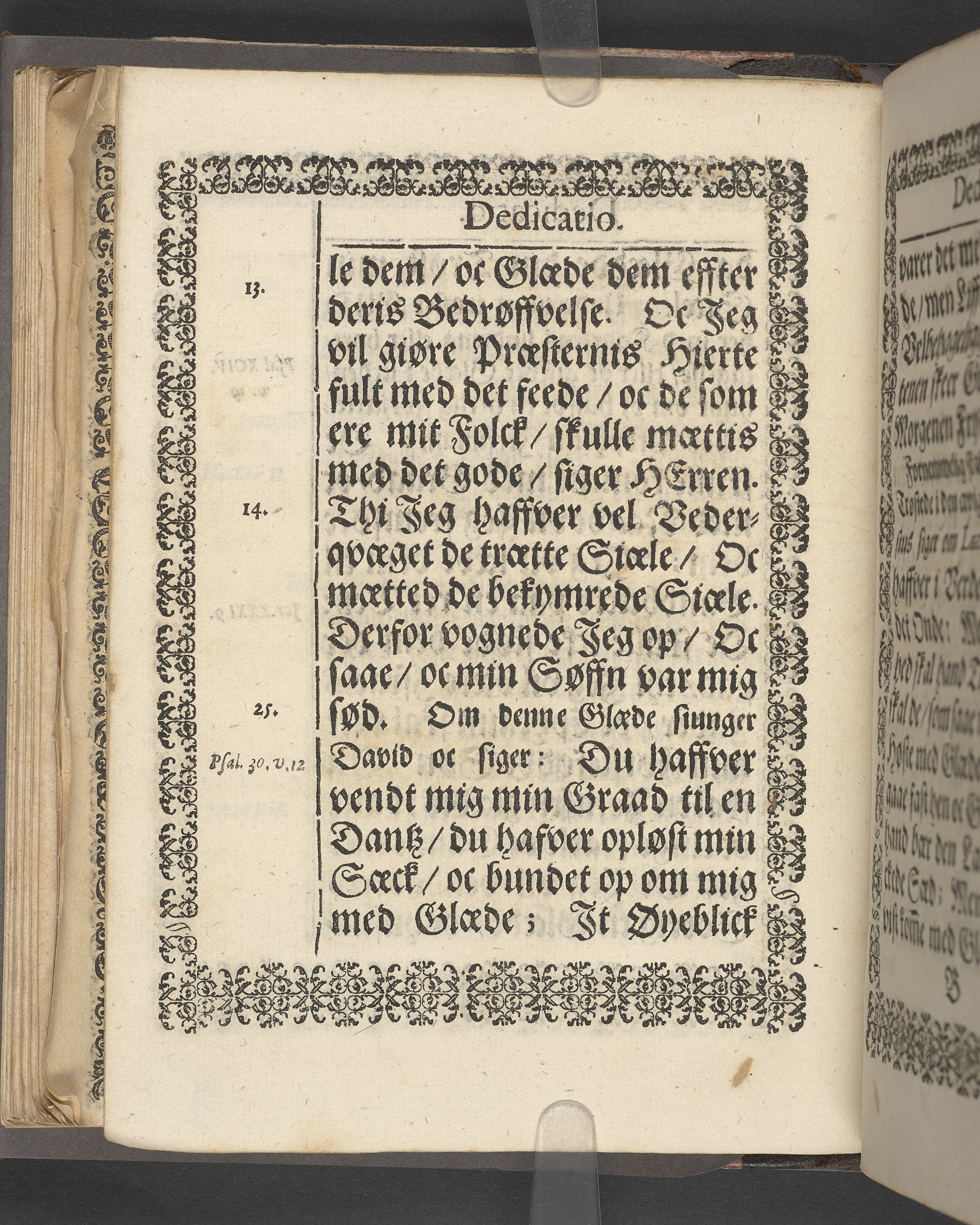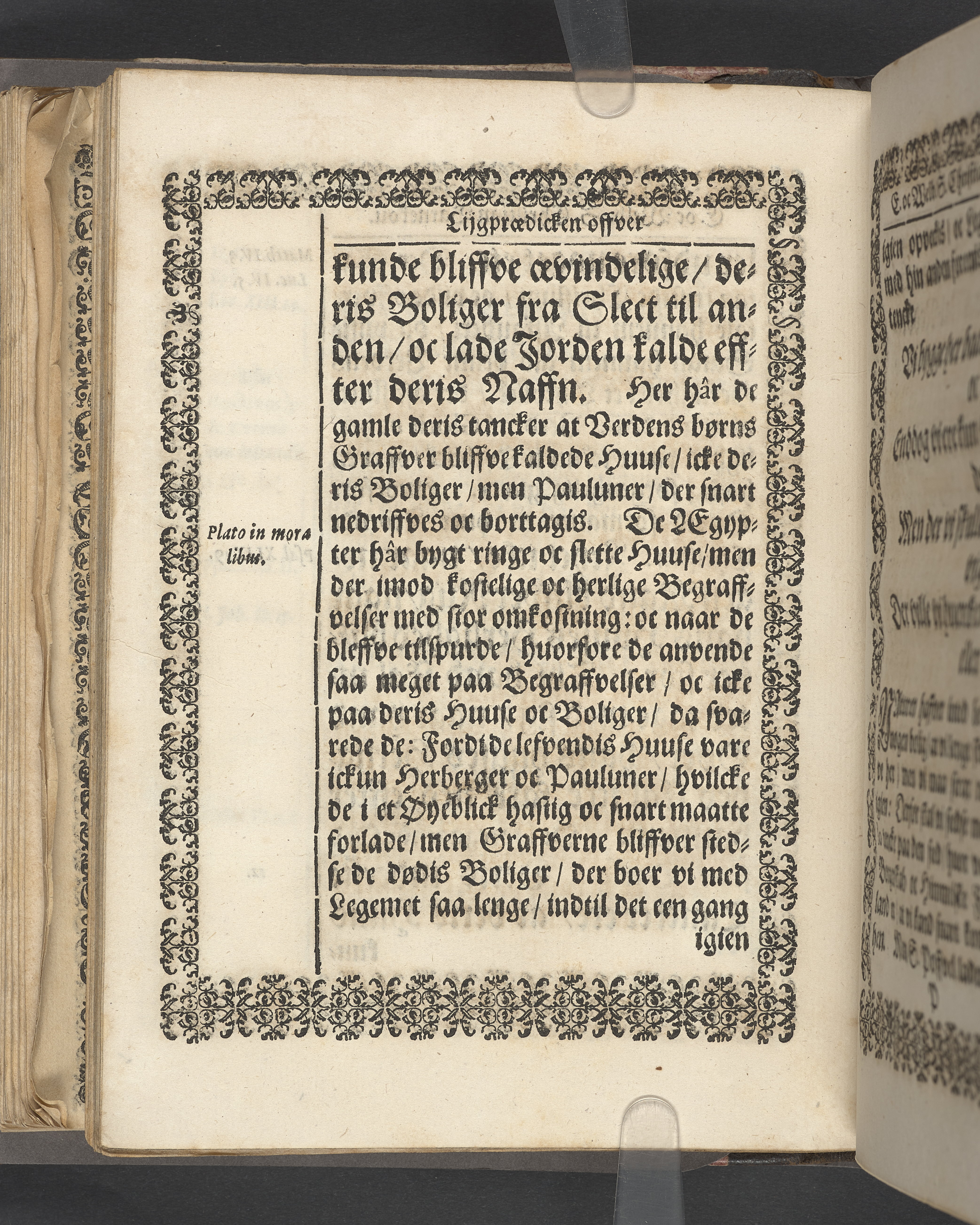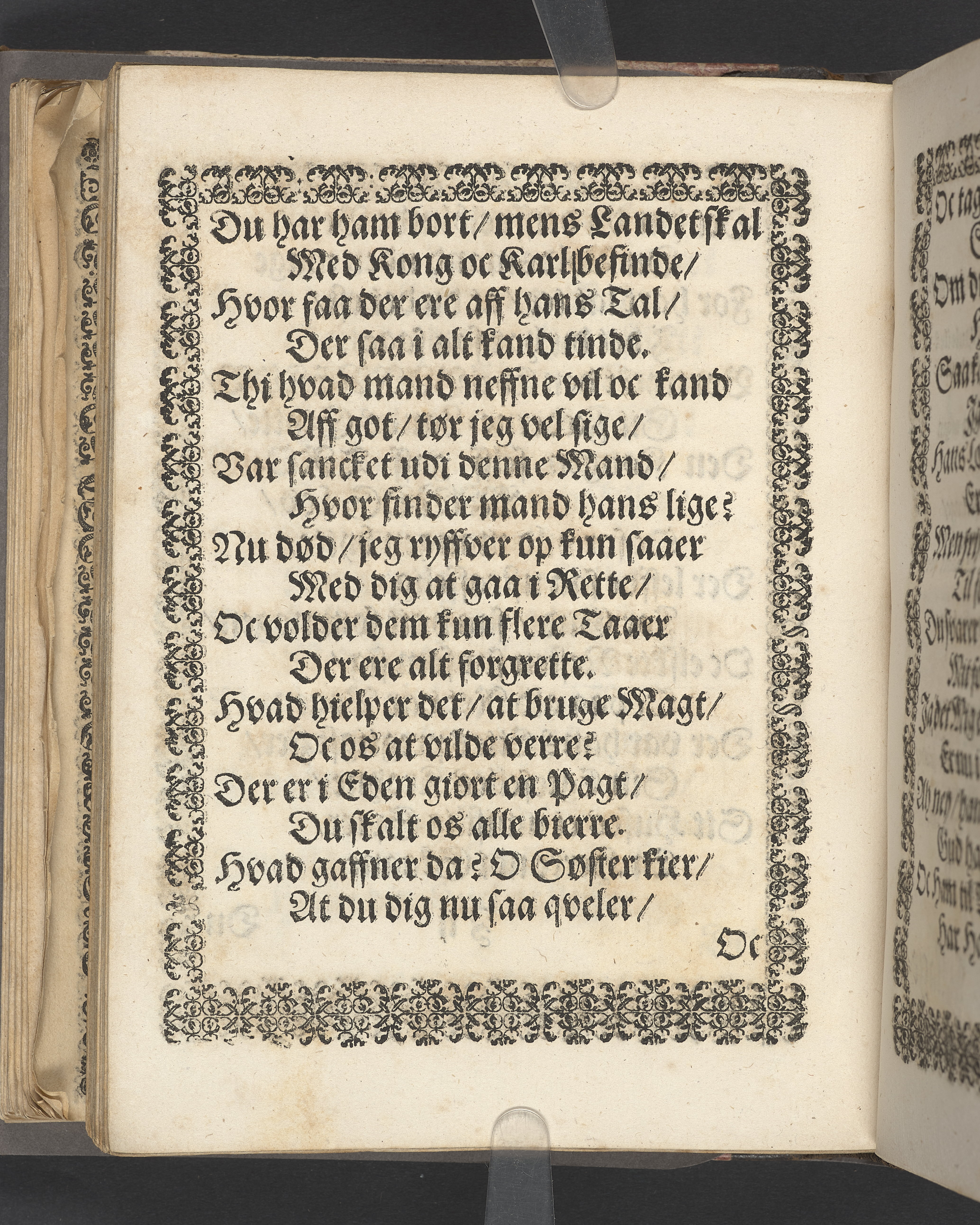 Sprängt snitt. Högst upp på titelsidan anteckning i bläck med uppgifter om födelse- och dödsdatum för den avlidna. Tryckt dedikation till änkan Birgitte Skeel.