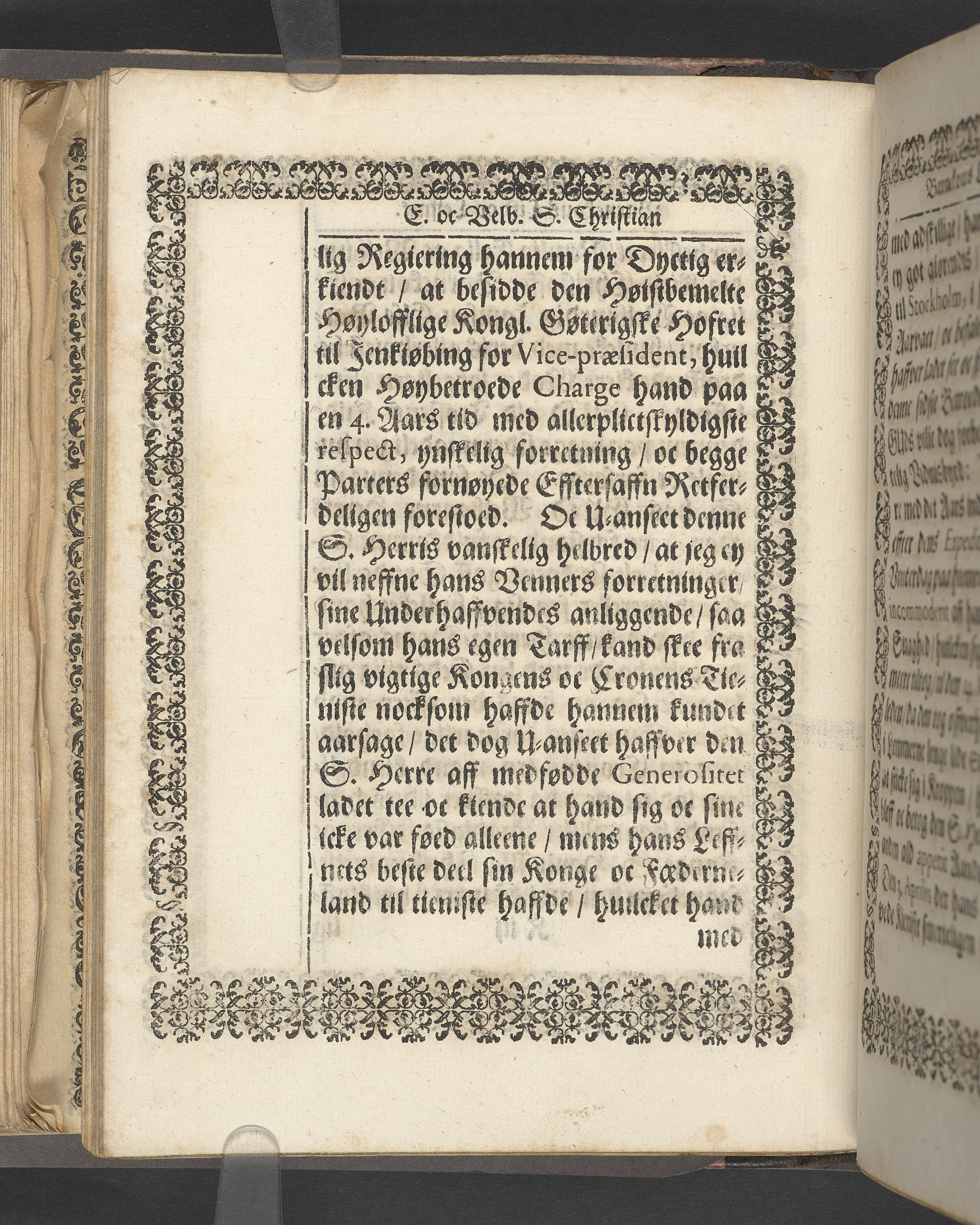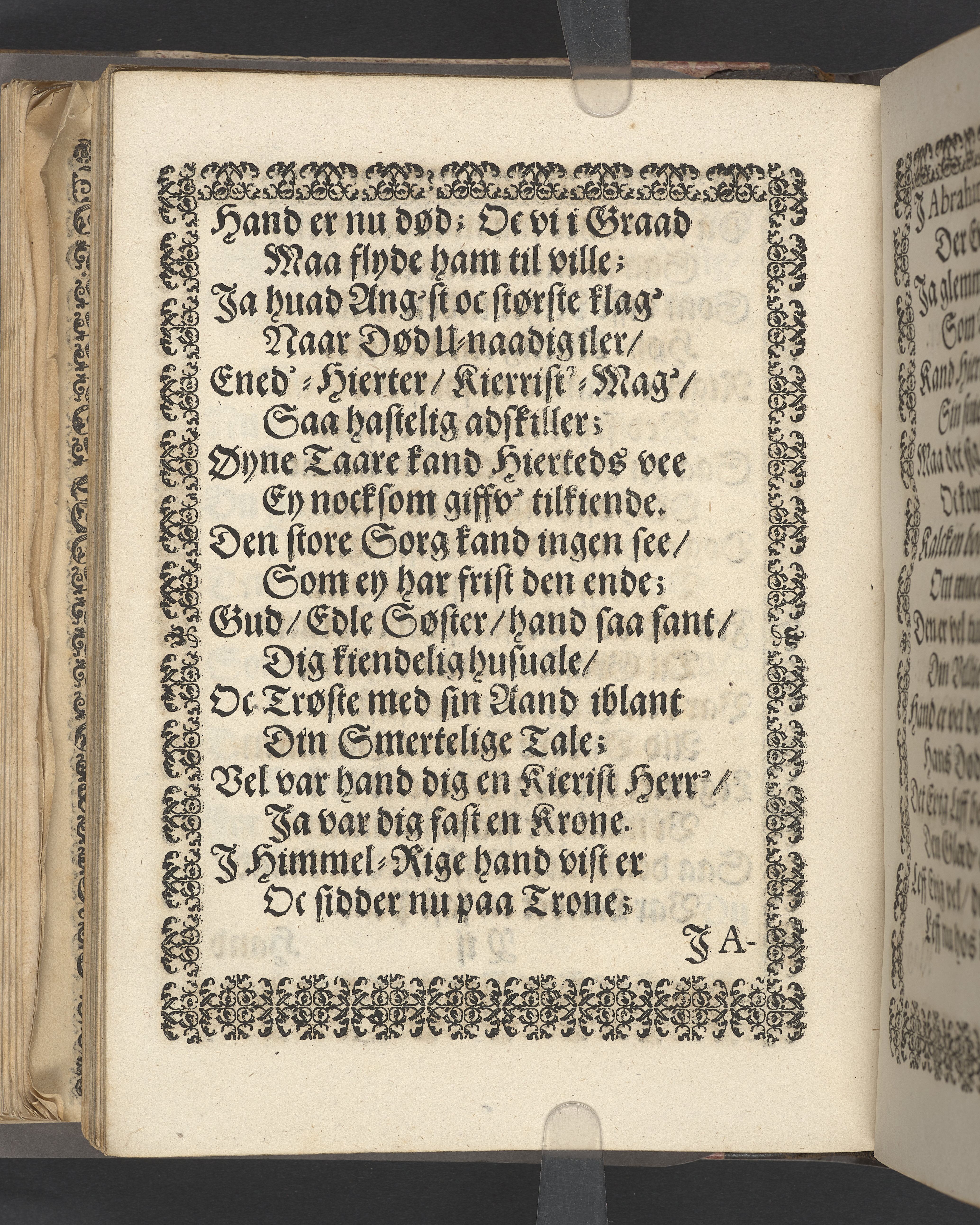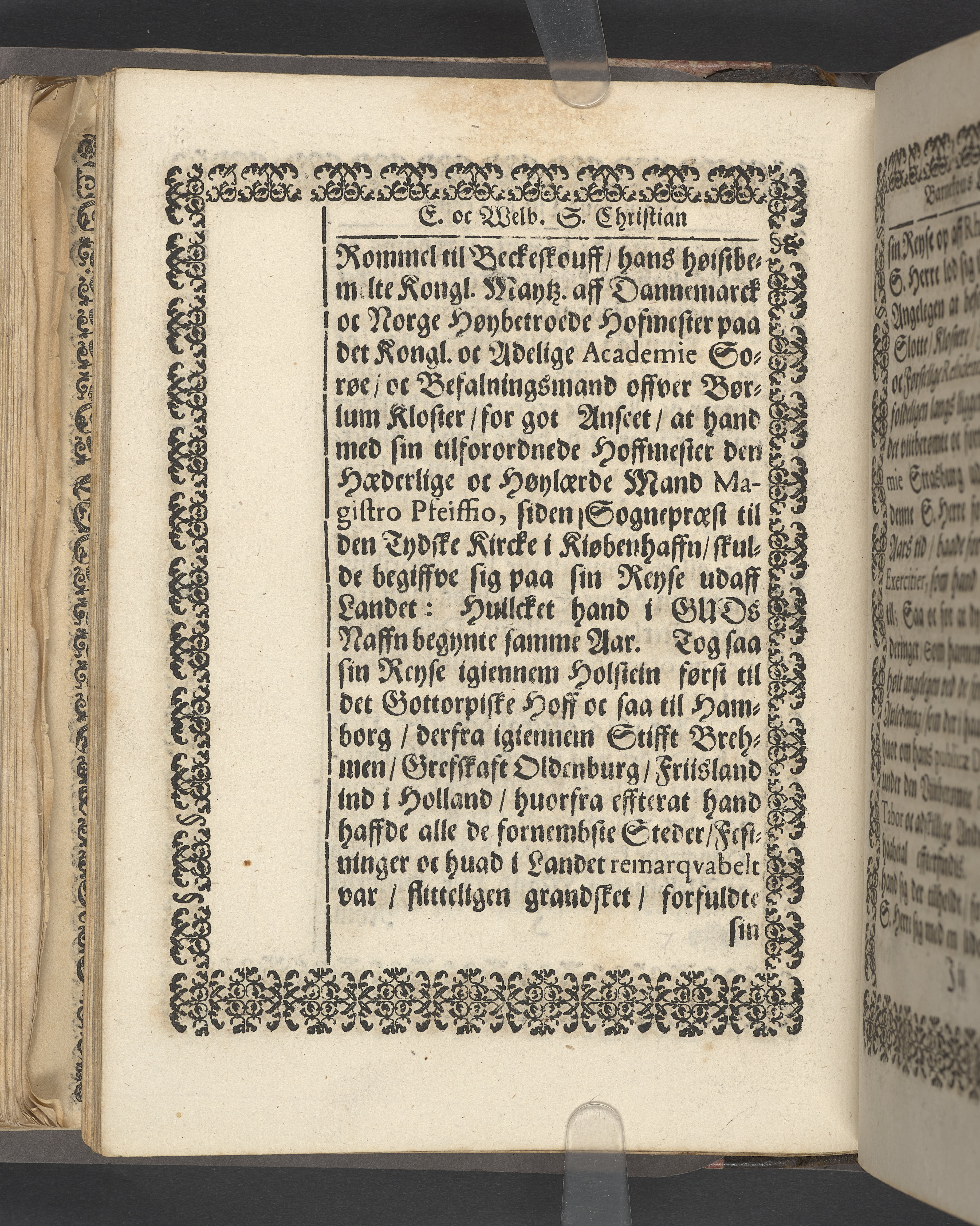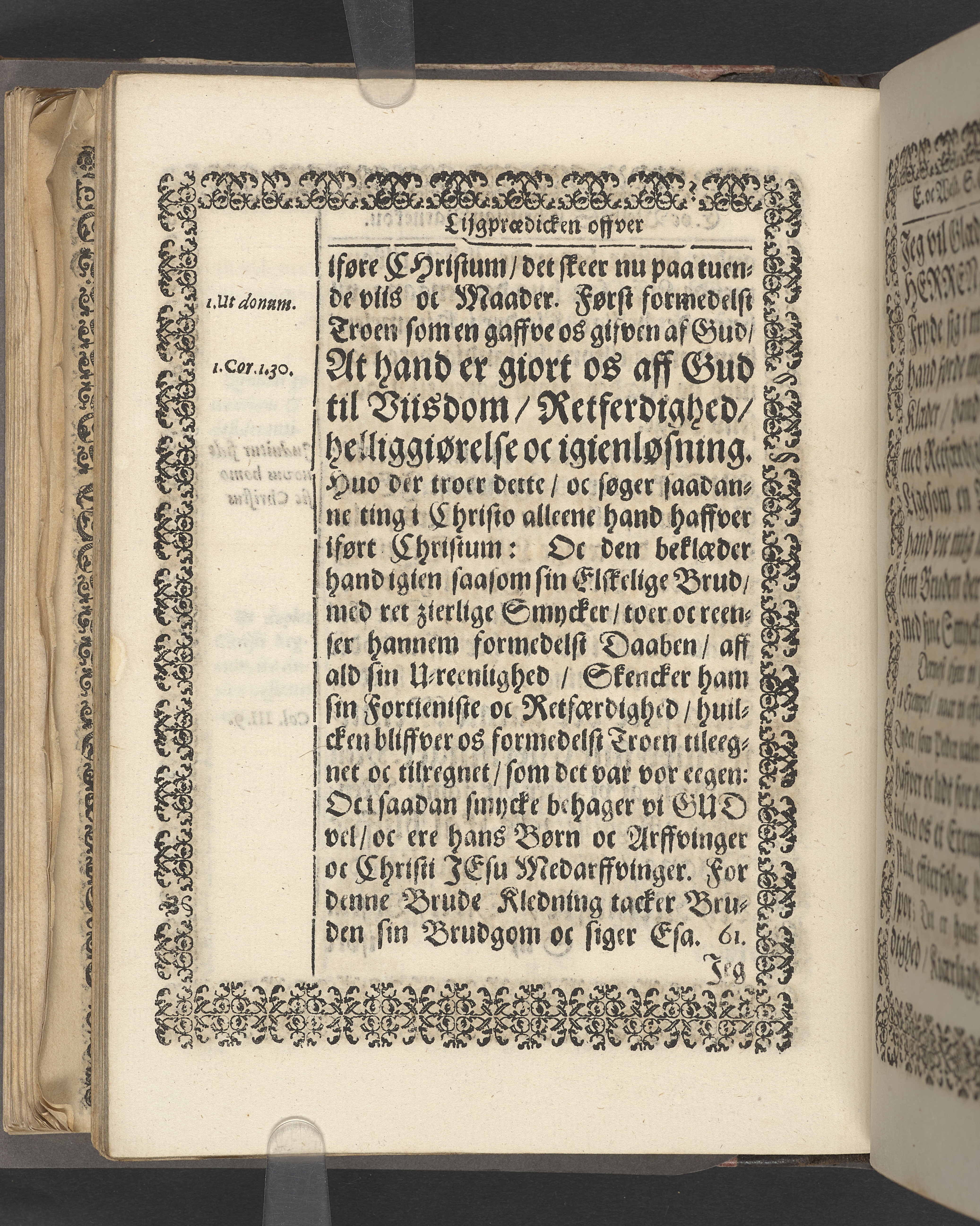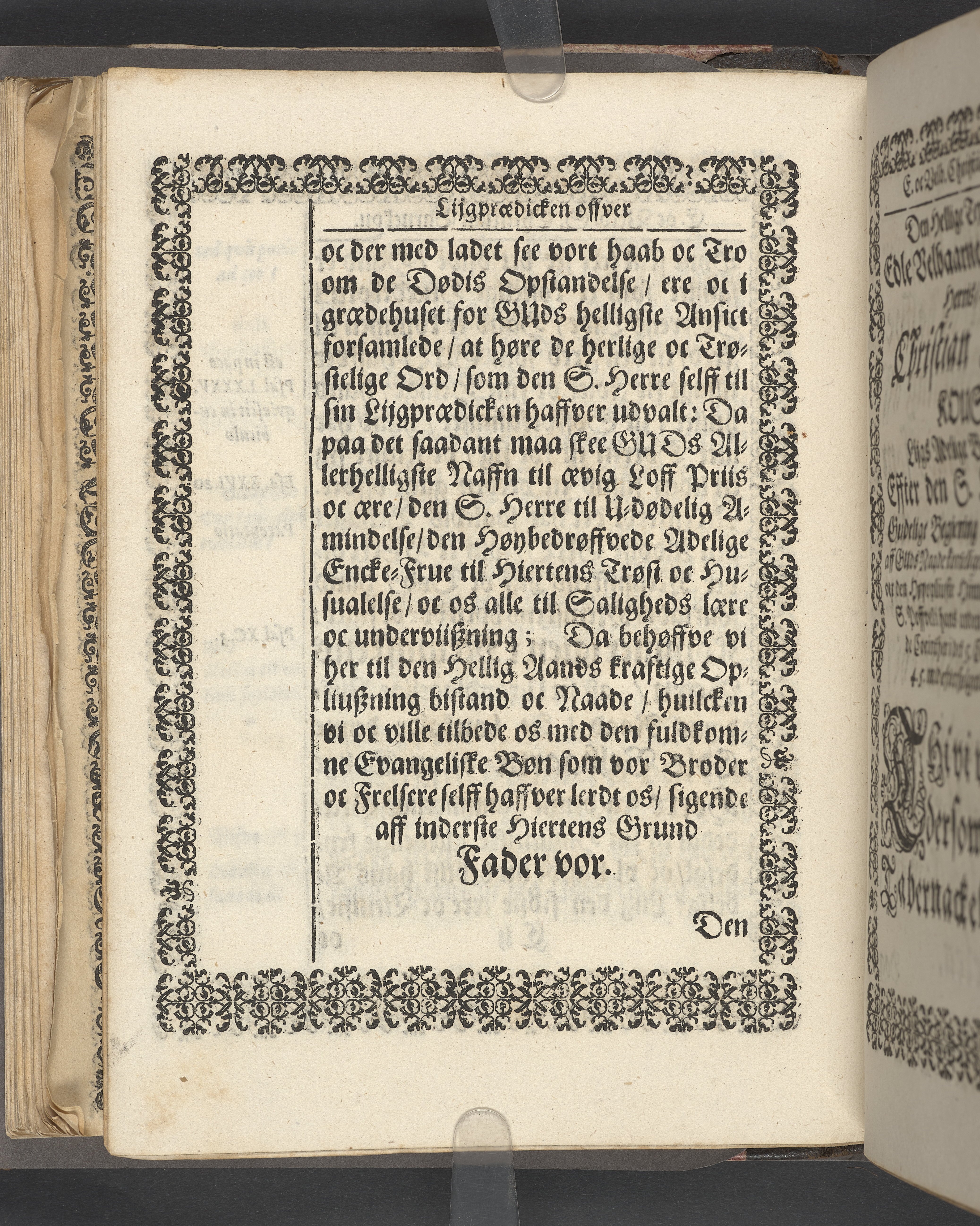 Sprängt snitt. Högst upp på titelsidan anteckning i bläck med uppgifter om födelse- och dödsdatum för den avlidna. Tryckt dedikation till änkan Birgitte Skeel.