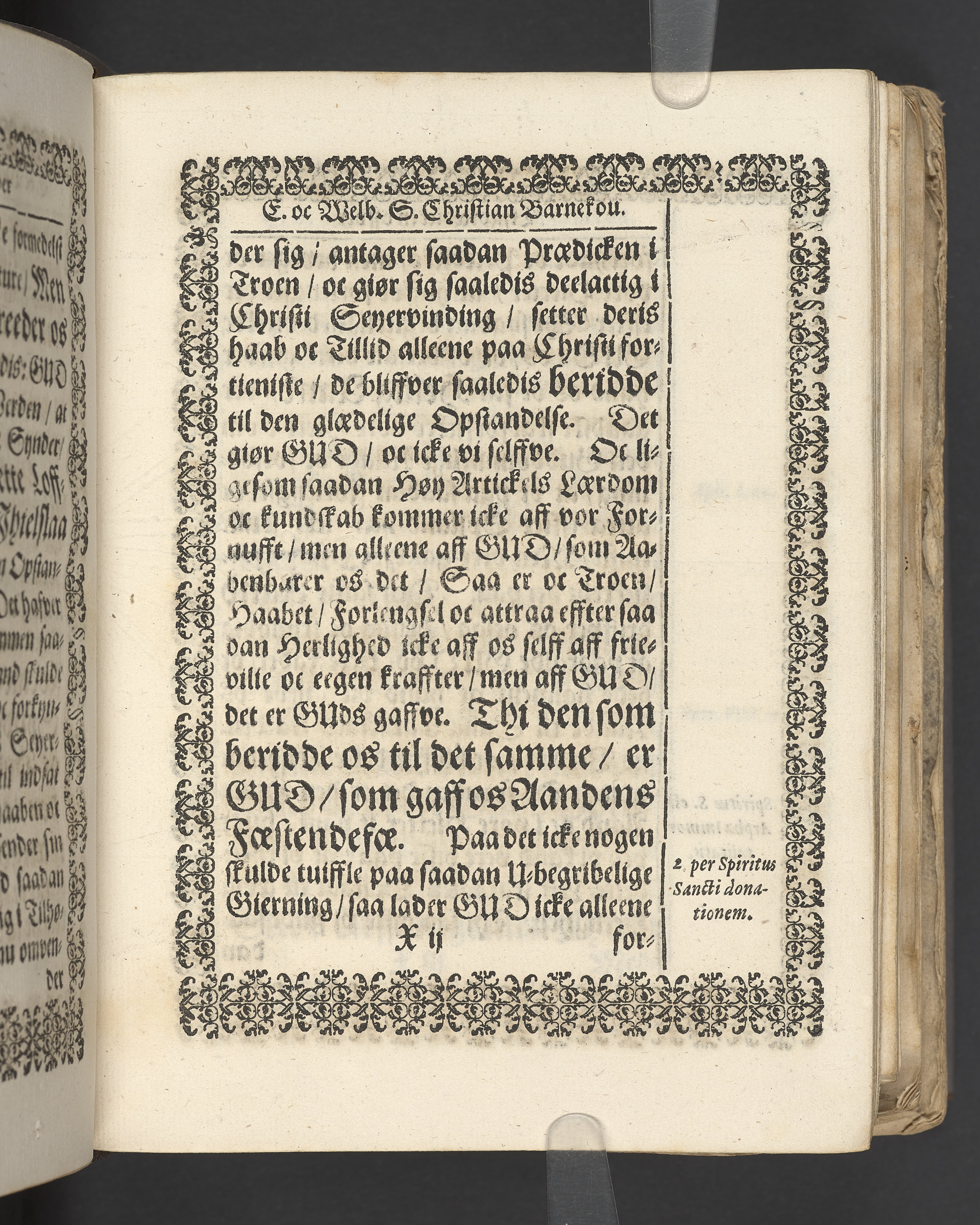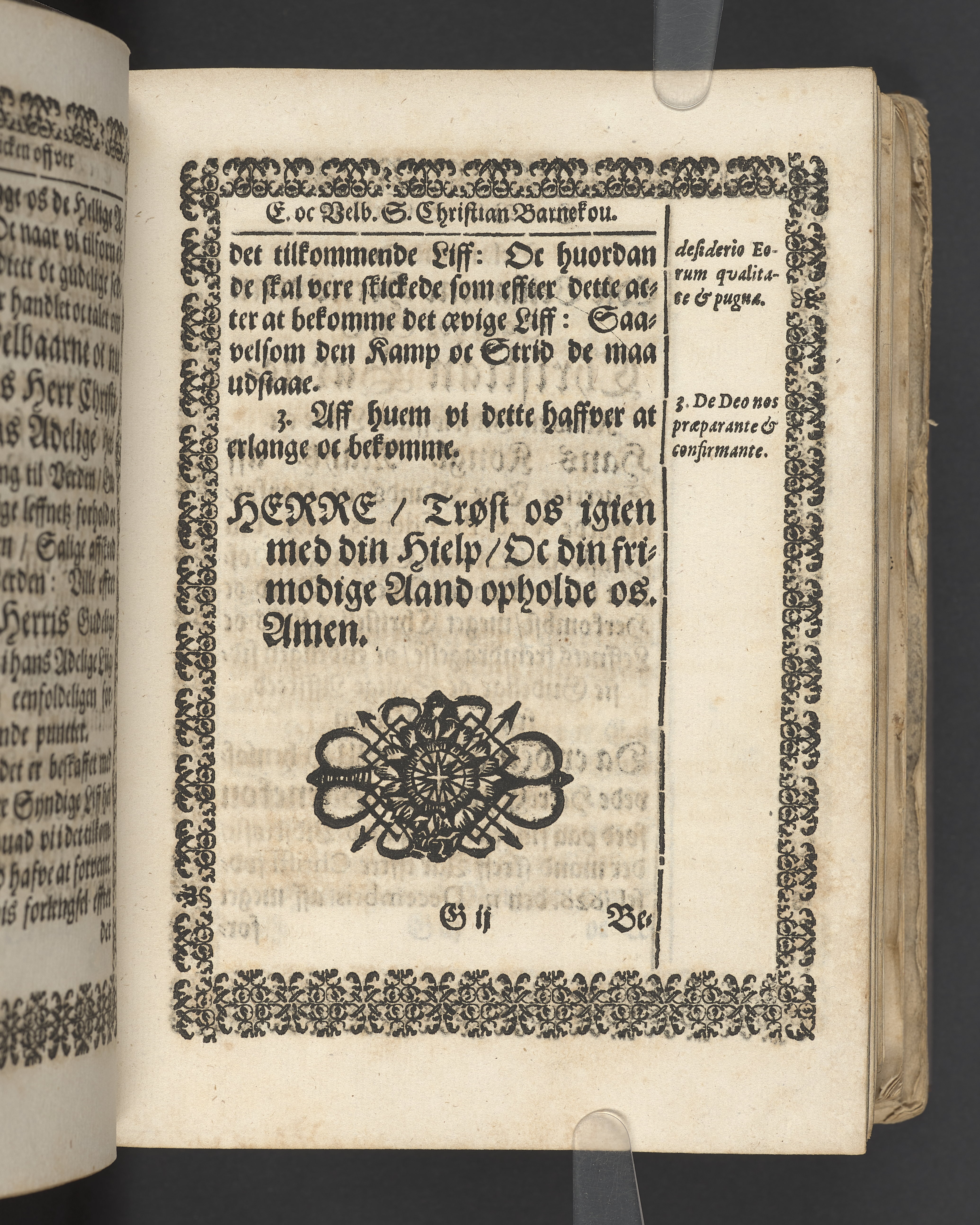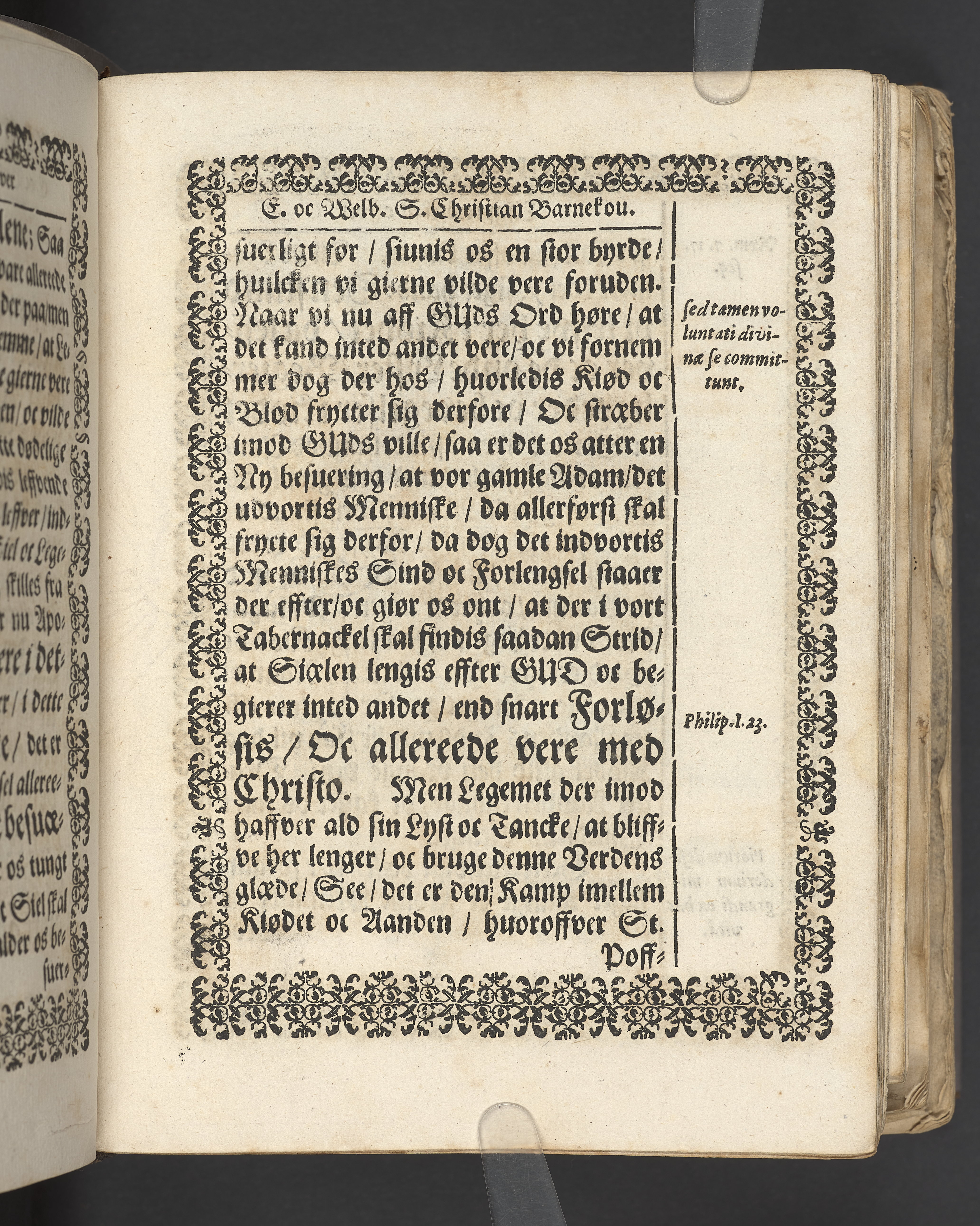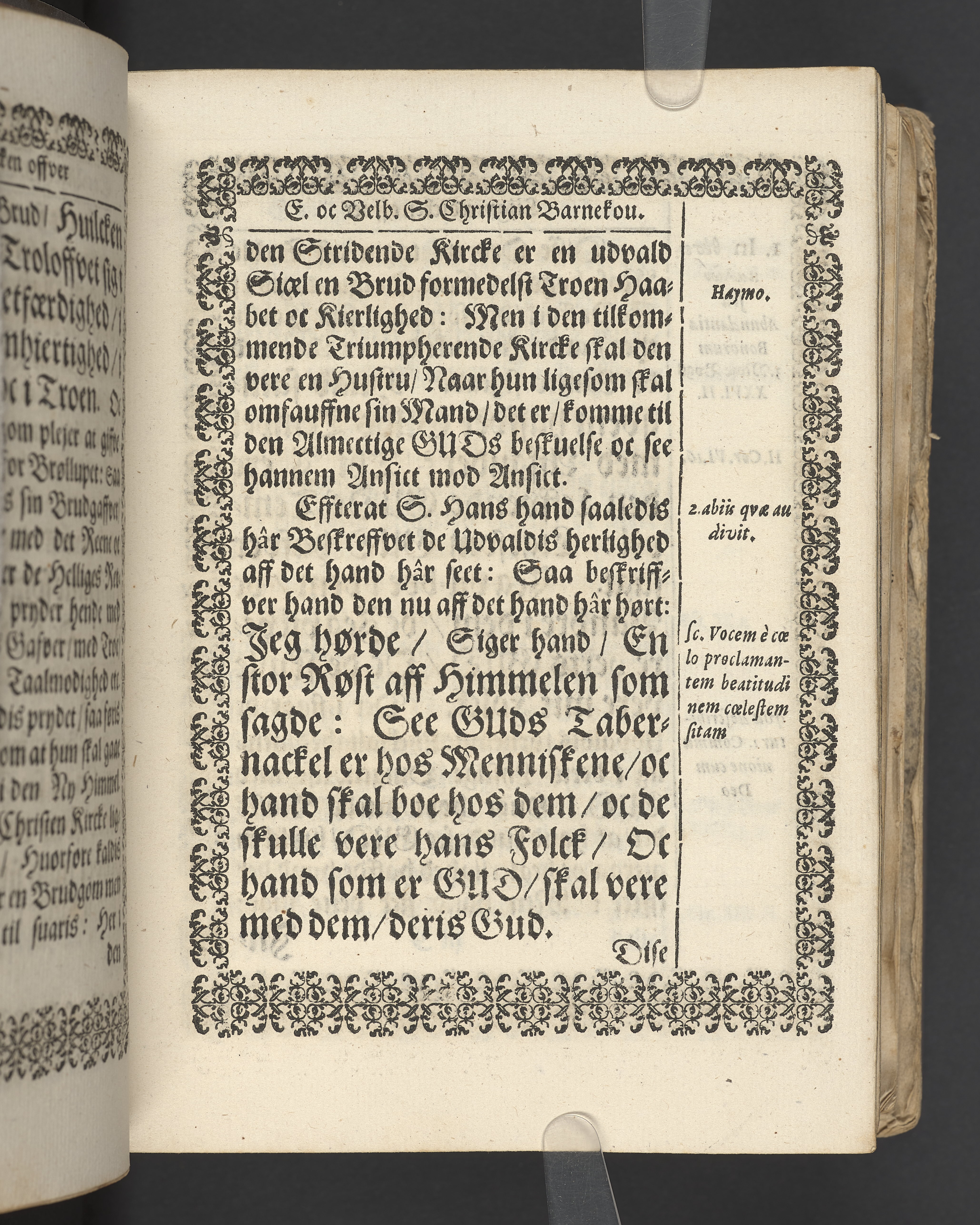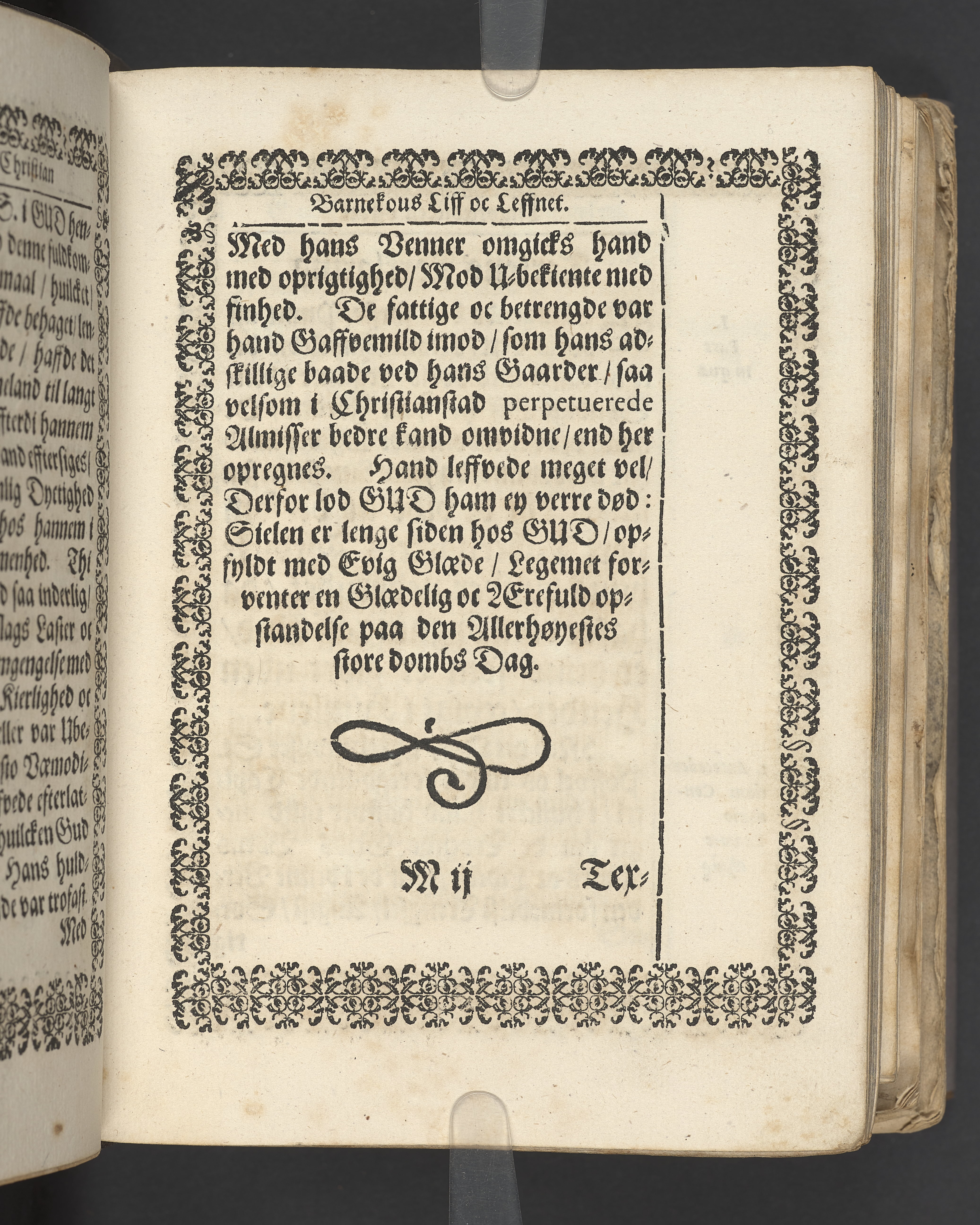 Terrestris tabernaculi destructio et coelestis habitaculi erectio Det er Det Jordiske tabernackels Nedbrydelse Oc Den Himmelske Boliges Oprettelse aff S. Poffvels Andet Sendebreffs V. Capitels 1.2.3.4.5. vers. Udi en Christelig Lijgpredicken Der Aedle/ Velbaarne oc nu Salig hos Gud Christian Barnekou Til Vidskiøffle oc Lilløe etc. Kongl. Maytz. sampt Suerriges Riges Tro mand/ och Høybetroede Vice-Praesident udi den Kongl. Giøtterickes Hof ret udi Jønkiøbing/ Hans Adelige Lijg med Christelige Ceremonier bleff udi mange Velbiurdige oc Fornemme Folckes Haederlige oc Anseelige Forsamling Sørgelig nedsat udi St. Peders Kircke udi Malmøe den 28 Maji Anno 1666. Andraget oc frem sat aff Niels Søffrensen Sougneprest sammestedtz. Kiøbenhafn/ Prentet aff Christen Jensøn Wering Universit. Bogtr. Aar 1666.