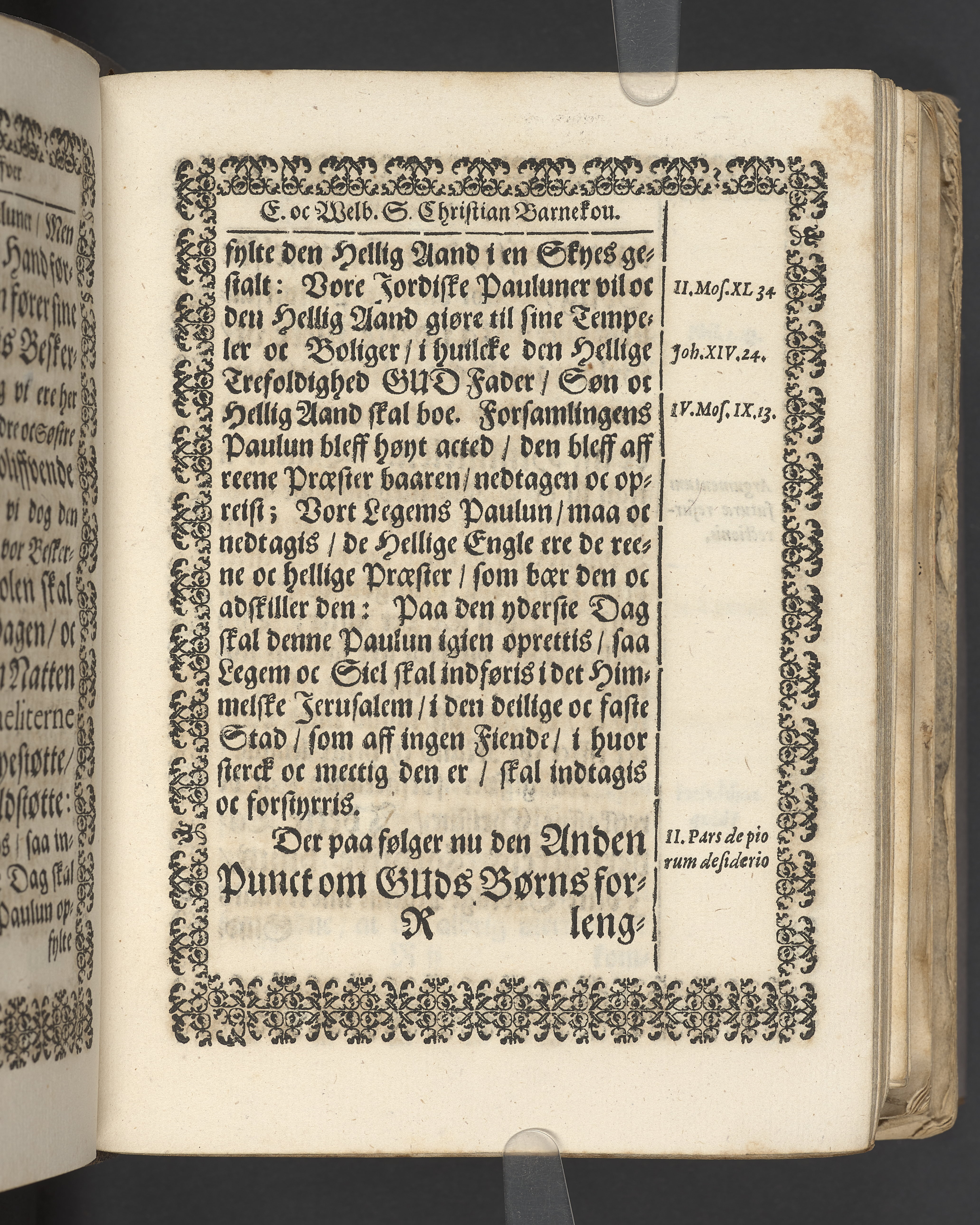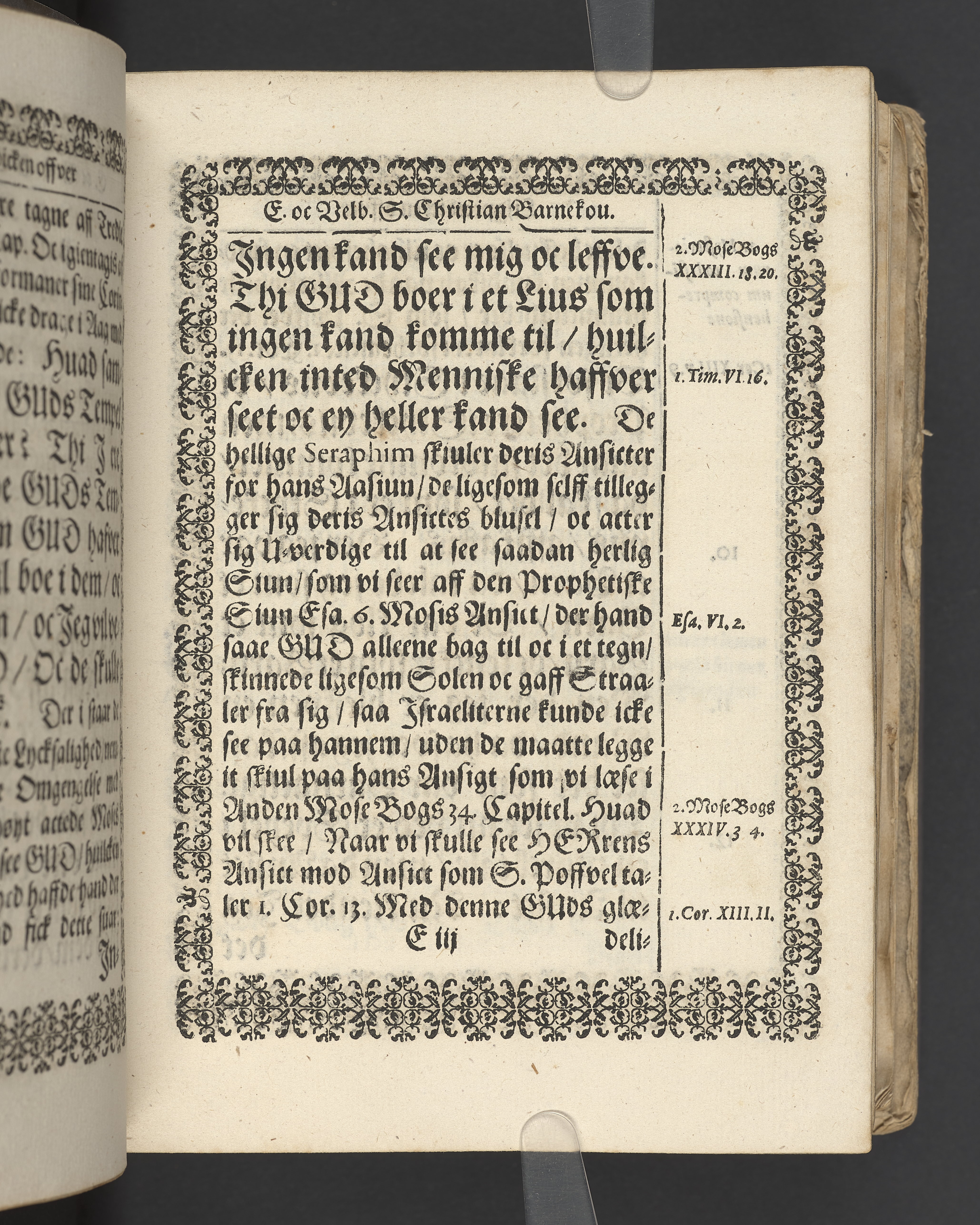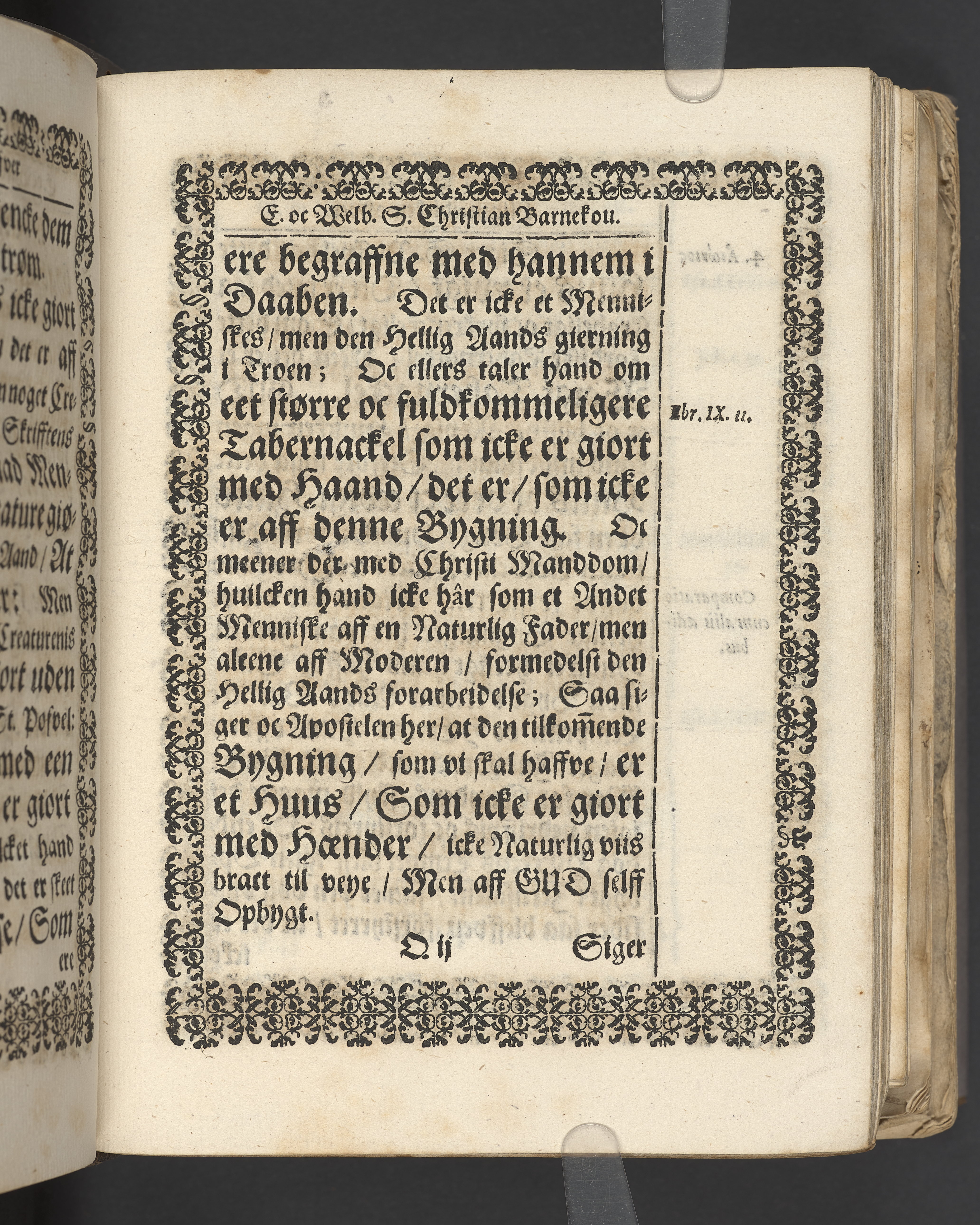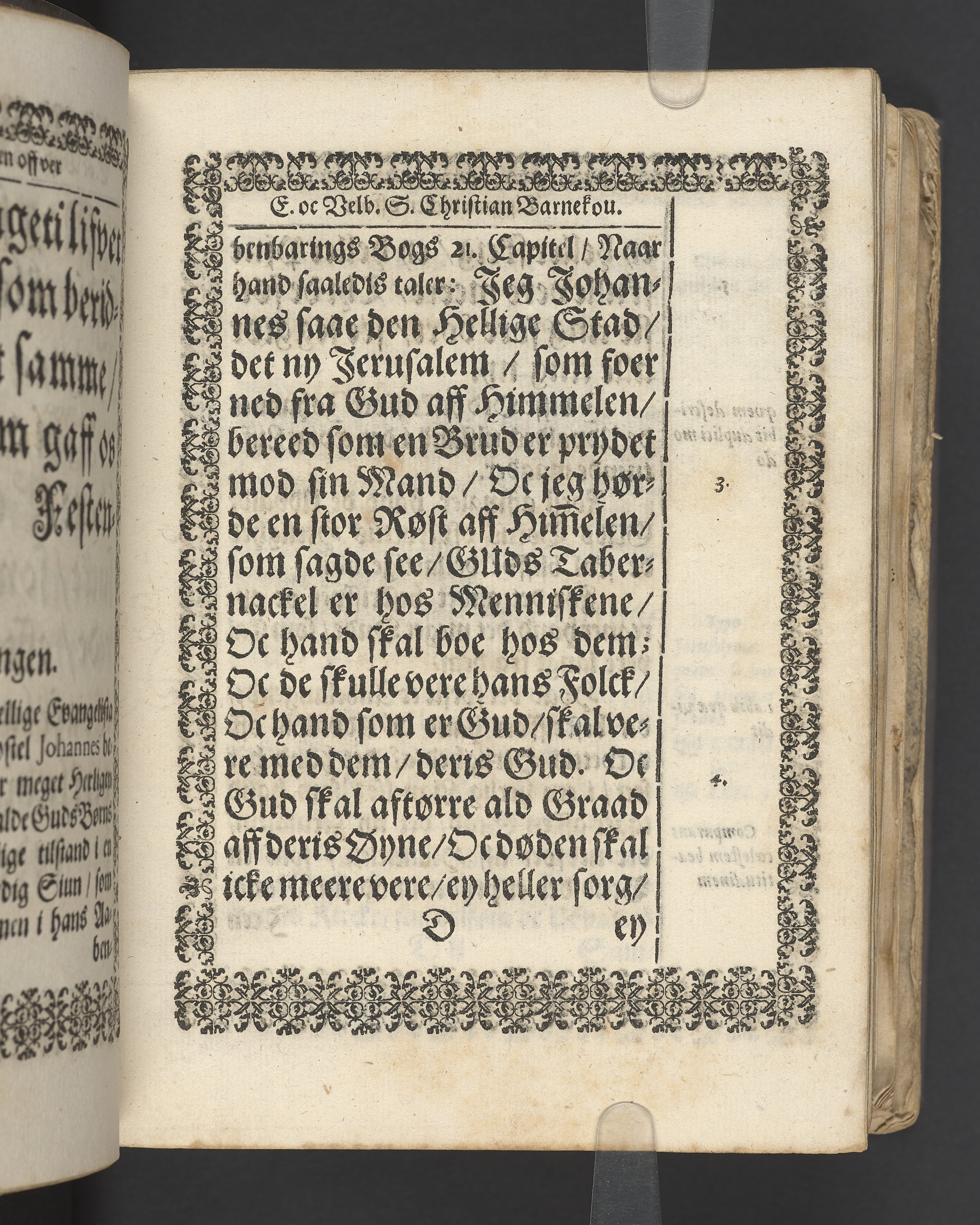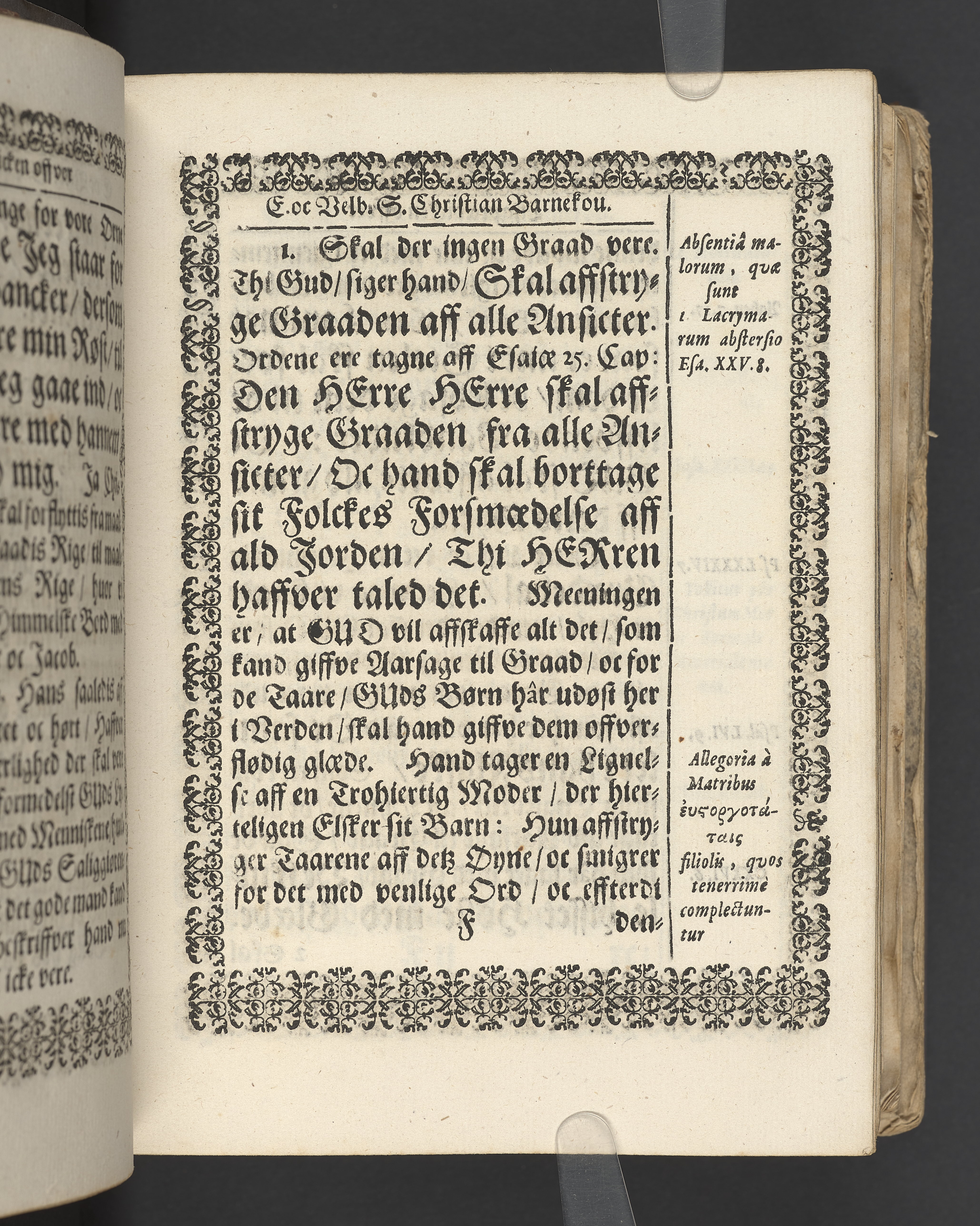 Terrestris tabernaculi destructio et coelestis habitaculi erectio Det er Det Jordiske tabernackels Nedbrydelse Oc Den Himmelske Boliges Oprettelse aff S. Poffvels Andet Sendebreffs V. Capitels 1.2.3.4.5. vers. Udi en Christelig Lijgpredicken Der Aedle/ Velbaarne oc nu Salig hos Gud Christian Barnekou Til Vidskiøffle oc Lilløe etc. Kongl. Maytz. sampt Suerriges Riges Tro mand/ och Høybetroede Vice-Praesident udi den Kongl. Giøtterickes Hof ret udi Jønkiøbing/ Hans Adelige Lijg med Christelige Ceremonier bleff udi mange Velbiurdige oc Fornemme Folckes Haederlige oc Anseelige Forsamling Sørgelig nedsat udi St. Peders Kircke udi Malmøe den 28 Maji Anno 1666. Andraget oc frem sat aff Niels Søffrensen Sougneprest sammestedtz. Kiøbenhafn/ Prentet aff Christen Jensøn Wering Universit. Bogtr. Aar 1666.