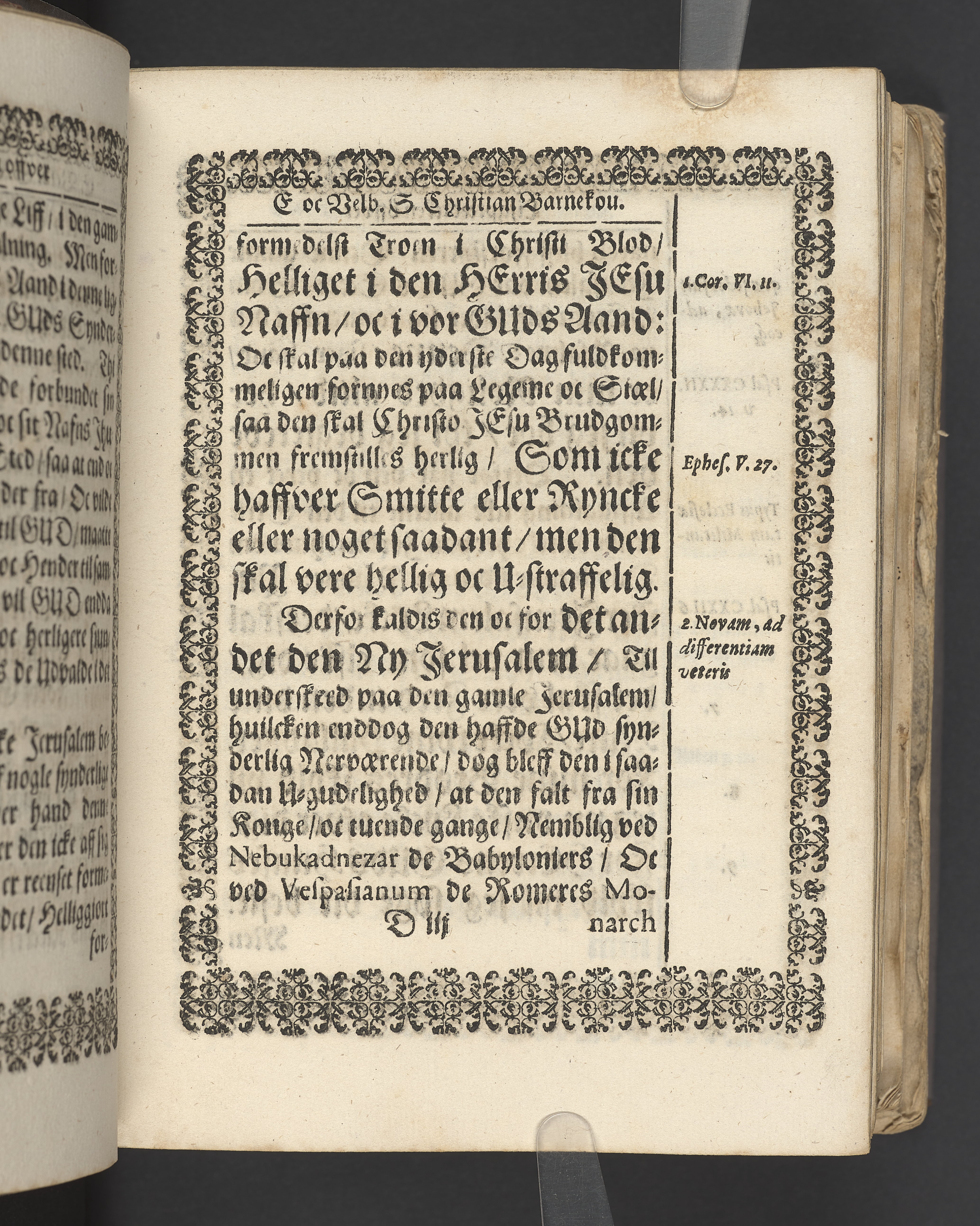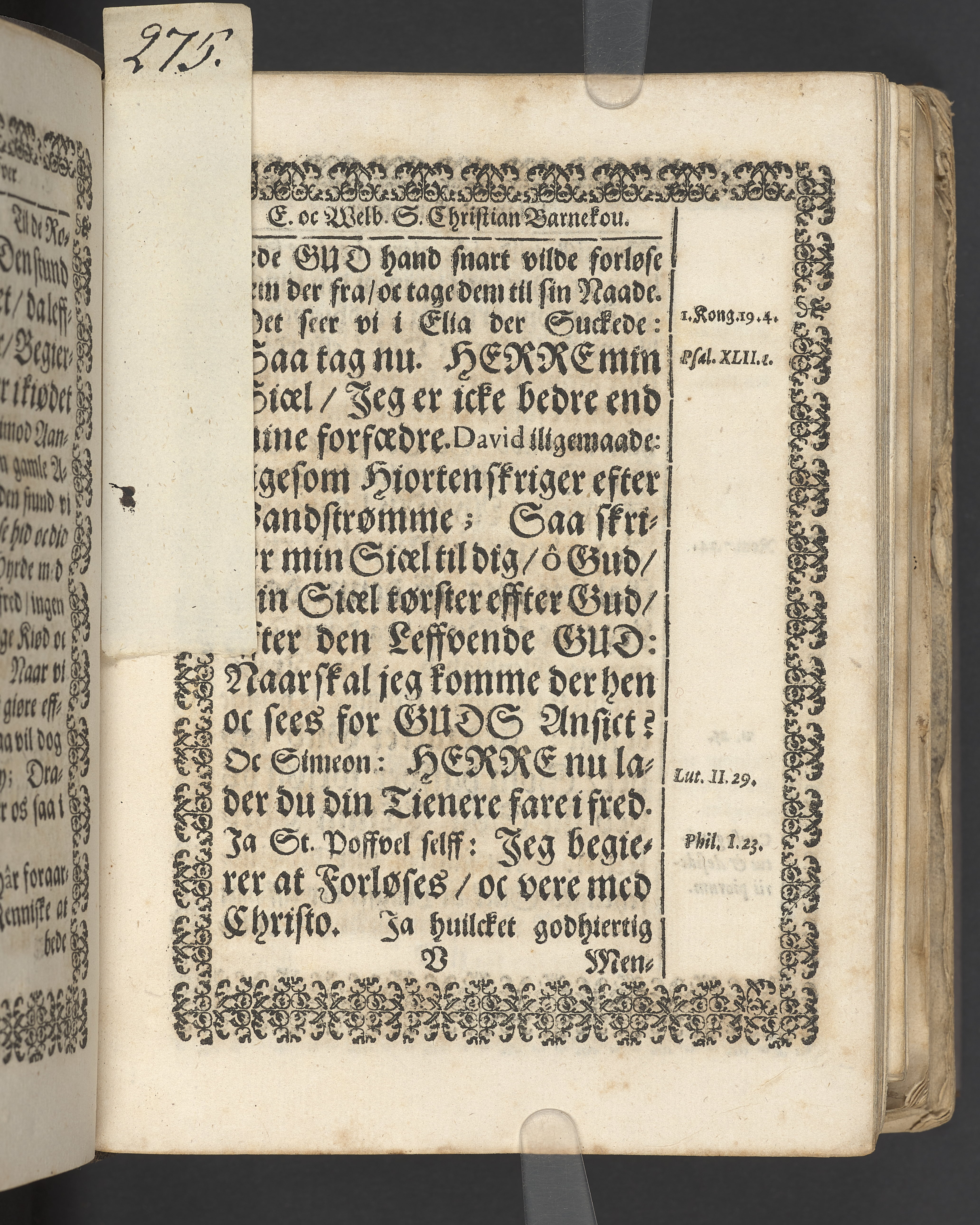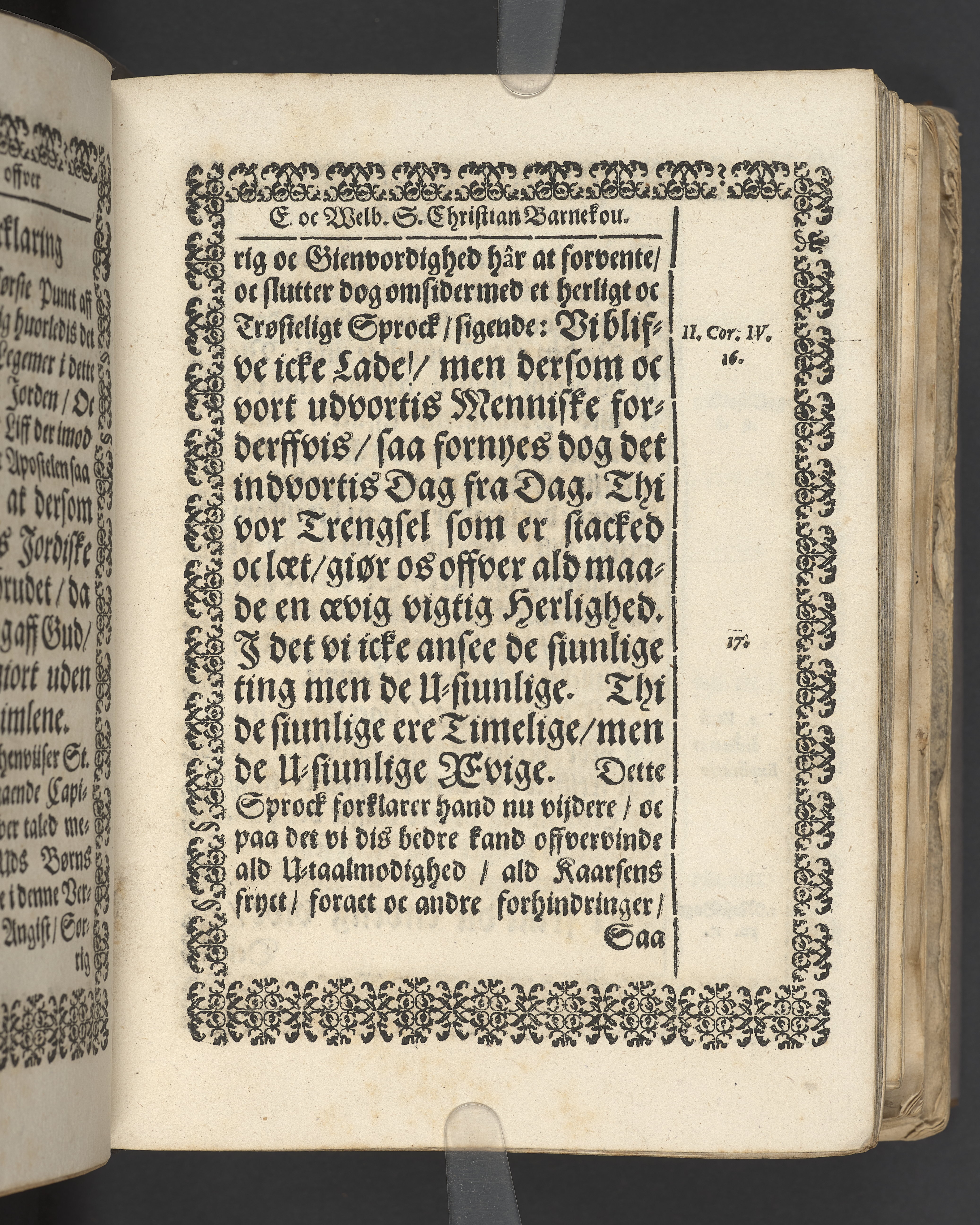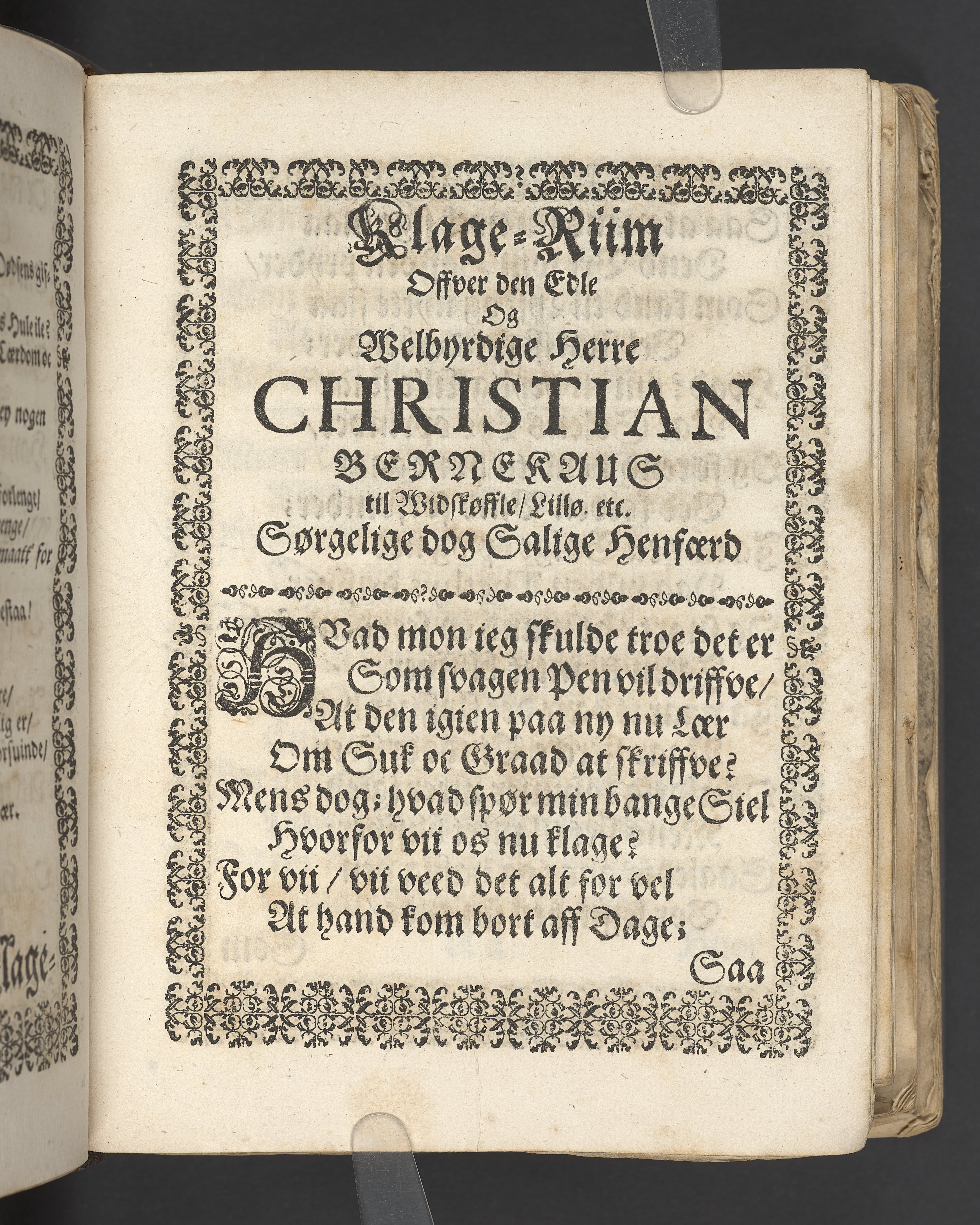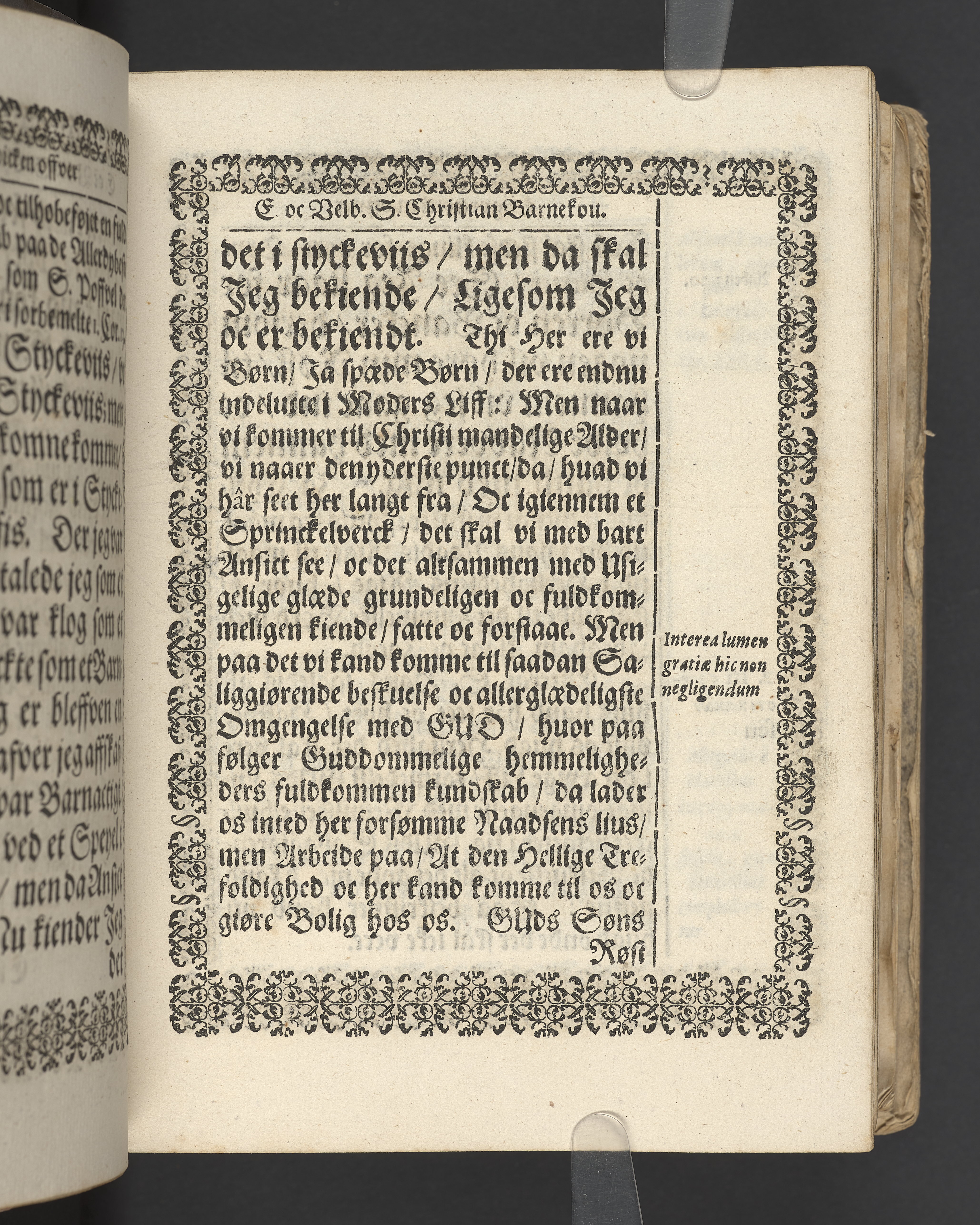 Terrestris tabernaculi destructio et coelestis habitaculi erectio Det er Det Jordiske tabernackels Nedbrydelse Oc Den Himmelske Boliges Oprettelse aff S. Poffvels Andet Sendebreffs V. Capitels 1.2.3.4.5. vers. Udi en Christelig Lijgpredicken Der Aedle/ Velbaarne oc nu Salig hos Gud Christian Barnekou Til Vidskiøffle oc Lilløe etc. Kongl. Maytz. sampt Suerriges Riges Tro mand/ och Høybetroede Vice-Praesident udi den Kongl. Giøtterickes Hof ret udi Jønkiøbing/ Hans Adelige Lijg med Christelige Ceremonier bleff udi mange Velbiurdige oc Fornemme Folckes Haederlige oc Anseelige Forsamling Sørgelig nedsat udi St. Peders Kircke udi Malmøe den 28 Maji Anno 1666. Andraget oc frem sat aff Niels Søffrensen Sougneprest sammestedtz. Kiøbenhafn/ Prentet aff Christen Jensøn Wering Universit. Bogtr. Aar 1666.