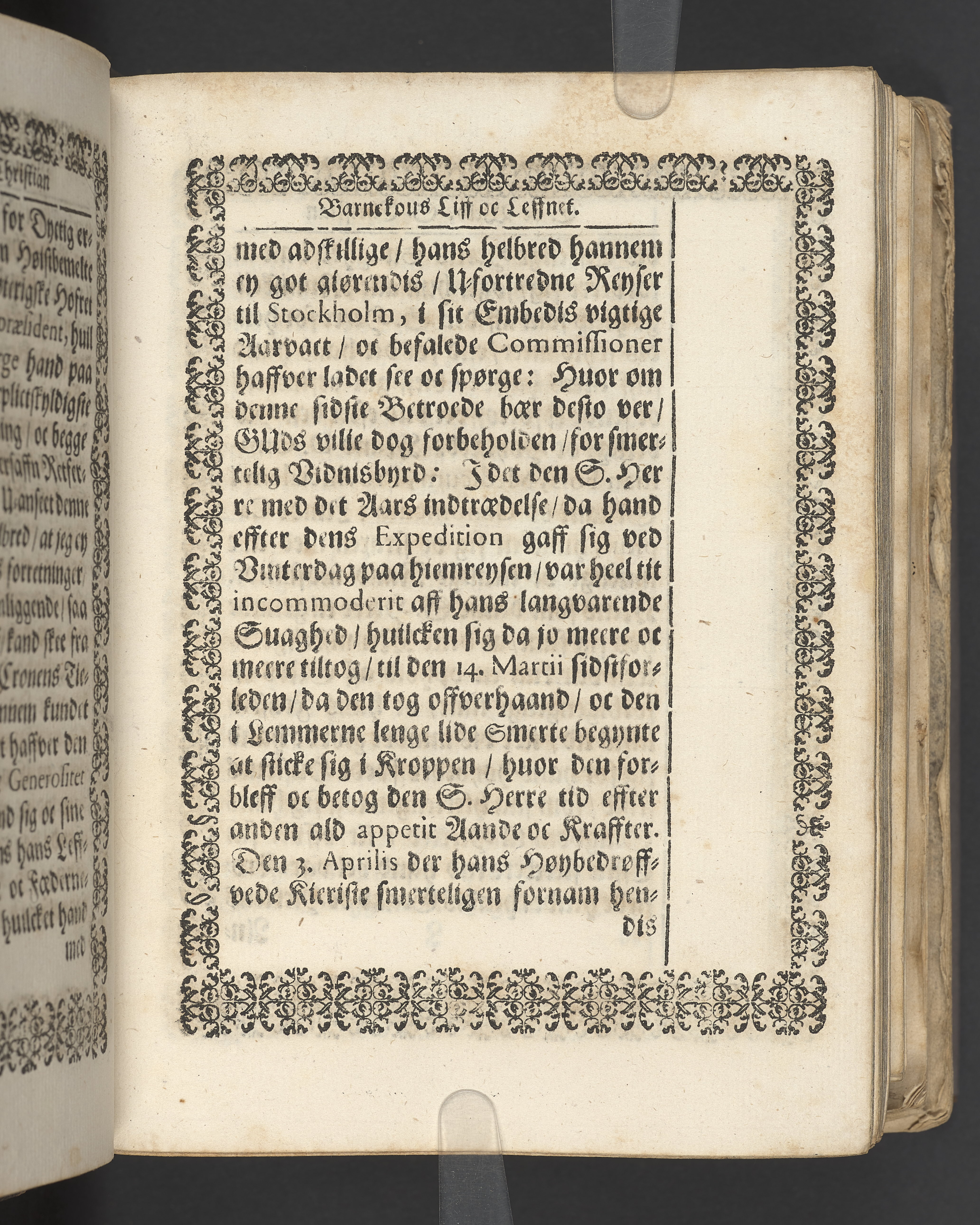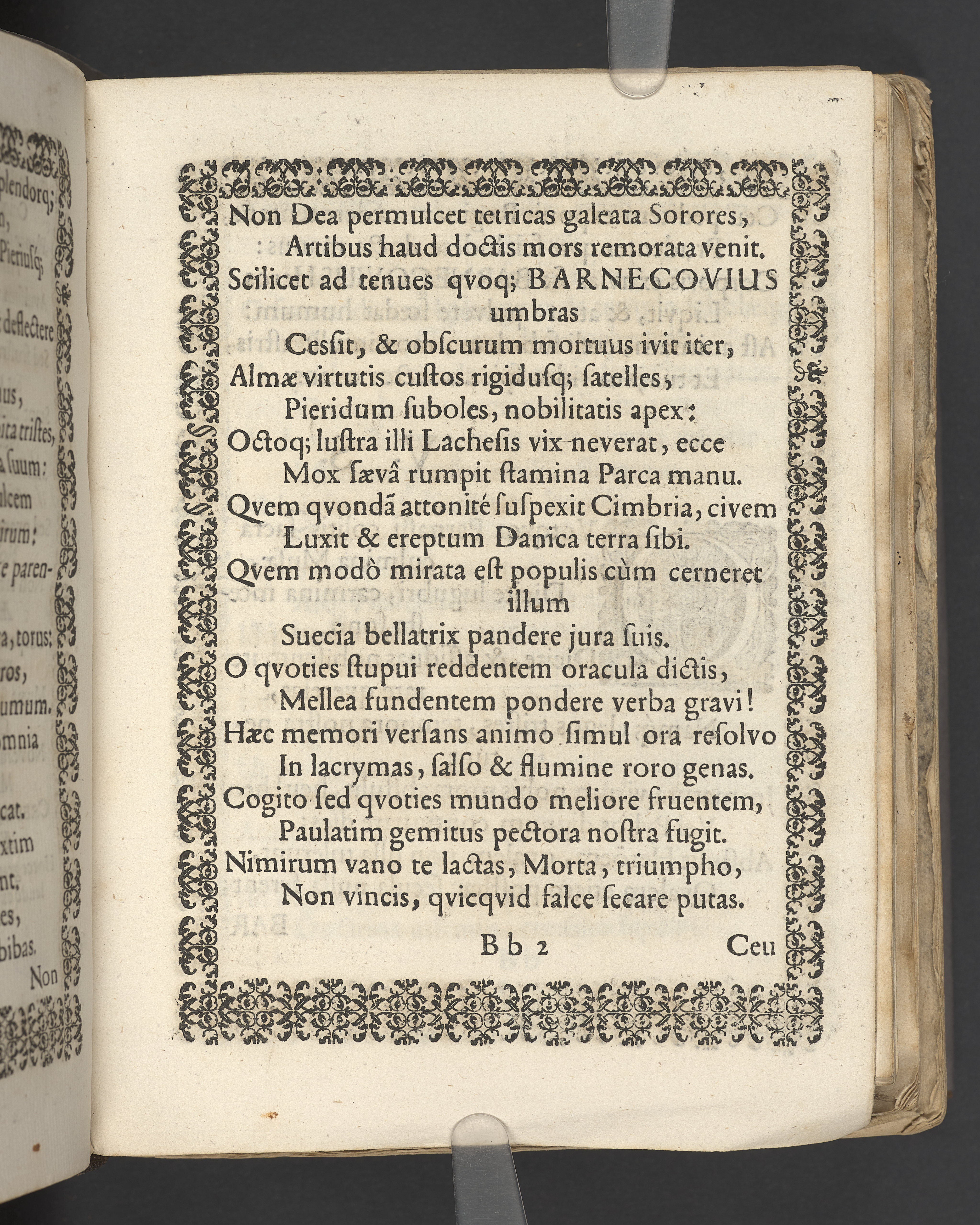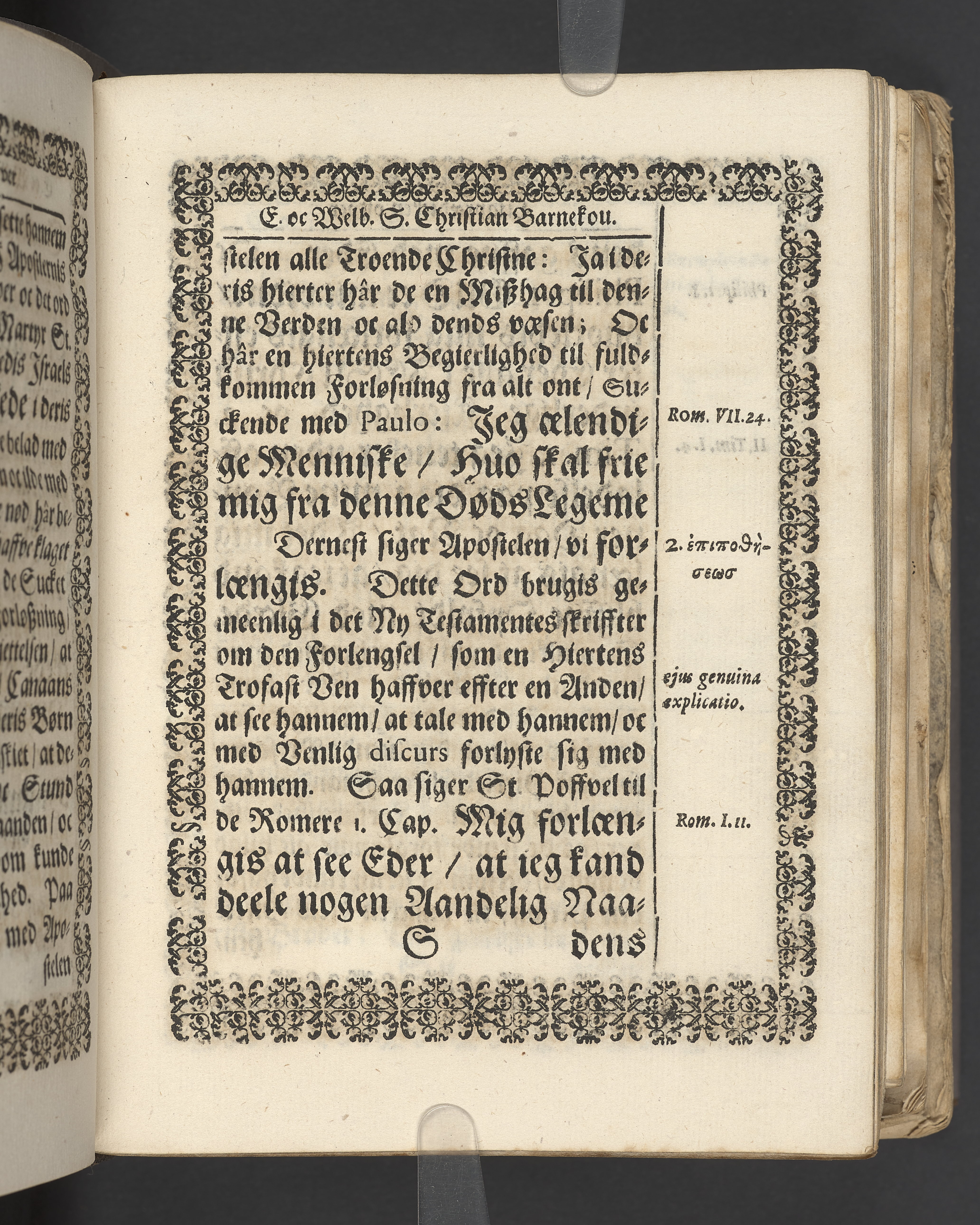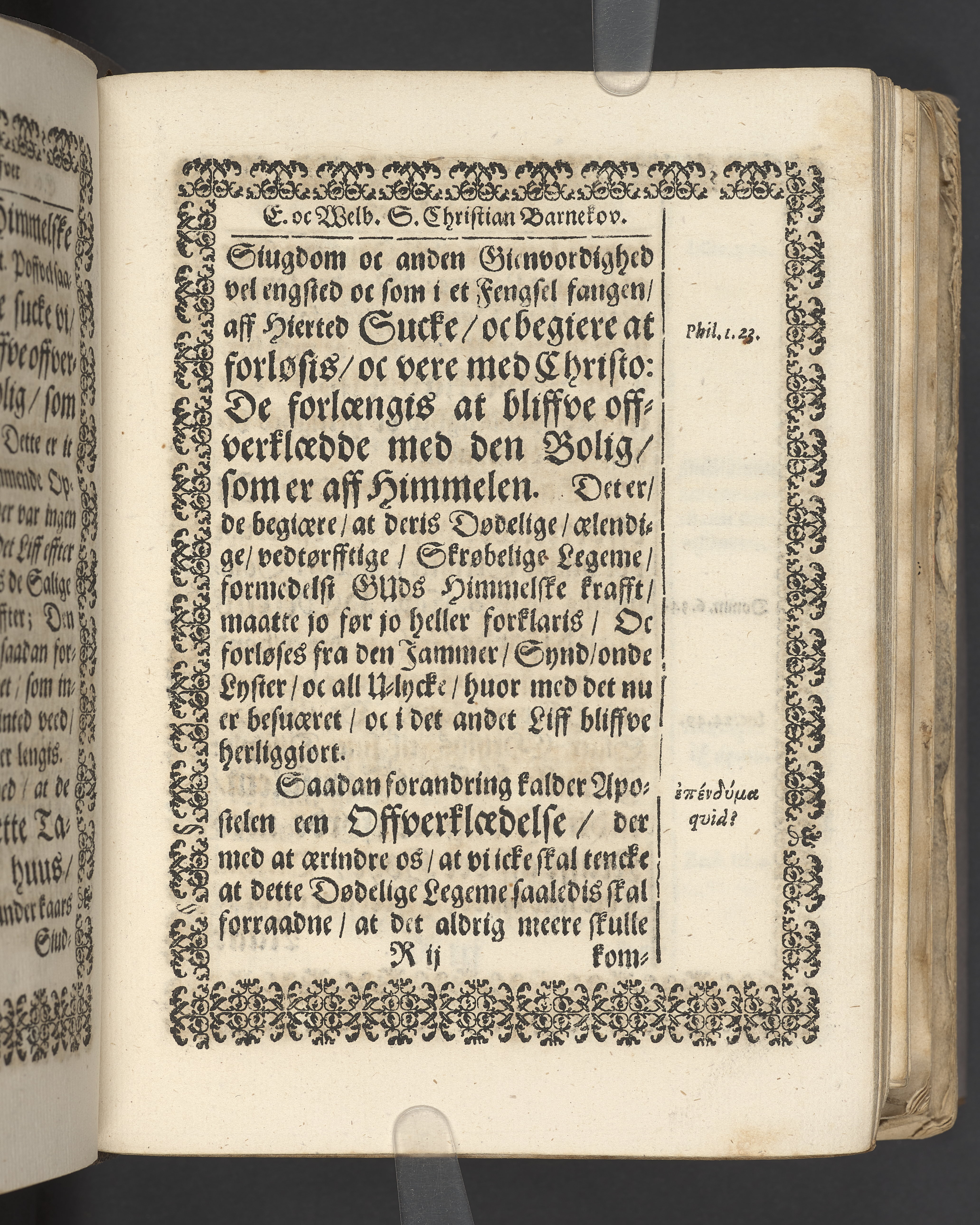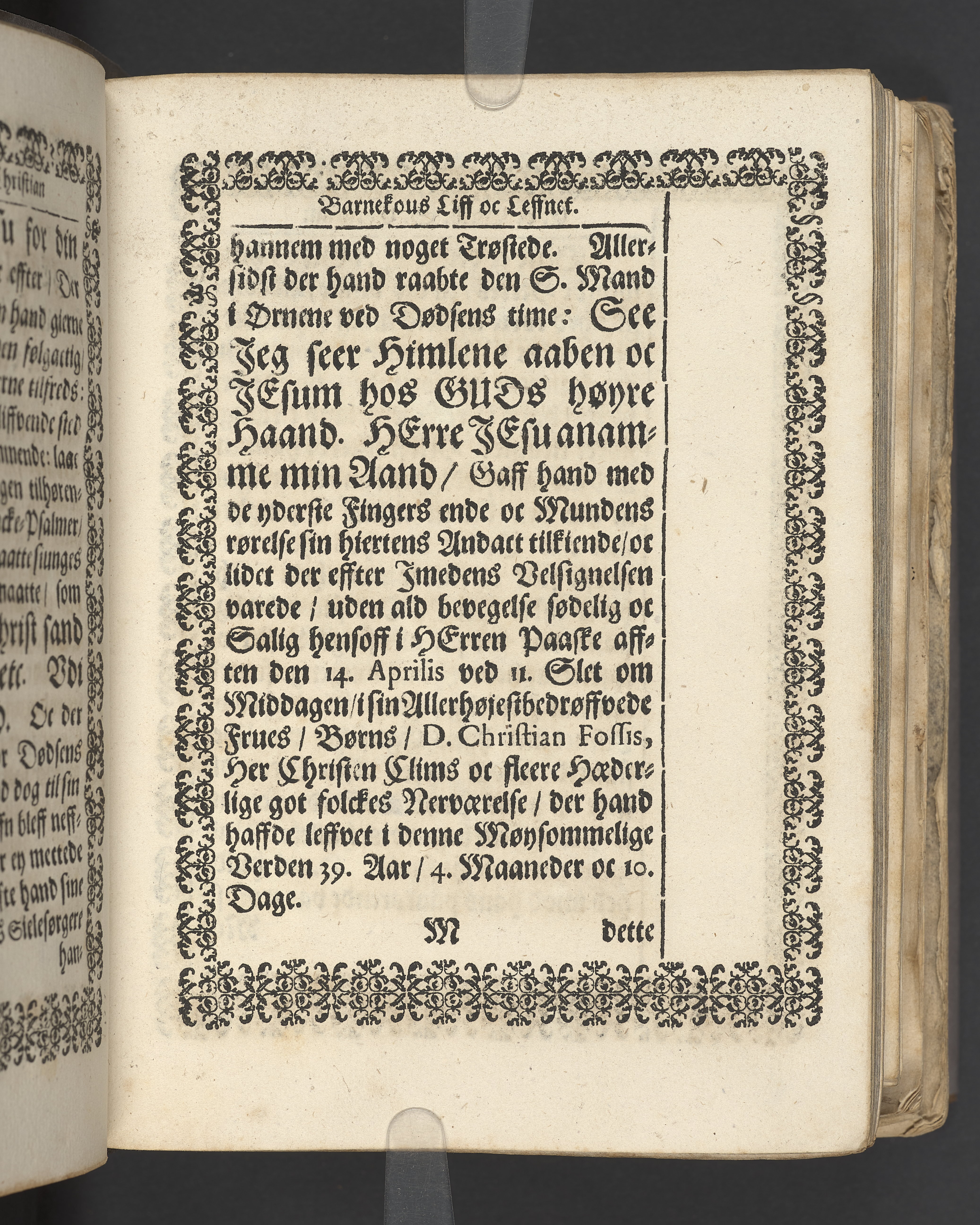 Terrestris tabernaculi destructio et coelestis habitaculi erectio Det er Det Jordiske tabernackels Nedbrydelse Oc Den Himmelske Boliges Oprettelse aff S. Poffvels Andet Sendebreffs V. Capitels 1.2.3.4.5. vers. Udi en Christelig Lijgpredicken Der Aedle/ Velbaarne oc nu Salig hos Gud Christian Barnekou Til Vidskiøffle oc Lilløe etc. Kongl. Maytz. sampt Suerriges Riges Tro mand/ och Høybetroede Vice-Praesident udi den Kongl. Giøtterickes Hof ret udi Jønkiøbing/ Hans Adelige Lijg med Christelige Ceremonier bleff udi mange Velbiurdige oc Fornemme Folckes Haederlige oc Anseelige Forsamling Sørgelig nedsat udi St. Peders Kircke udi Malmøe den 28 Maji Anno 1666. Andraget oc frem sat aff Niels Søffrensen Sougneprest sammestedtz. Kiøbenhafn/ Prentet aff Christen Jensøn Wering Universit. Bogtr. Aar 1666.