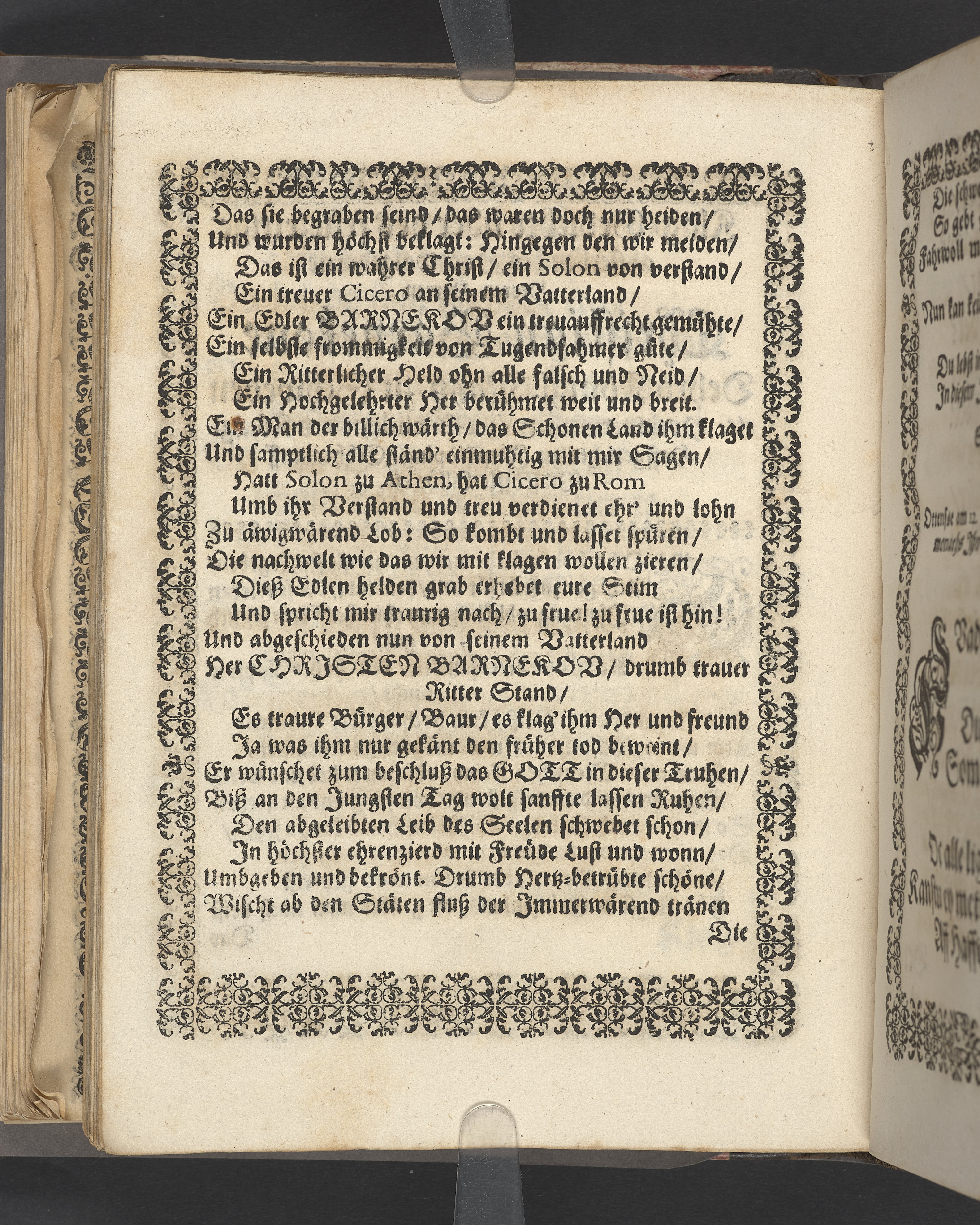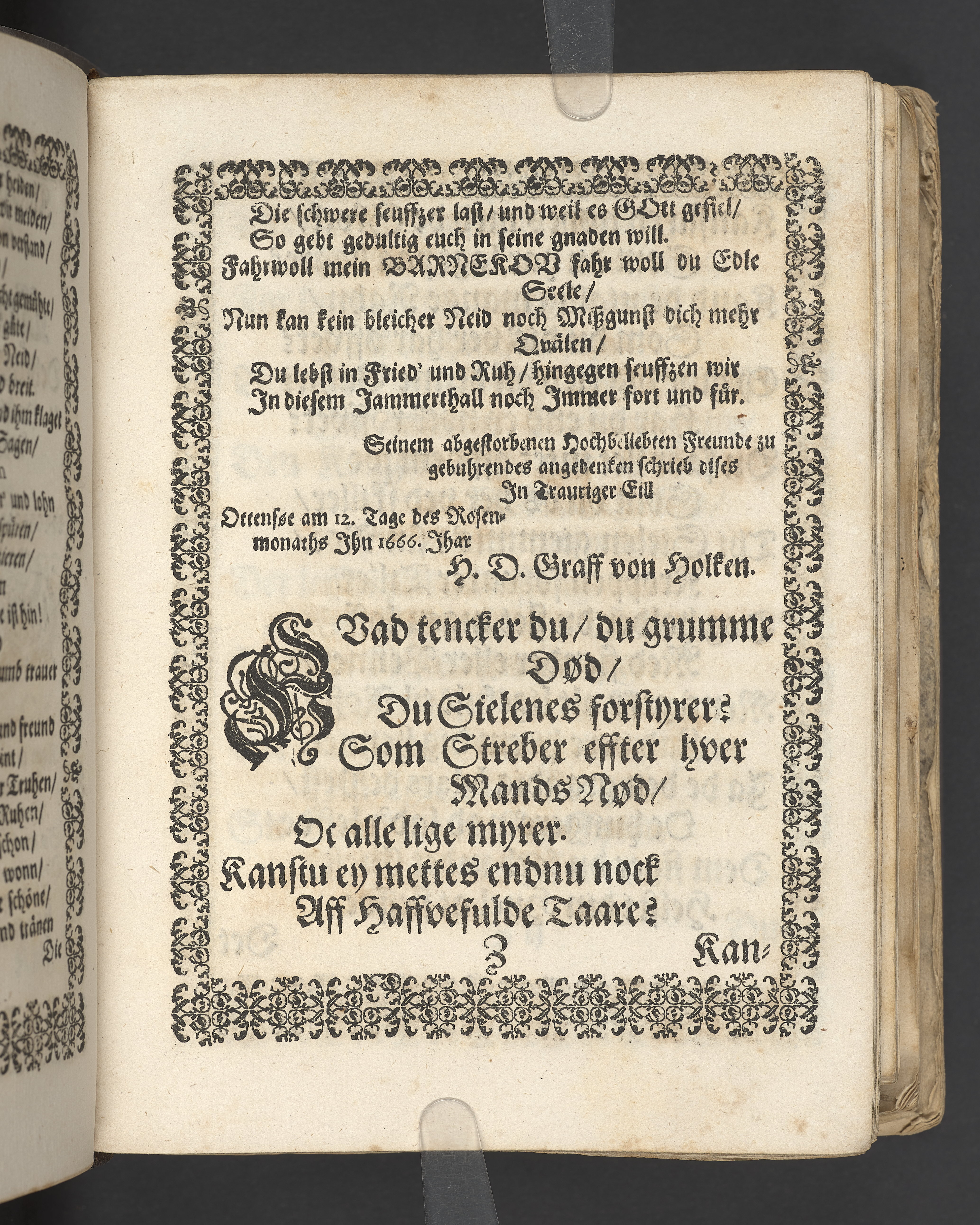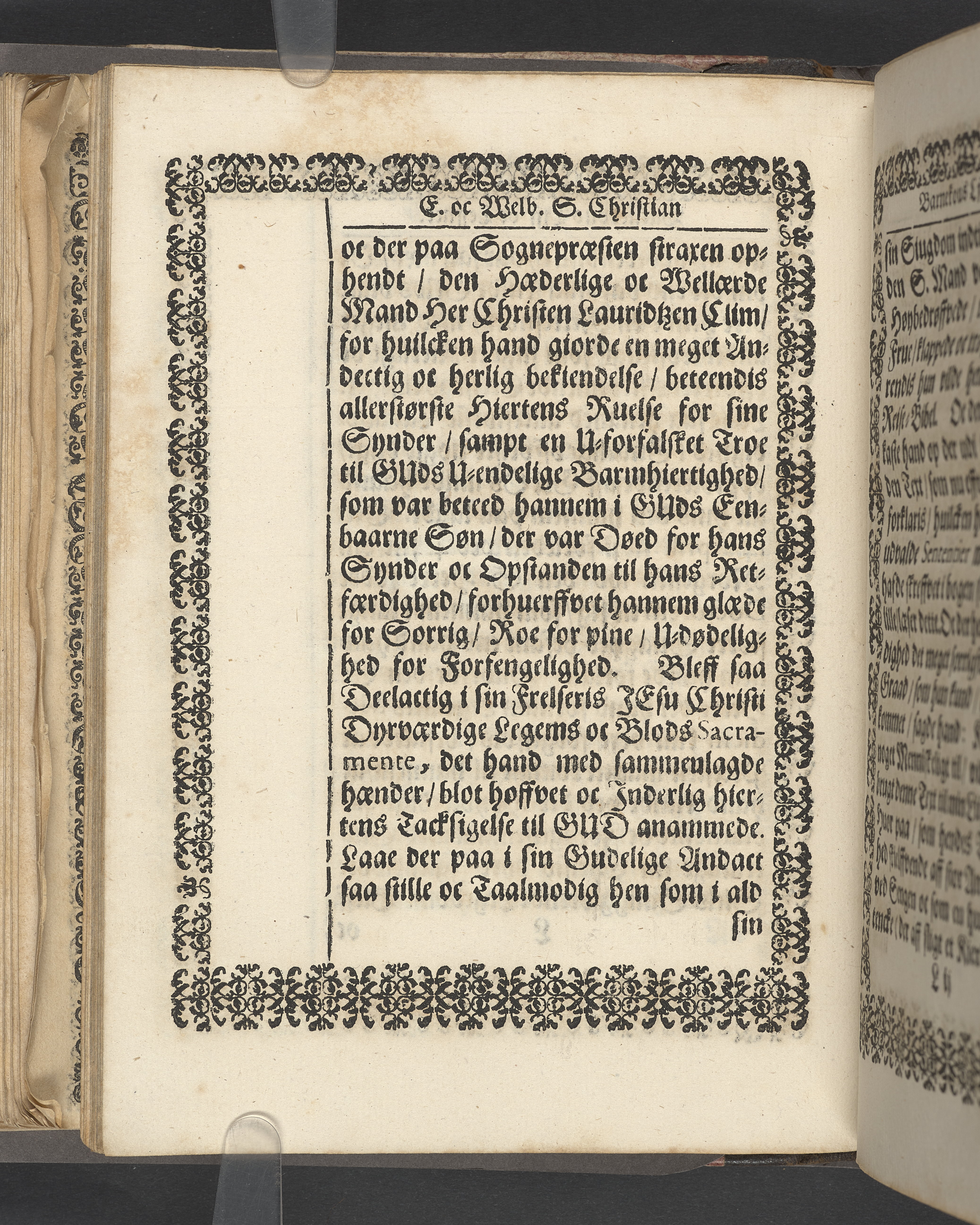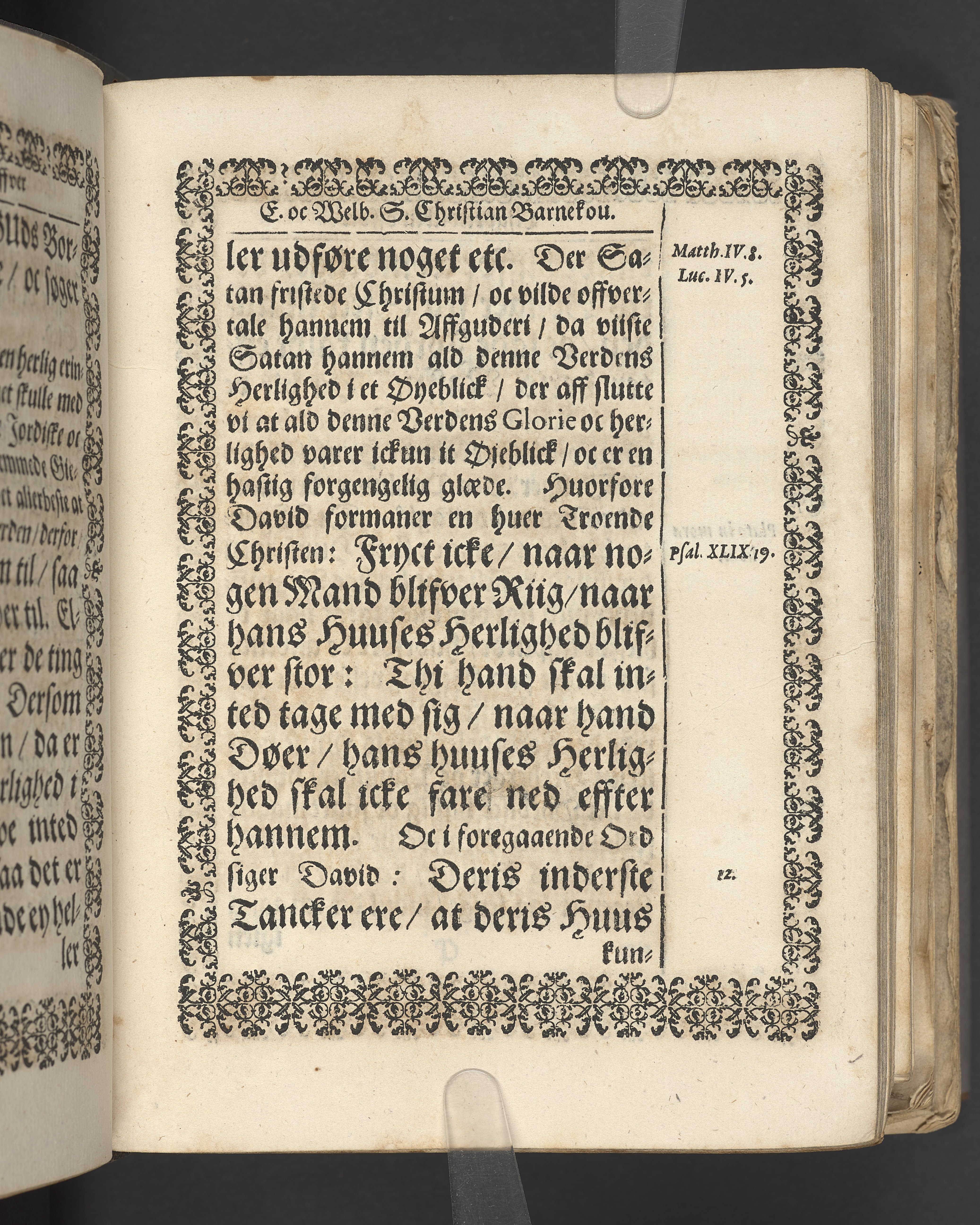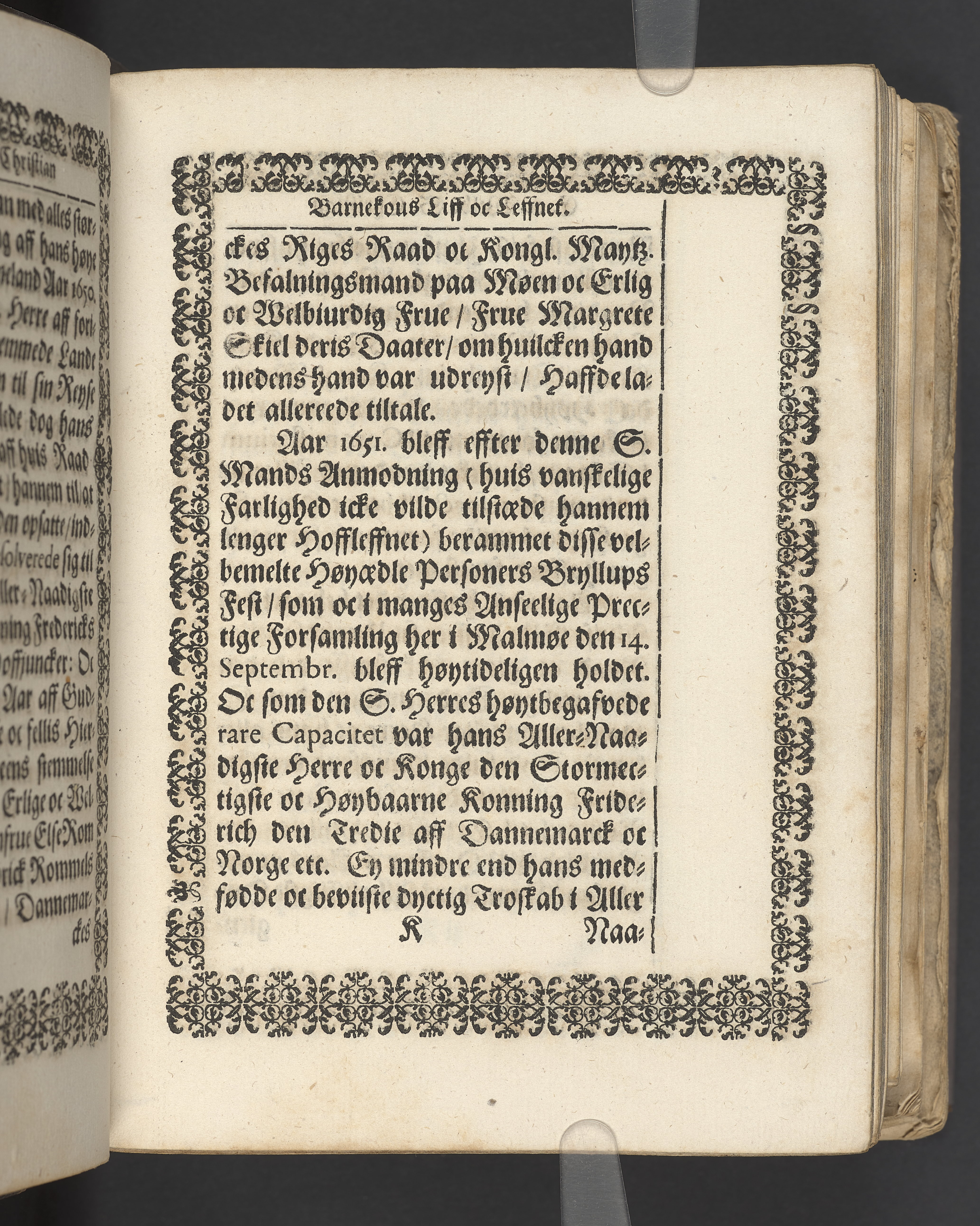 Terrestris tabernaculi destructio et coelestis habitaculi erectio Det er Det Jordiske tabernackels Nedbrydelse Oc Den Himmelske Boliges Oprettelse aff S. Poffvels Andet Sendebreffs V. Capitels 1.2.3.4.5. vers. Udi en Christelig Lijgpredicken Der Aedle/ Velbaarne oc nu Salig hos Gud Christian Barnekou Til Vidskiøffle oc Lilløe etc. Kongl. Maytz. sampt Suerriges Riges Tro mand/ och Høybetroede Vice-Praesident udi den Kongl. Giøtterickes Hof ret udi Jønkiøbing/ Hans Adelige Lijg med Christelige Ceremonier bleff udi mange Velbiurdige oc Fornemme Folckes Haederlige oc Anseelige Forsamling Sørgelig nedsat udi St. Peders Kircke udi Malmøe den 28 Maji Anno 1666. Andraget oc frem sat aff Niels Søffrensen Sougneprest sammestedtz. Kiøbenhafn/ Prentet aff Christen Jensøn Wering Universit. Bogtr. Aar 1666.