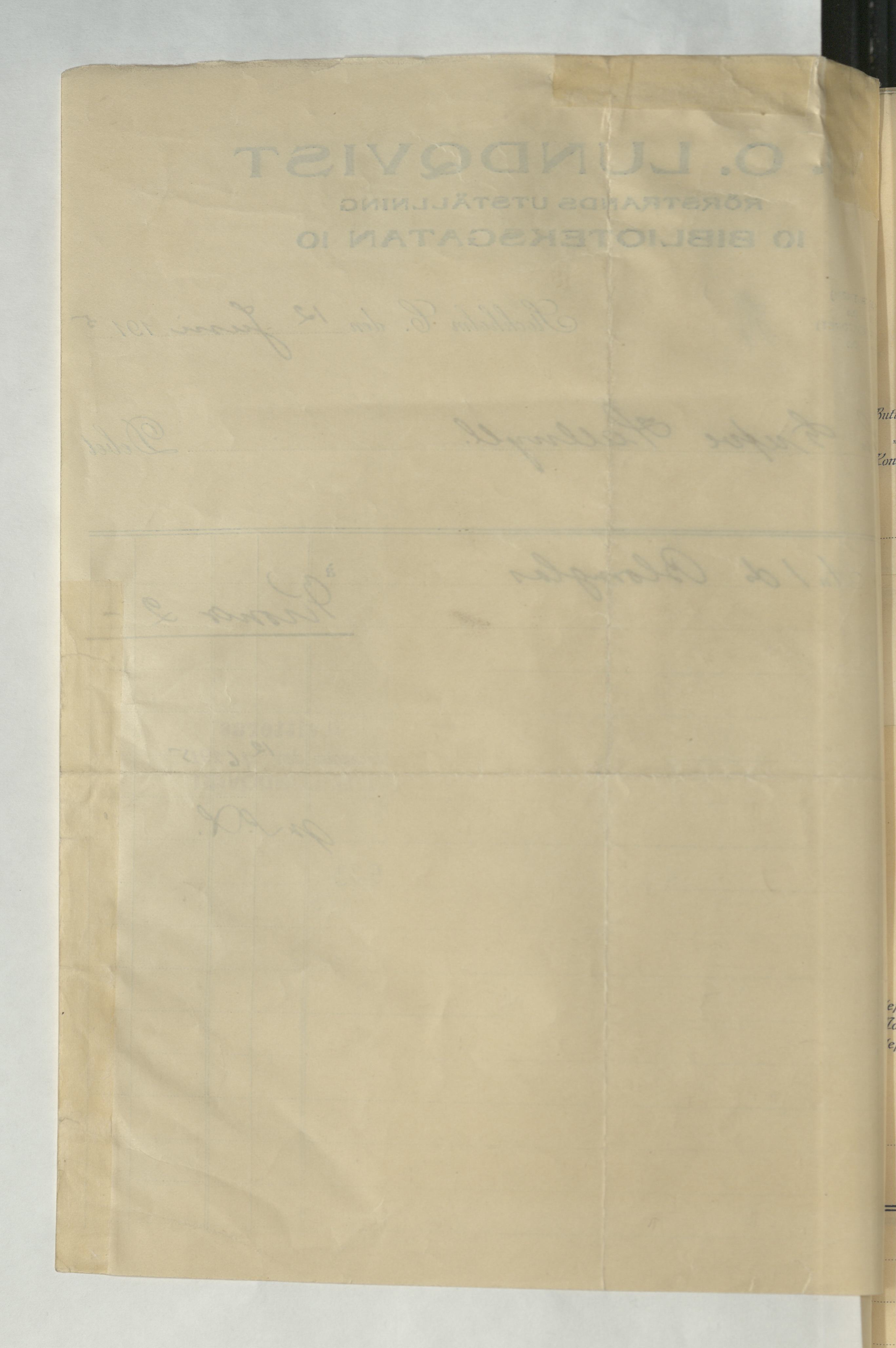 Kvitto från J. O. Lundqvist, Rörstrands Porslins-Magasin, 1915