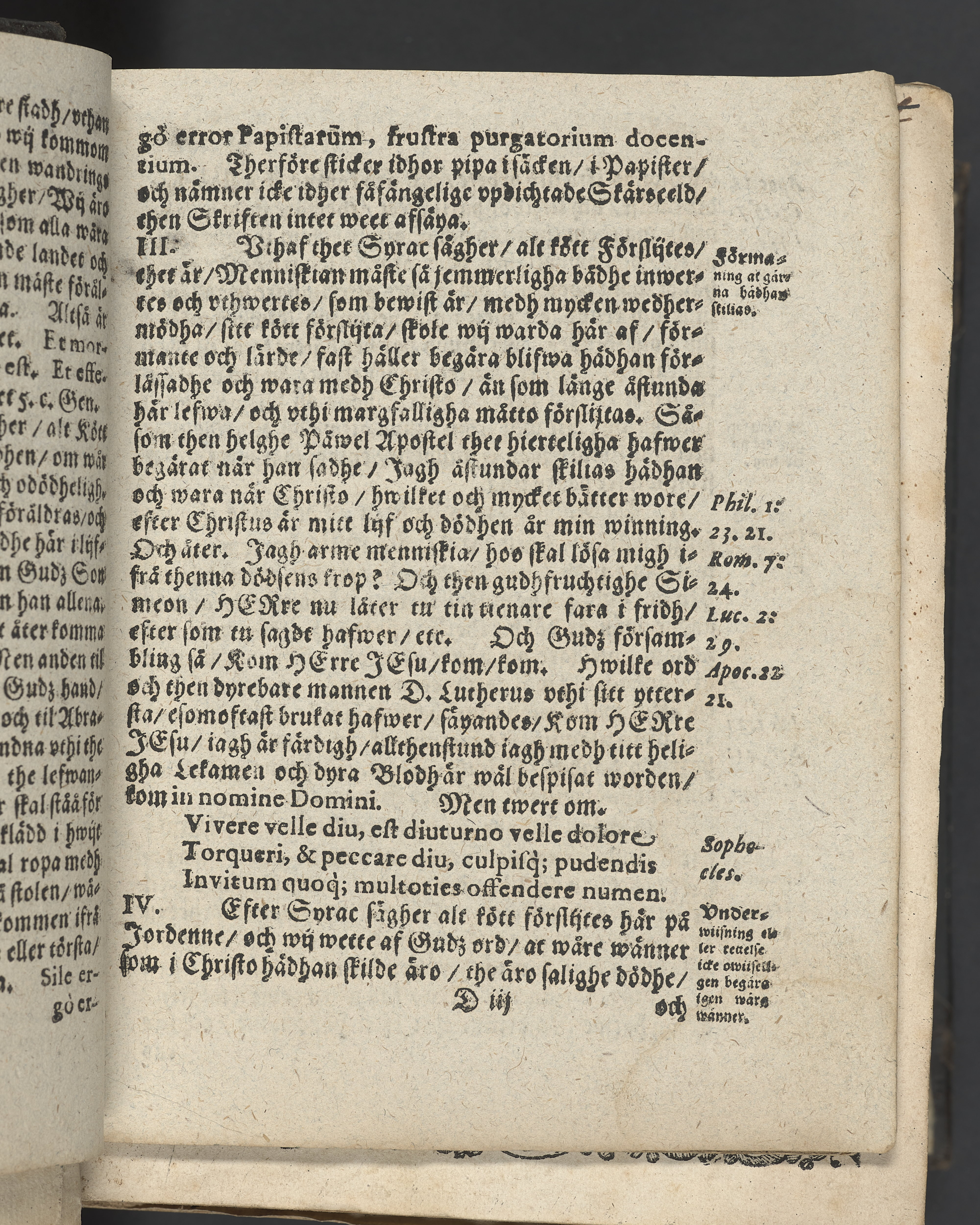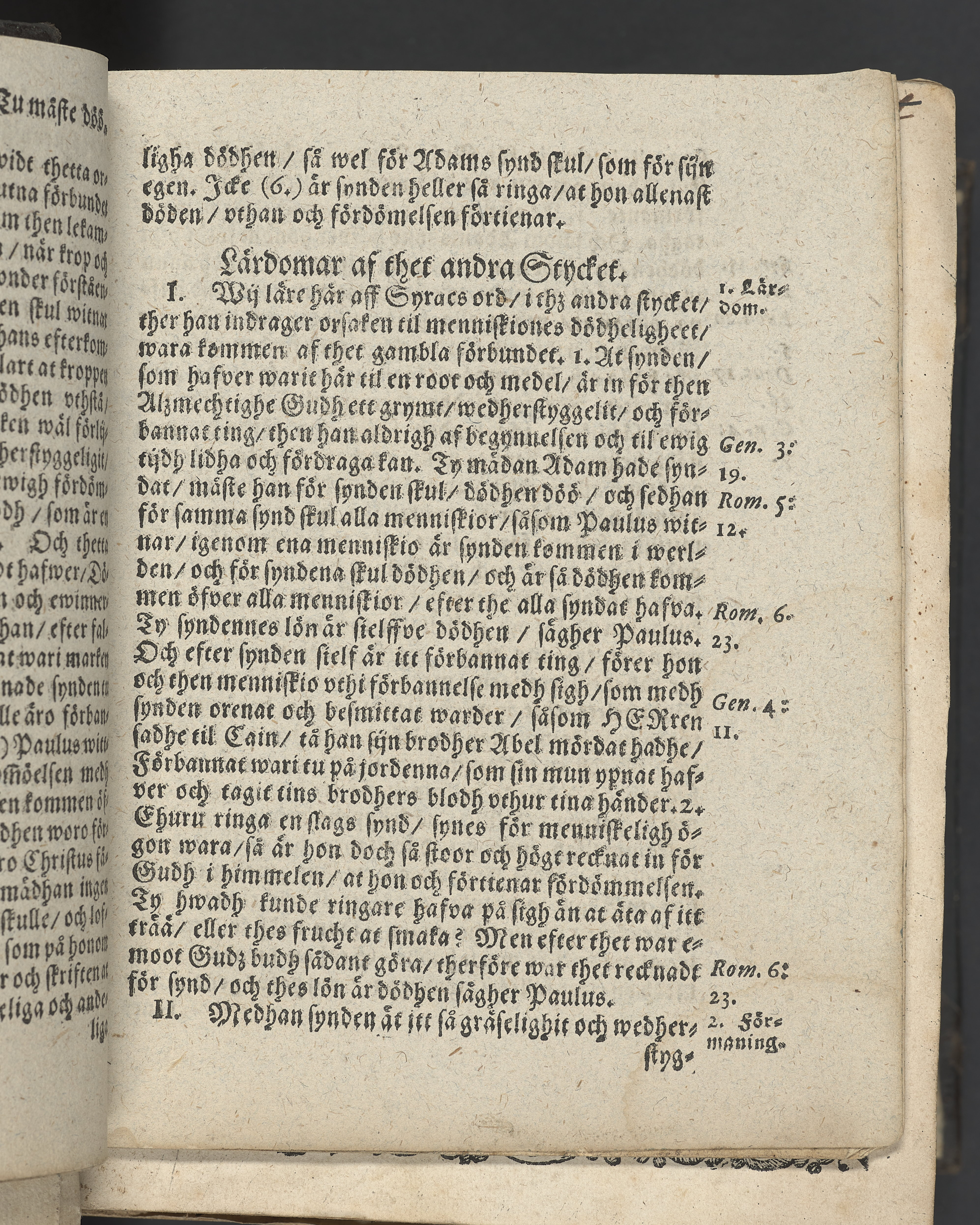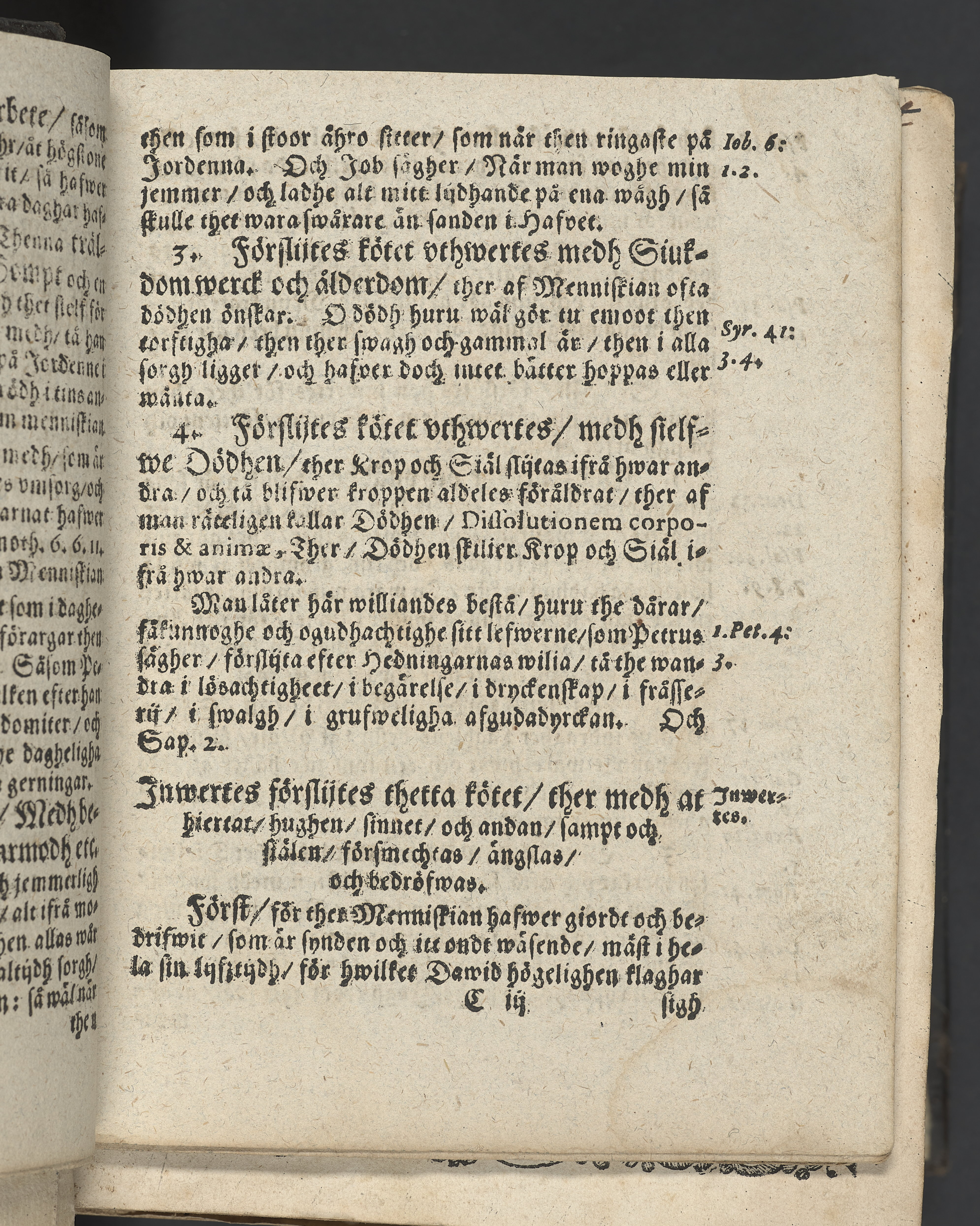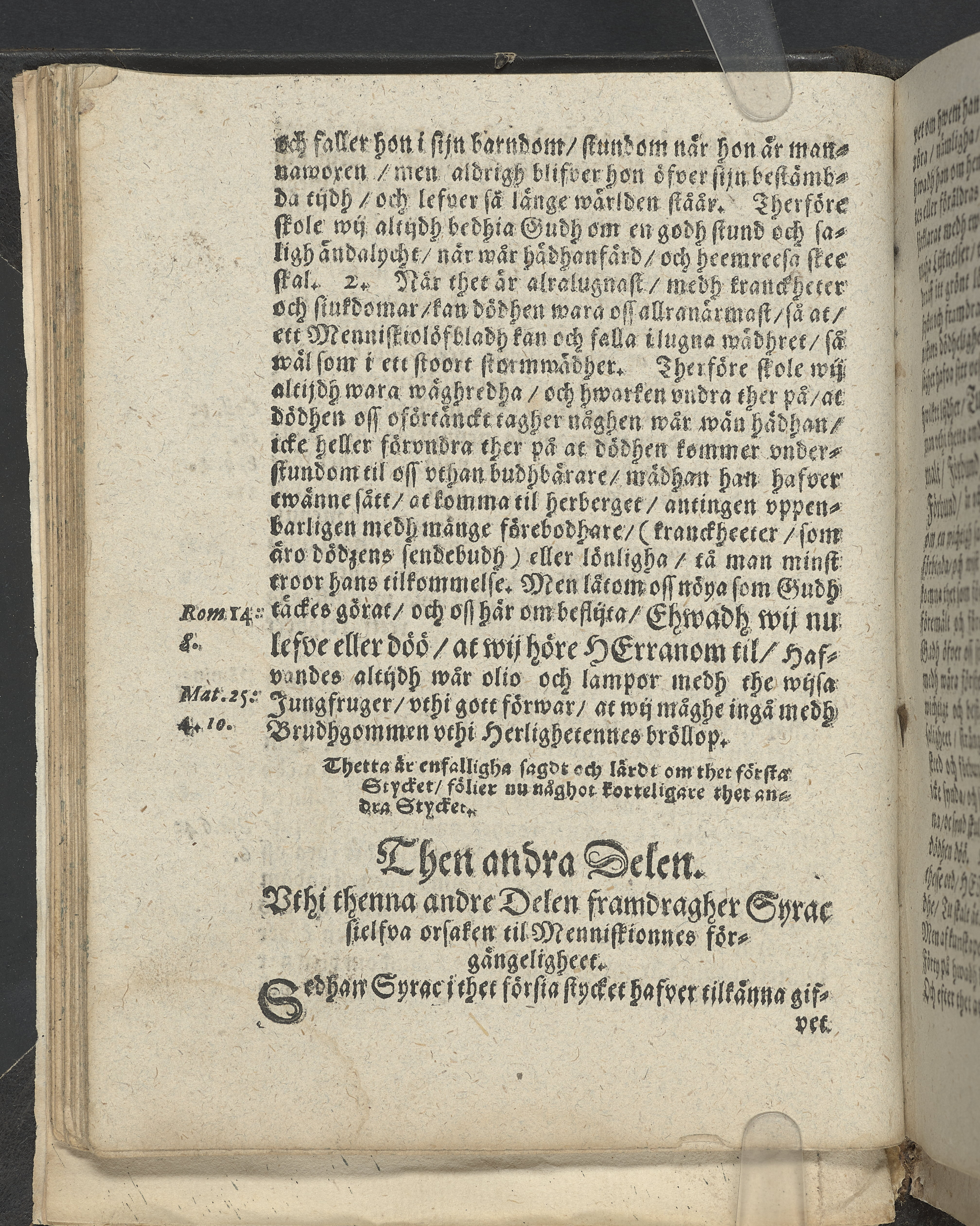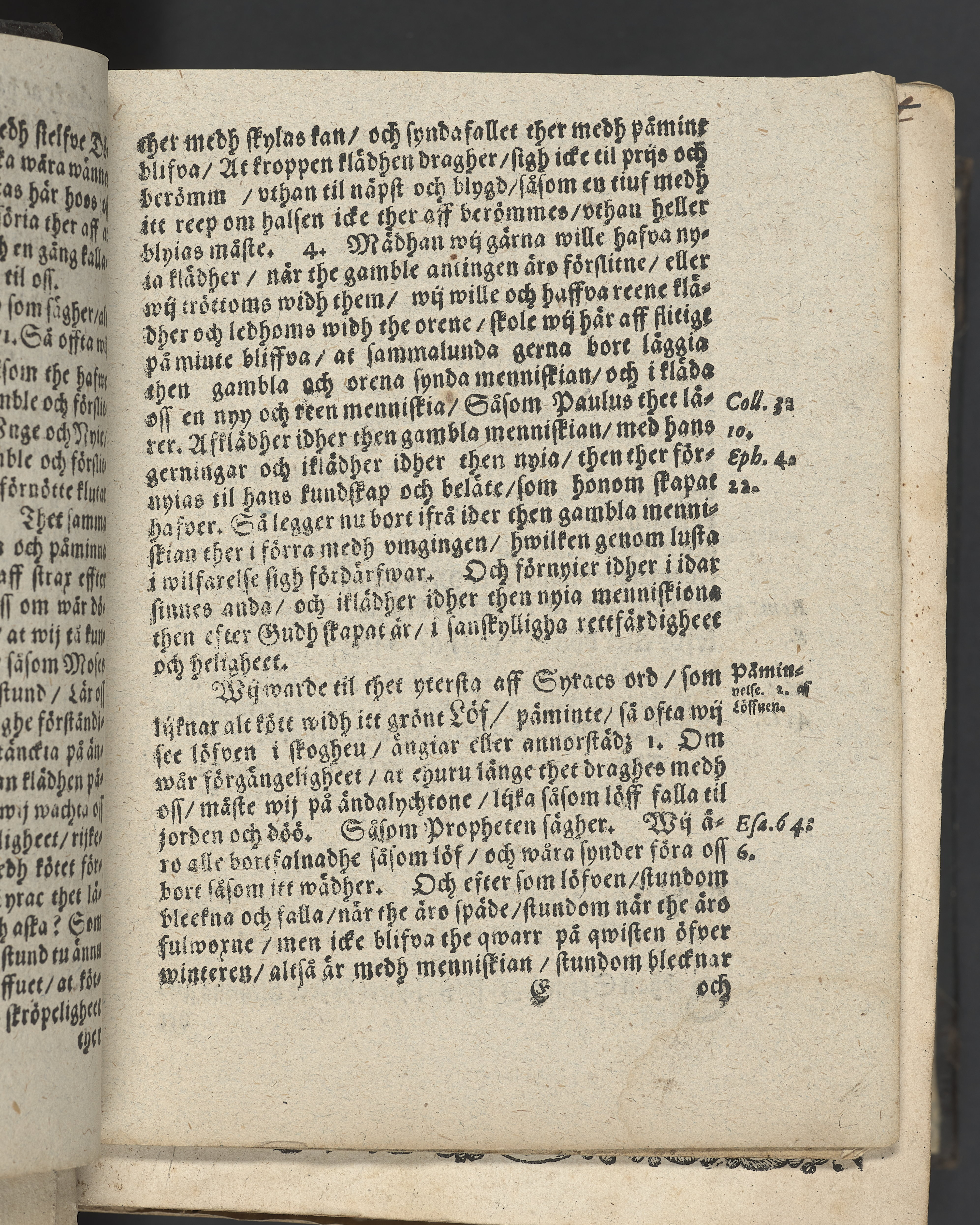 I övre högra hörnet på titelsidan (delvis beskuret) med bläck "2". I nederkant vänster på titelsidan med bläck "Tom. 1624". Snitt stänkta i rött och blått.
