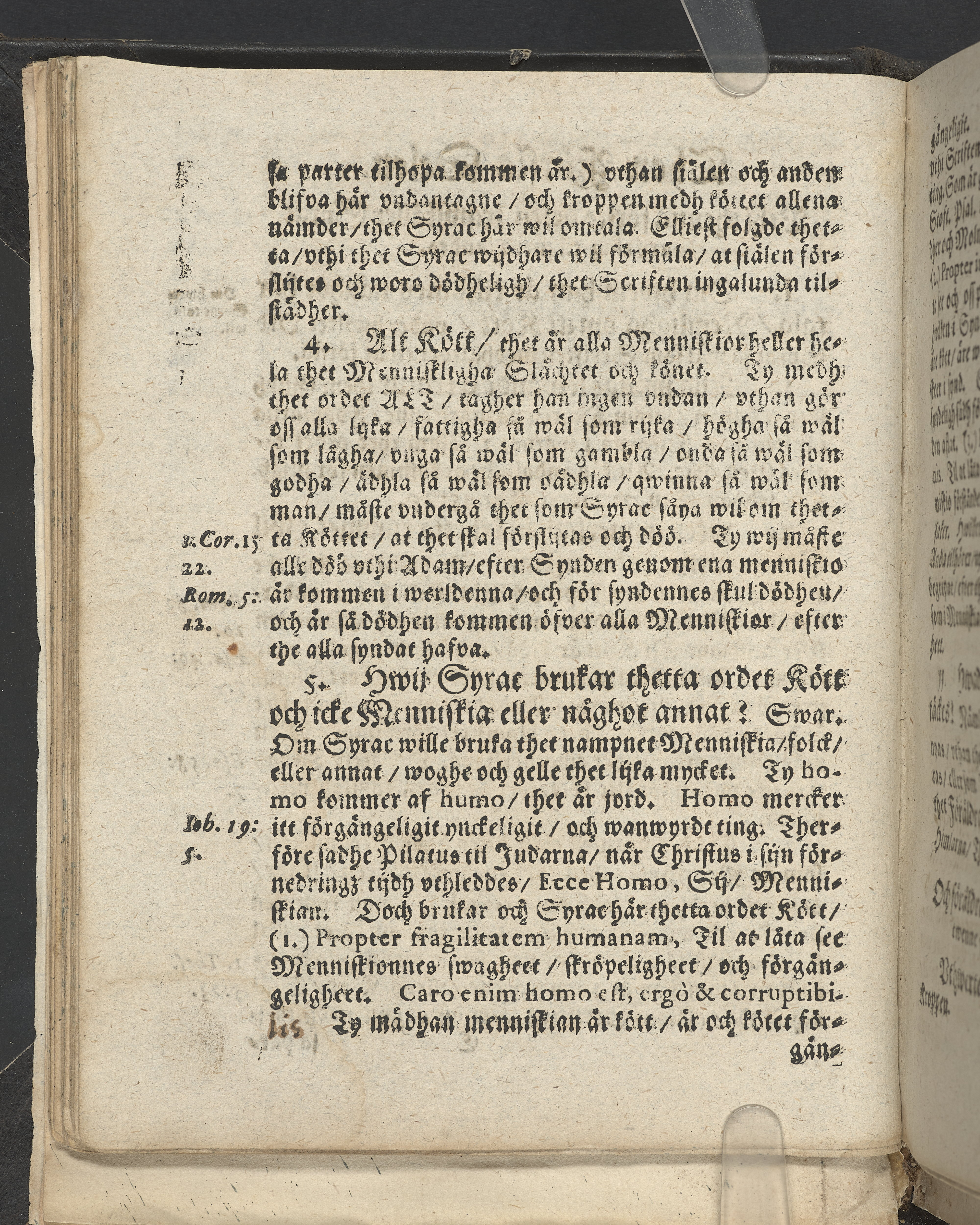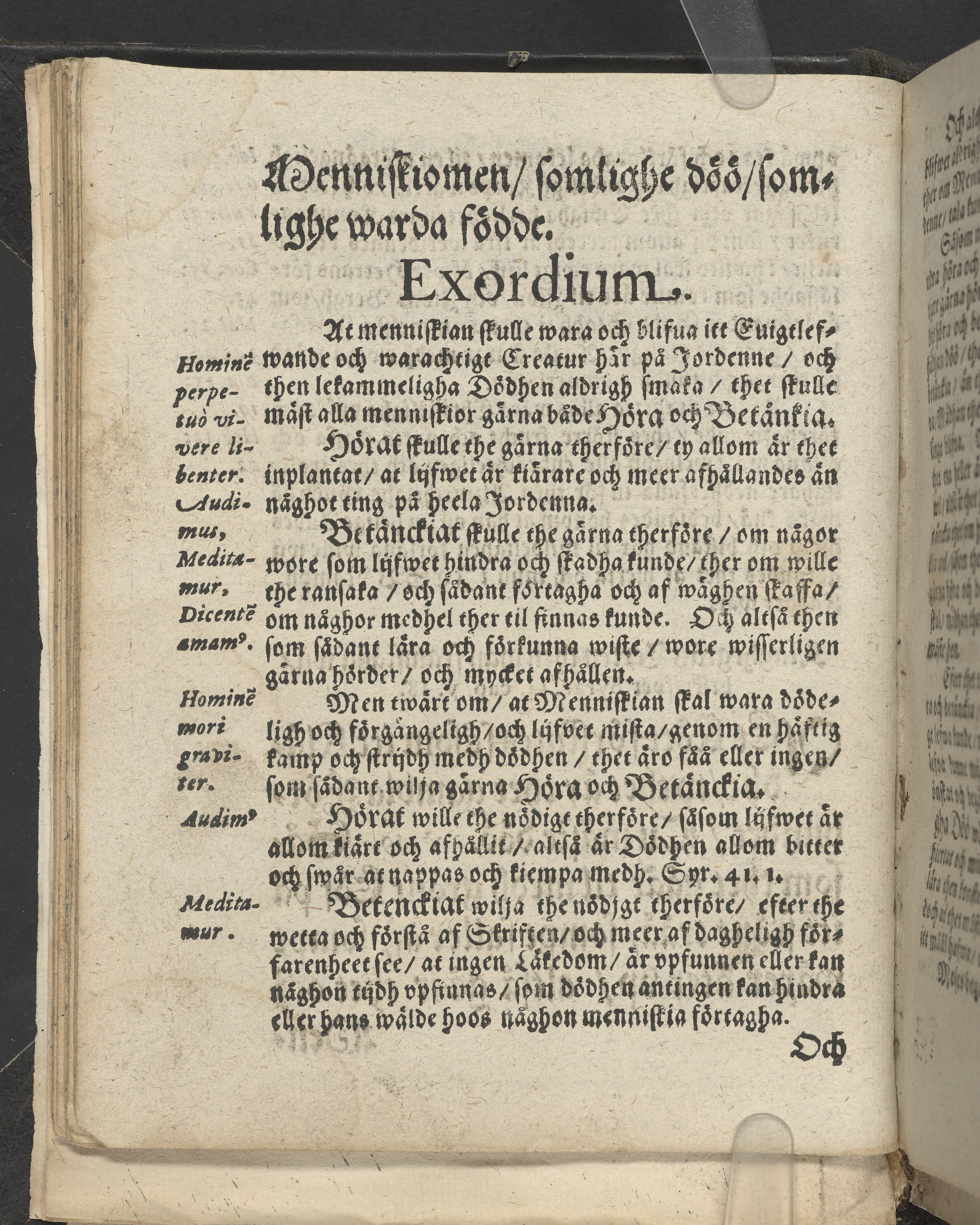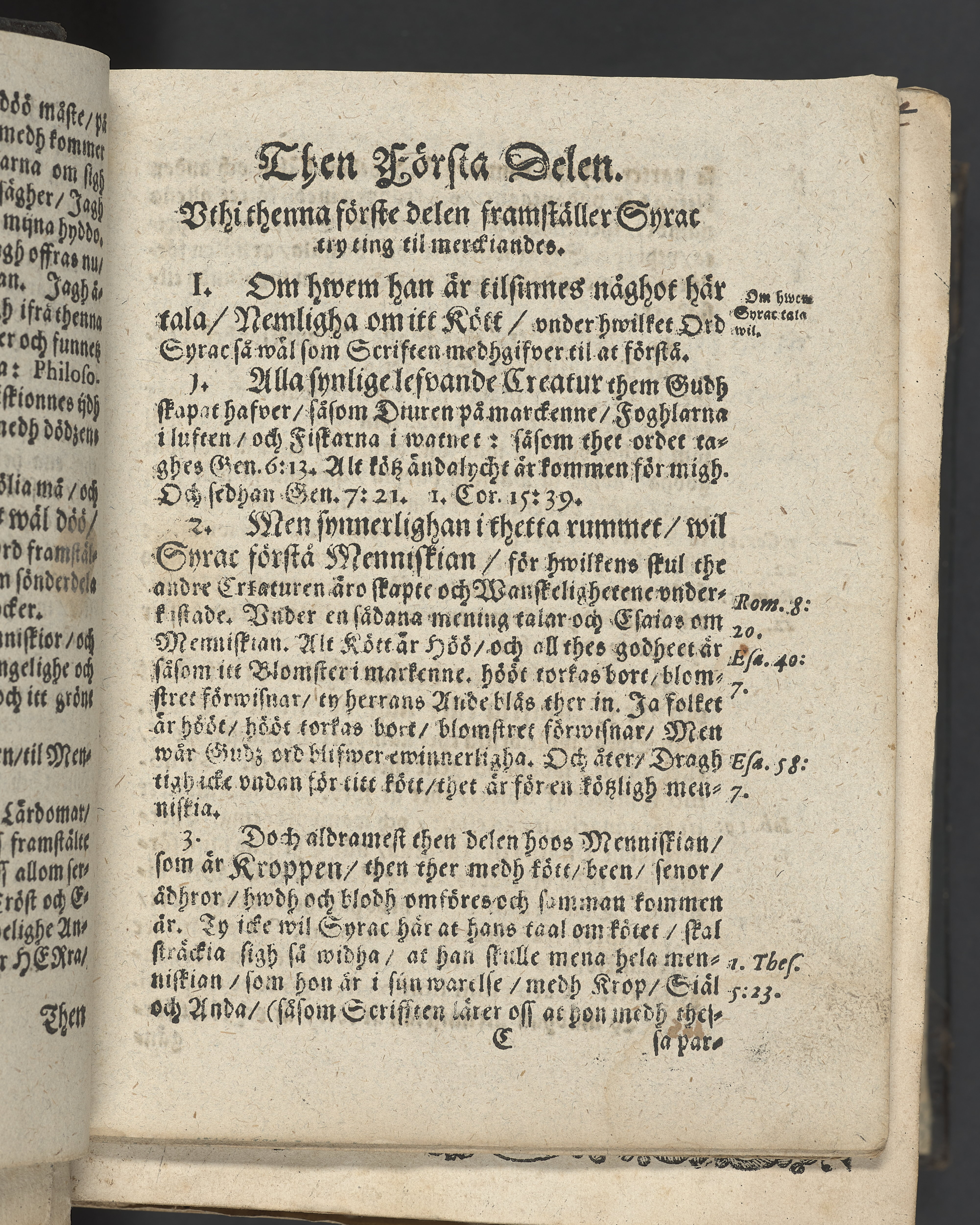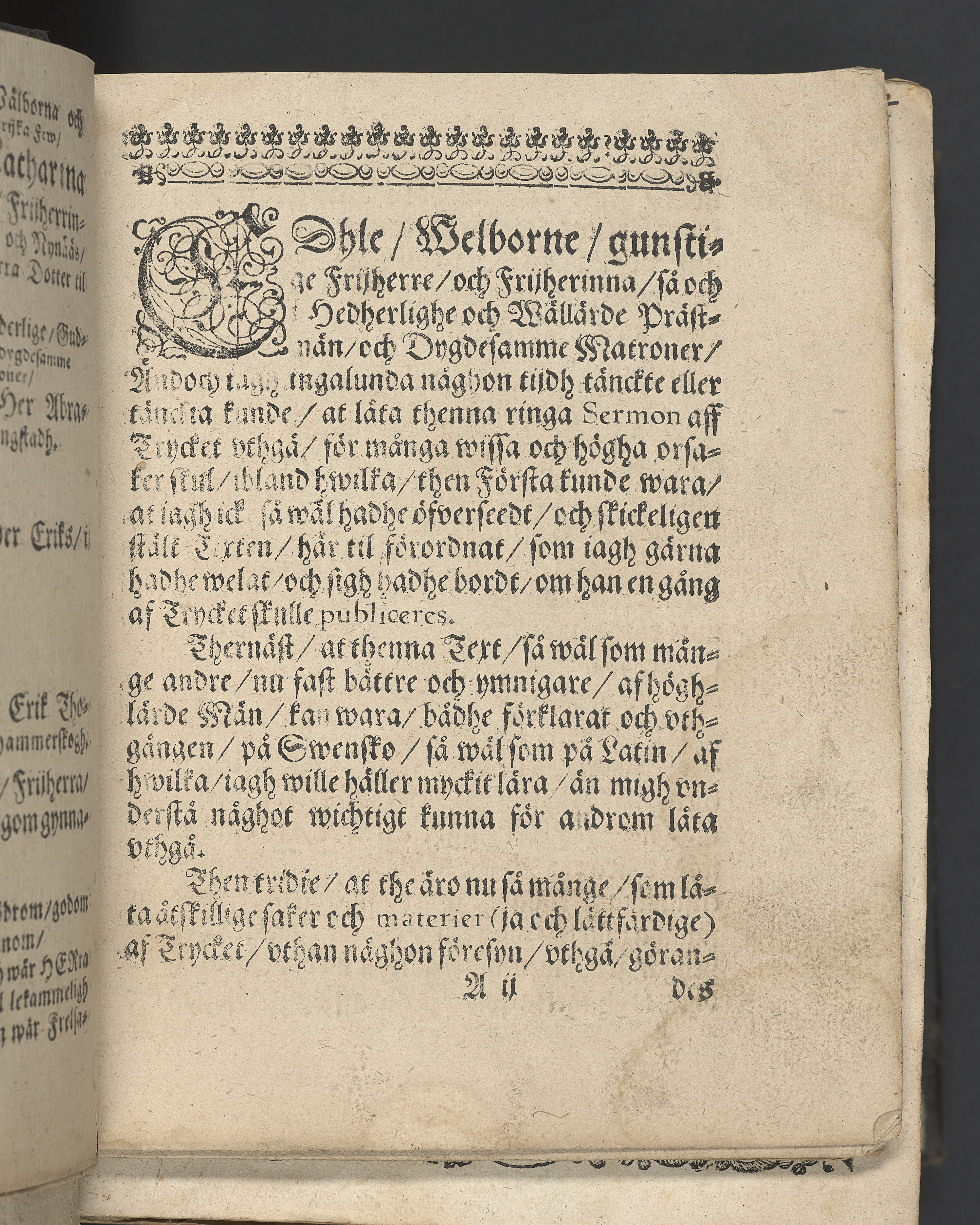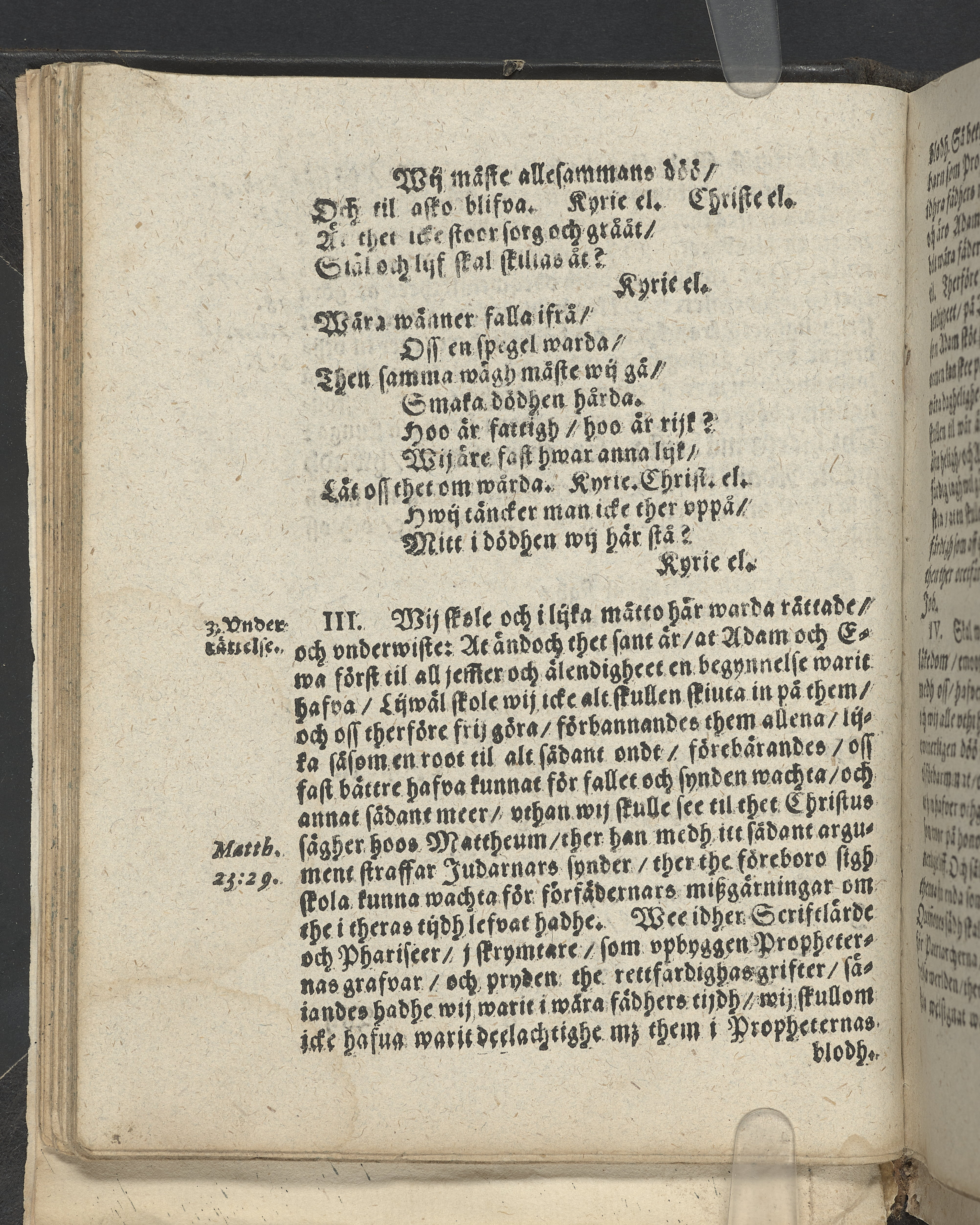 I övre högra hörnet på titelsidan (delvis beskuret) med bläck "2". I nederkant vänster på titelsidan med bläck "Tom. 1624". Snitt stänkta i rött och blått.