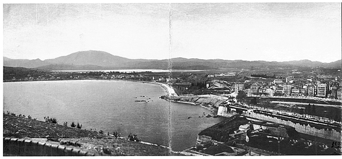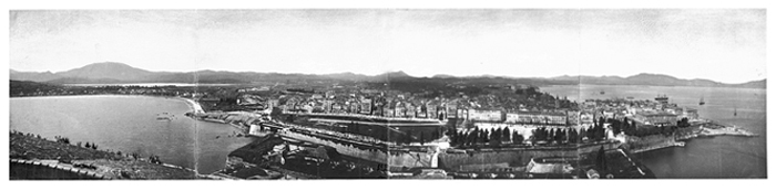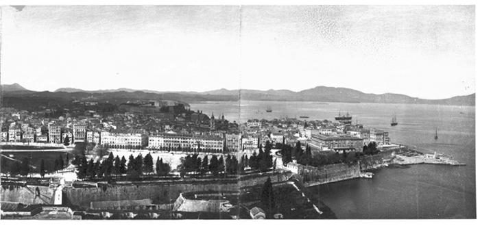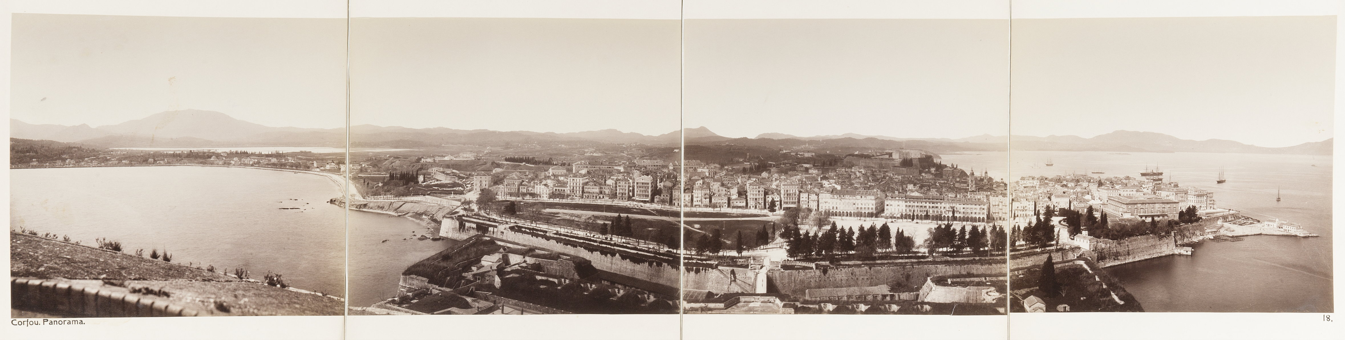 Panorama över Korfu. Foto från resa genom Grekland, Makedonien och Serbien, 15 mars-6 juni 1896. Fotografierna LXVI:K.18.-147. är köpta av Wilhelmina von Hallwyl, f. Kempe på Korfu samt i Patras, Nafplion, Aten, Thessaloniki och Belgrad. Med på resan var maken Walther von Hallwyl och fröken Ida Uhse. Uppgifterna kommer från Ida Uhses reseanteckningar.