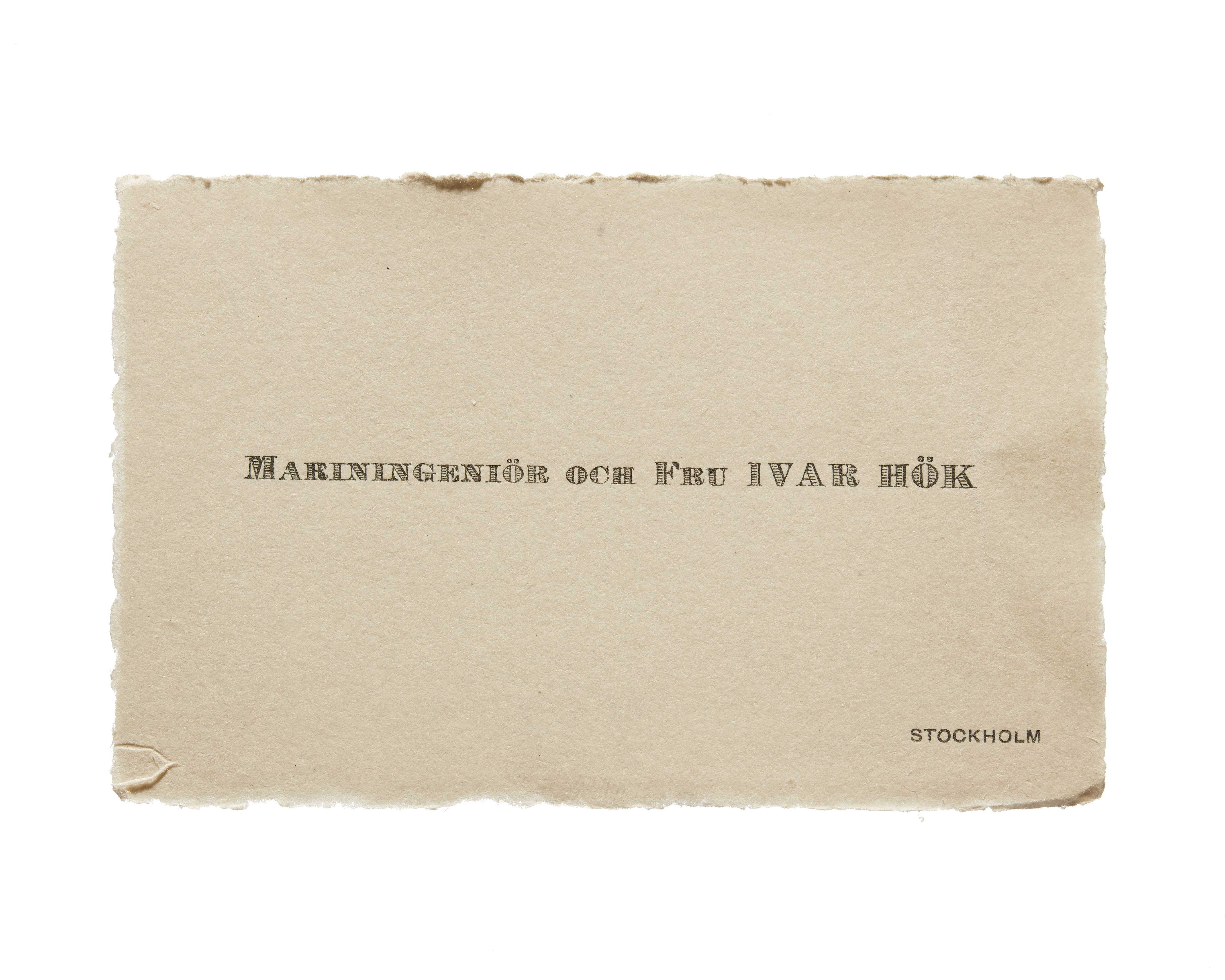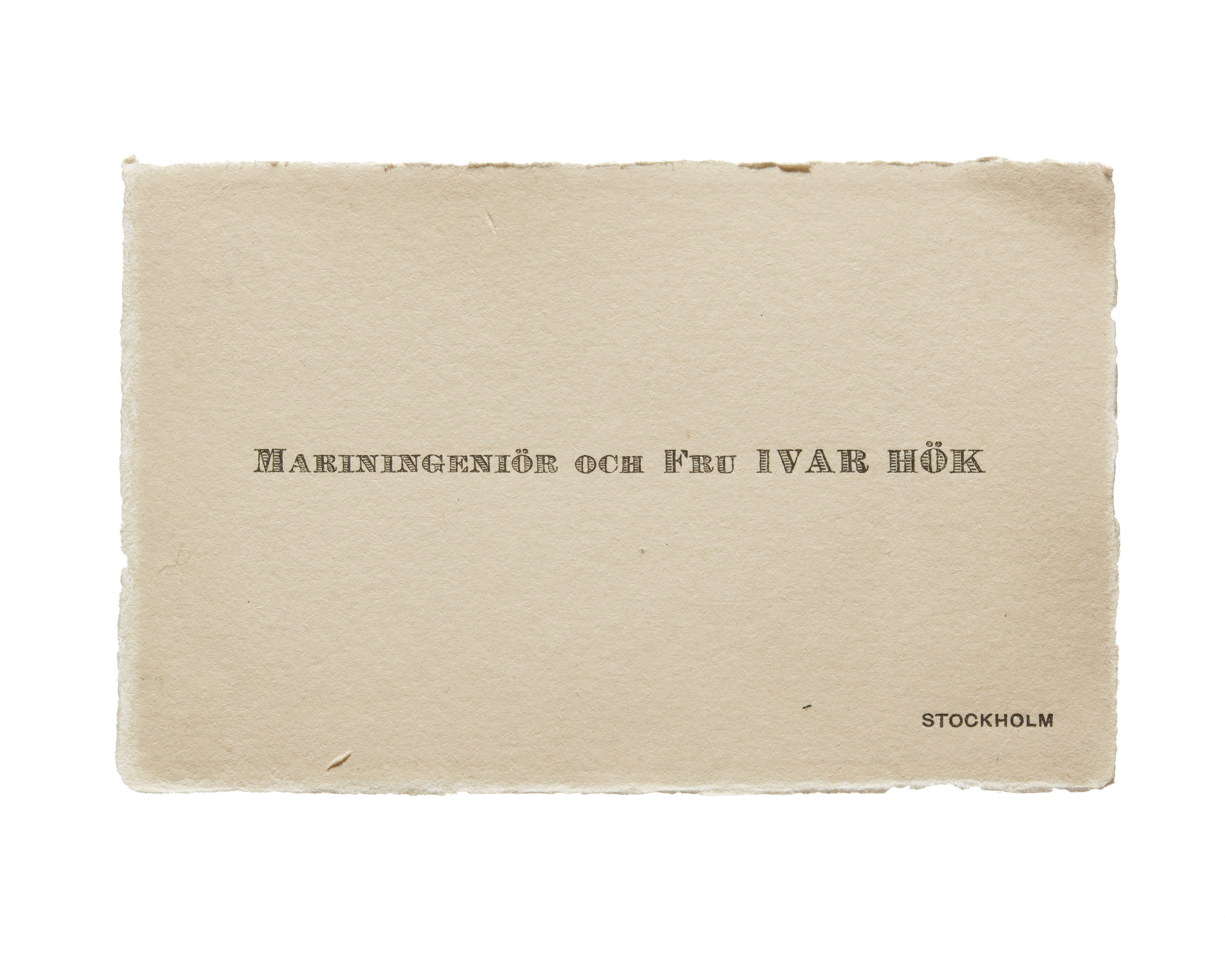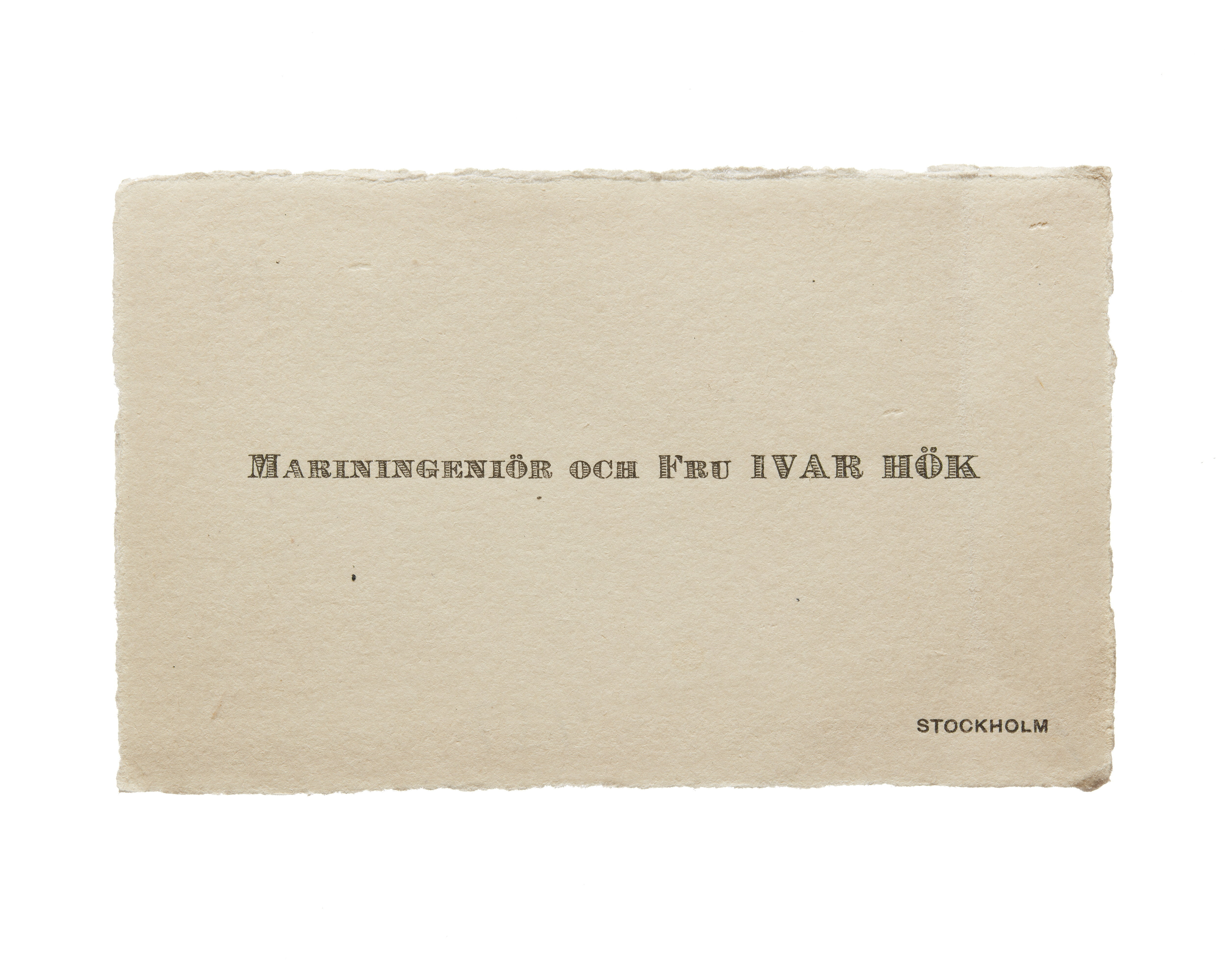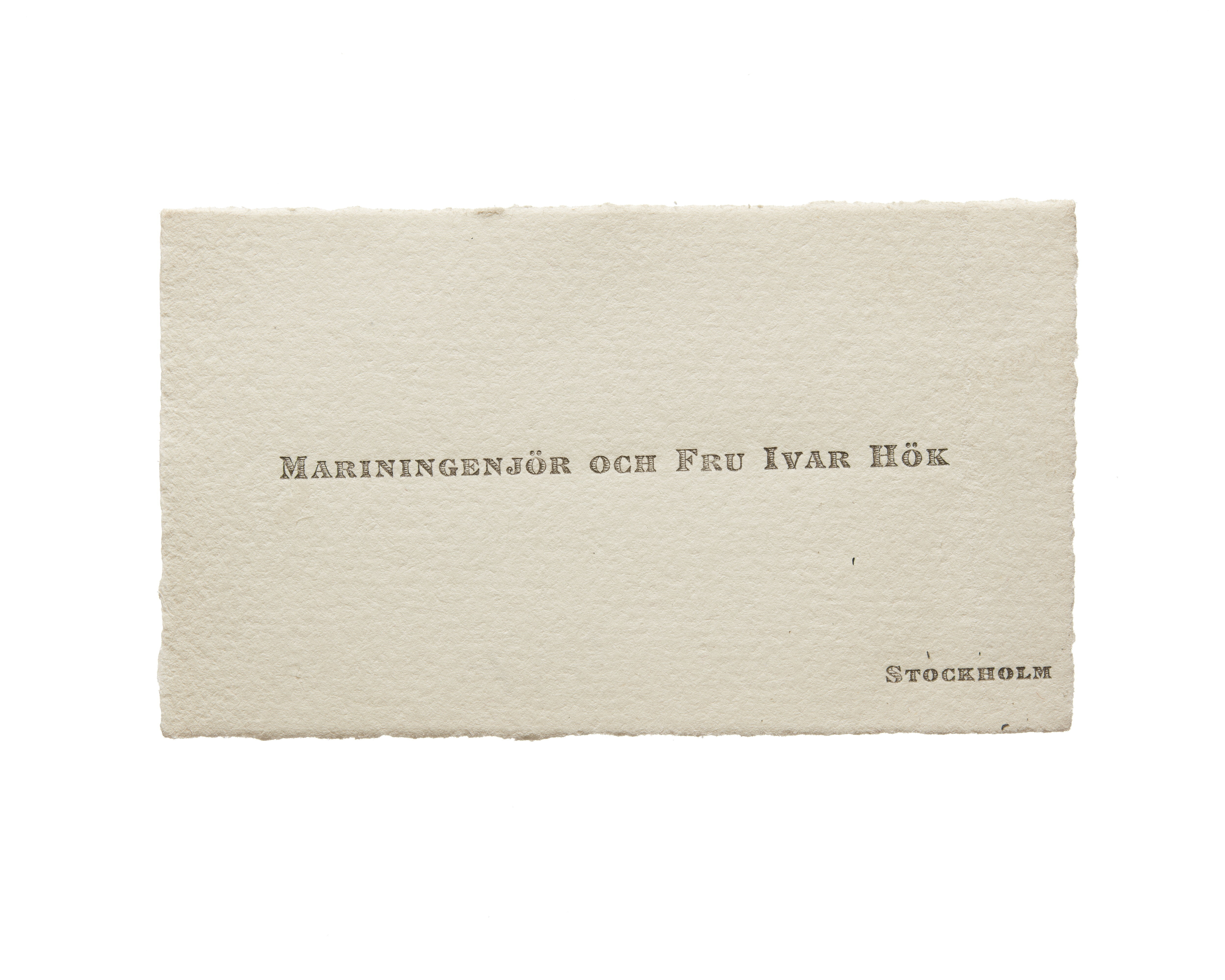 Visitkort från Mariningenjör och Fru Ivar Hök.