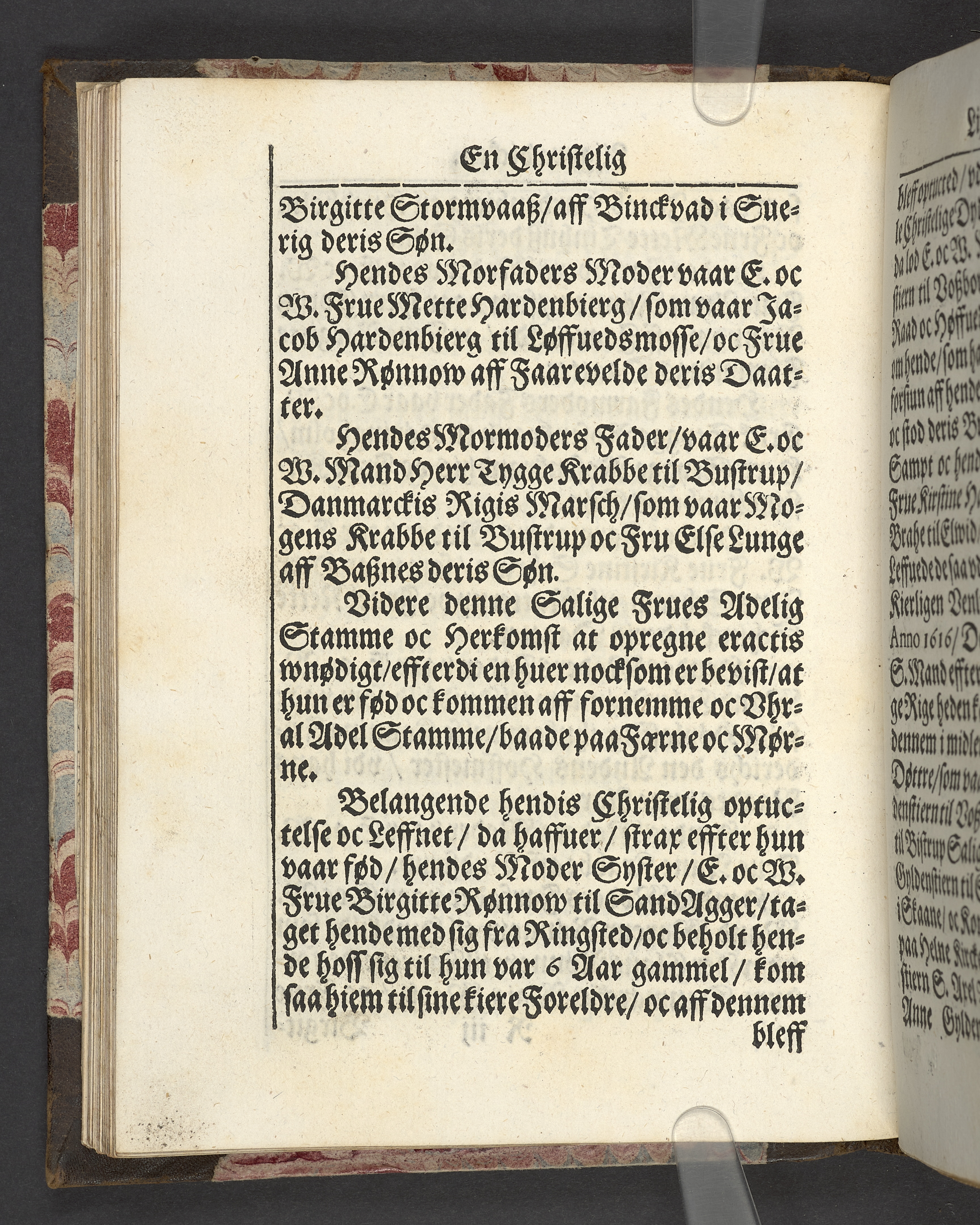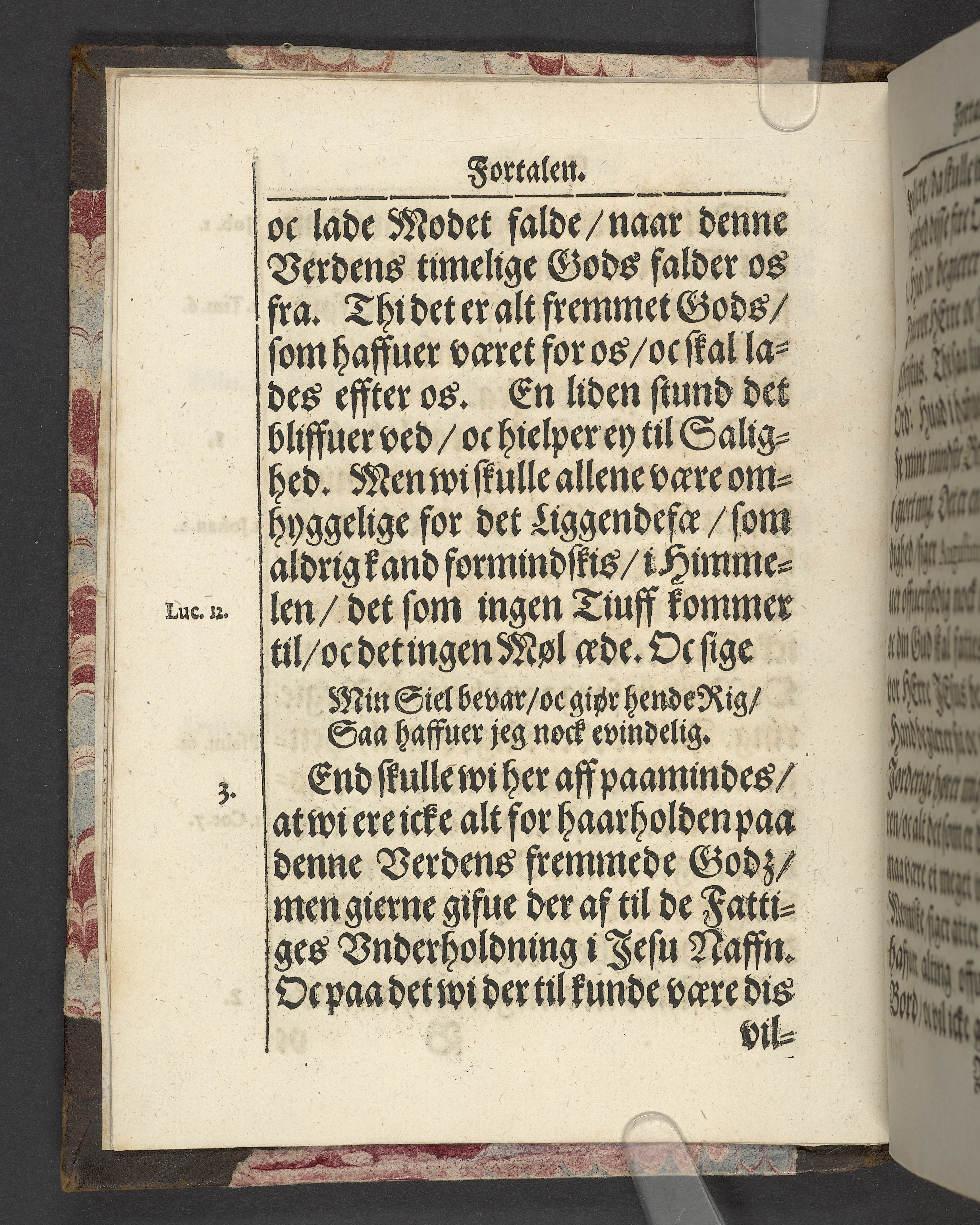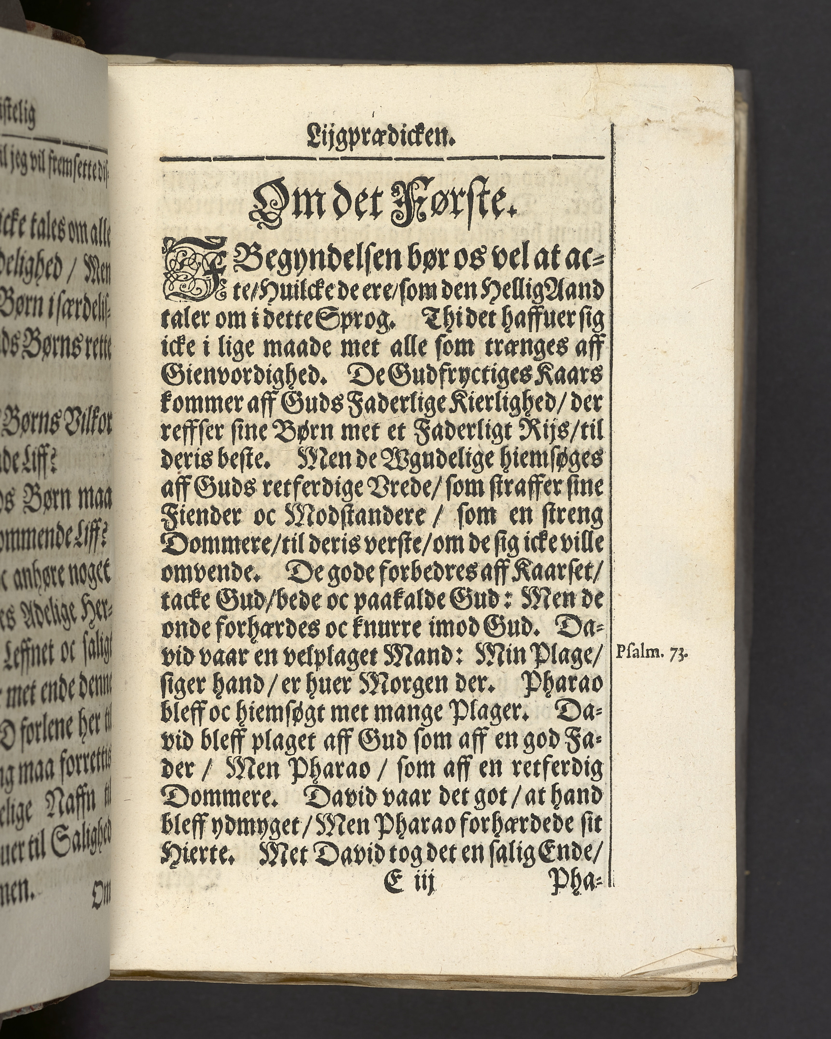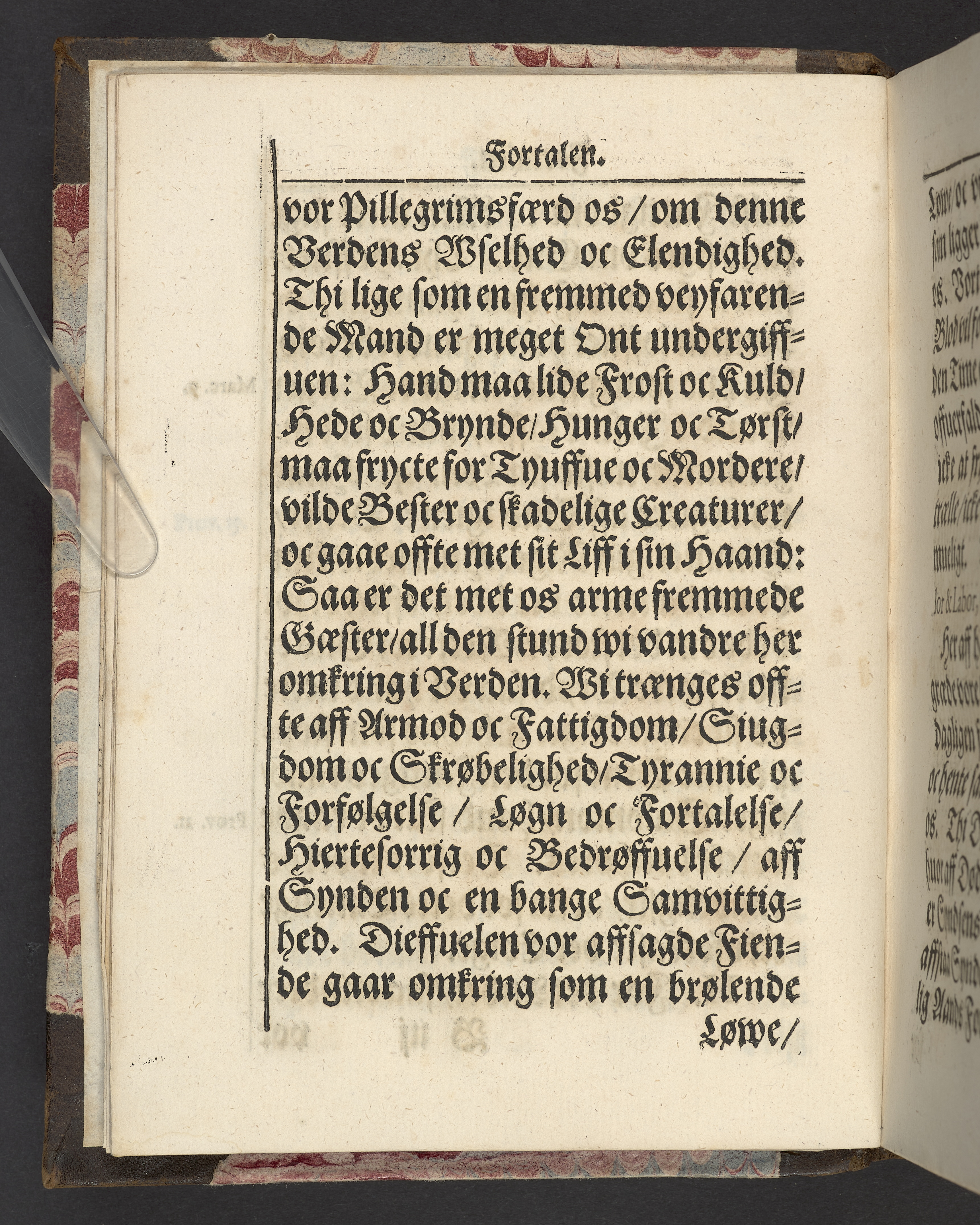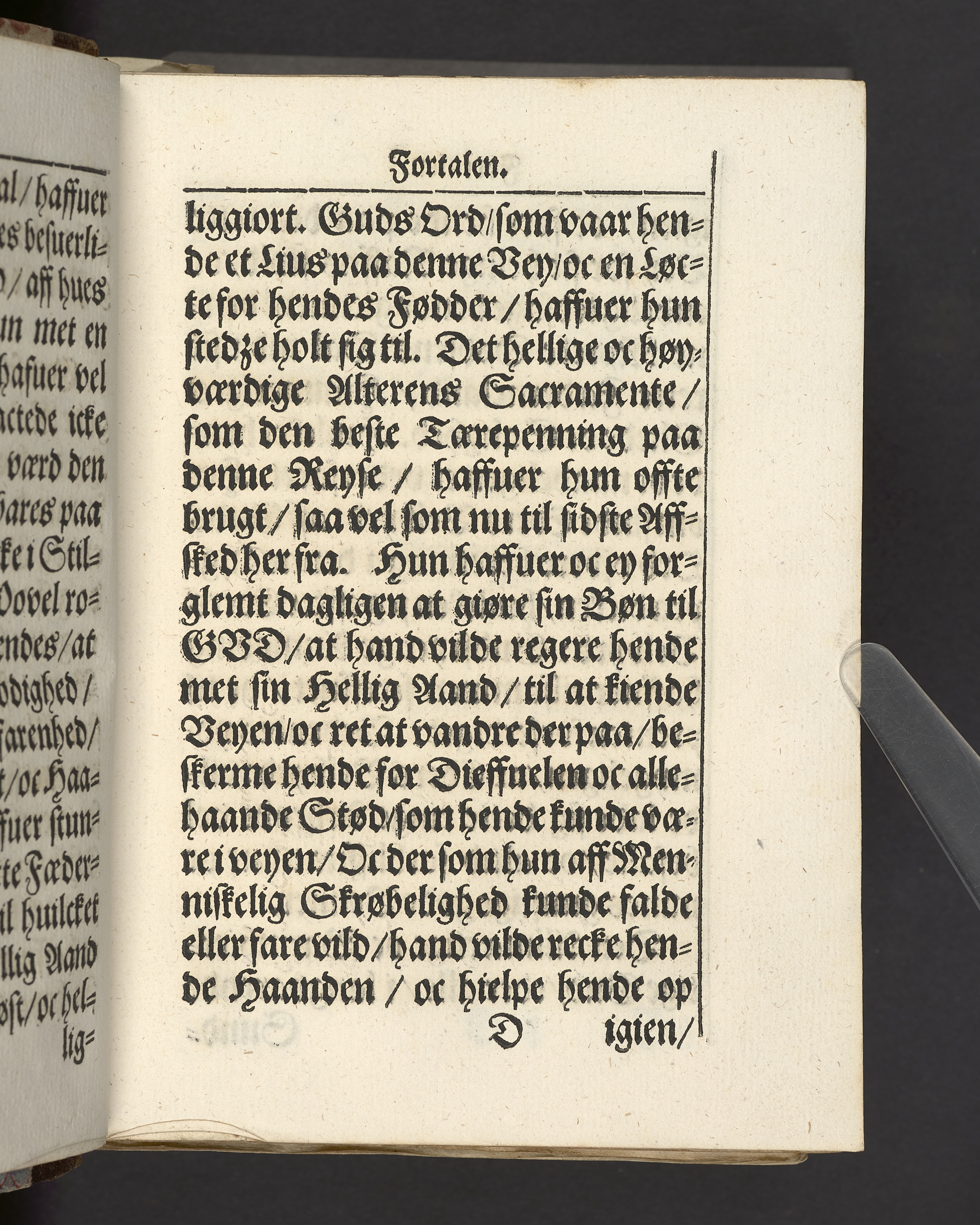 Förgyllt snitt. Längst upp på titelsidan ägaranteckning: "Jomfru Karen Lyke".