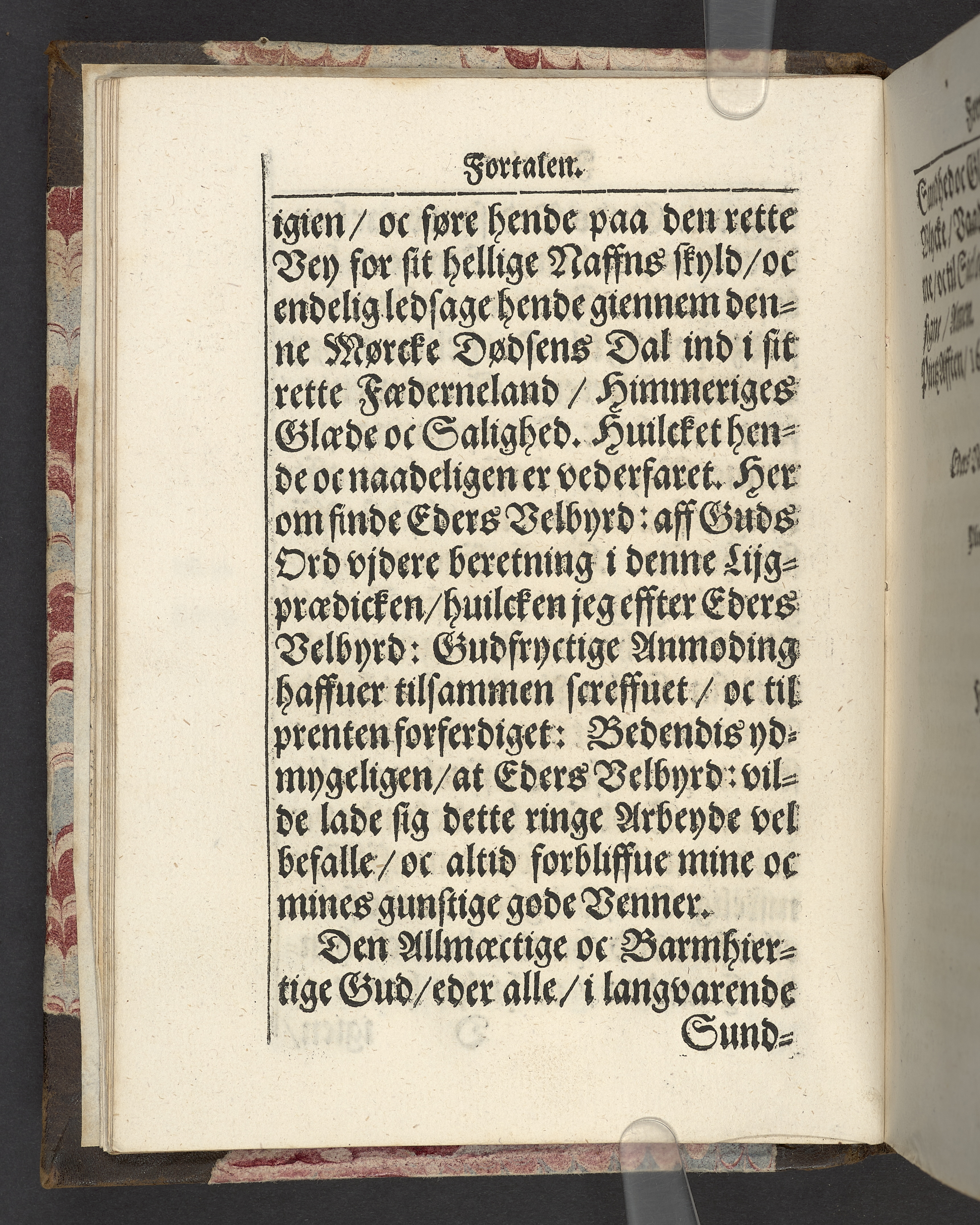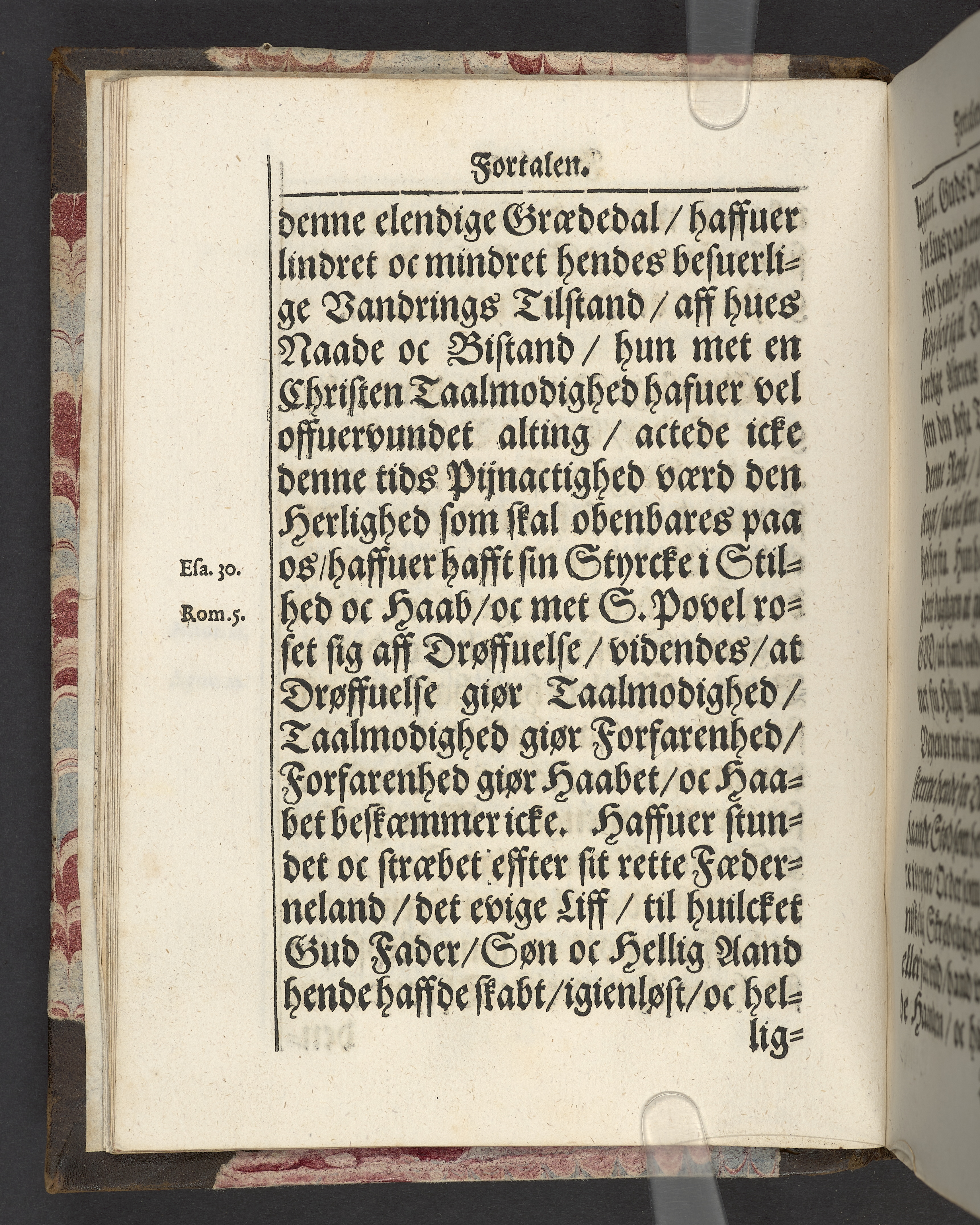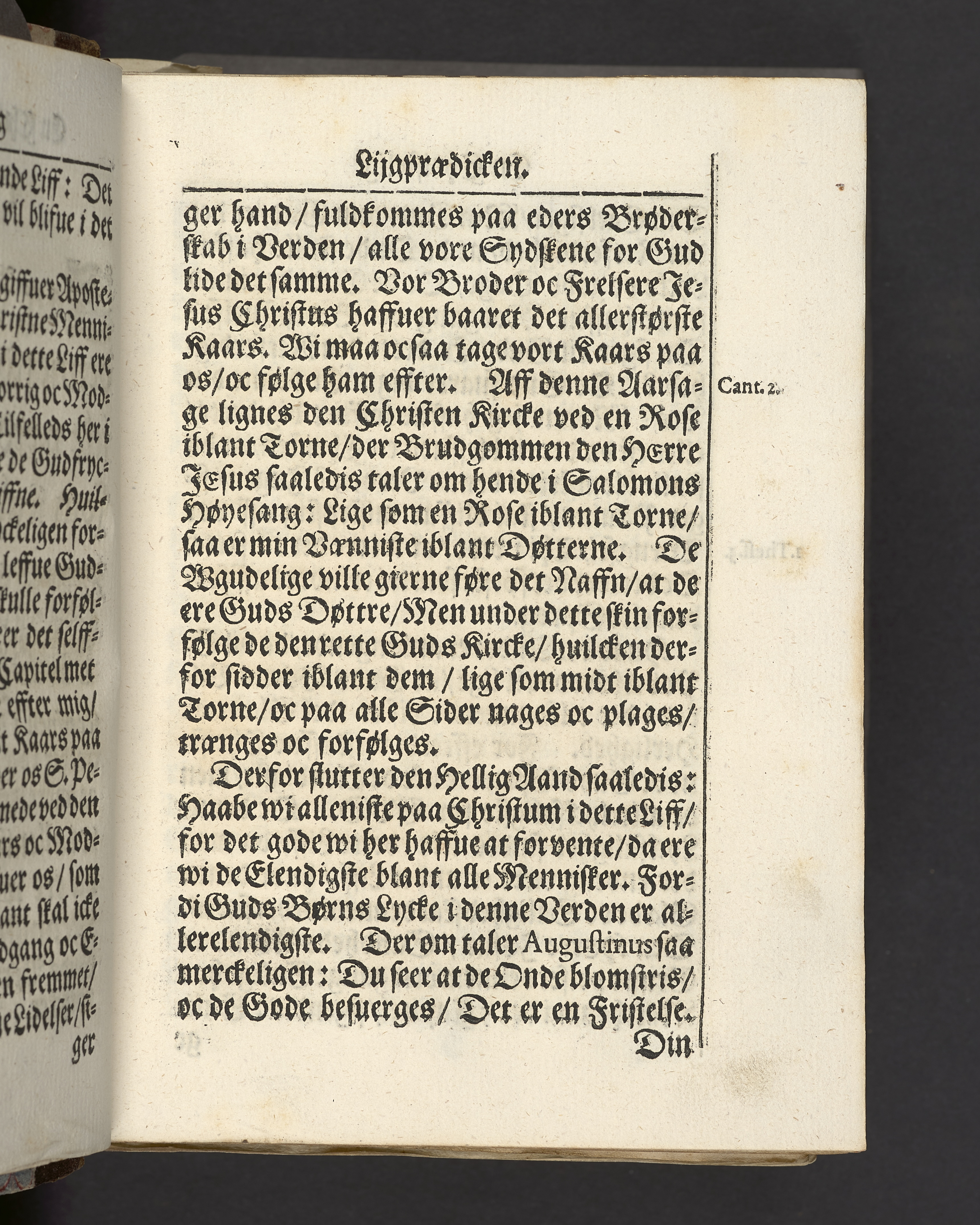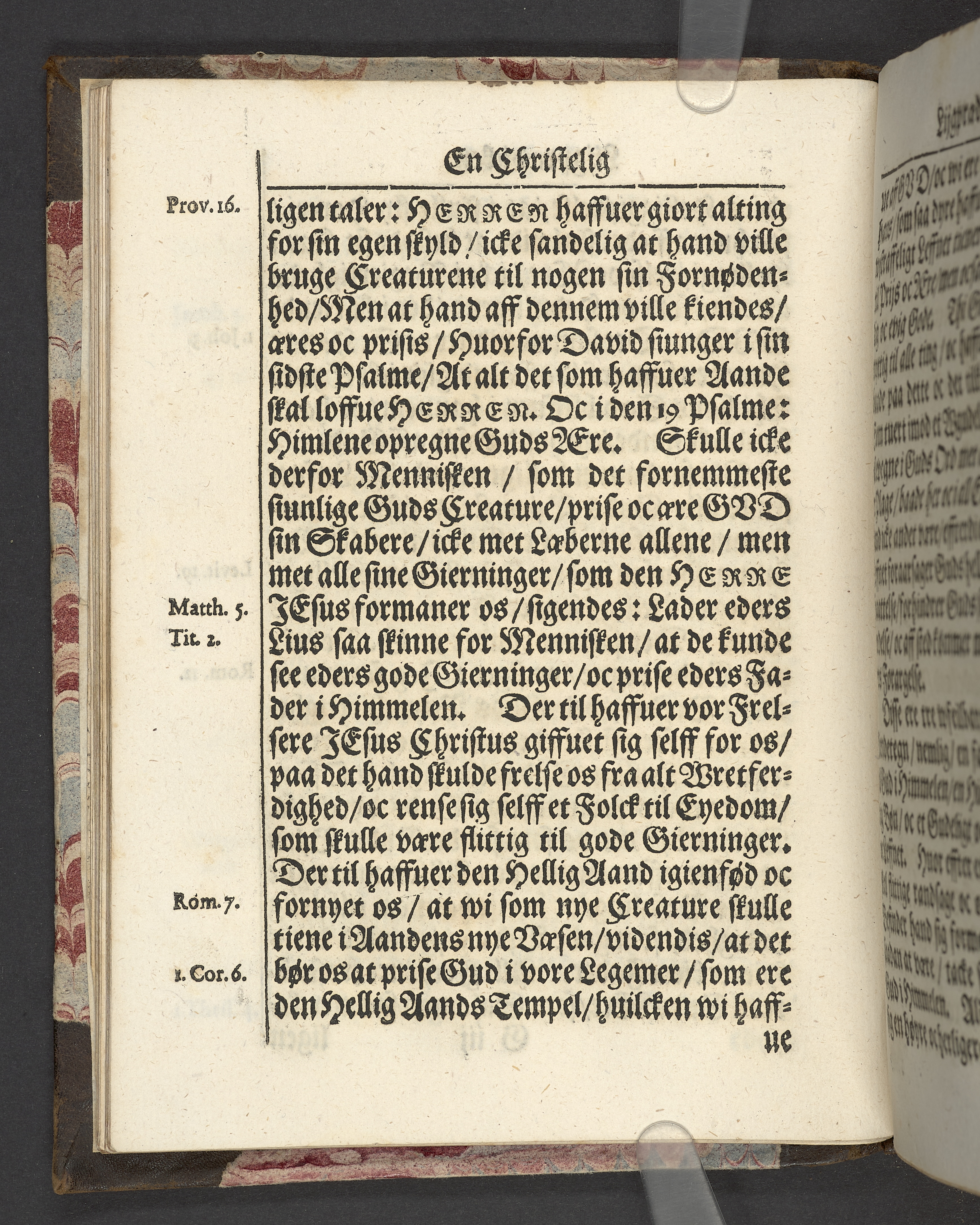 Förgyllt snitt. Längst upp på titelsidan ägaranteckning: "Jomfru Karen Lyke".