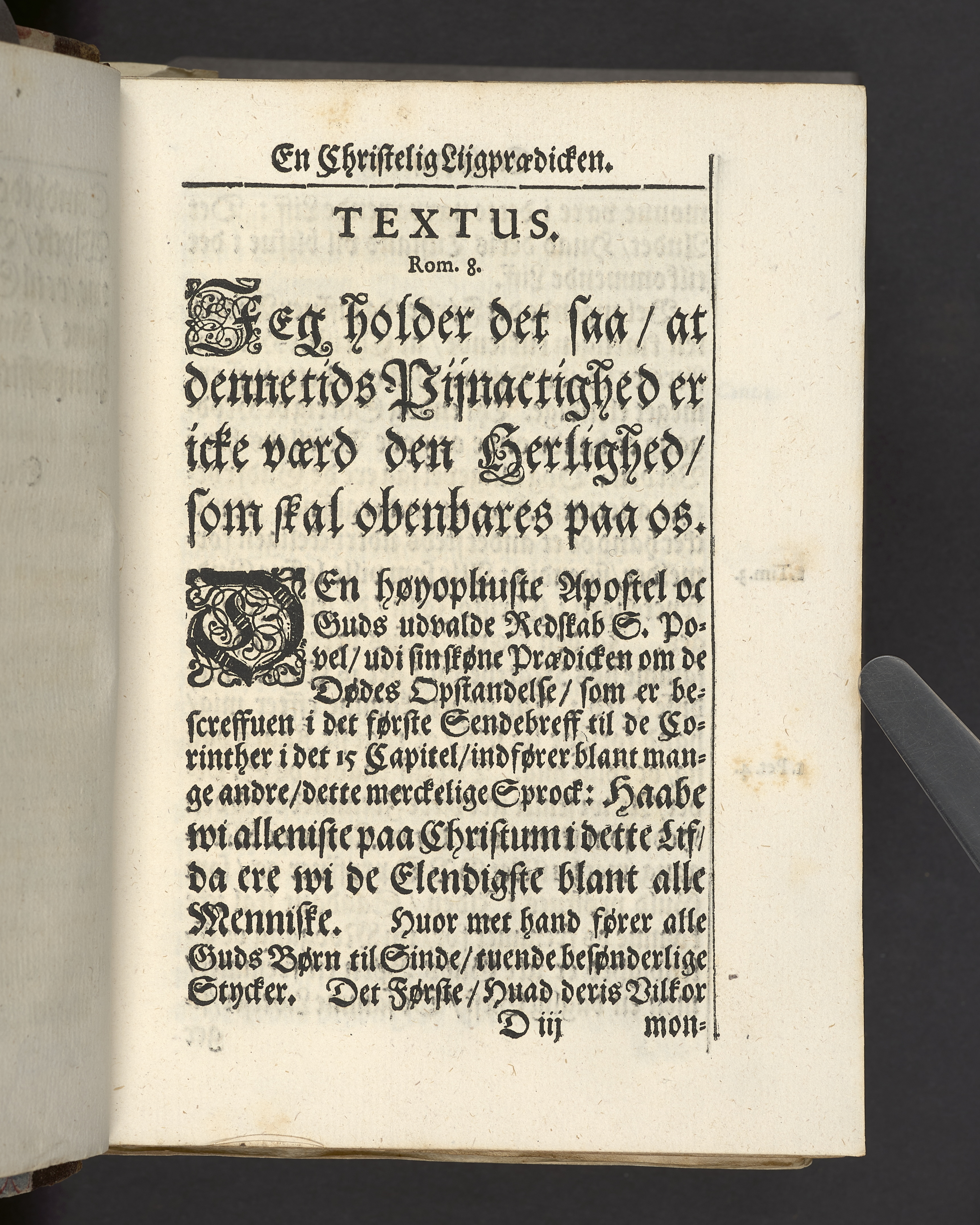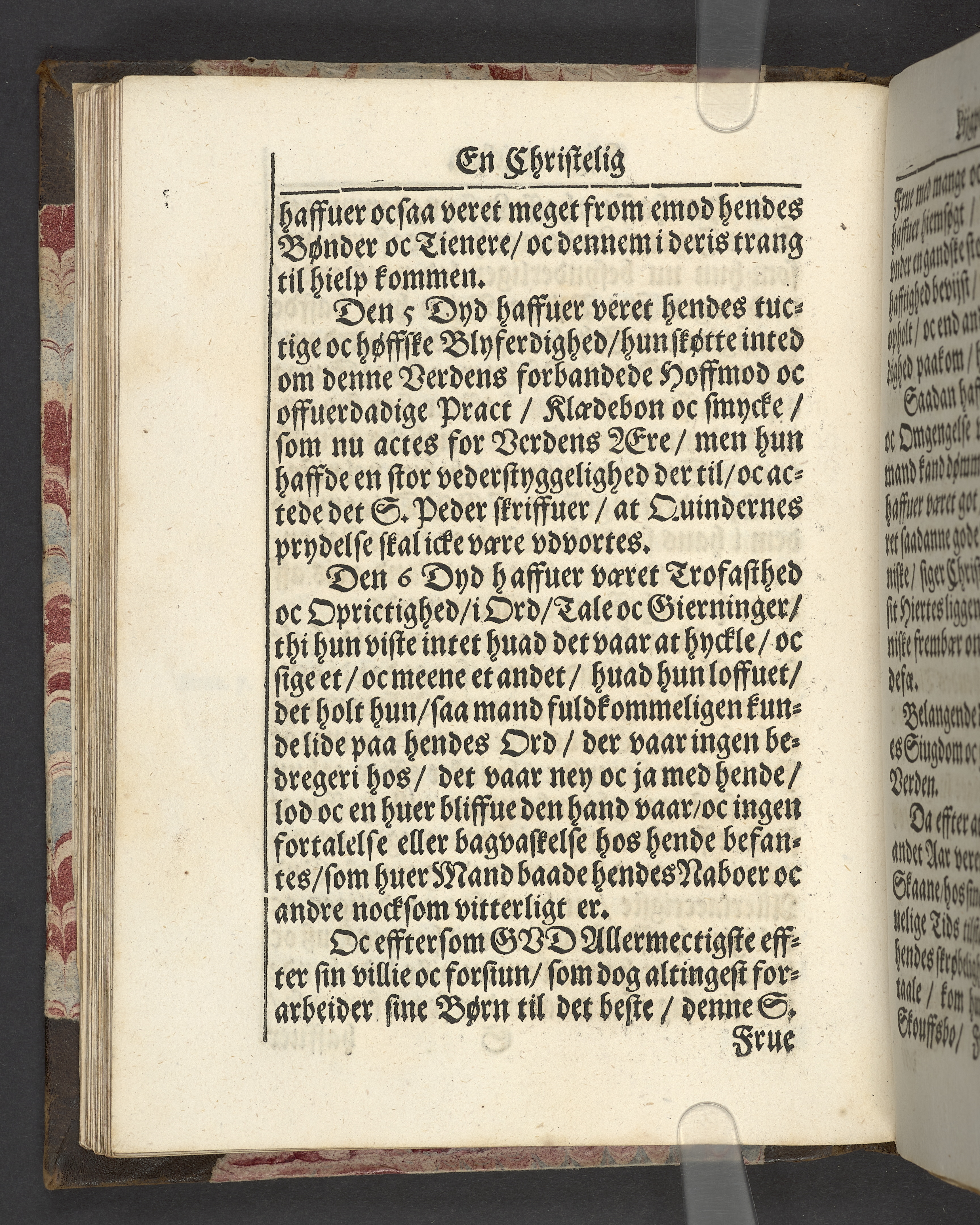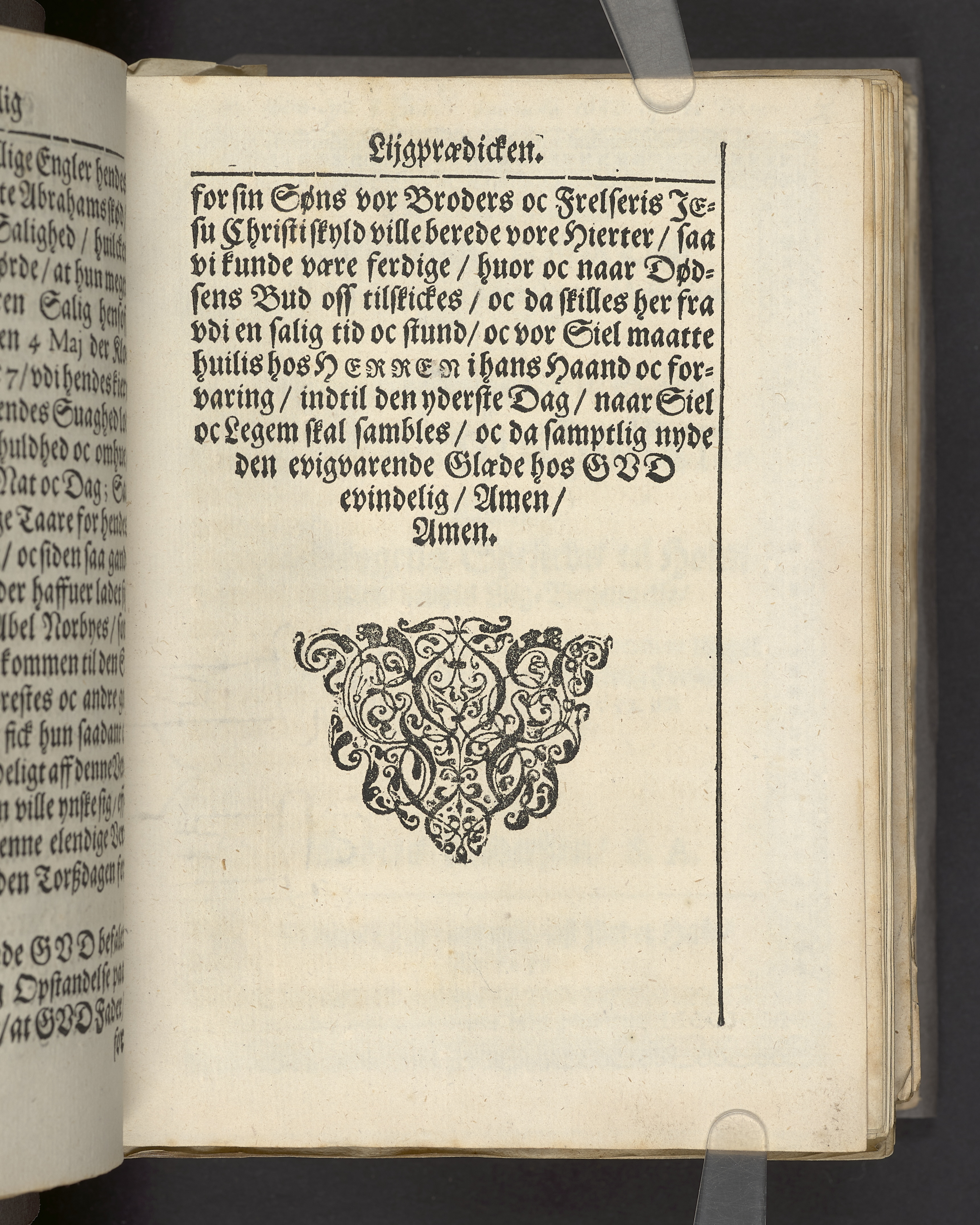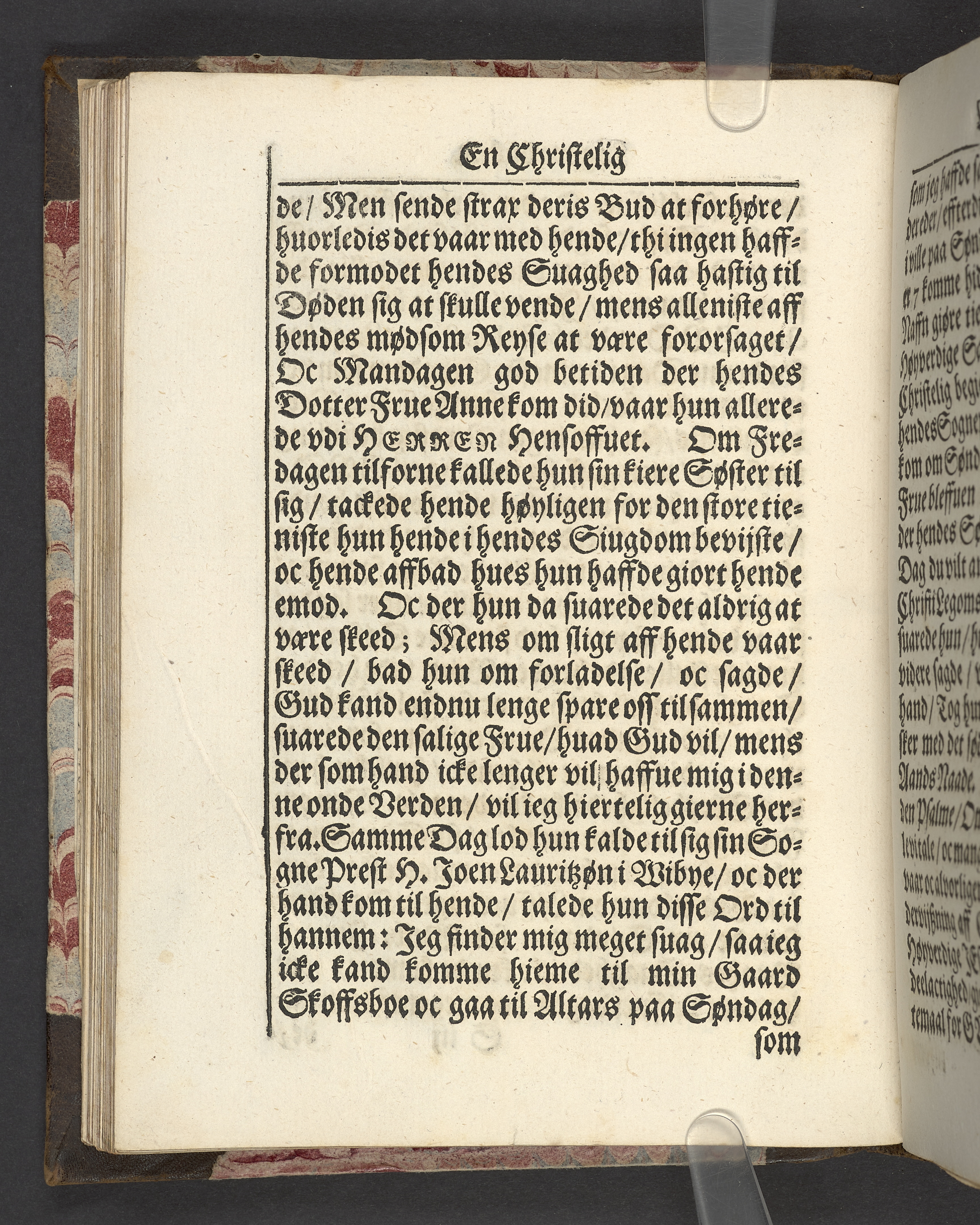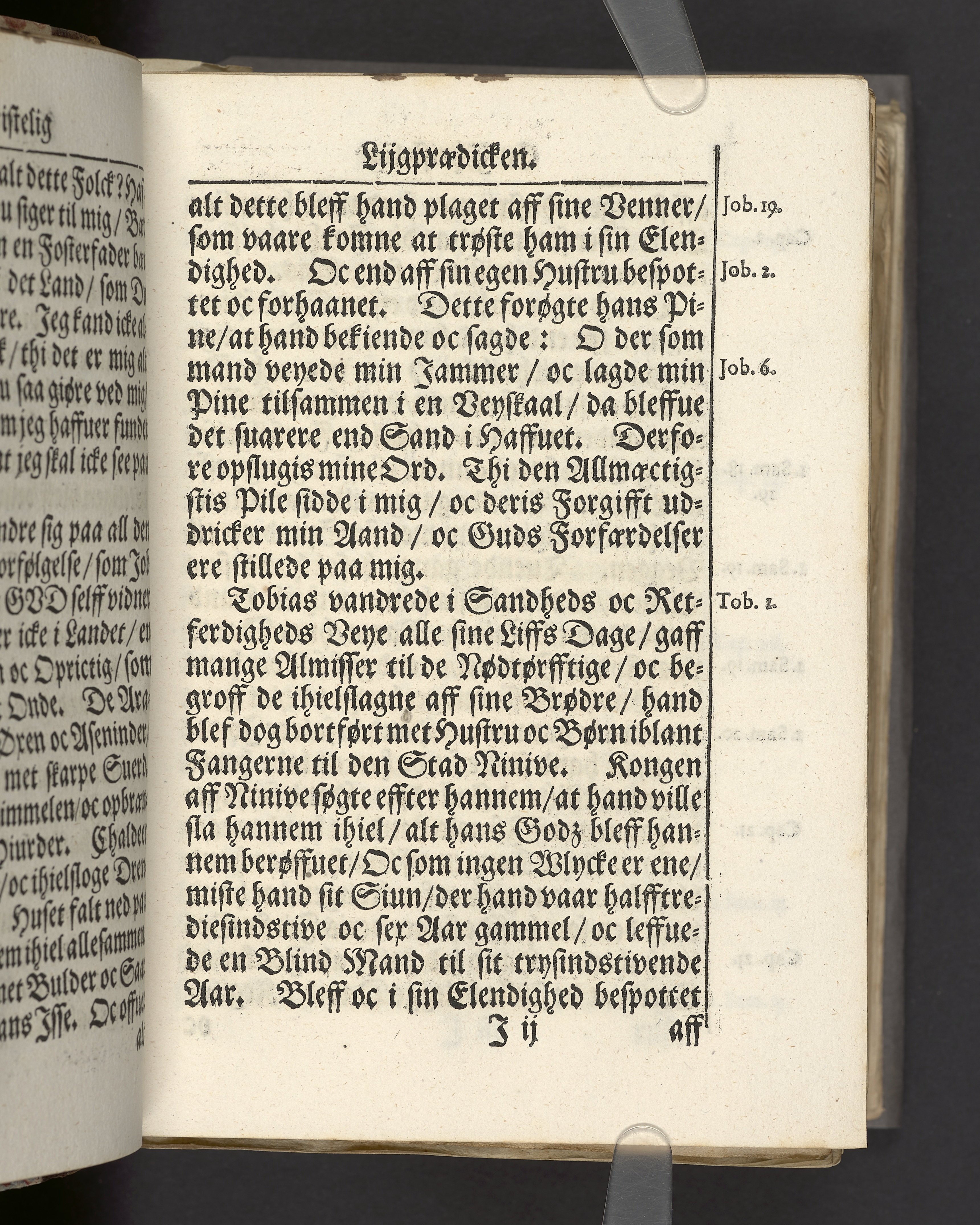 Förgyllt snitt. Längst upp på titelsidan ägaranteckning: "Jomfru Karen Lyke".