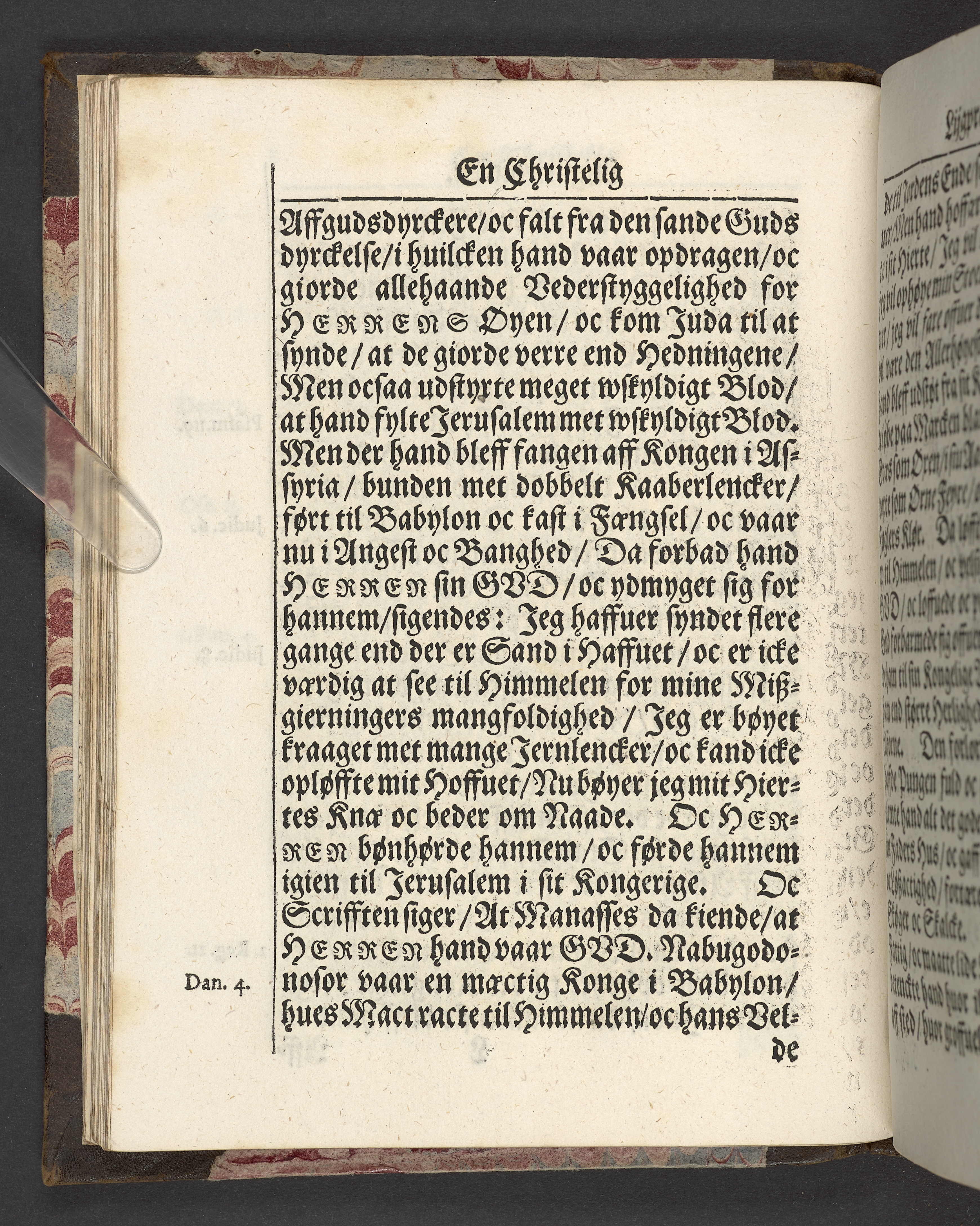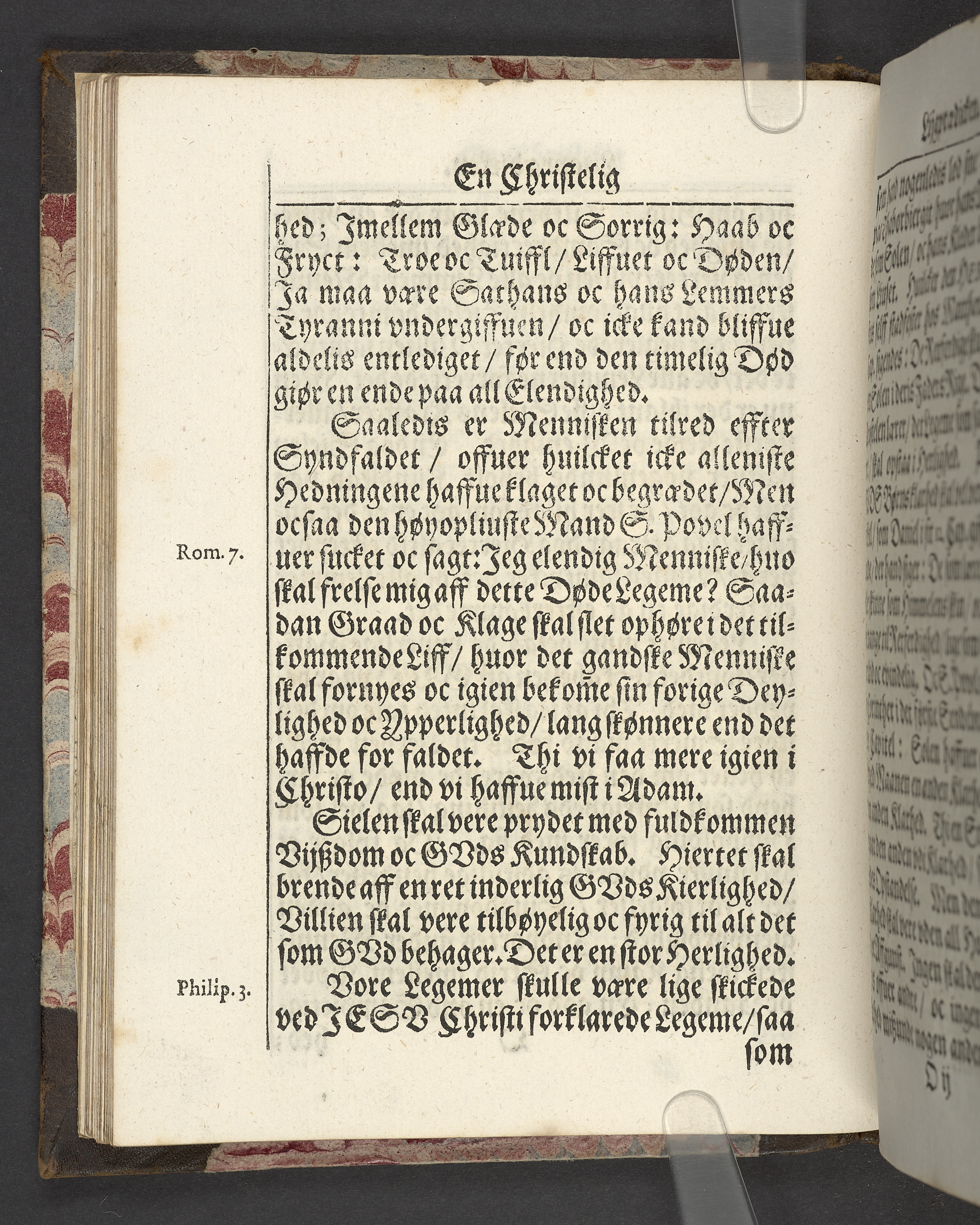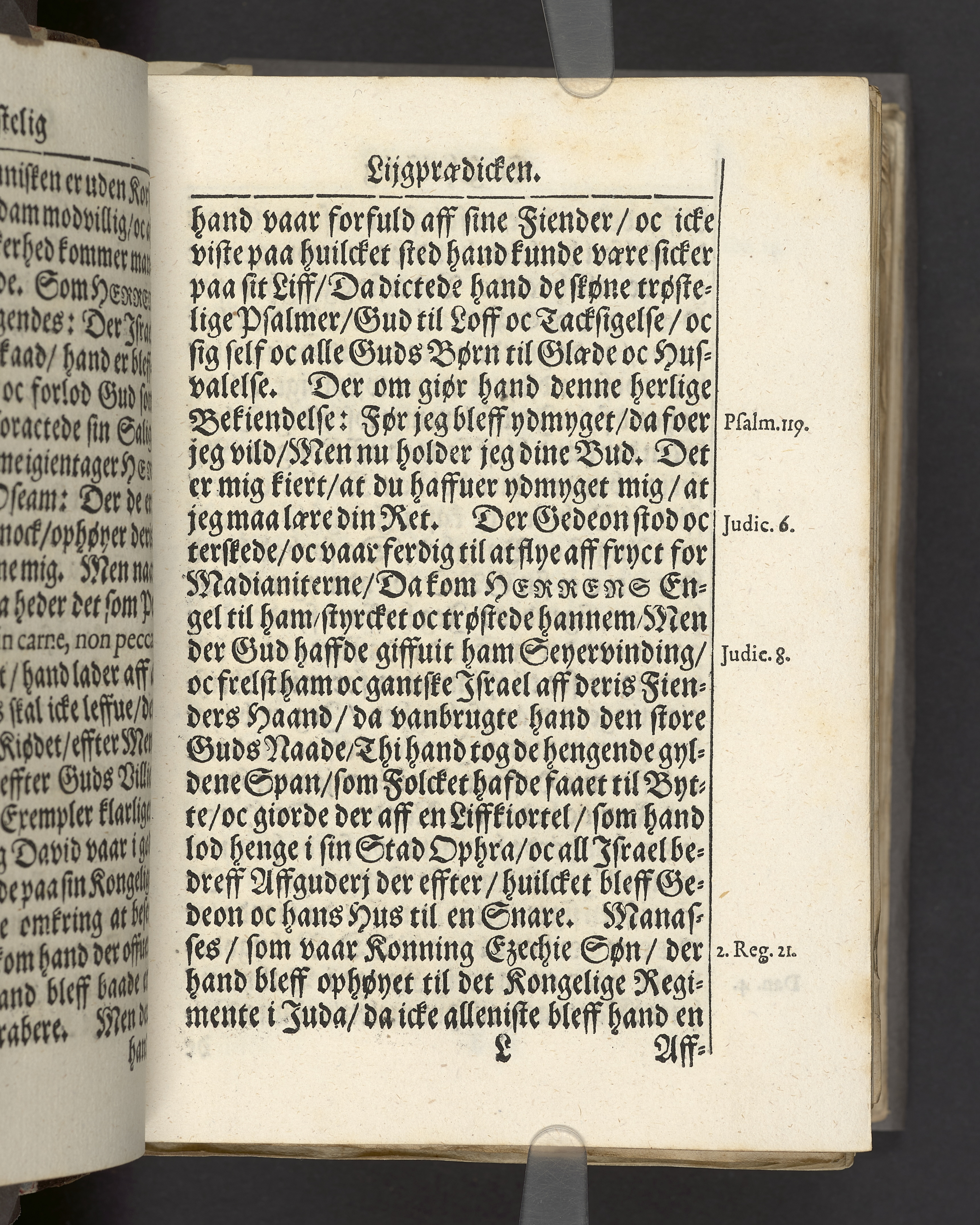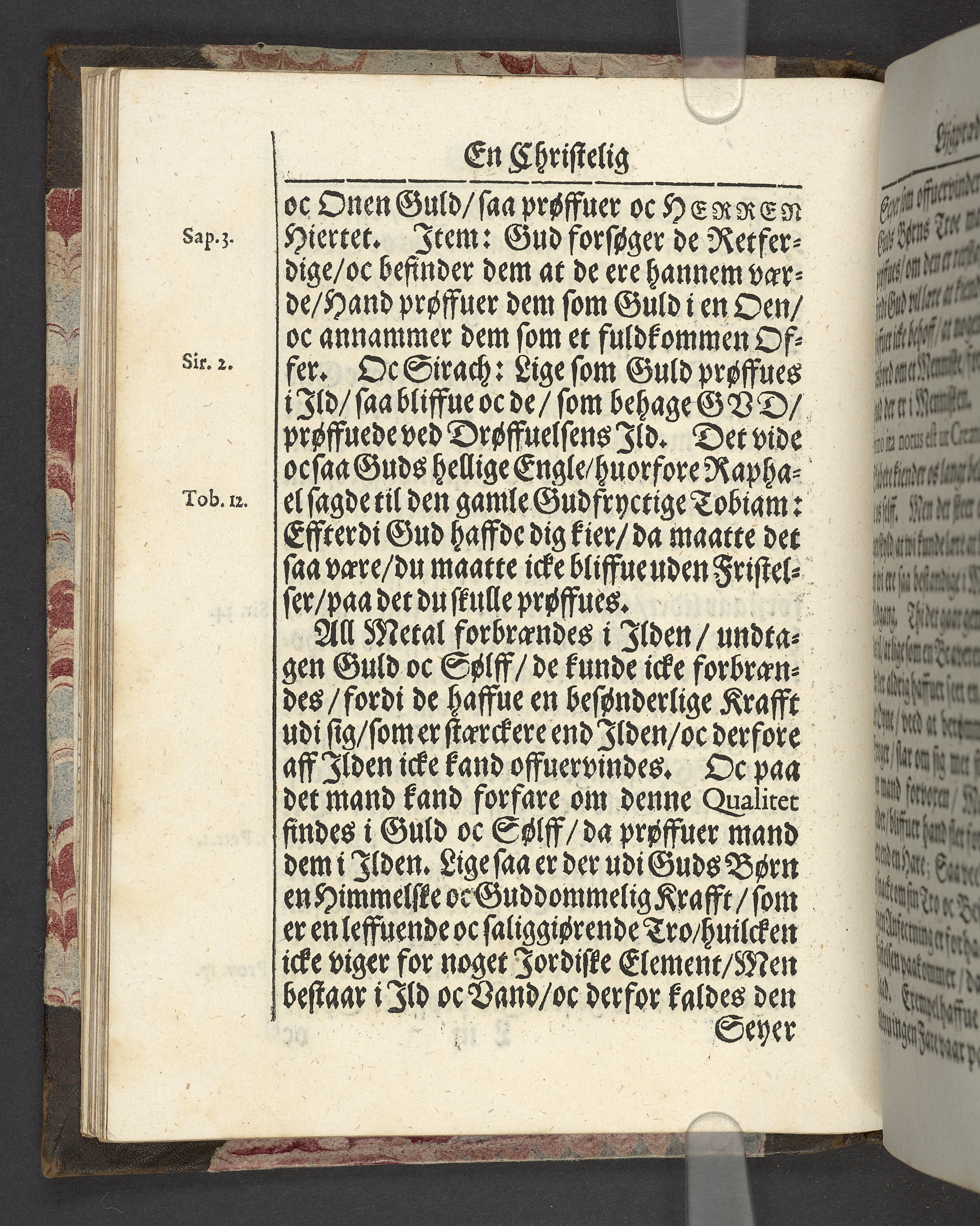 Förgyllt snitt. Längst upp på titelsidan ägaranteckning: "Jomfru Karen Lyke".