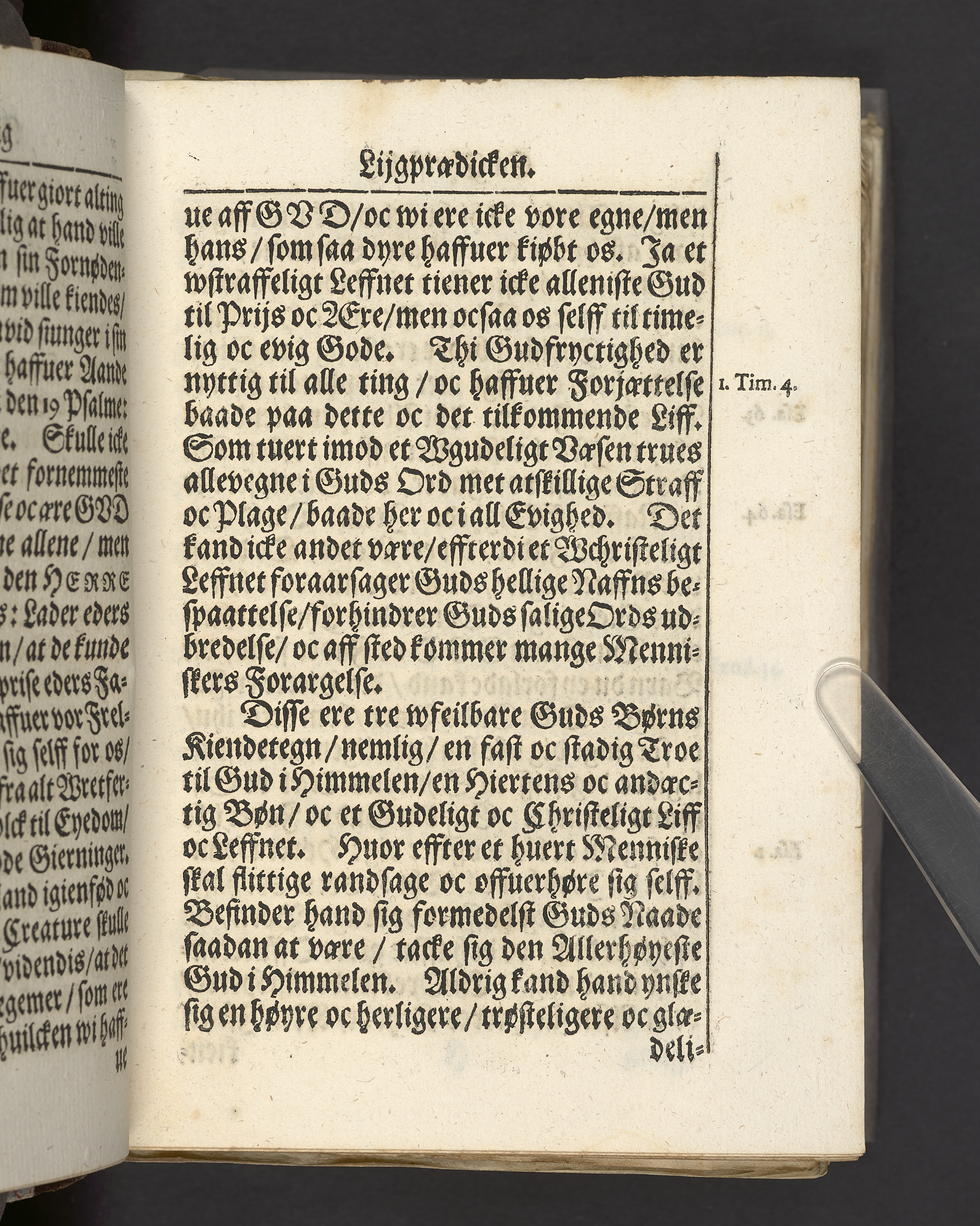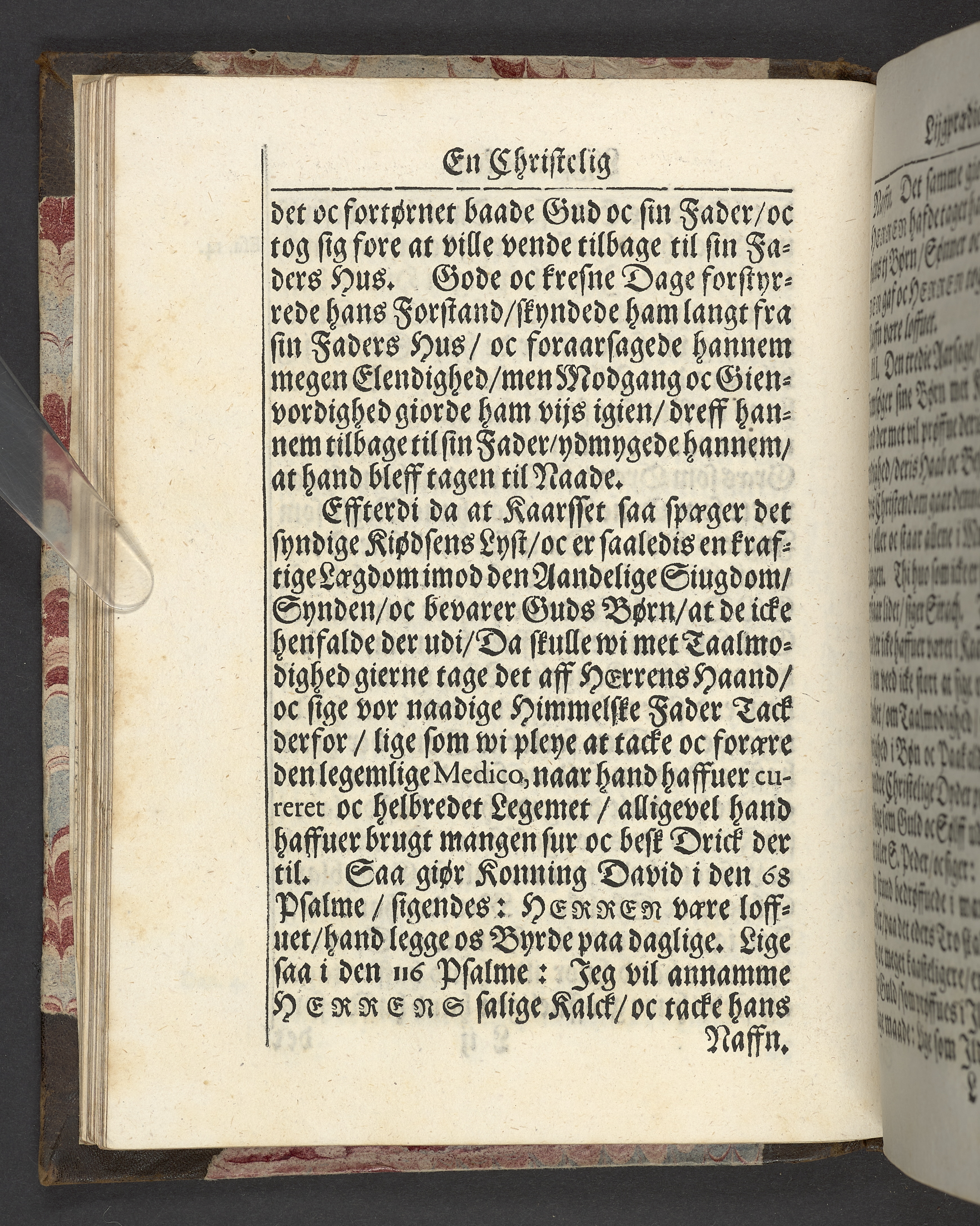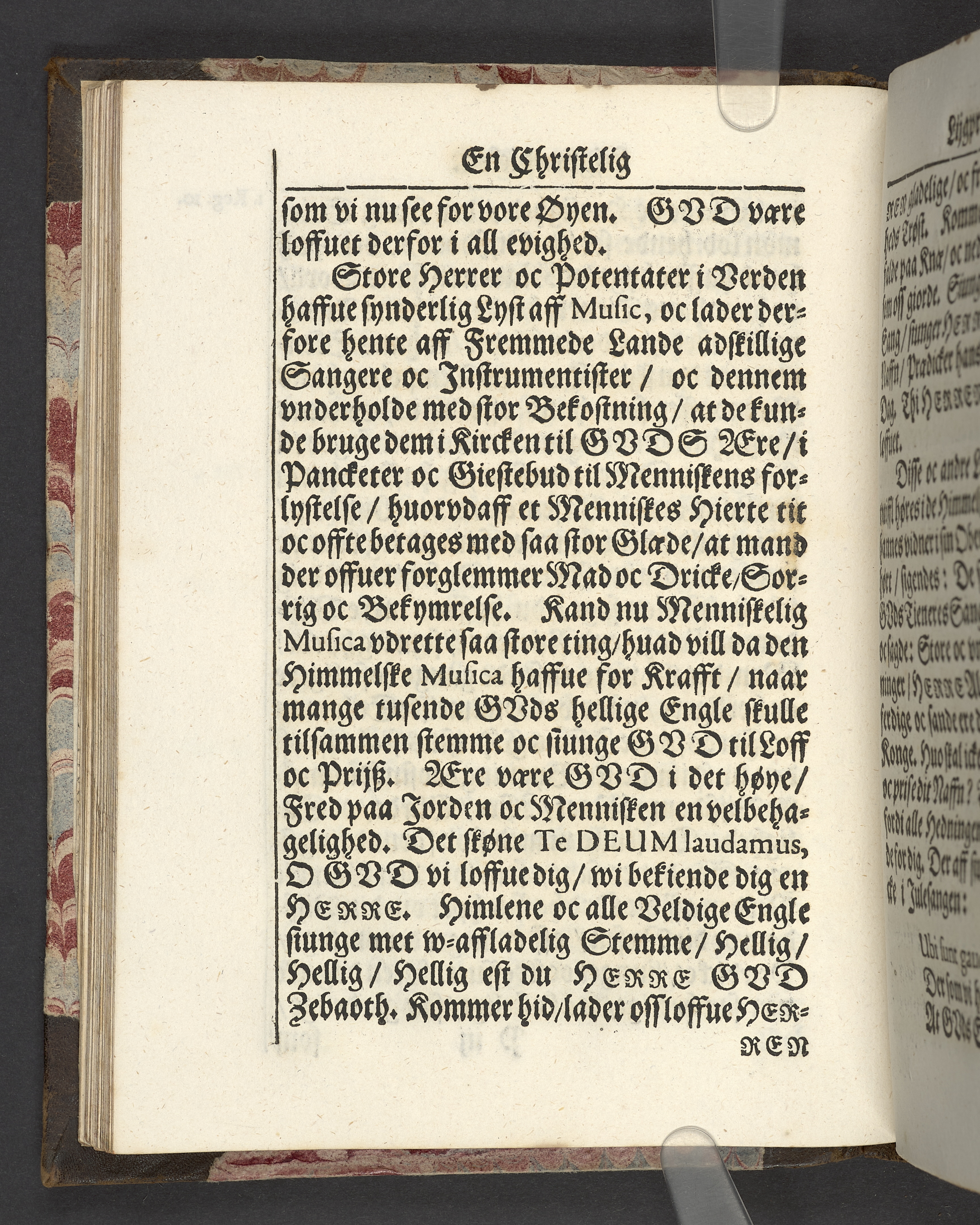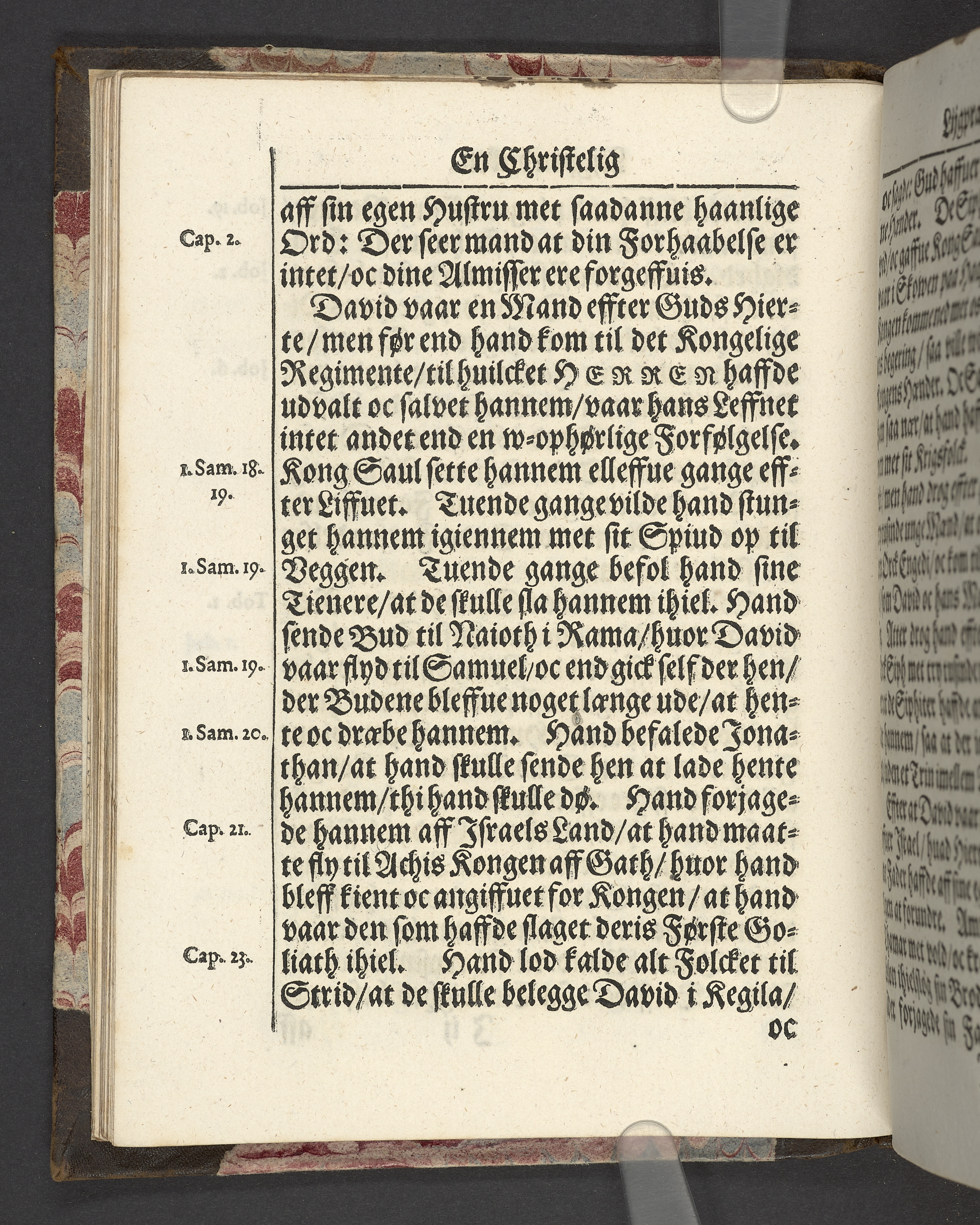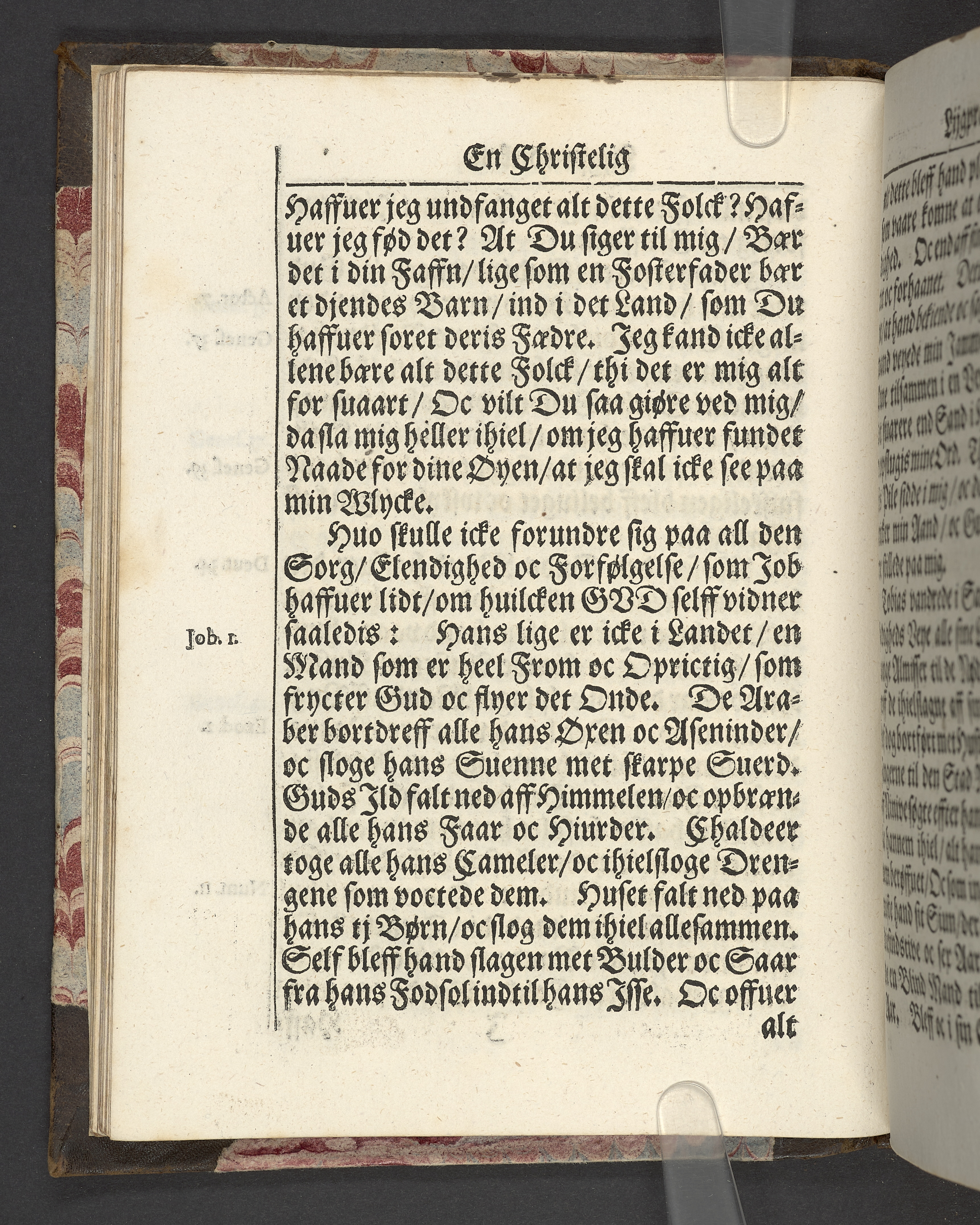 Förgyllt snitt. Längst upp på titelsidan ägaranteckning: "Jomfru Karen Lyke".
