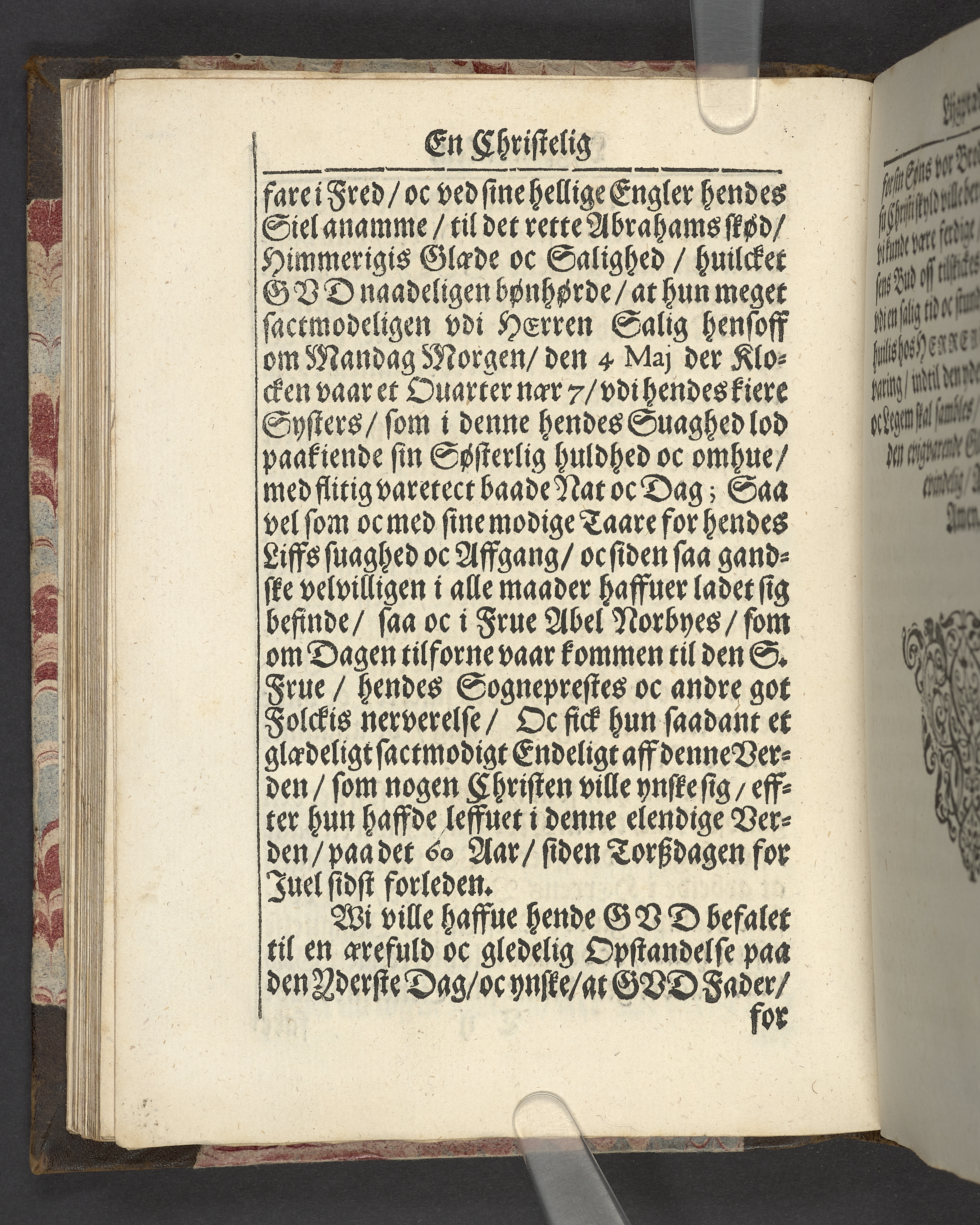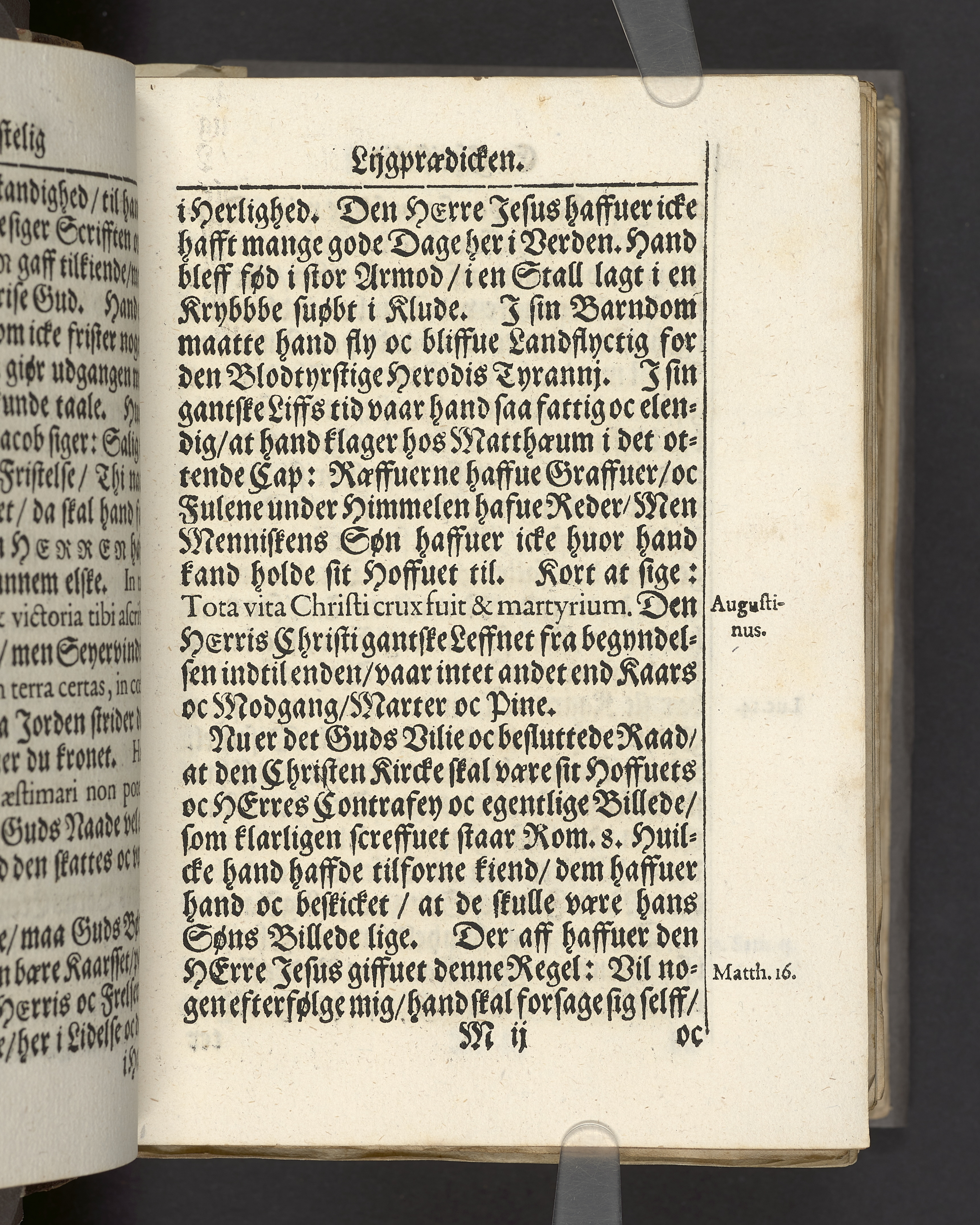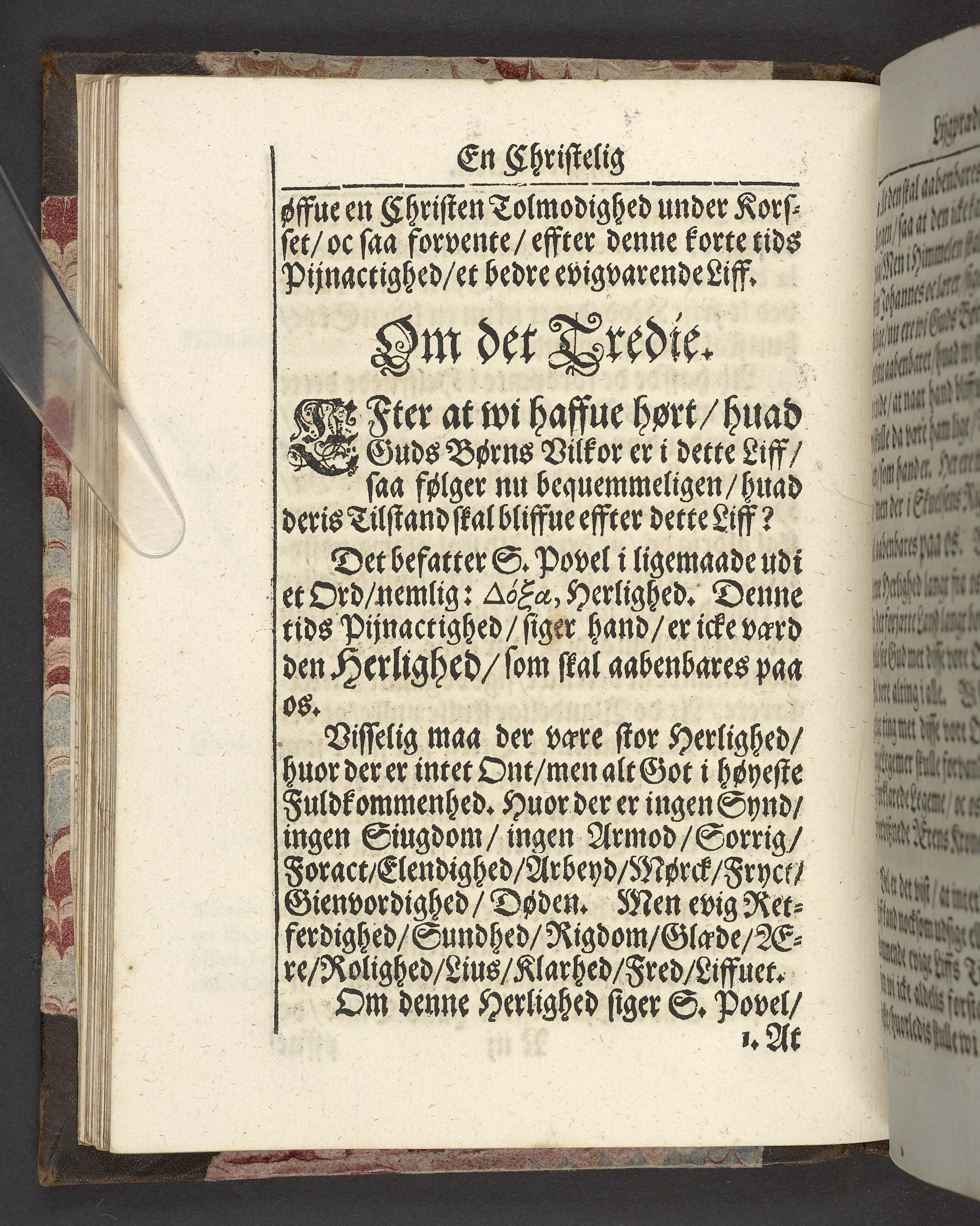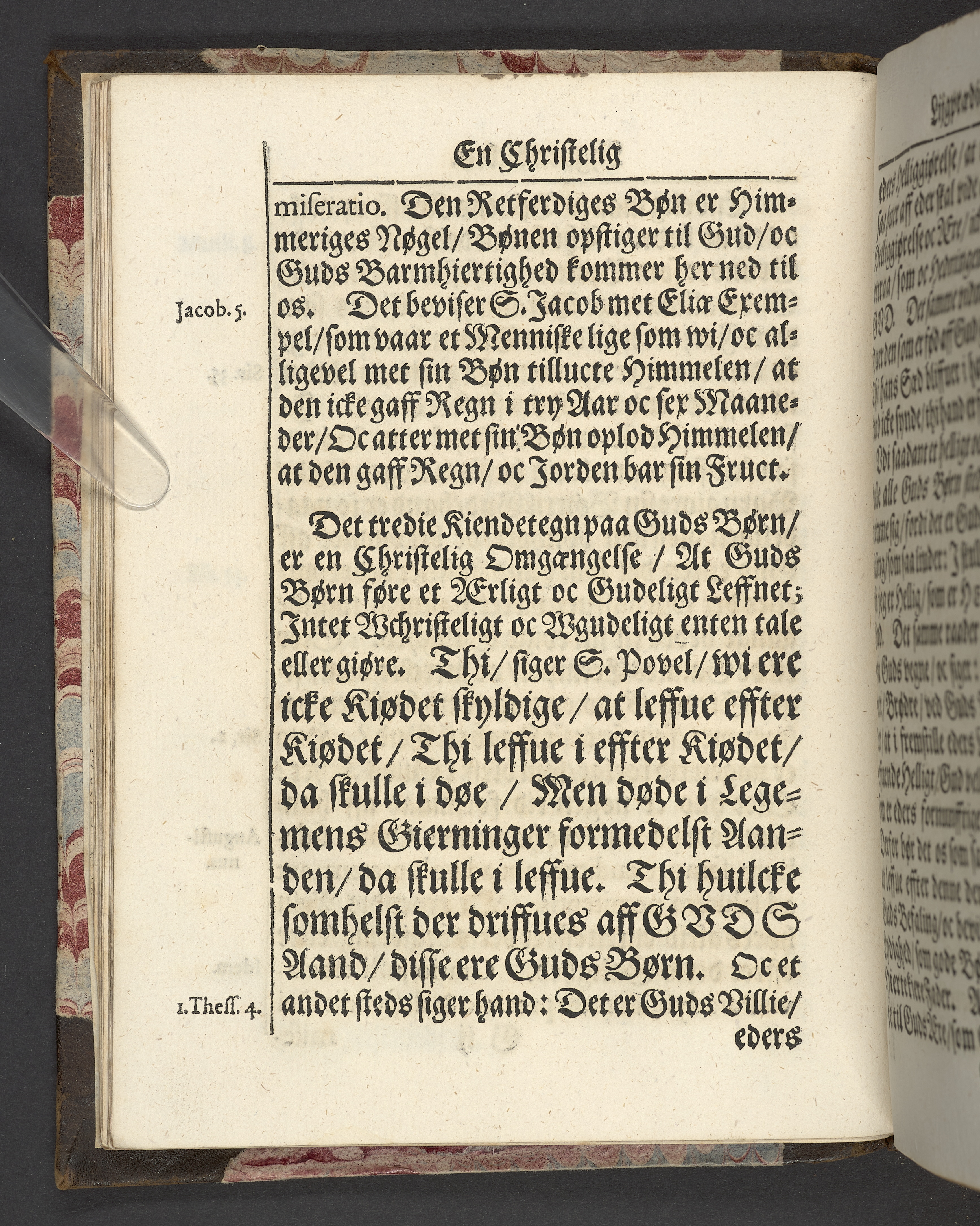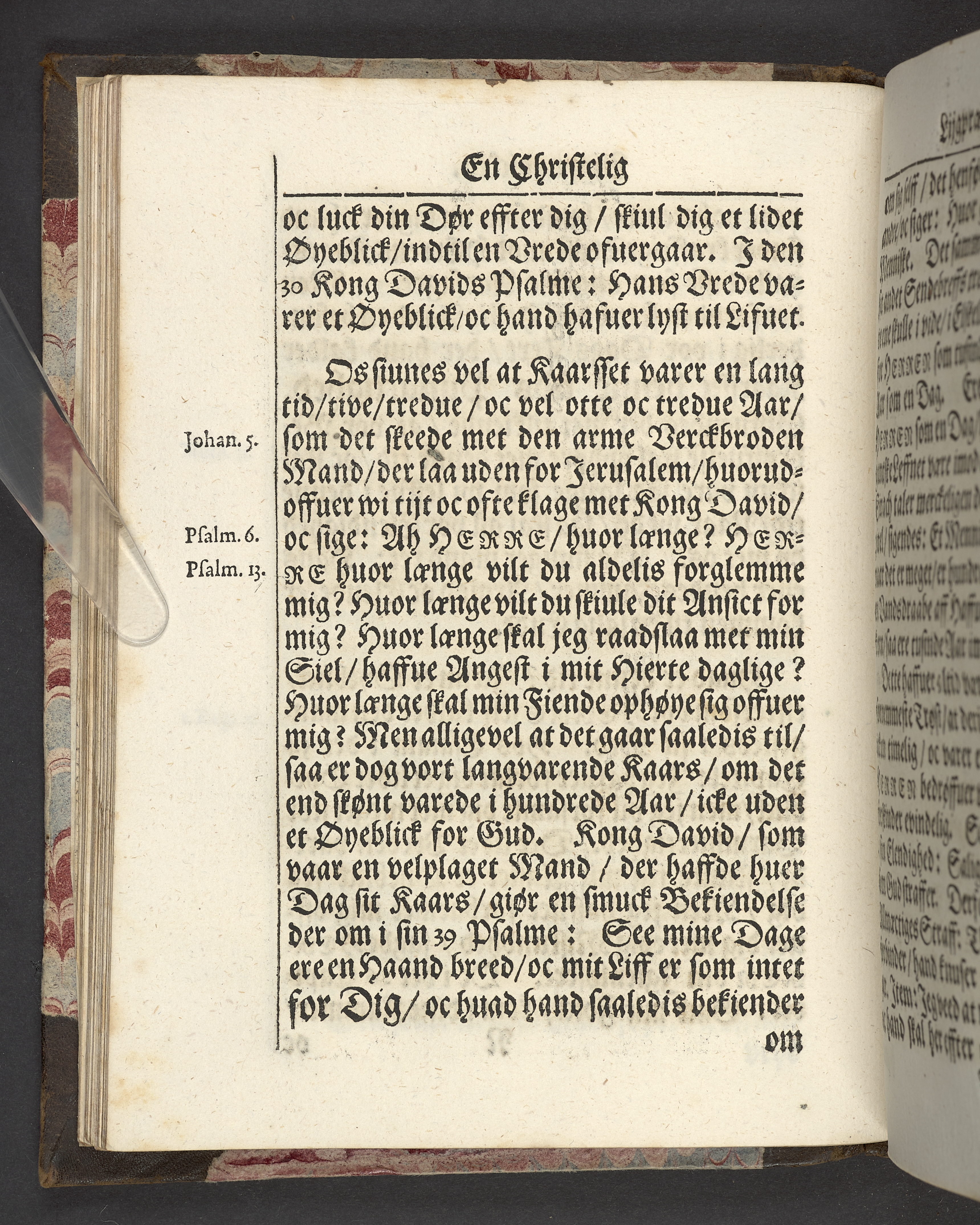 Förgyllt snitt. Längst upp på titelsidan ägaranteckning: "Jomfru Karen Lyke".