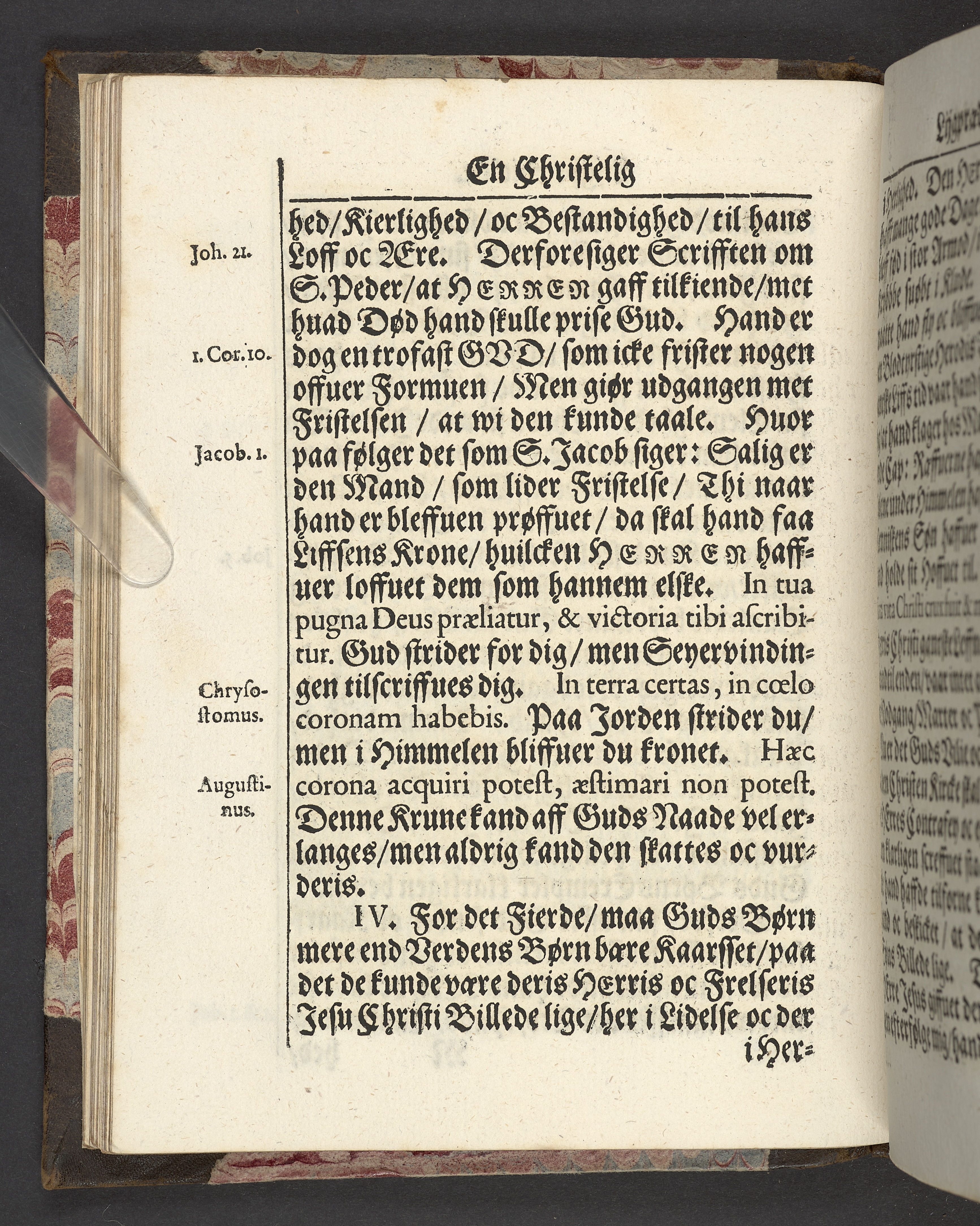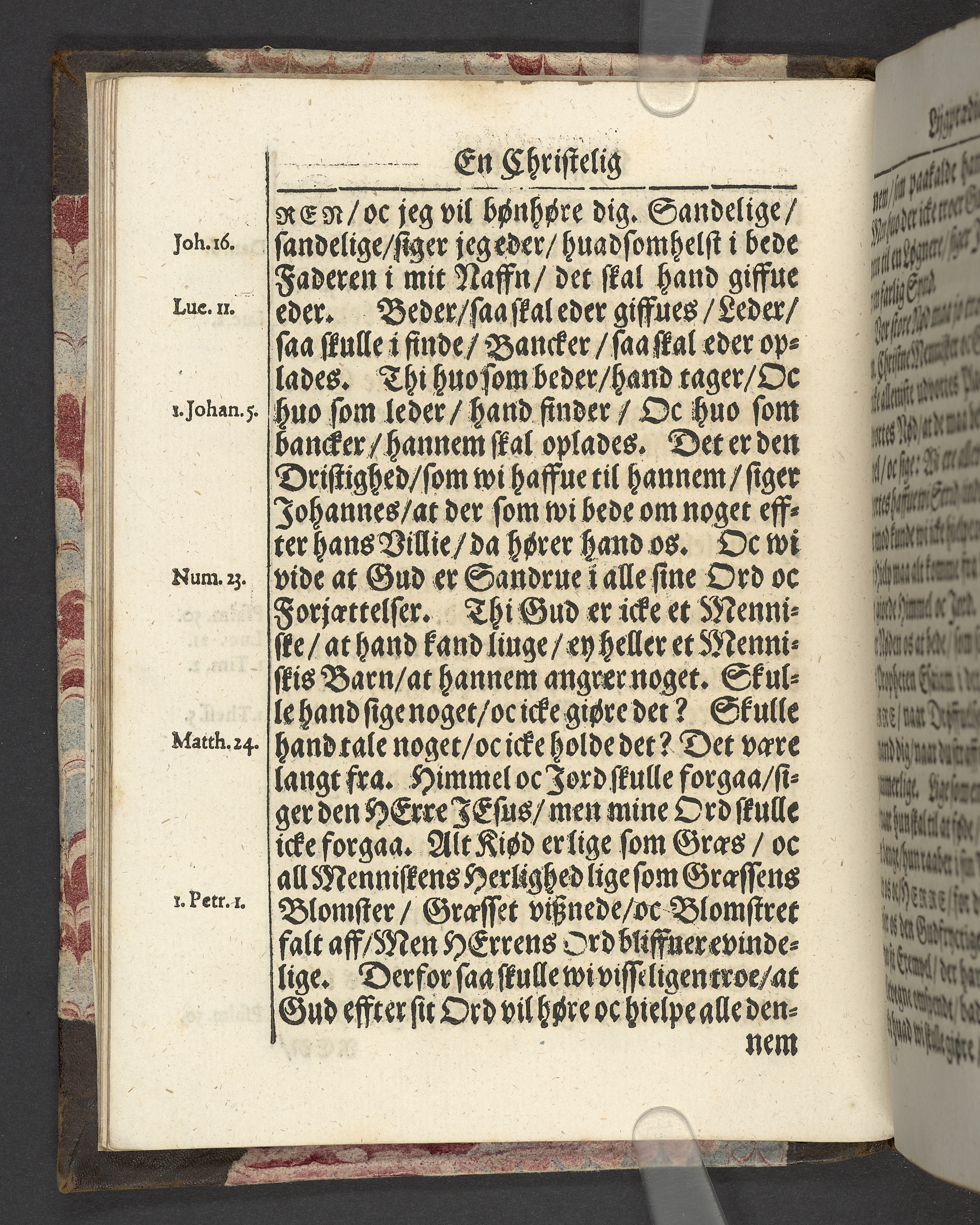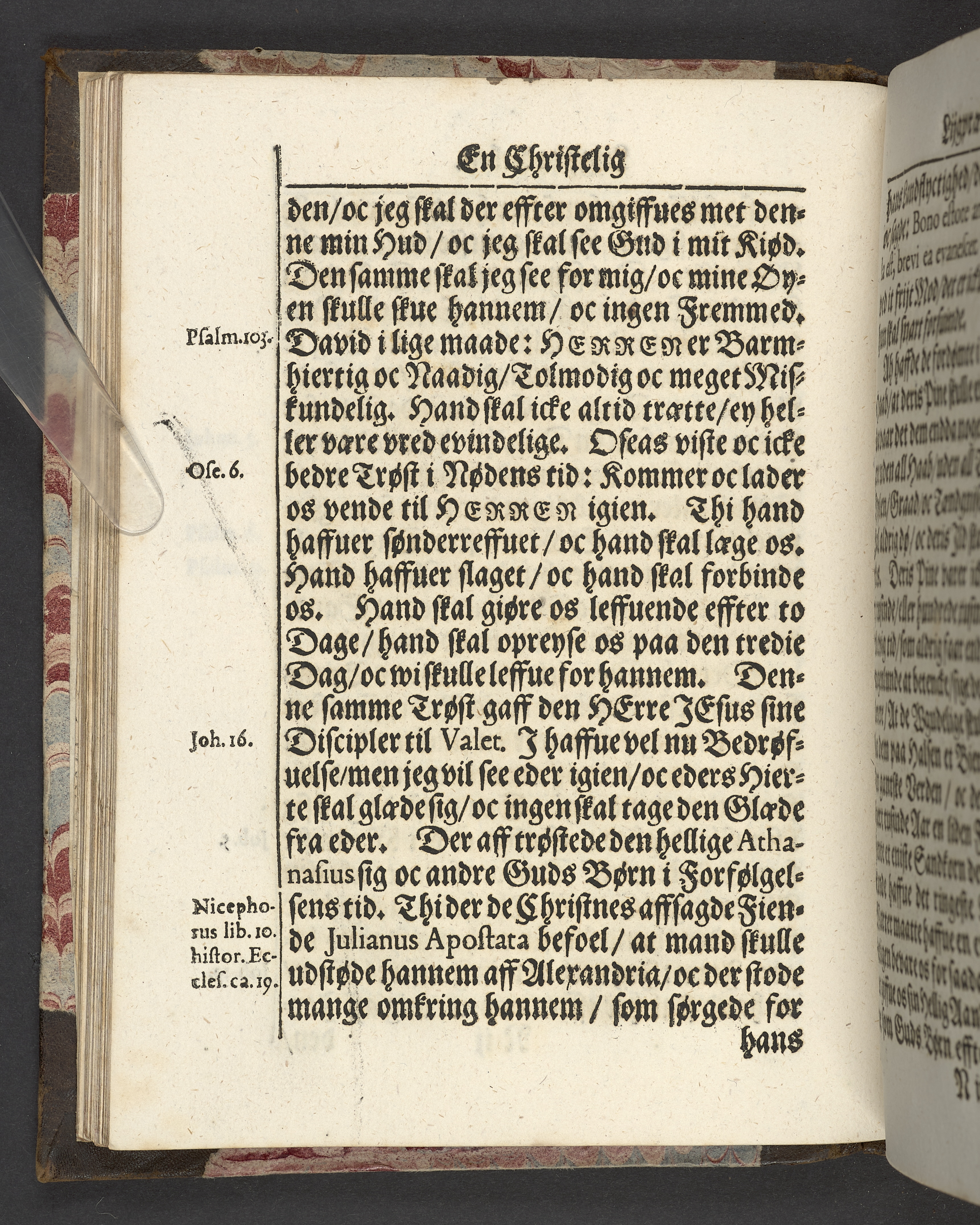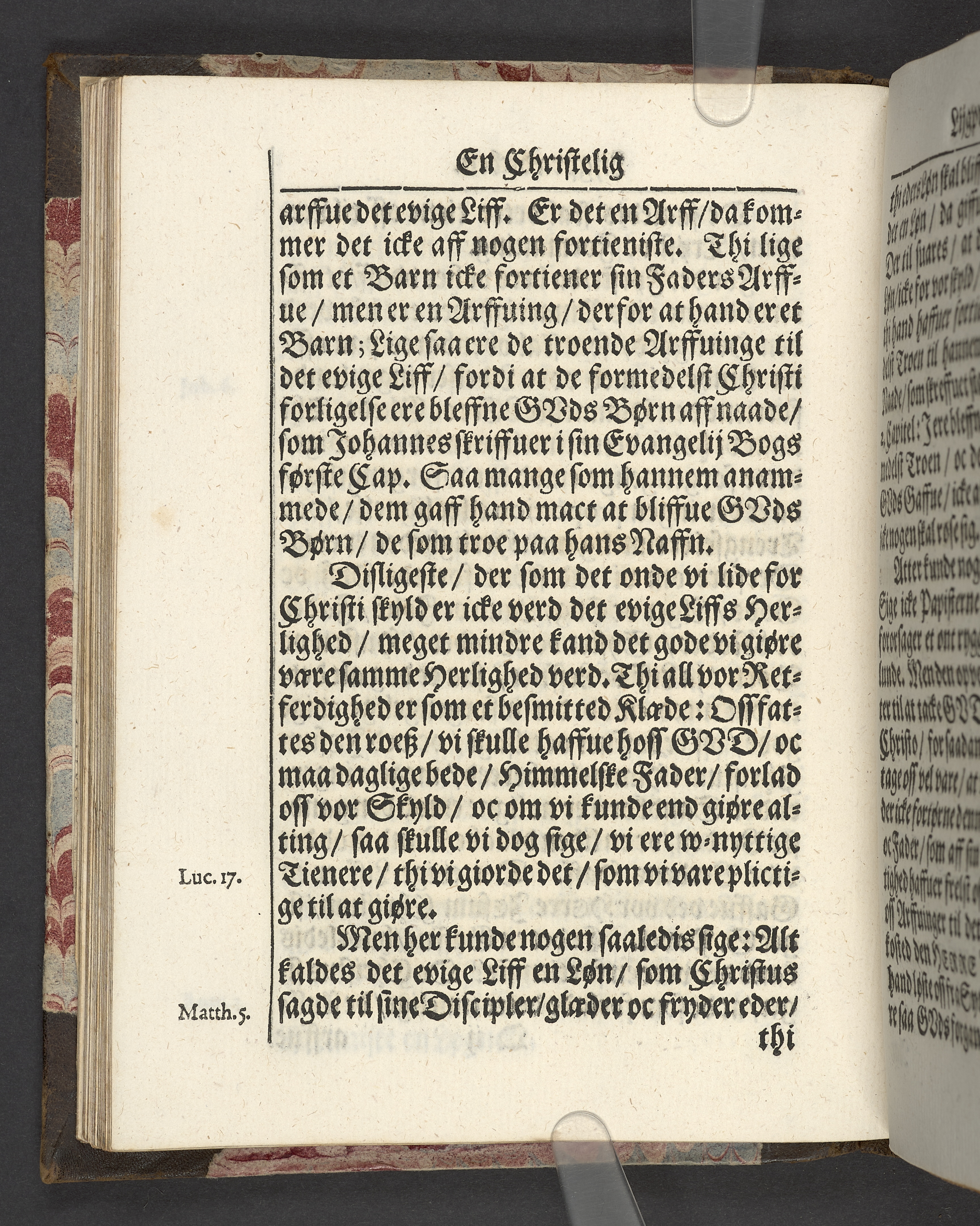 Förgyllt snitt. Längst upp på titelsidan ägaranteckning: "Jomfru Karen Lyke".