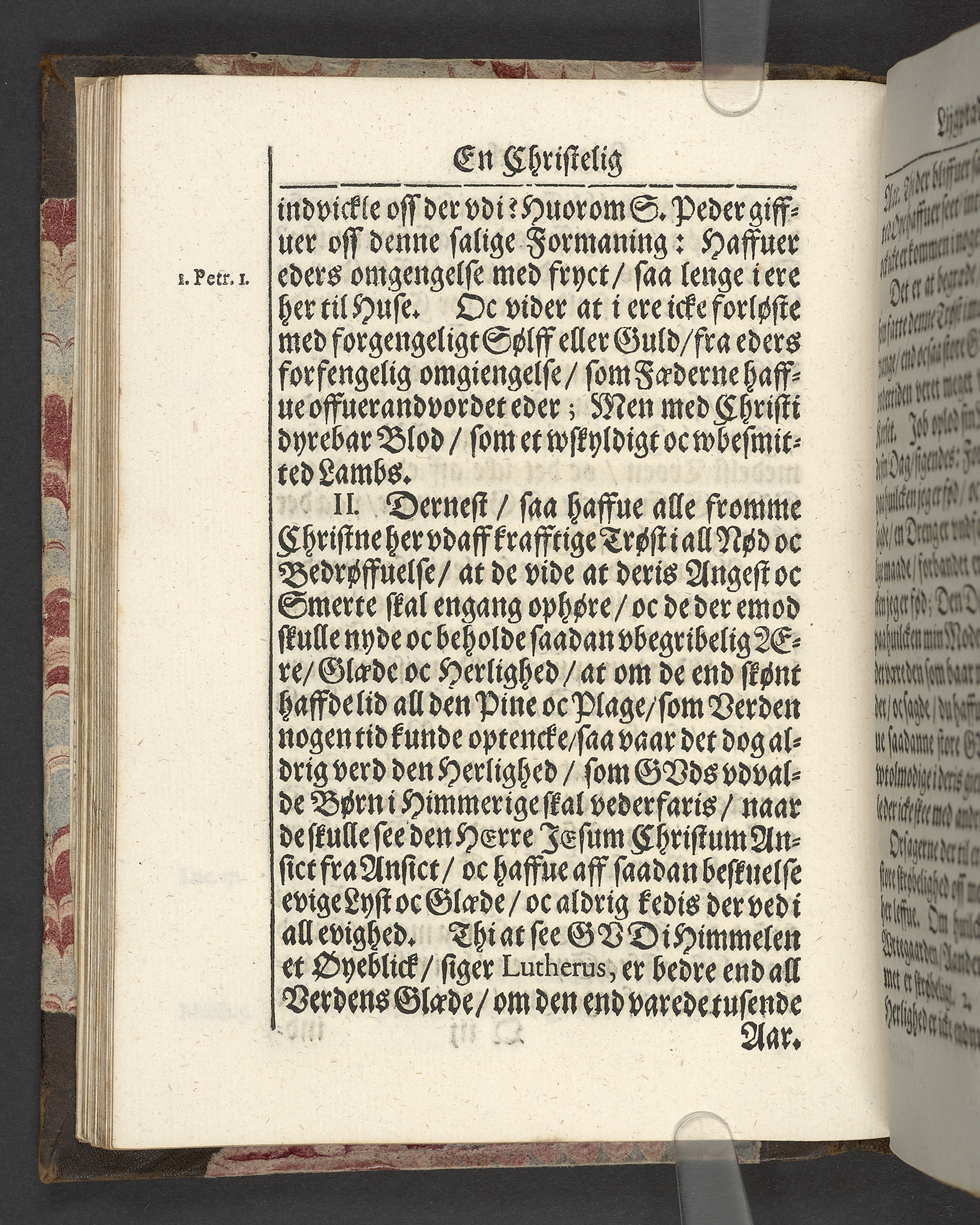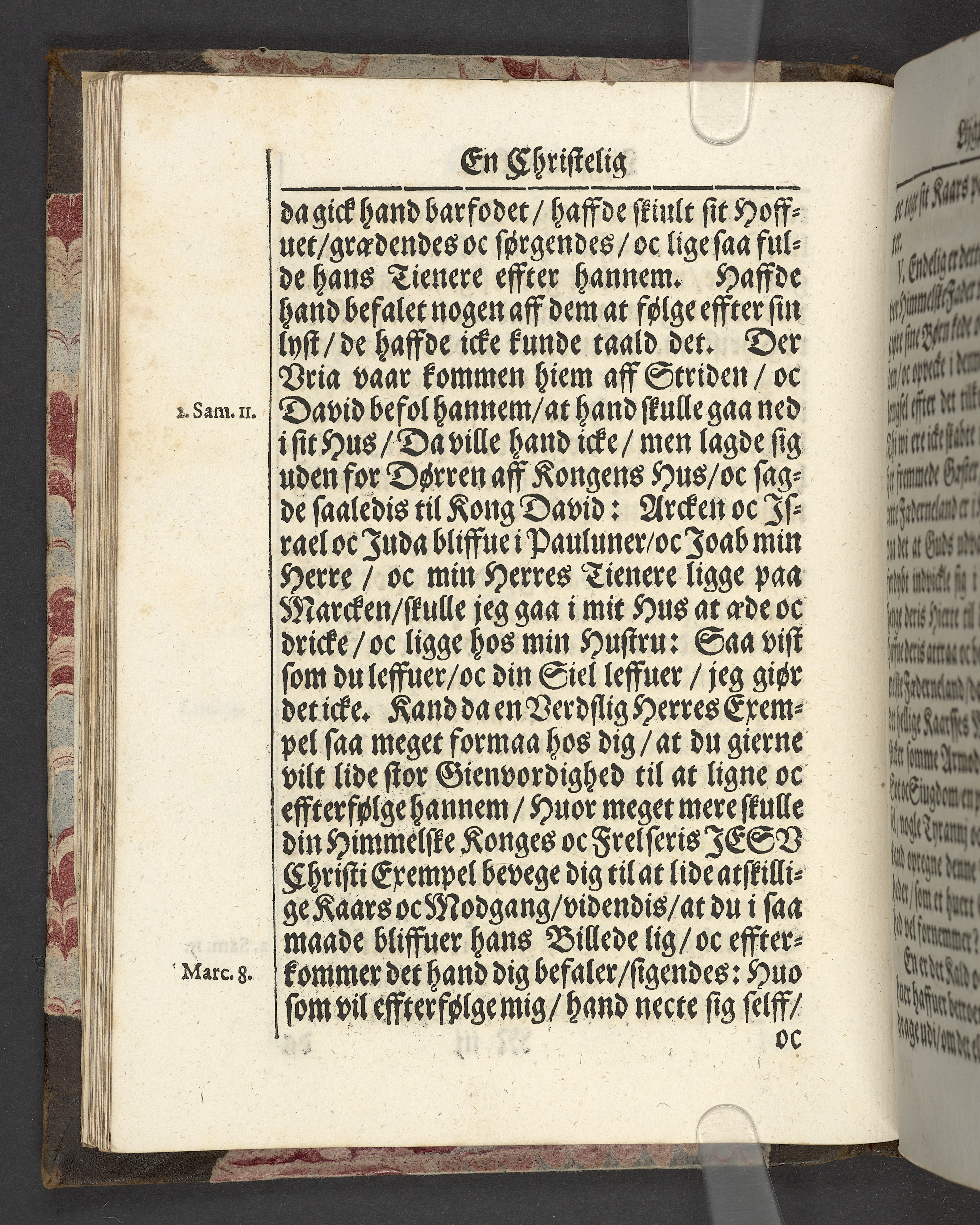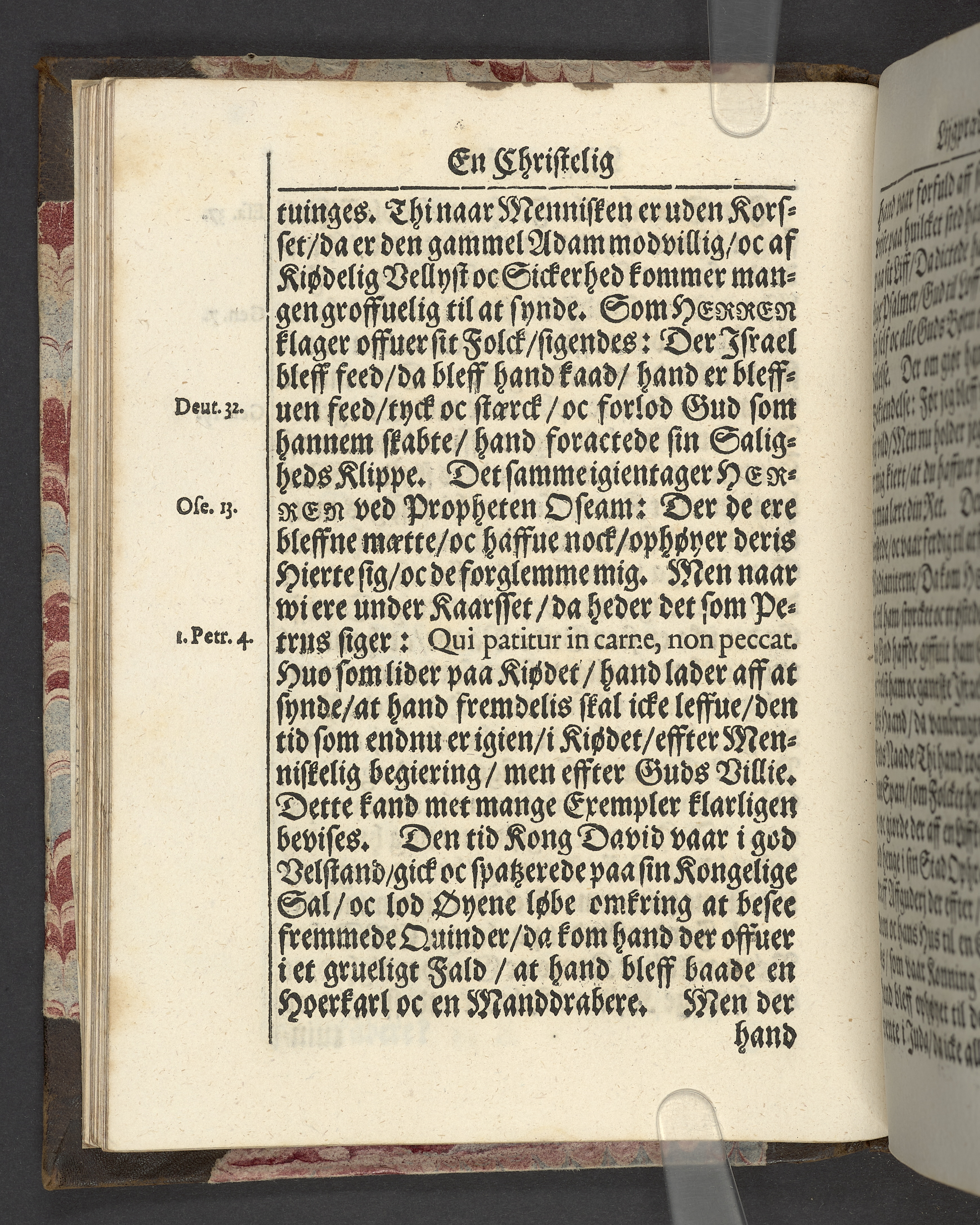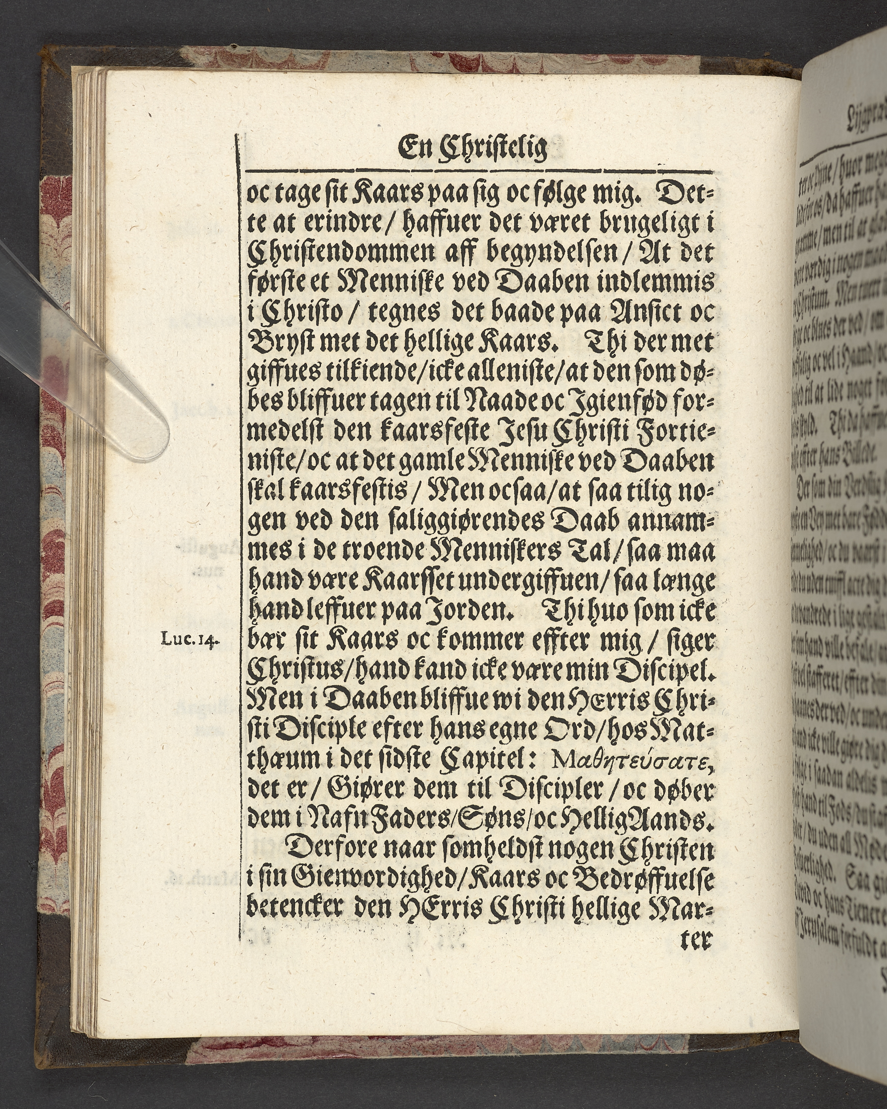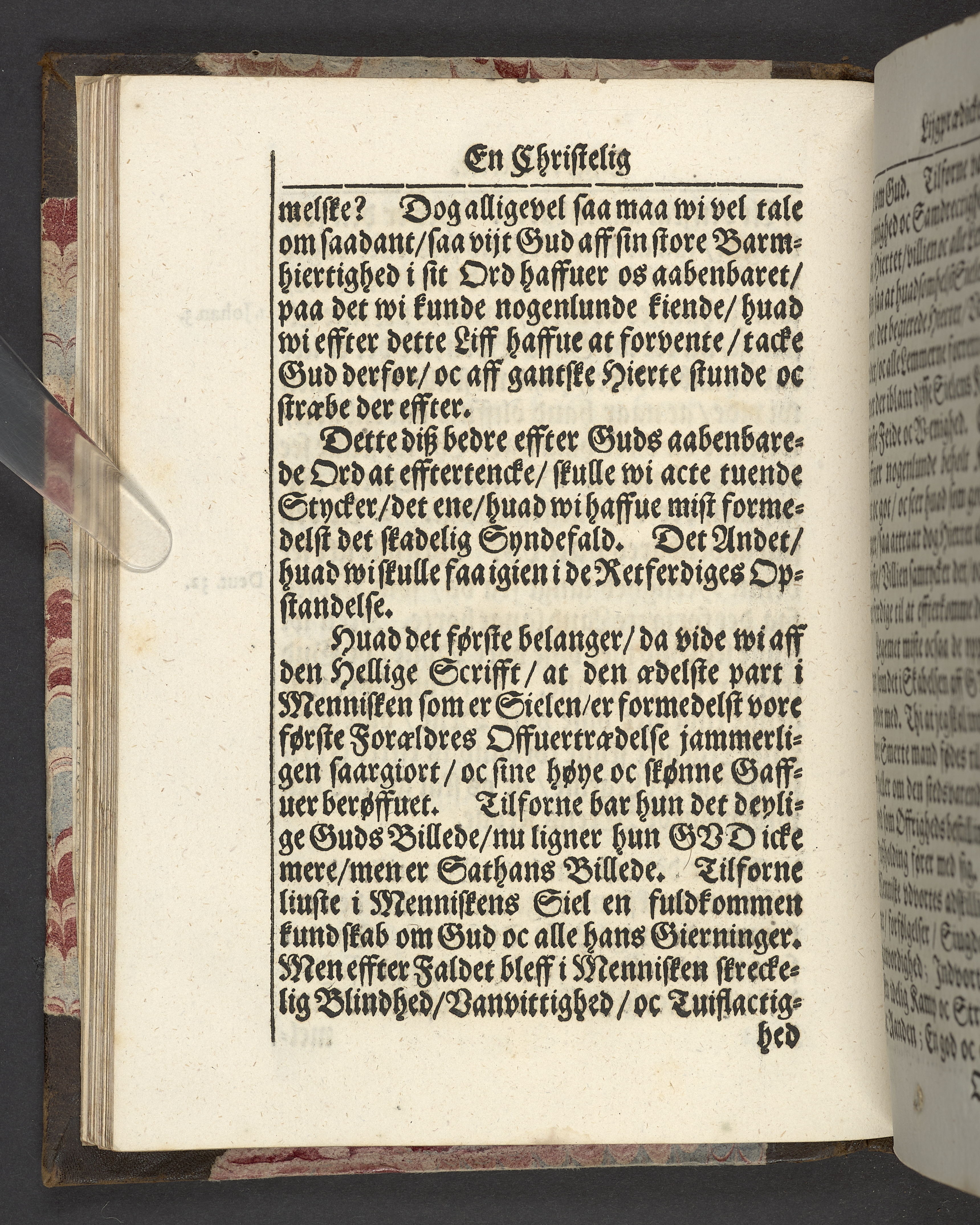 Förgyllt snitt. Längst upp på titelsidan ägaranteckning: "Jomfru Karen Lyke".