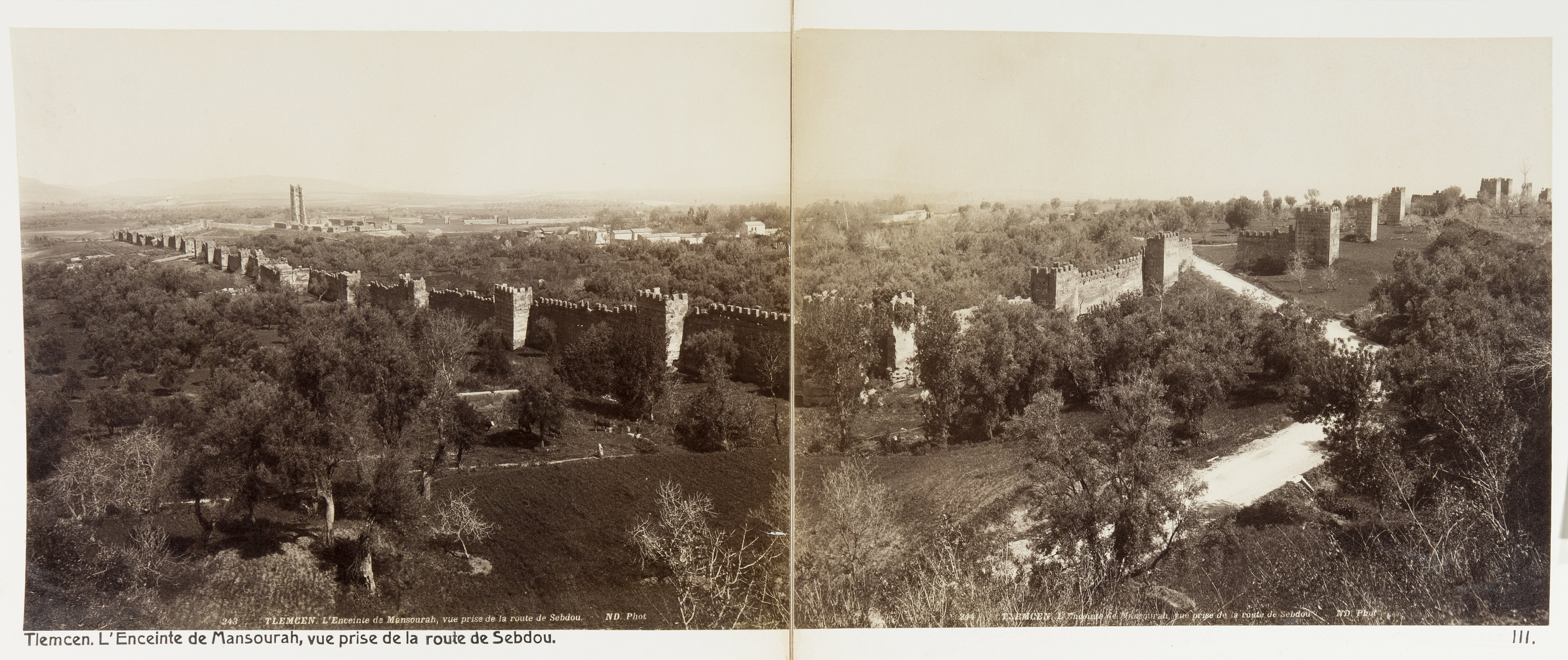 Tlemcen, Algeriet. Mansourahbefästningen. Vy tagen från vägen mot Sebdou. Bilden är en dubblett till LXVI:F.116. Bilderna med inventarienummer LXVI:K.H.01.-137. är inköpta av Johanna Kempe, f. Wallis, i Alger, Biskra, Tunis, Constantine, Oran och Blidah vid hennes vistelse i nämnda städer tillsammans med sin dotter och svärson, Wilhelmina och Walther von Hallwyl, dotterdottern Irma samt fröknarna Caroline Pflaum och Ida Uhse under deras resa genom Algeriet och Tunisien samt åter över Schweiz 11 februari - 19 maj 1889. Förestående uppgifter lämnade med ledning av fröken Ida Uhses Reseanteckningar. Vissa av bilderna är dubbletter till bilder i inventarienummerserien LXVI:F.01.-138. som köptes in av Wilhelmina von Hallwyl under samma resa.
